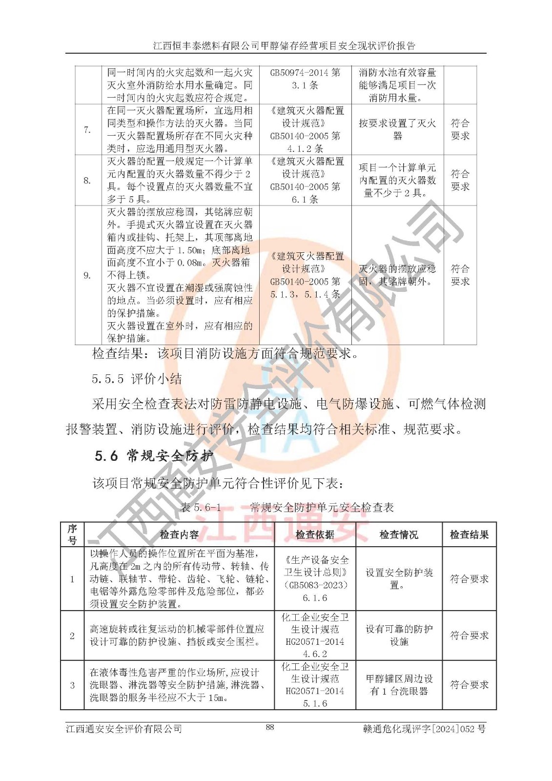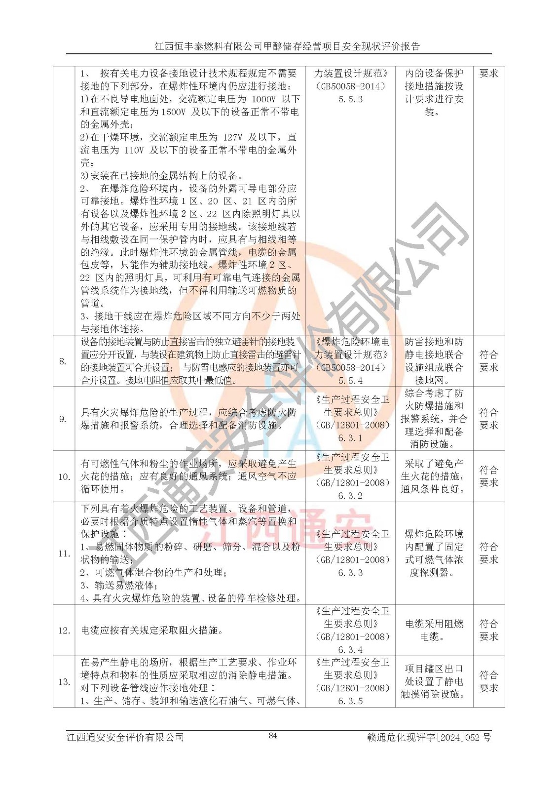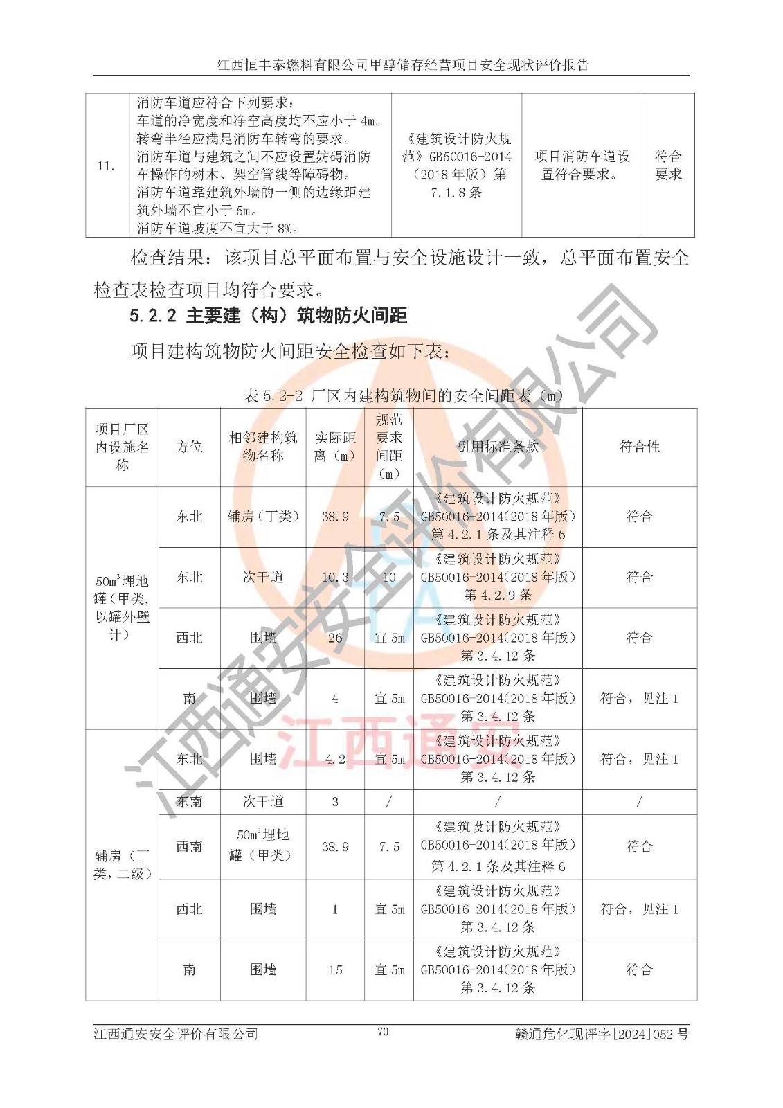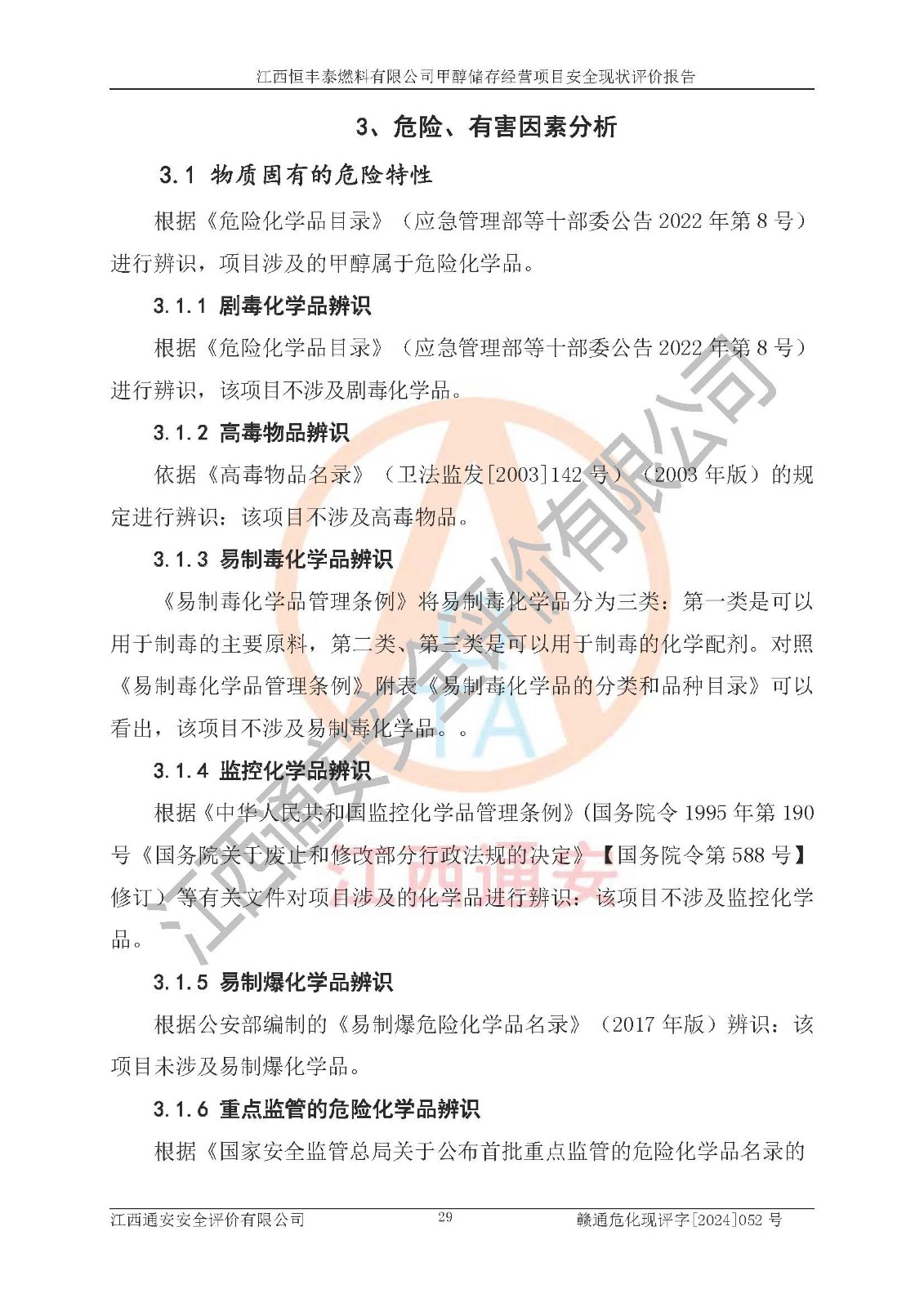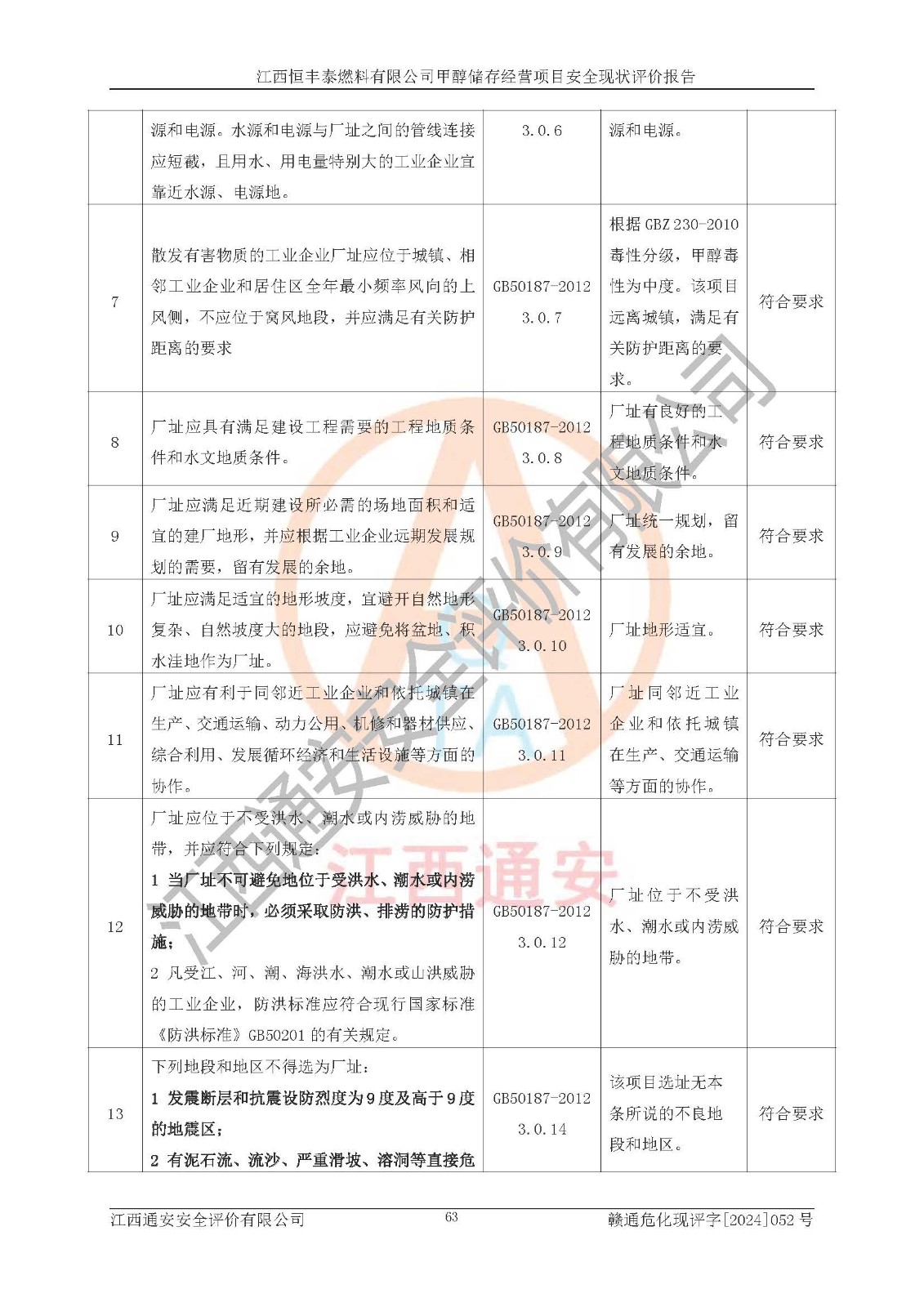 一、安全状况综合评述 通过对江西恒丰泰燃料有限公司甲醇储存经营项目的危险、有害因素辨识和定性、定量评价结果如下∶ 1、主要危险、危害因素辨识结果 项目在生产过程中存在的主要危险有:火灾爆炸、中毒窒息、触电、机械伤害、高处坠落、物体打击、**伤害、淹溺、灼烫等,存在的主要危害因素有:化学因素、物理因素(噪声、高温等)等,同时存在人为失误和管理缺陷。应重点防范的主要危险为火灾与爆炸。 2、危险化学品辨识结果 经辨识,该项目涉及的甲醇属于危险化学品,甲醇属于重点监管的危险化学品和特别管控危险化学品,项目不涉及监控化学品、易制毒化学品、易制爆危险化学品、剧毒化学品和高毒物品等危险化学品。 3、危险化学品重大危险源辨识结果 根据《危险化学品重大危险源辨识》(GB18218-2018)辨识,江西恒丰泰燃料有限公司甲醇储存经营项目不构成危险化学品重大危险源。 4、重点监管危险化工工艺辨识结果 根据《**安全监管总局关于公布首批重点监管的危险化学品名录的通知》安监总管三[2011] 95号、《**安全监管总局关于公布第二批重点监管危险化学品名录的通知》安监总管三[2013] 12号进行辨识,本项目不涉及重点监管的危险化工工艺。 5、作业条件危险性分析结果: 甲醇罐区卸车作业、装桶作业、检维修作业等单元危险程度均为“一般危险,需要注意”或“稍有危险,可以接受”级别。作业条件相对安全。 6、危险度评价结果: 甲醇储罐区属中度危险。 7、采用检查表评价法对项目外部安全条件、总图运输、危险化学品储运设施、采取的防火防爆措施、常规安全防护设施、“两重点一重大”安全措施及安全管理进行定性评价,评价结果如下: (1)该项目选址符合城乡总体规划和安全要求,甲醇经营和储存场所与库外建构筑物的距离符合有关标准、规范的要求。外部安全距离内无GB36894-2018中第3.1条所列的防护目标。 (2)总图布置分区明确,布局合理,满足规范要求。 (3)该项目无**明令淘汰的工艺,设备、设施与工艺条件、内部介质相适应,储罐的附件经整改后符合安全设施设计和规范的要求。 (4)该项目消防安全设施设置符合规范要求。 (5)该项目电气安全设施能满足安全要求,按要求设置了防雷接地设施,并经检测合格。防火防爆设施、液位监测措施、甲醇防泄漏设施、电气防爆措施等安全防护设施符合**法律法规、标准规范的要求。 (6)该项目公用工程能够满足安全经营的基本需要,符合安全经营的条件。 (7)该项目不涉及重大生产安全事故隐患,安全生产条件符合要求。 (8)公司成立了安全生产**小组,配备了安全管理人员,制定了安全管理制度、操作规程和事故应急预案,公司的安全管理机构工作有力,安全经营管理处于正常有序开展范围。 四、评价结论 江西恒丰泰燃料有限公司甲醇储存经营项目的安全设施及安全管理符合法律、法规、标准的要求,安全风险是受控制的,其风险程度是可以接受的,满足项目危险化学品储存和经营的安全条件。 |