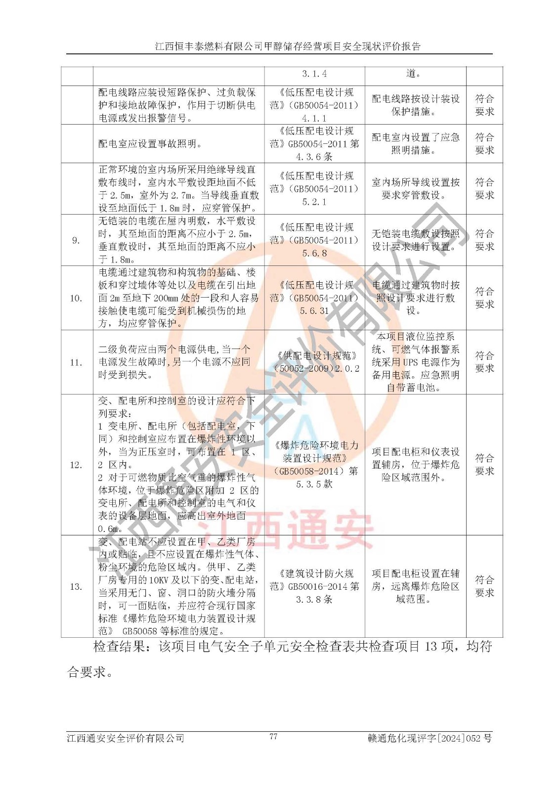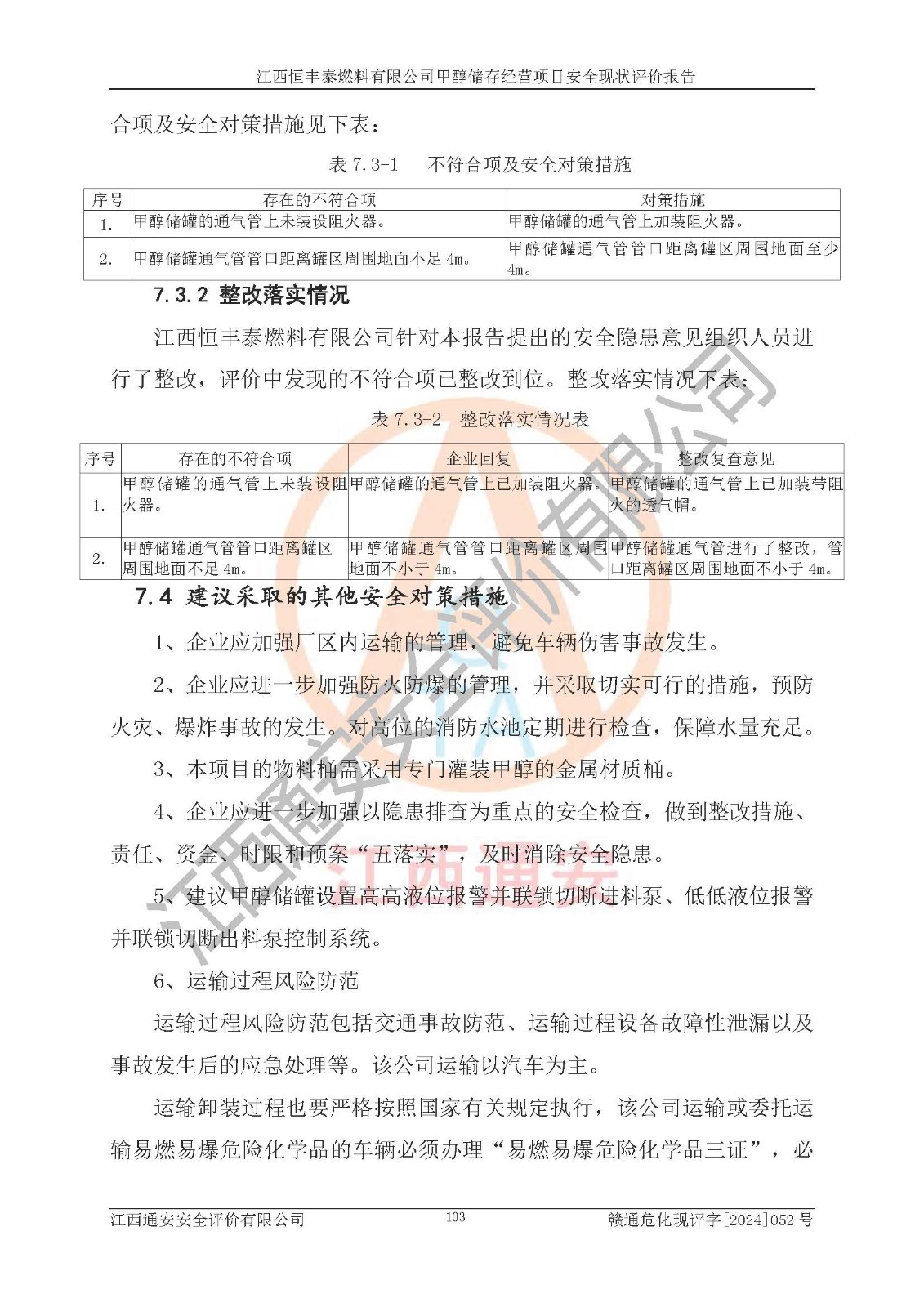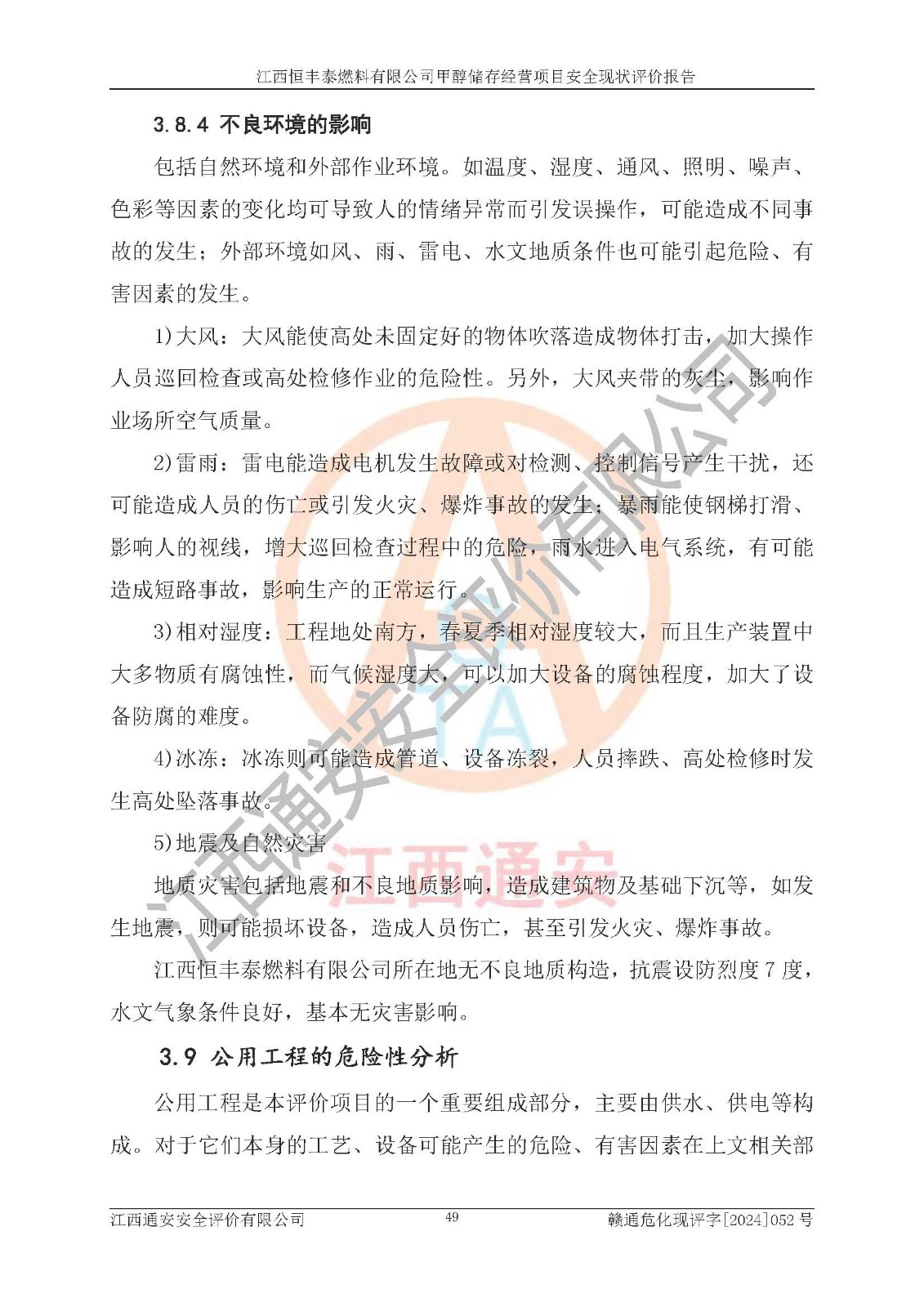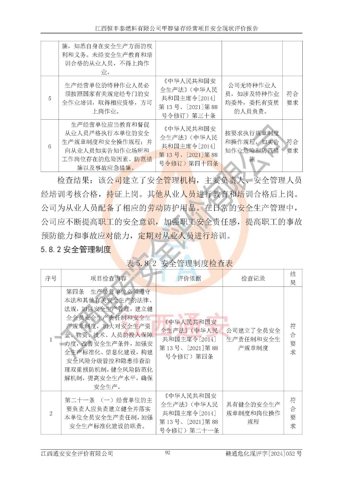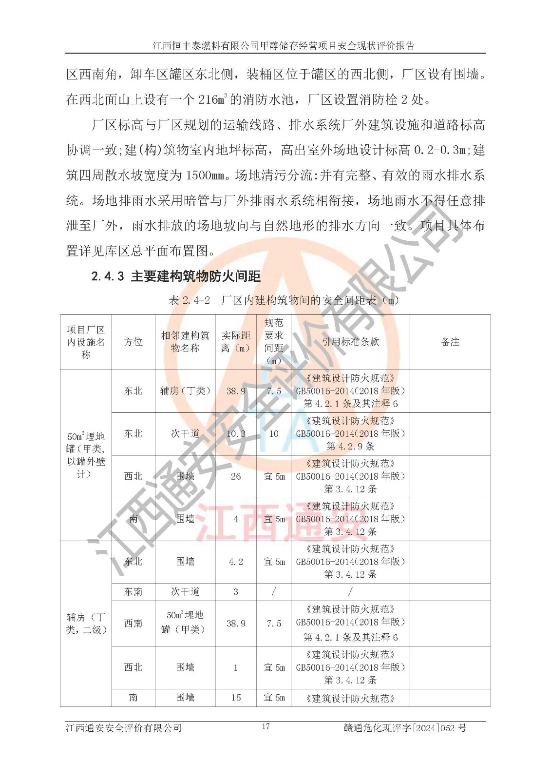 一、安全状况综合评述 通过对江西恒丰泰燃料有限公司甲醇储存经营项目的危险、有害因素辨识和定性、定量评价结果如下∶ 1、主要危险、危害因素辨识结果 项目在生产过程中存在的主要危险有:火灾爆炸、中毒窒息、触电、机械伤害、高处坠落、物体打击、**伤害、淹溺、灼烫等,存在的主要危害因素有:化学因素、物理因素(噪声、高温等)等,同时存在人为失误和管理缺陷。应重点防范的主要危险为火灾与爆炸。 2、危险化学品辨识结果 经辨识,该项目涉及的甲醇属于危险化学品,甲醇属于重点监管的危险化学品和特别管控危险化学品,项目不涉及监控化学品、易制毒化学品、易制爆危险化学品、剧毒化学品和高毒物品等危险化学品。 3、危险化学品重大危险源辨识结果 根据《危险化学品重大危险源辨识》(GB18218-2018)辨识,江西恒丰泰燃料有限公司甲醇储存经营项目不构成危险化学品重大危险源。 4、重点监管危险化工工艺辨识结果 根据《**安全监管总局关于公布首批重点监管的危险化学品名录的通知》安监总管三[2011] 95号、《**安全监管总局关于公布第二批重点监管危险化学品名录的通知》安监总管三[2013] 12号进行辨识,本项目不涉及重点监管的危险化工工艺。 5、作业条件危险性分析结果: 甲醇罐区卸车作业、装桶作业、检维修作业等单元危险程度均为“一般危险,需要注意”或“稍有危险,可以接受”级别。作业条件相对安全。 6、危险度评价结果: 甲醇储罐区属中度危险。 7、采用检查表评价法对项目外部安全条件、总图运输、危险化学品储运设施、采取的防火防爆措施、常规安全防护设施、“两重点一重大”安全措施及安全管理进行定性评价,评价结果如下: (1)该项目选址符合城乡总体规划和安全要求,甲醇经营和储存场所与库外建构筑物的距离符合有关标准、规范的要求。外部安全距离内无GB36894-2018中第3.1条所列的防护目标。 (2)总图布置分区明确,布局合理,满足规范要求。 (3)该项目无**明令淘汰的工艺,设备、设施与工艺条件、内部介质相适应,储罐的附件经整改后符合安全设施设计和规范的要求。 (4)该项目消防安全设施设置符合规范要求。 (5)该项目电气安全设施能满足安全要求,按要求设置了防雷接地设施,并经检测合格。防火防爆设施、液位监测措施、甲醇防泄漏设施、电气防爆措施等安全防护设施符合**法律法规、标准规范的要求。 (6)该项目公用工程能够满足安全经营的基本需要,符合安全经营的条件。 (7)该项目不涉及重大生产安全事故隐患,安全生产条件符合要求。 (8)公司成立了安全生产**小组,配备了安全管理人员,制定了安全管理制度、操作规程和事故应急预案,公司的安全管理机构工作有力,安全经营管理处于正常有序开展范围。 四、评价结论 江西恒丰泰燃料有限公司甲醇储存经营项目的安全设施及安全管理符合法律、法规、标准的要求,安全风险是受控制的,其风险程度是可以接受的,满足项目危险化学品储存和经营的安全条件。 |