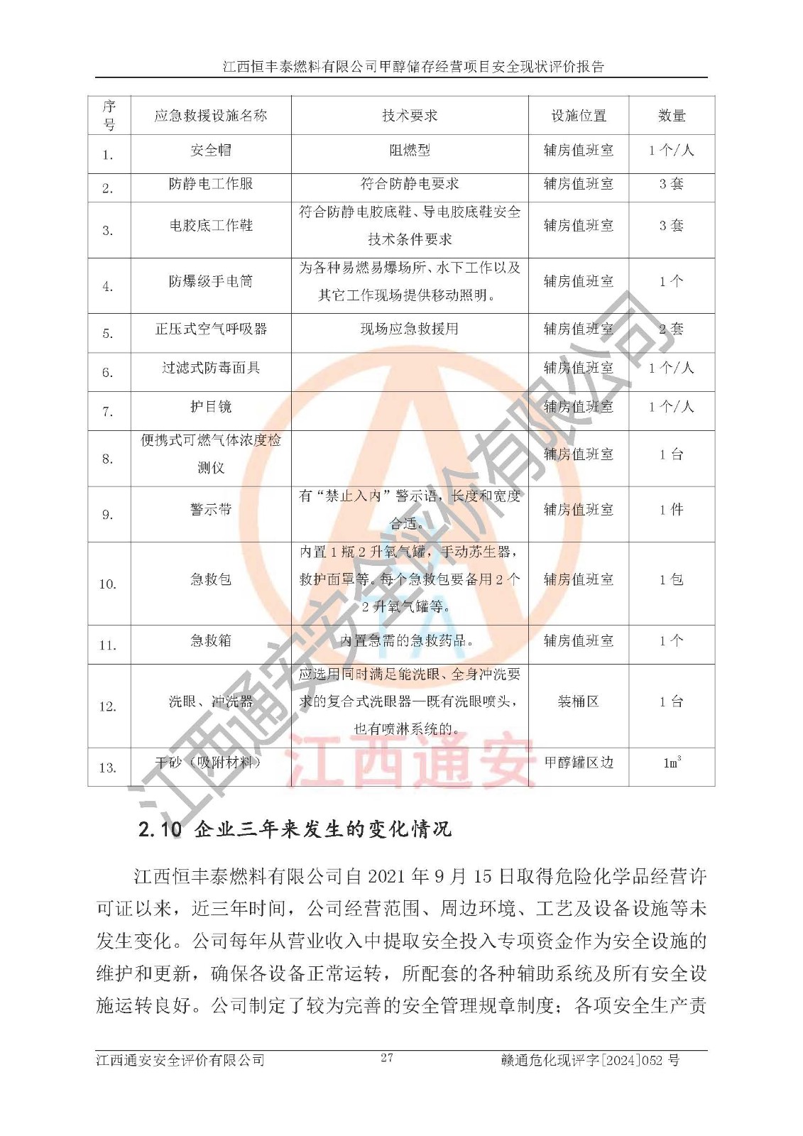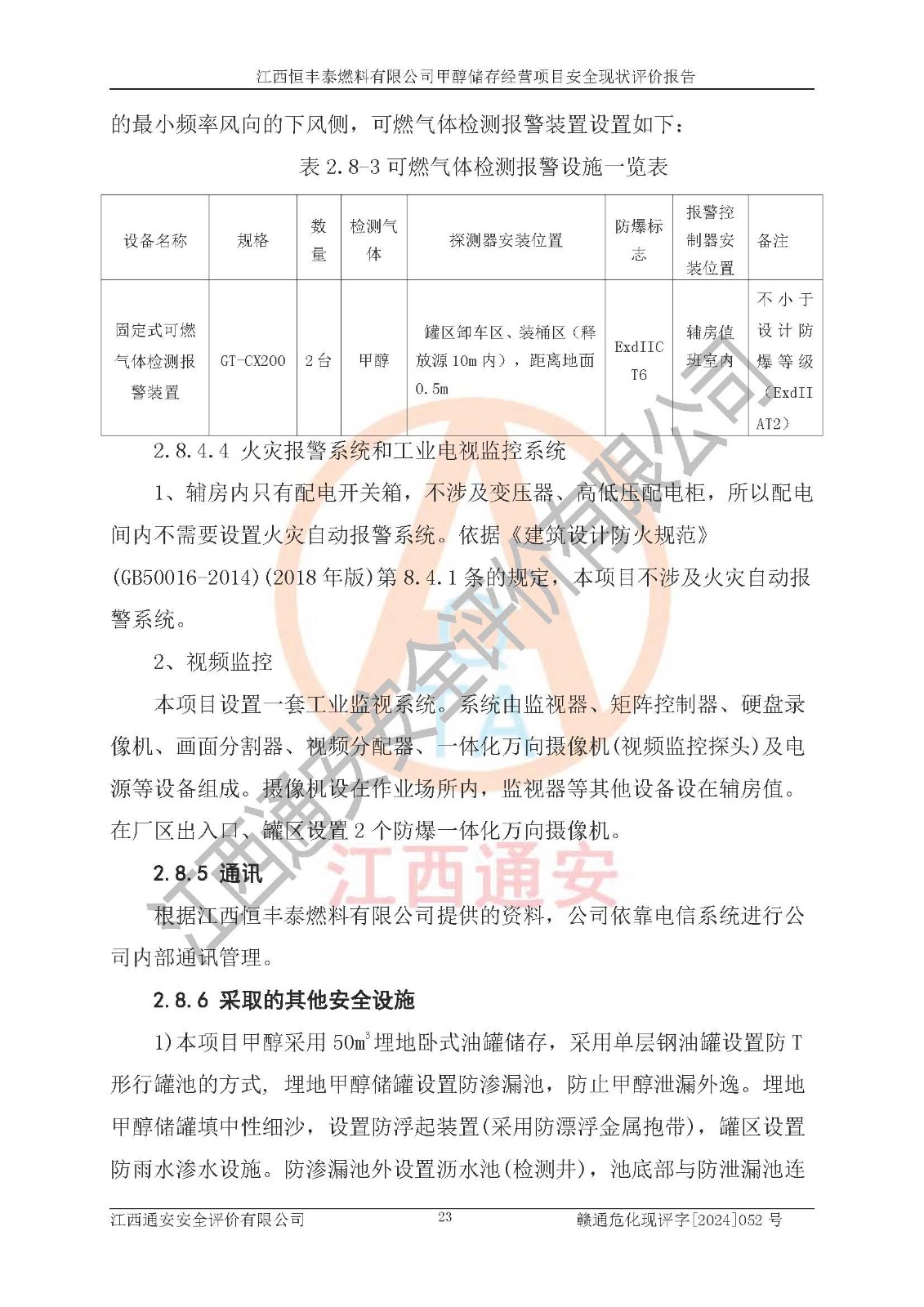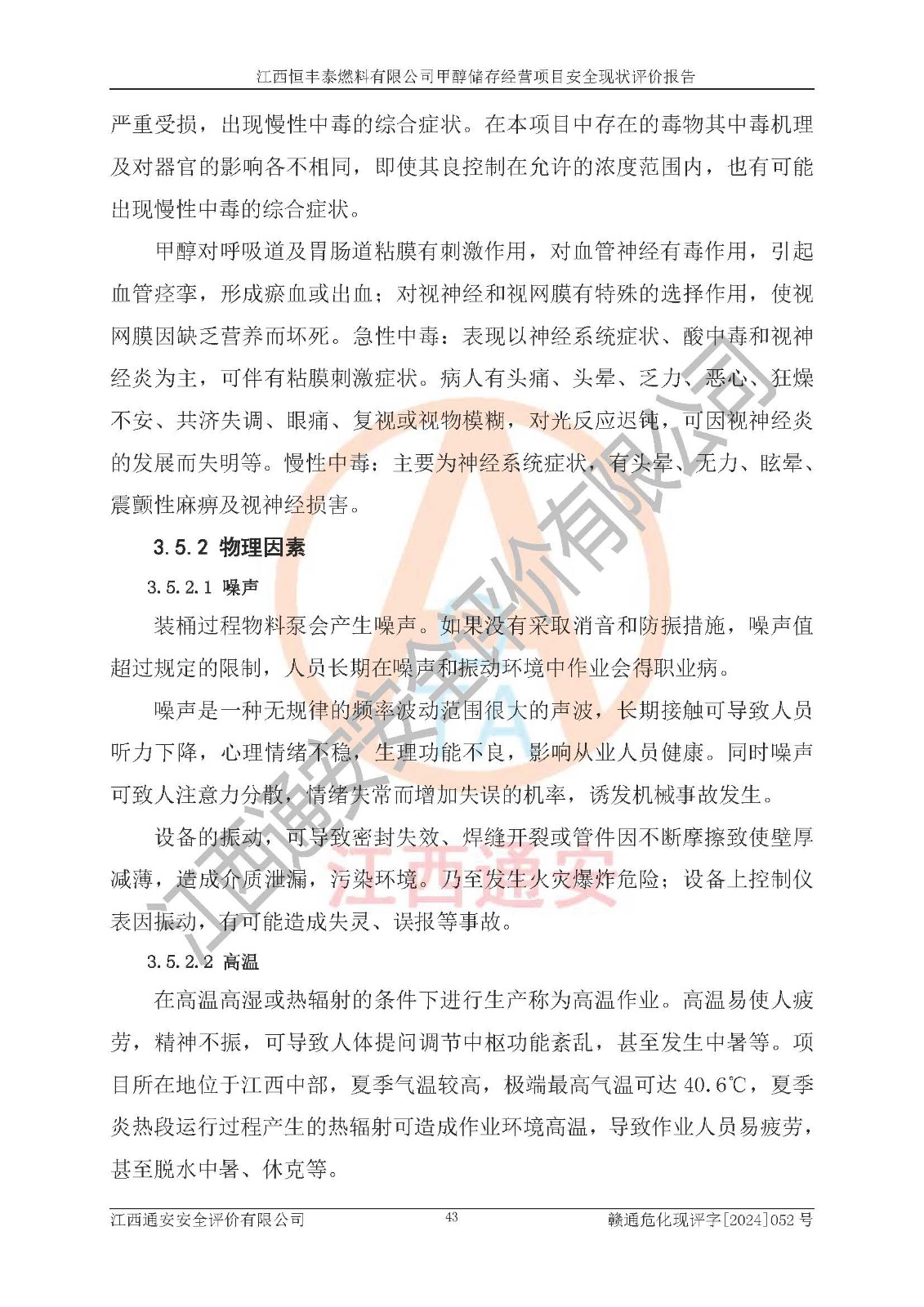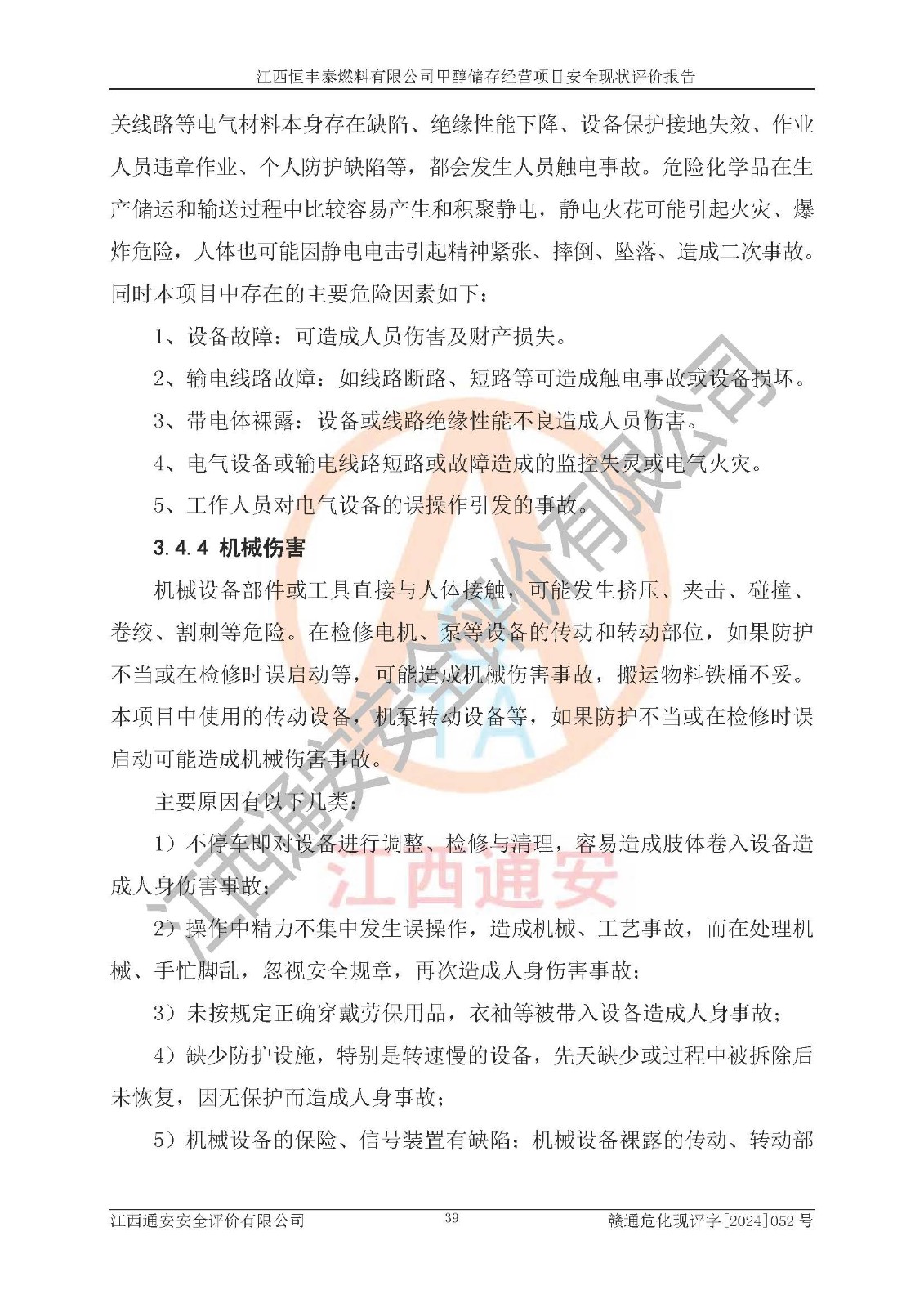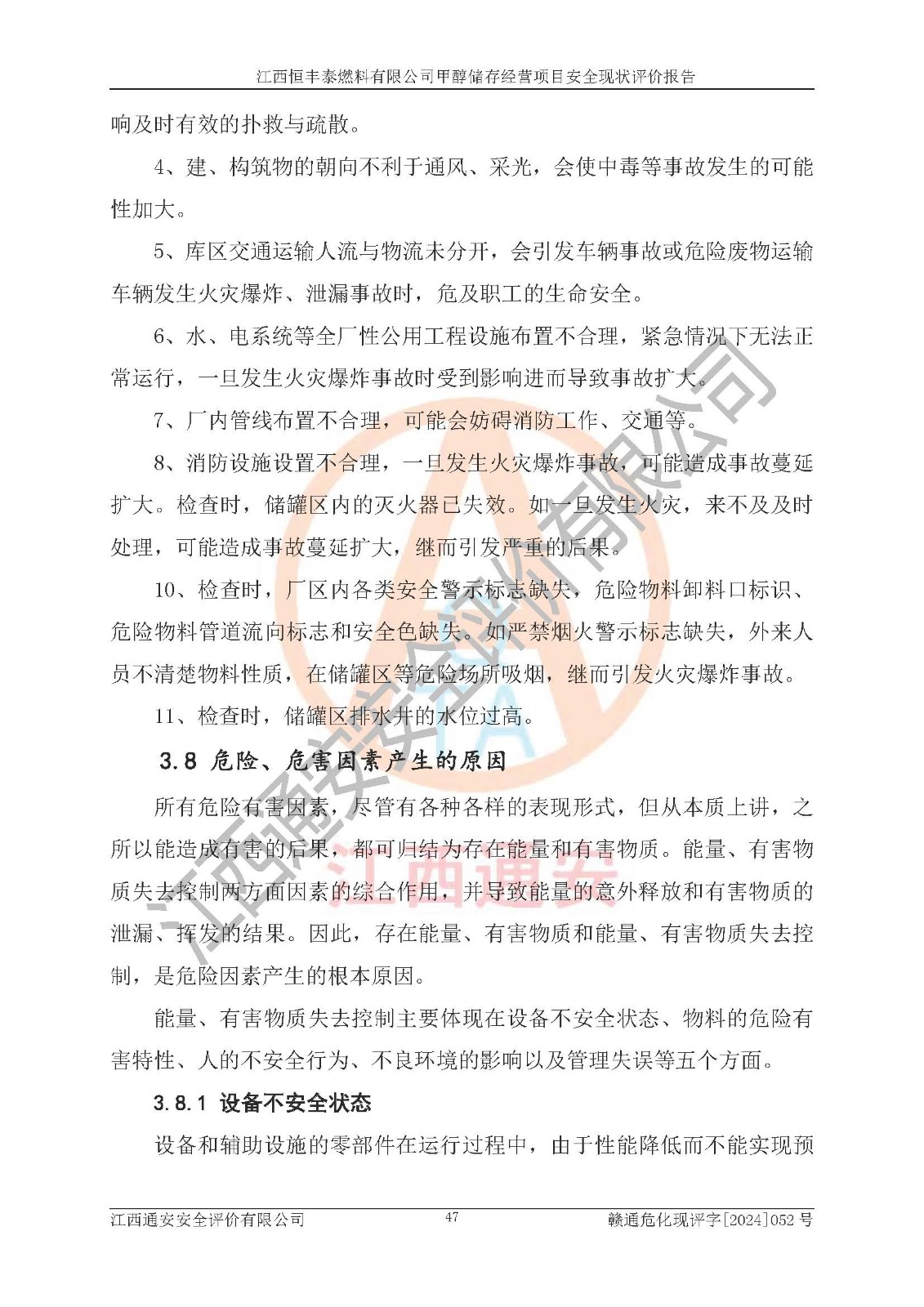 一、安全状况综合评述 通过对江西恒丰泰燃料有限公司甲醇储存经营项目的危险、有害因素辨识和定性、定量评价结果如下∶ 1、主要危险、危害因素辨识结果 项目在生产过程中存在的主要危险有:火灾爆炸、中毒窒息、触电、机械伤害、高处坠落、物体打击、**伤害、淹溺、灼烫等,存在的主要危害因素有:化学因素、物理因素(噪声、高温等)等,同时存在人为失误和管理缺陷。应重点防范的主要危险为火灾与爆炸。 2、危险化学品辨识结果 经辨识,该项目涉及的甲醇属于危险化学品,甲醇属于重点监管的危险化学品和特别管控危险化学品,项目不涉及监控化学品、易制毒化学品、易制爆危险化学品、剧毒化学品和高毒物品等危险化学品。 3、危险化学品重大危险源辨识结果 根据《危险化学品重大危险源辨识》(GB18218-2018)辨识,江西恒丰泰燃料有限公司甲醇储存经营项目不构成危险化学品重大危险源。 4、重点监管危险化工工艺辨识结果 根据《**安全监管总局关于公布首批重点监管的危险化学品名录的通知》安监总管三[2011] 95号、《**安全监管总局关于公布第二批重点监管危险化学品名录的通知》安监总管三[2013] 12号进行辨识,本项目不涉及重点监管的危险化工工艺。 5、作业条件危险性分析结果: 甲醇罐区卸车作业、装桶作业、检维修作业等单元危险程度均为“一般危险,需要注意”或“稍有危险,可以接受”级别。作业条件相对安全。 6、危险度评价结果: 甲醇储罐区属中度危险。 7、采用检查表评价法对项目外部安全条件、总图运输、危险化学品储运设施、采取的防火防爆措施、常规安全防护设施、“两重点一重大”安全措施及安全管理进行定性评价,评价结果如下: (1)该项目选址符合城乡总体规划和安全要求,甲醇经营和储存场所与库外建构筑物的距离符合有关标准、规范的要求。外部安全距离内无GB36894-2018中第3.1条所列的防护目标。 (2)总图布置分区明确,布局合理,满足规范要求。 (3)该项目无**明令淘汰的工艺,设备、设施与工艺条件、内部介质相适应,储罐的附件经整改后符合安全设施设计和规范的要求。 (4)该项目消防安全设施设置符合规范要求。 (5)该项目电气安全设施能满足安全要求,按要求设置了防雷接地设施,并经检测合格。防火防爆设施、液位监测措施、甲醇防泄漏设施、电气防爆措施等安全防护设施符合**法律法规、标准规范的要求。 (6)该项目公用工程能够满足安全经营的基本需要,符合安全经营的条件。 (7)该项目不涉及重大生产安全事故隐患,安全生产条件符合要求。 (8)公司成立了安全生产**小组,配备了安全管理人员,制定了安全管理制度、操作规程和事故应急预案,公司的安全管理机构工作有力,安全经营管理处于正常有序开展范围。 四、评价结论 江西恒丰泰燃料有限公司甲醇储存经营项目的安全设施及安全管理符合法律、法规、标准的要求,安全风险是受控制的,其风险程度是可以接受的,满足项目危险化学品储存和经营的安全条件。 |