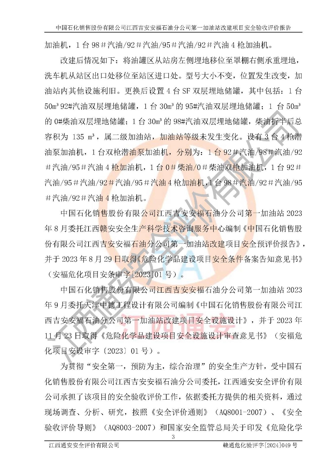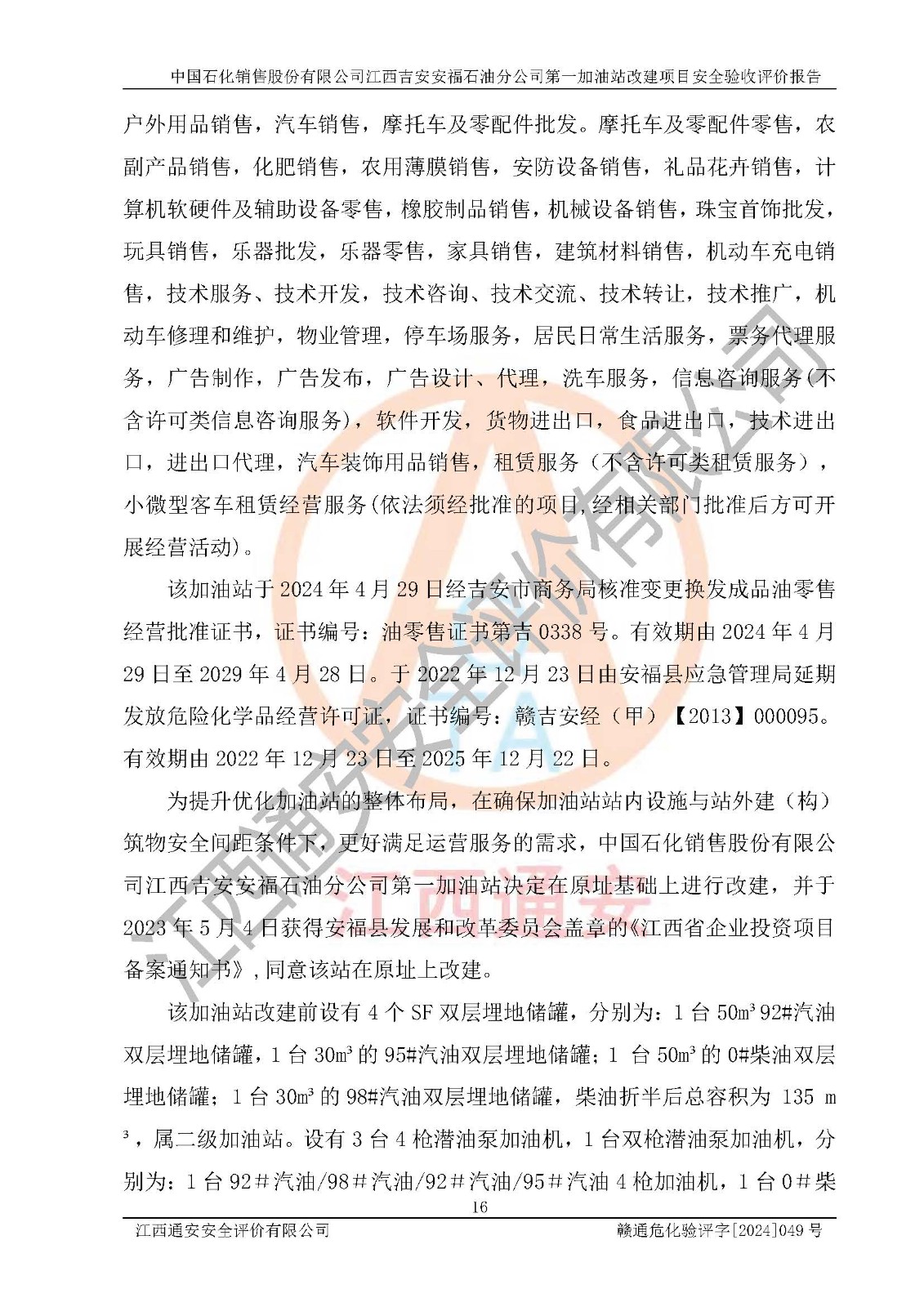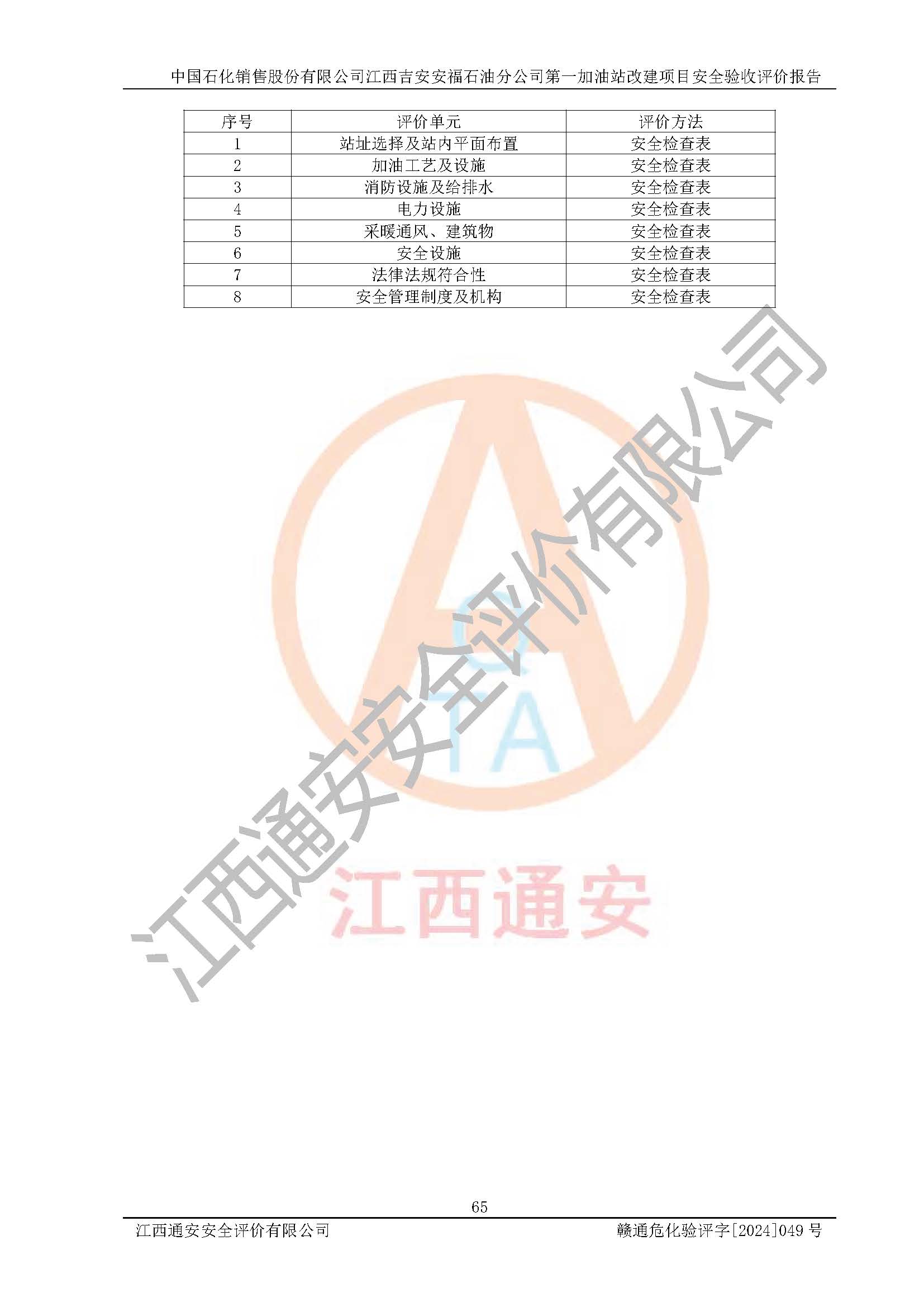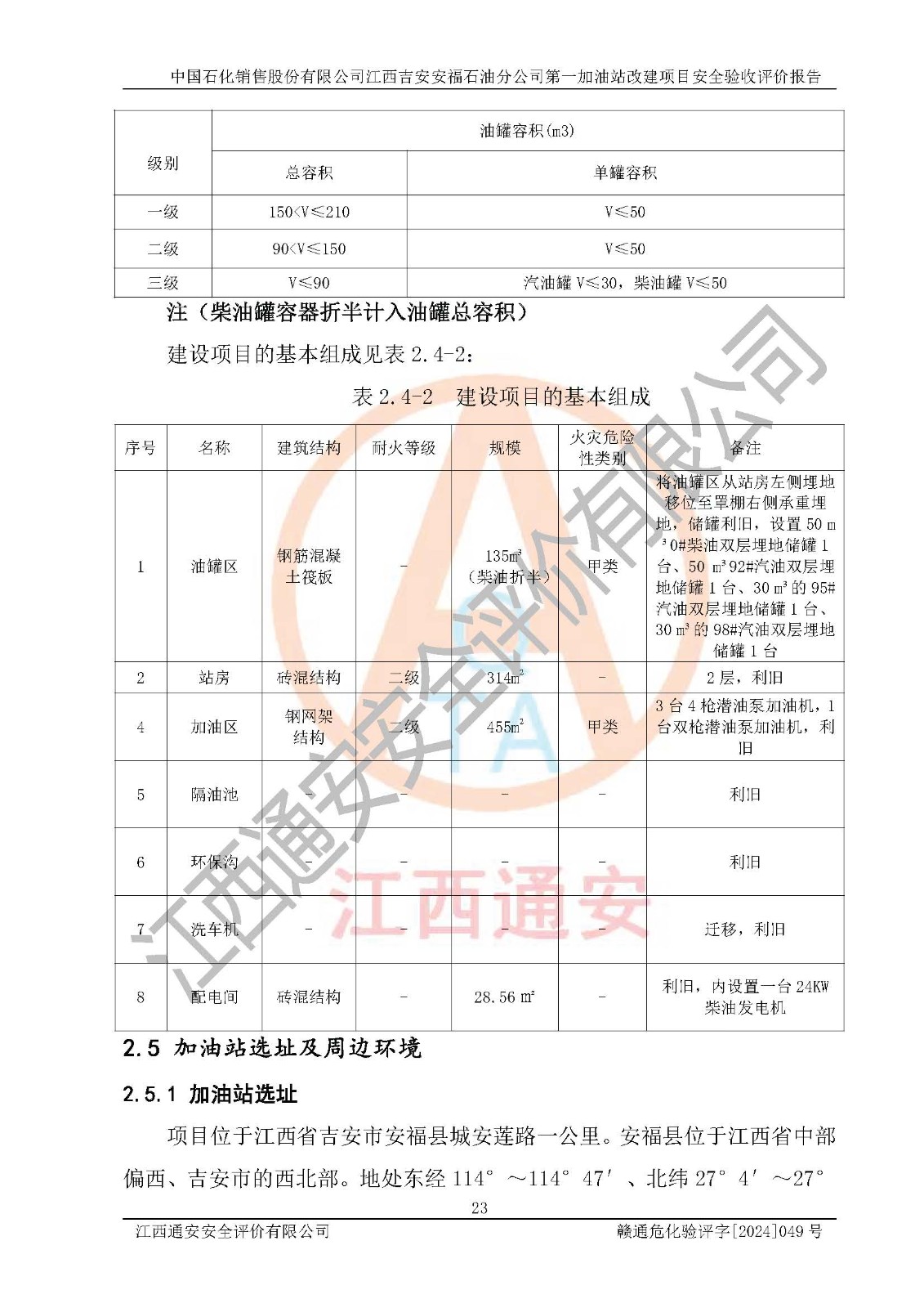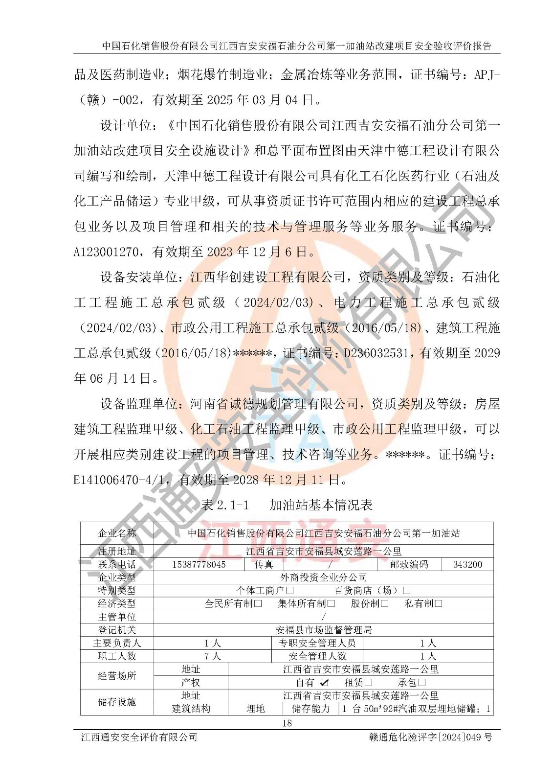 项目名称 | 中国石化销售股份有限公司江西吉安安福石油分公司 **加油站改建项目安全验收评价报告 | ||||