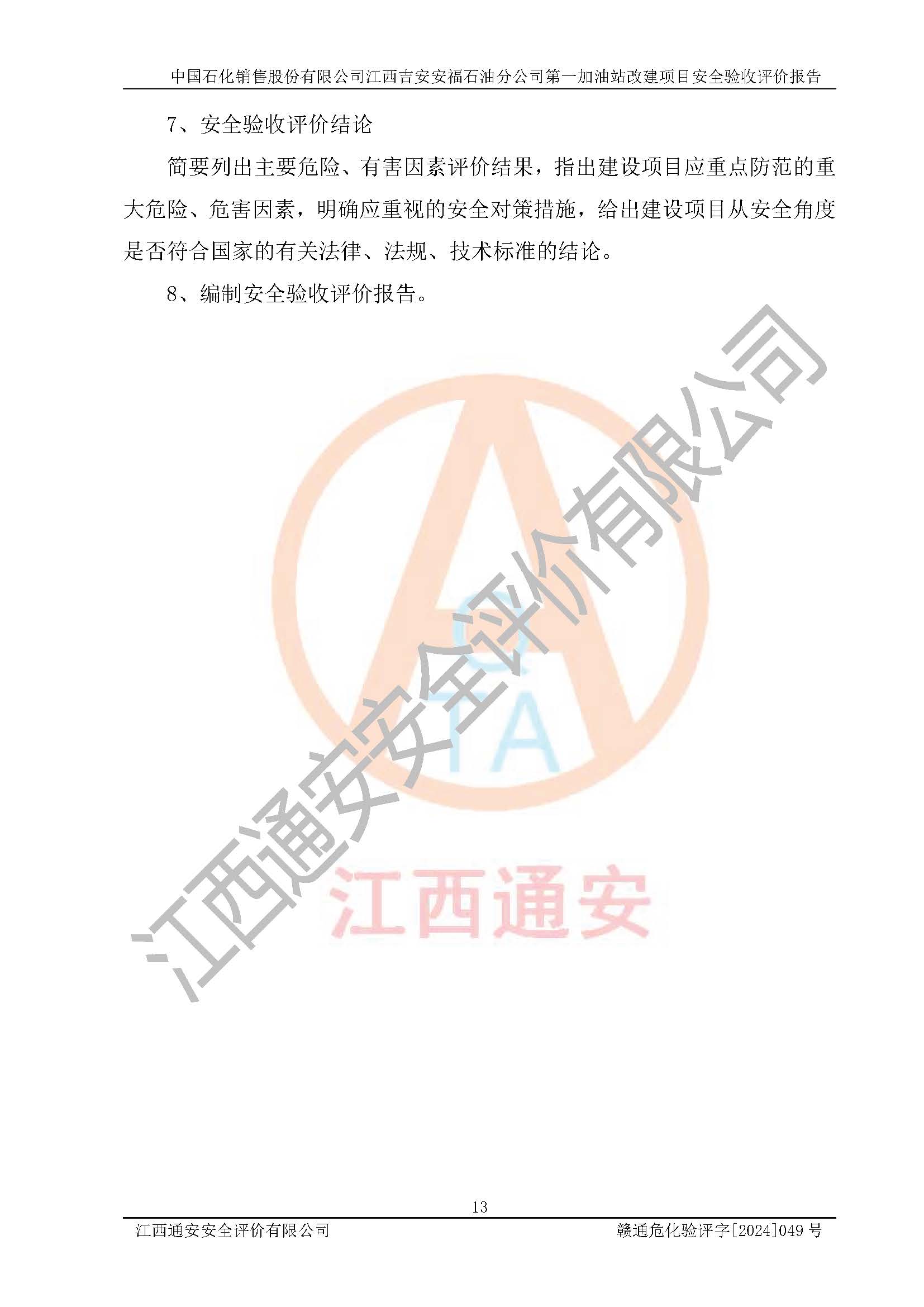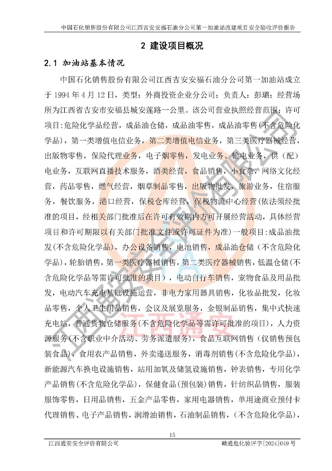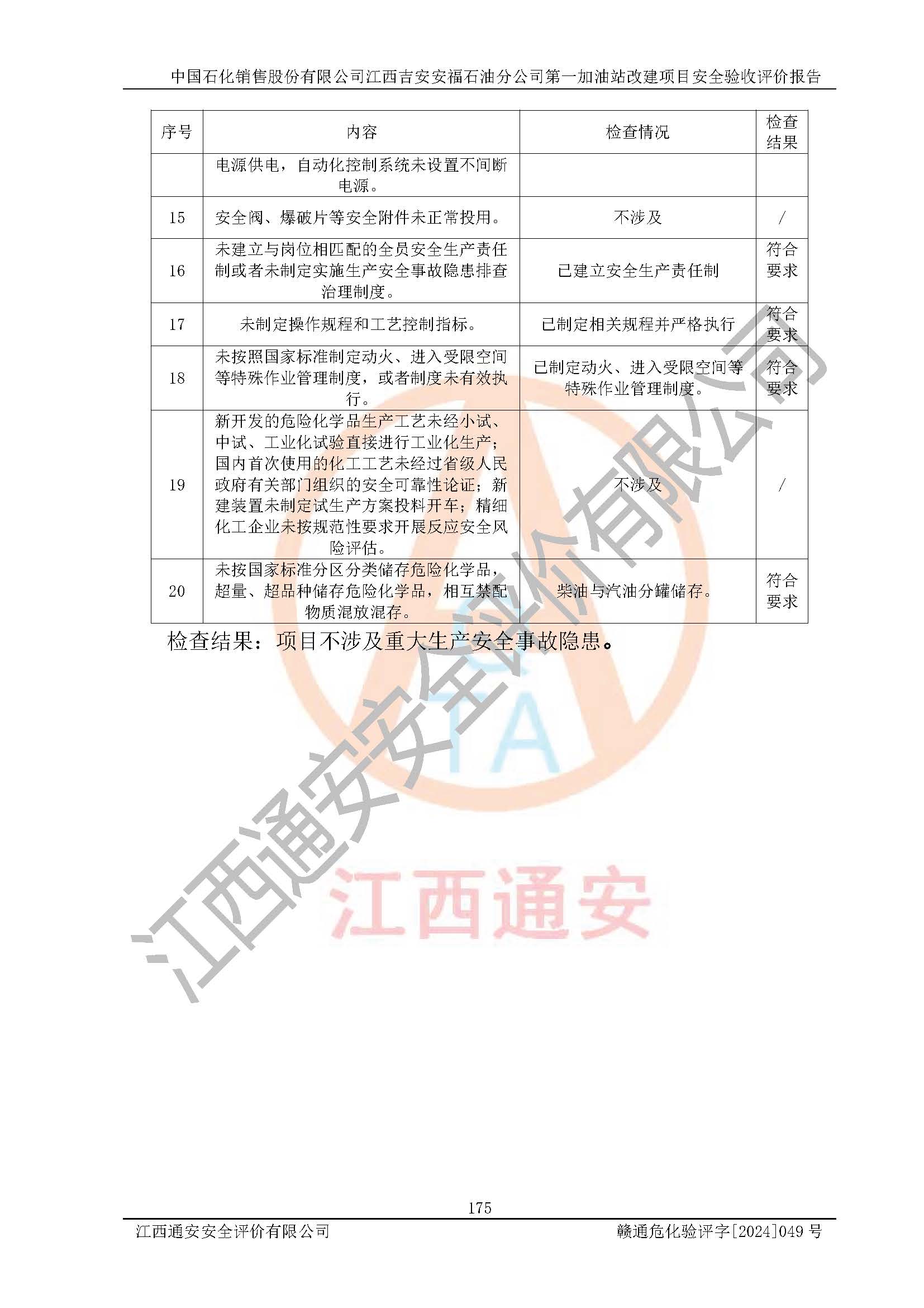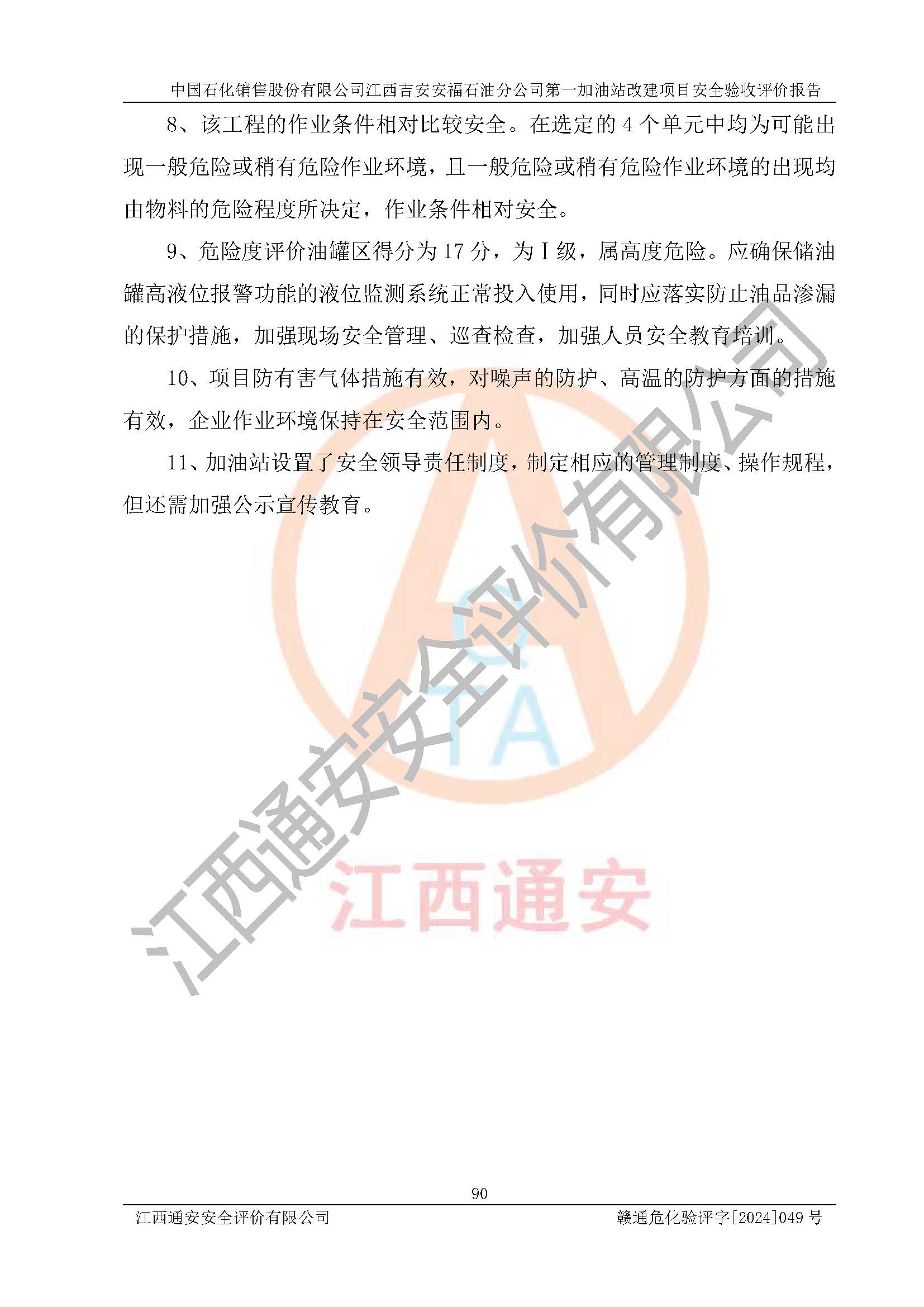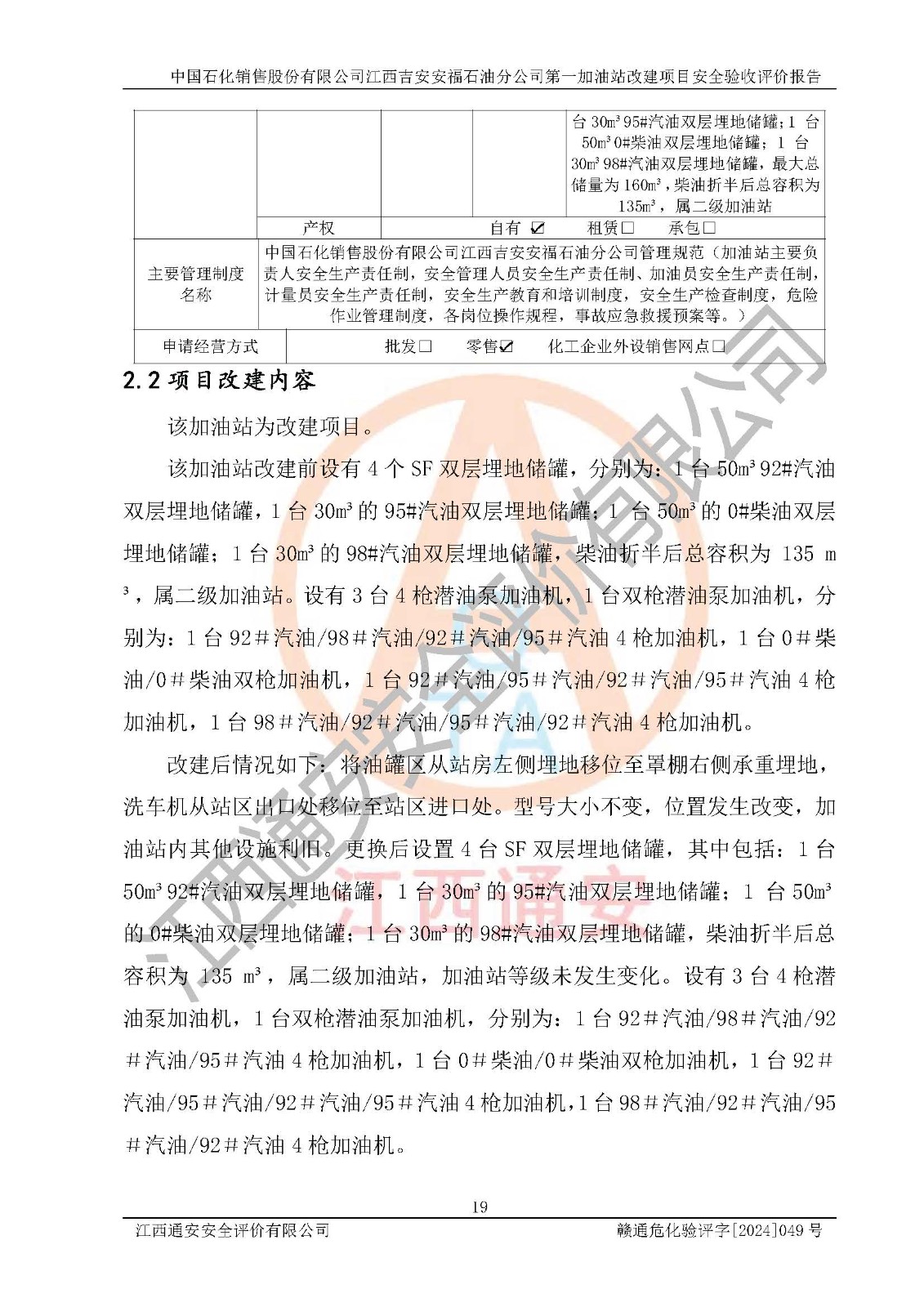 项目名称 | 中国石化销售股份有限公司江西吉安安福石油分公司 **加油站改建项目安全验收评价报告 | ||||