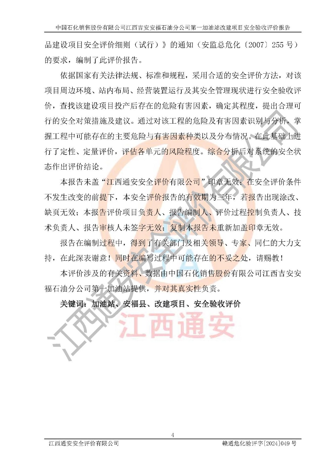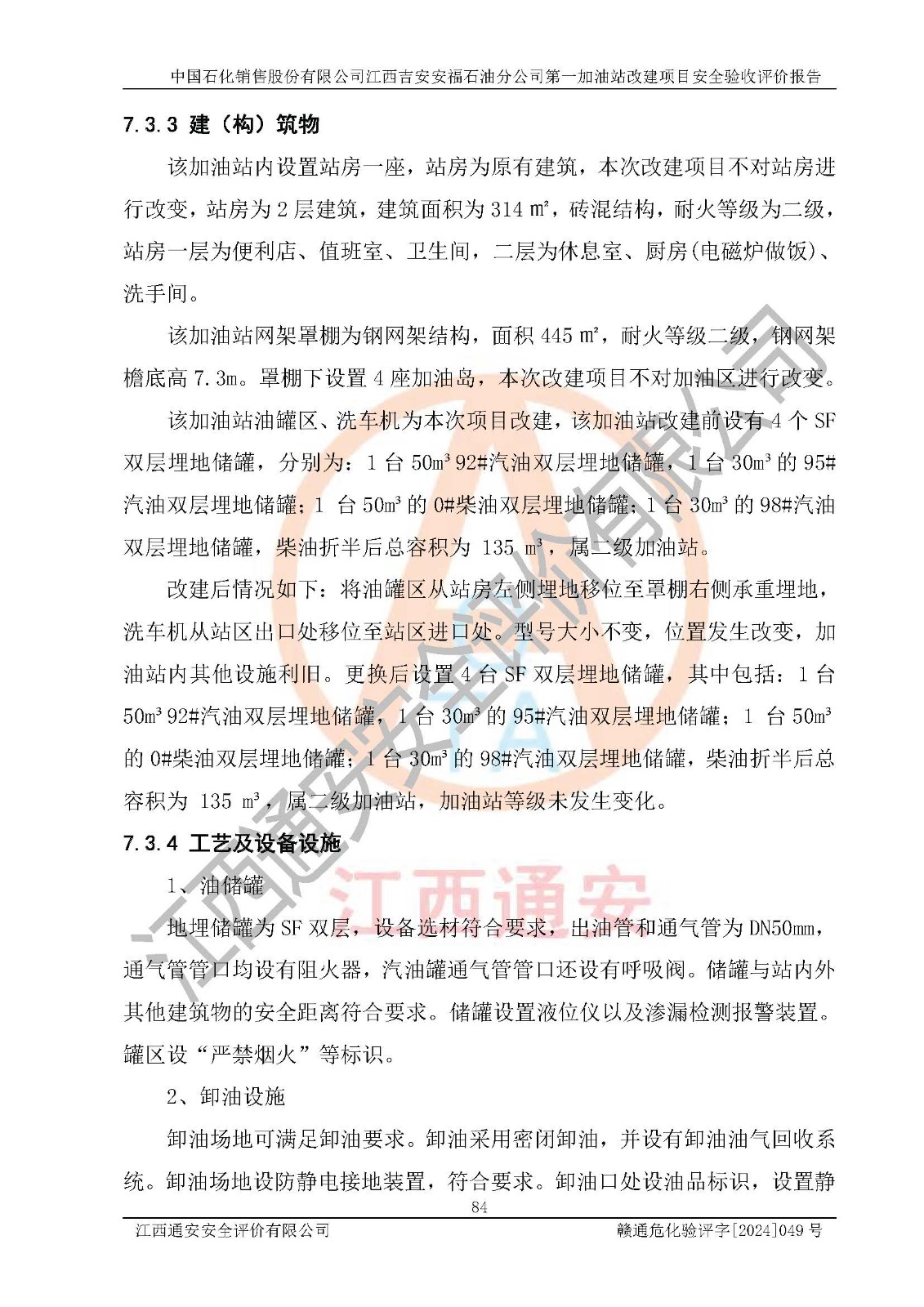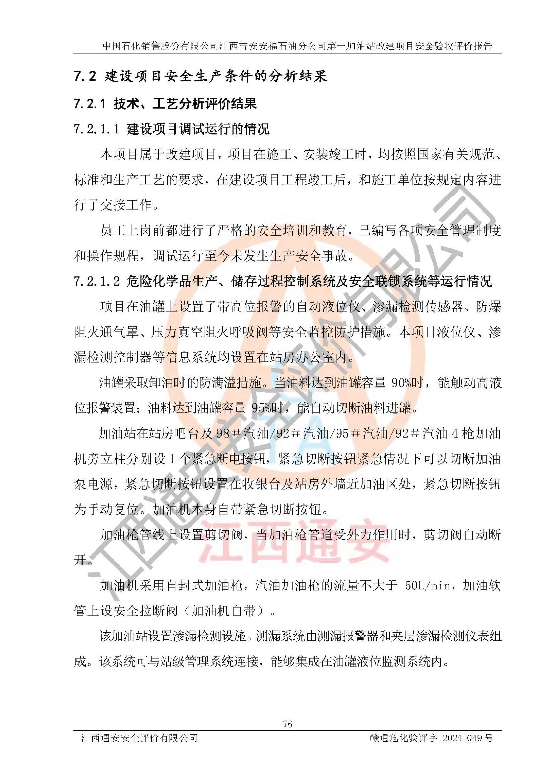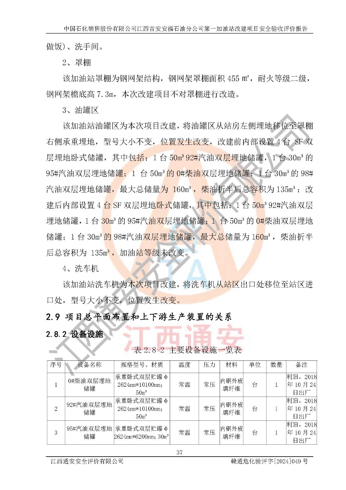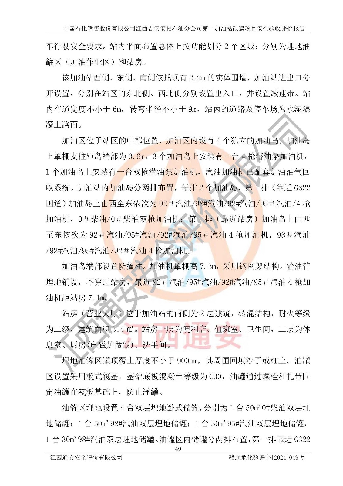 项目名称 | 中国石化销售股份有限公司江西吉安安福石油分公司 **加油站改建项目安全验收评价报告 | ||||