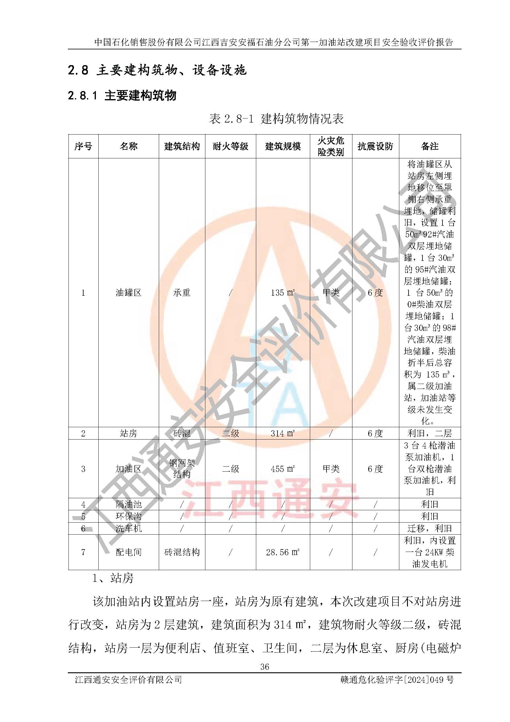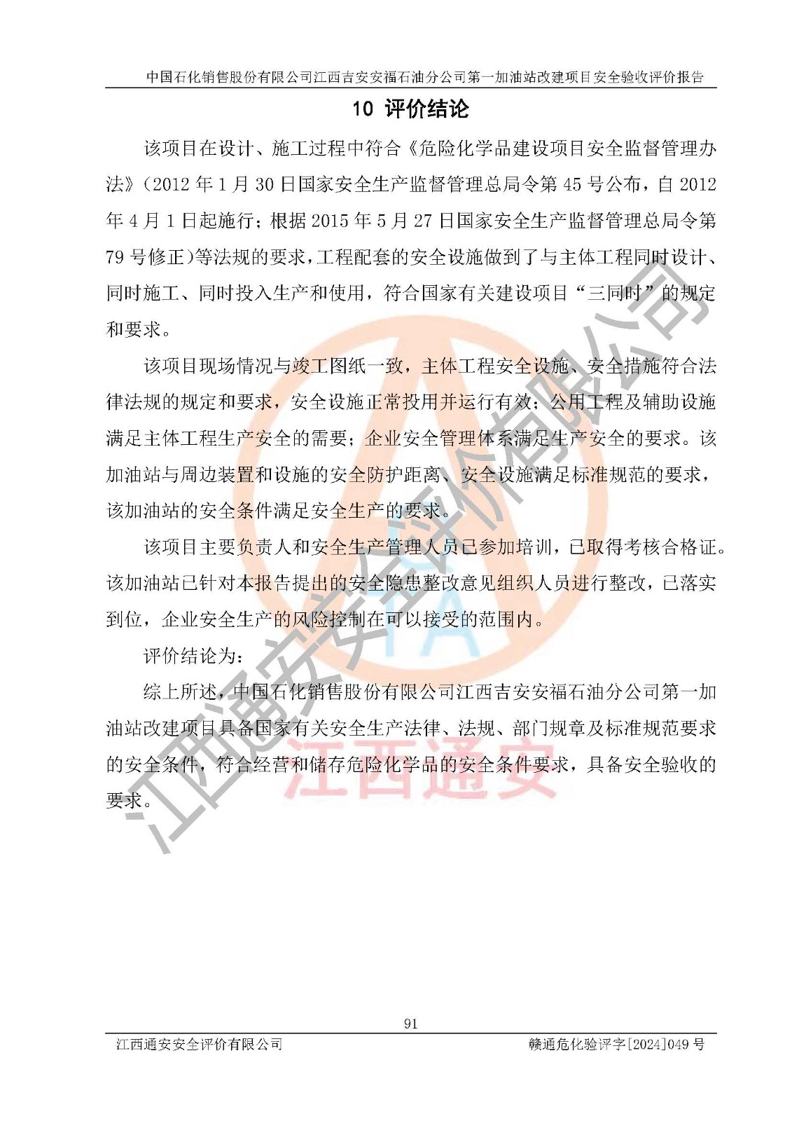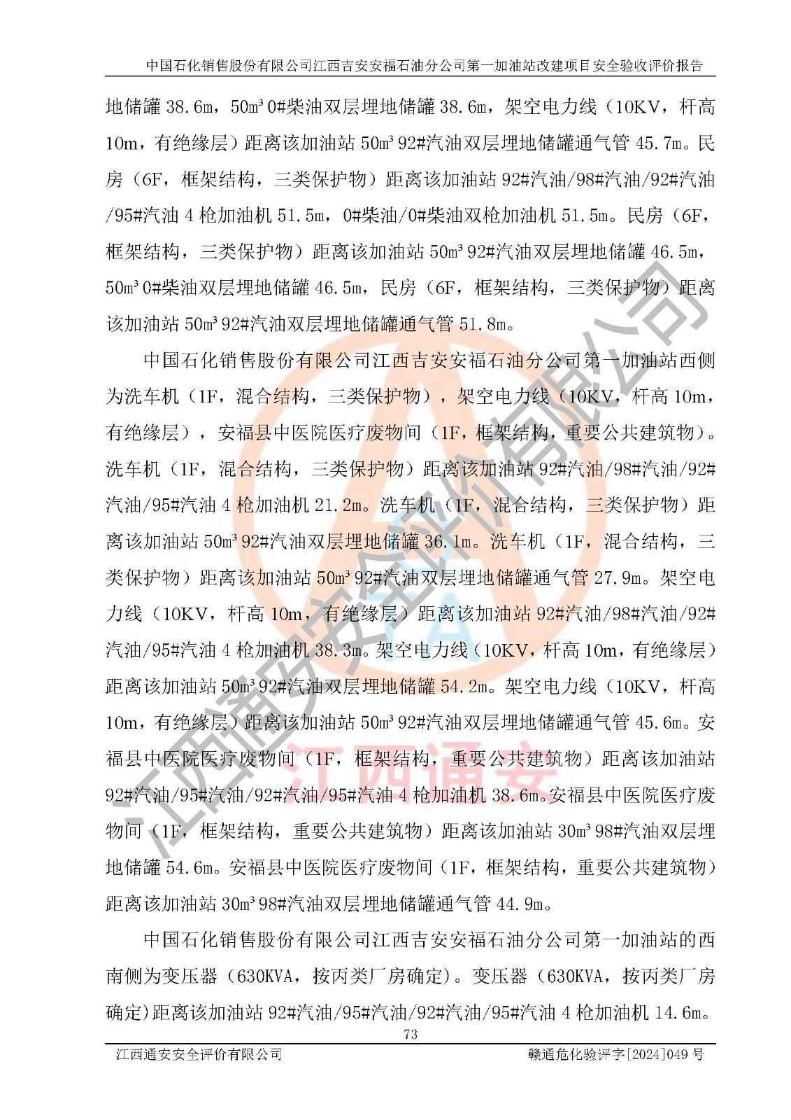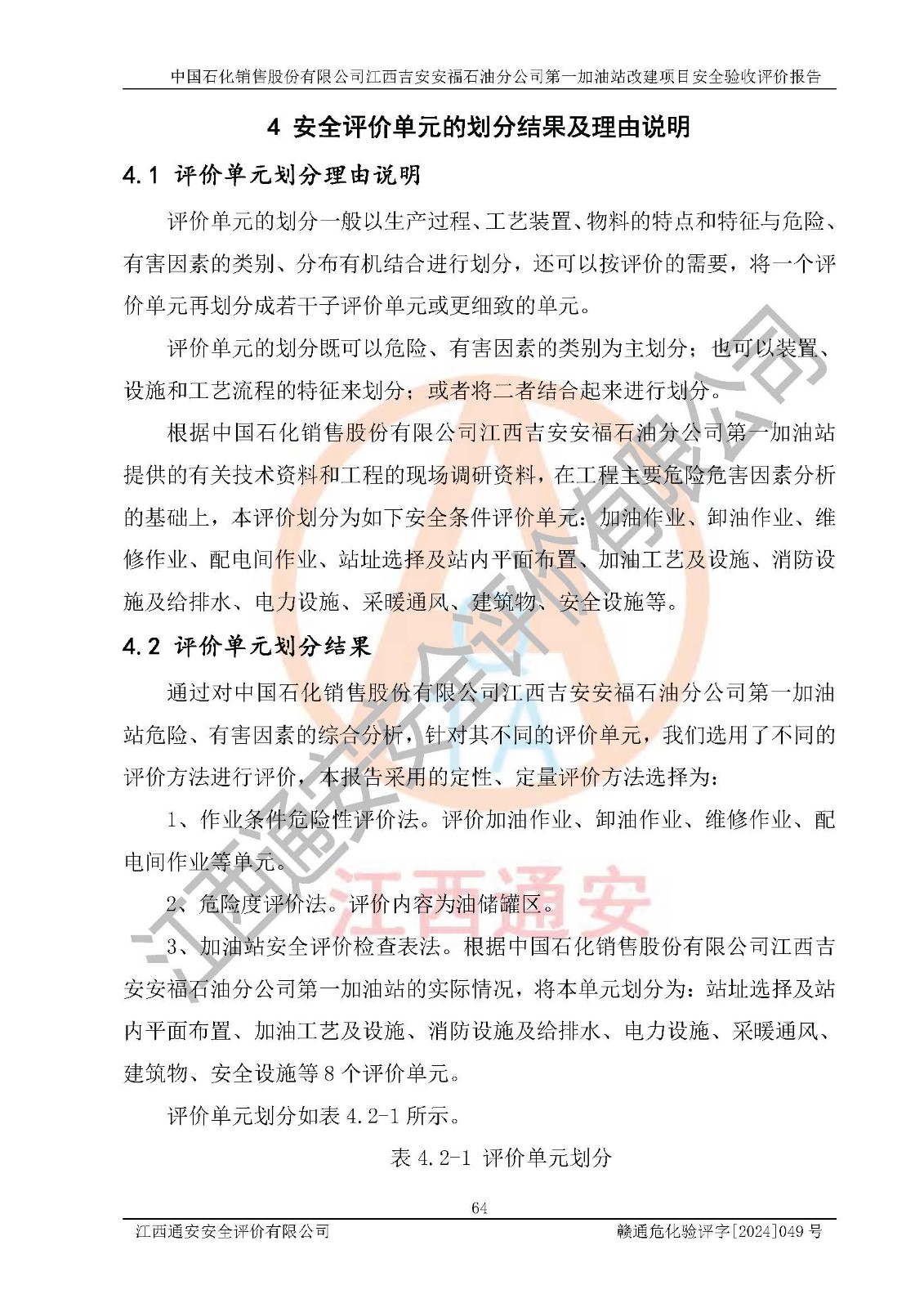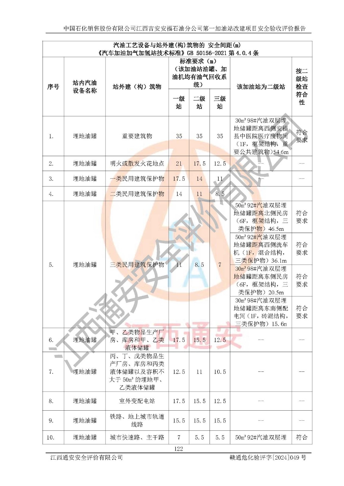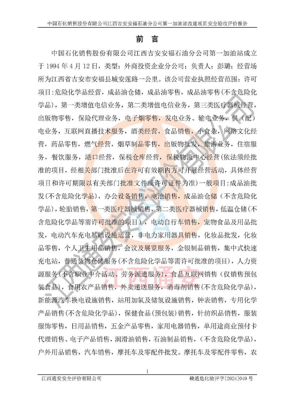 项目名称 | 中国石化销售股份有限公司江西吉安安福石油分公司 **加油站改建项目安全验收评价报告 | ||||