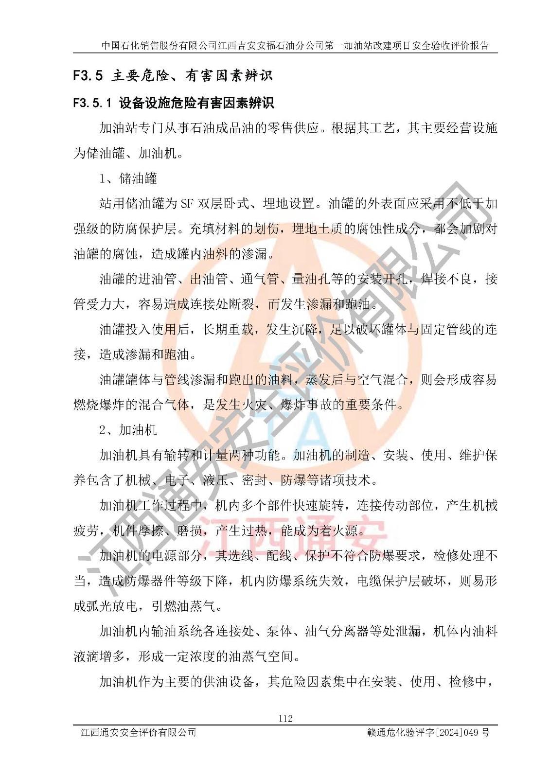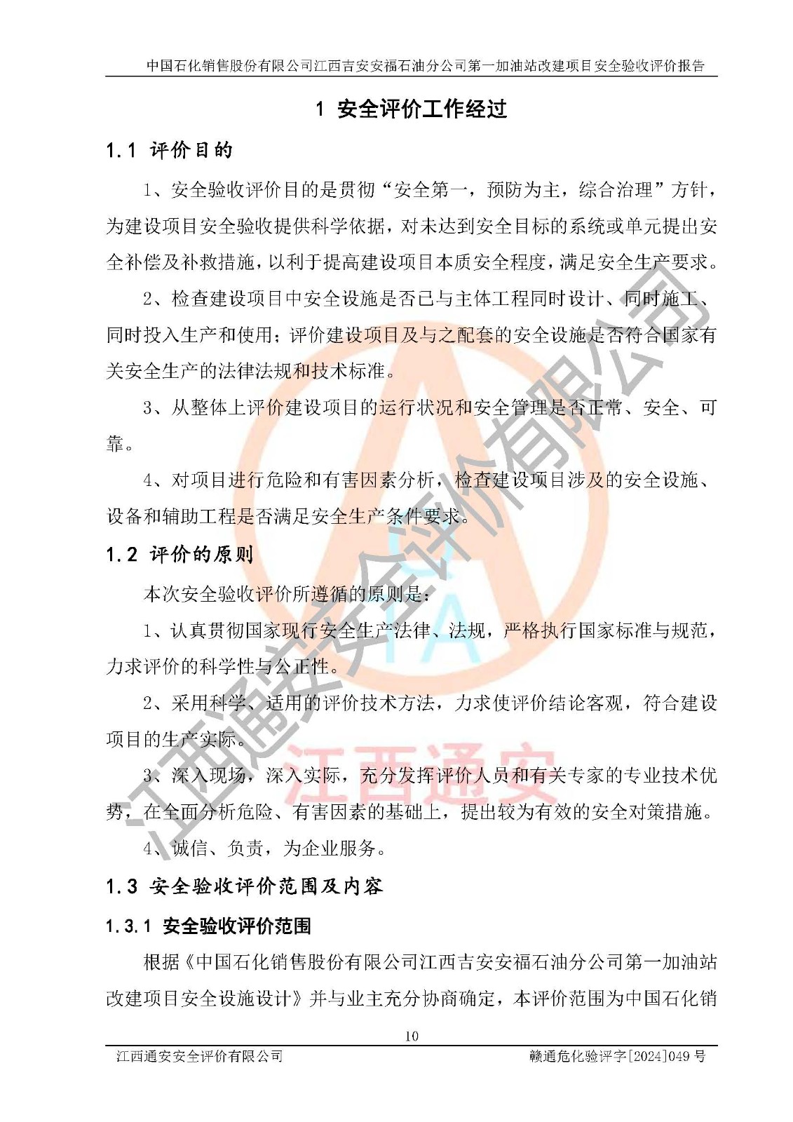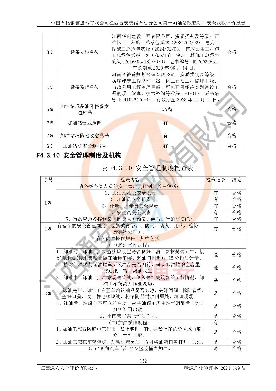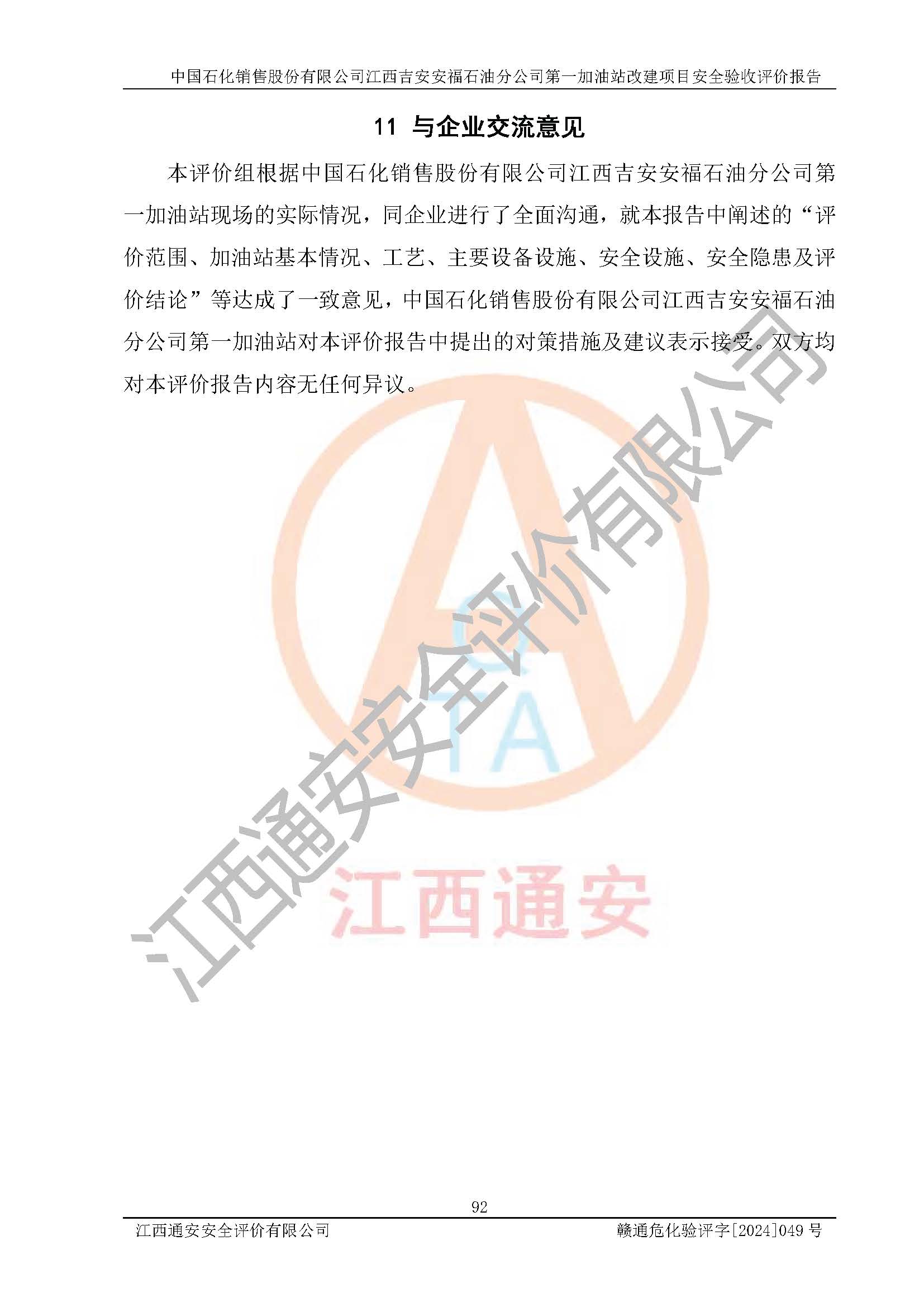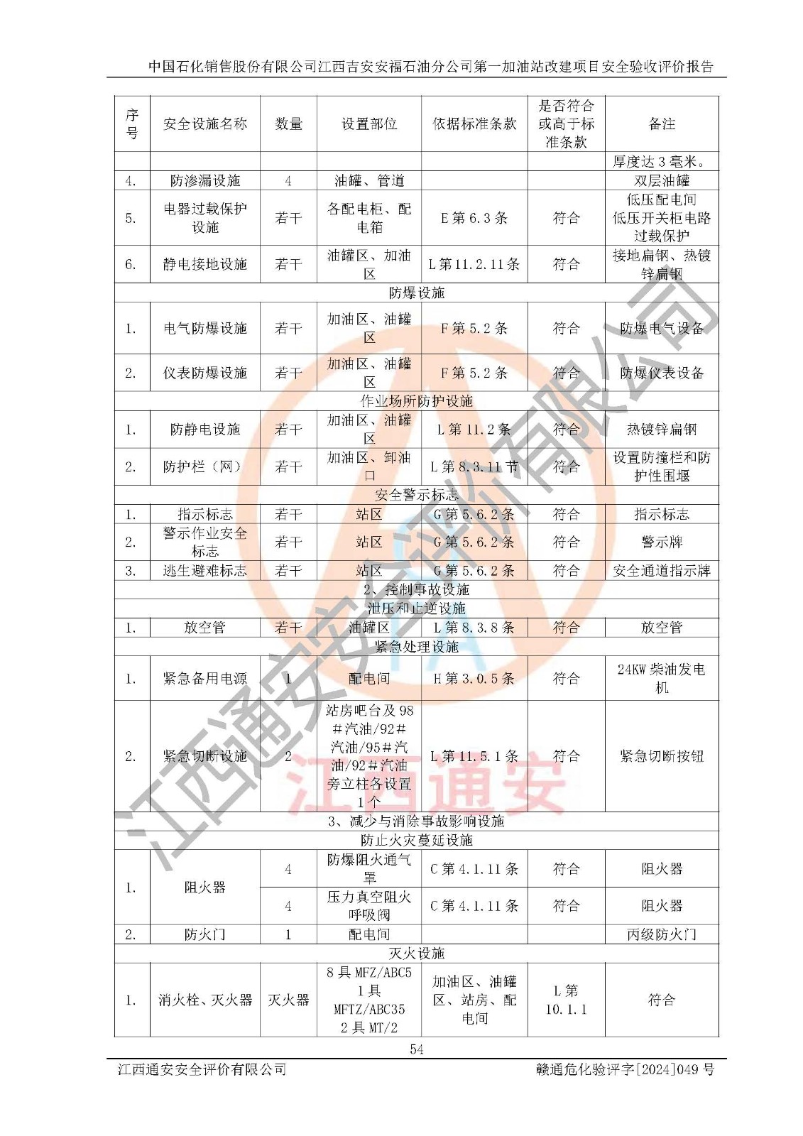 项目名称 | 中国石化销售股份有限公司江西吉安安福石油分公司 **加油站改建项目安全验收评价报告 | ||||