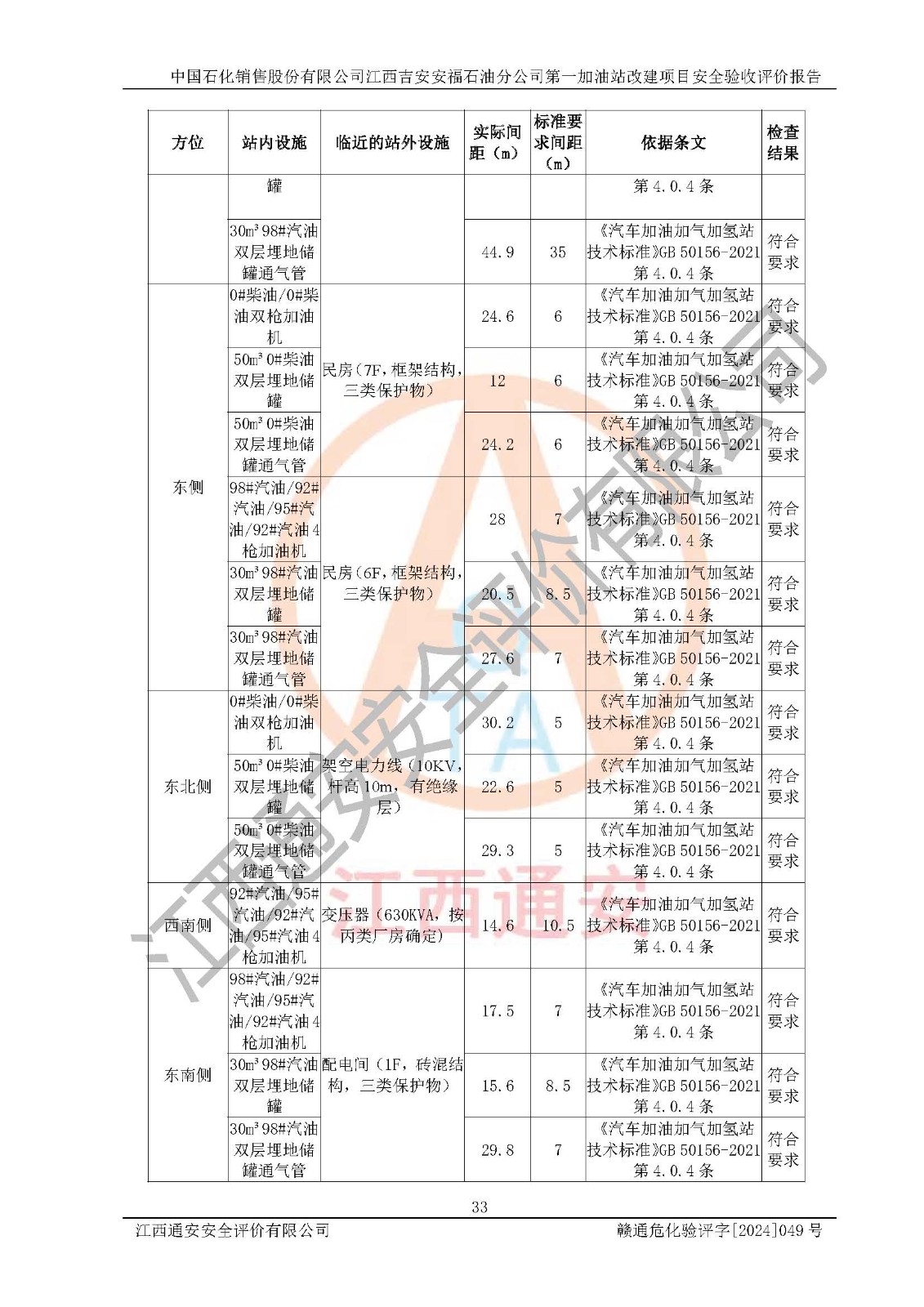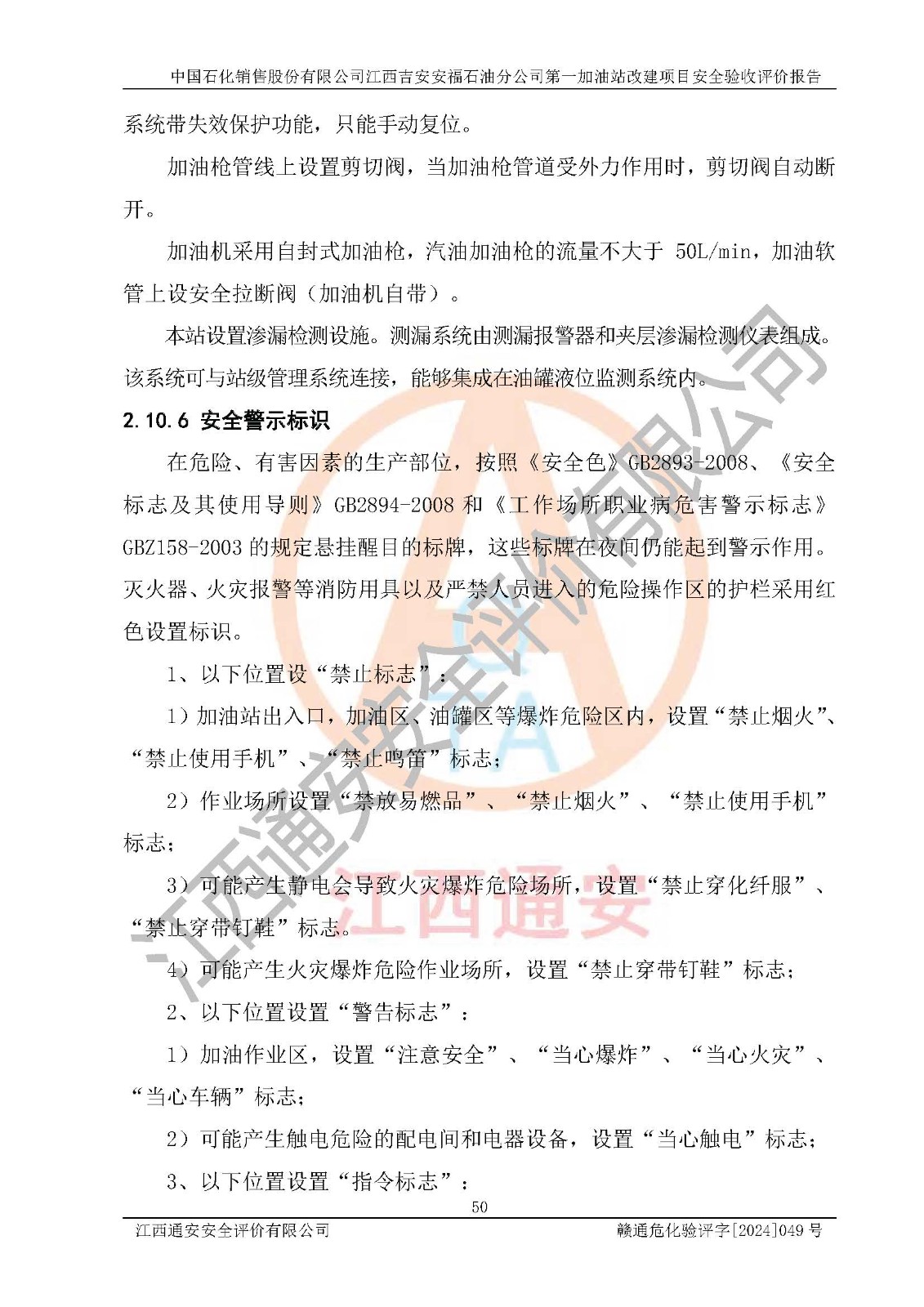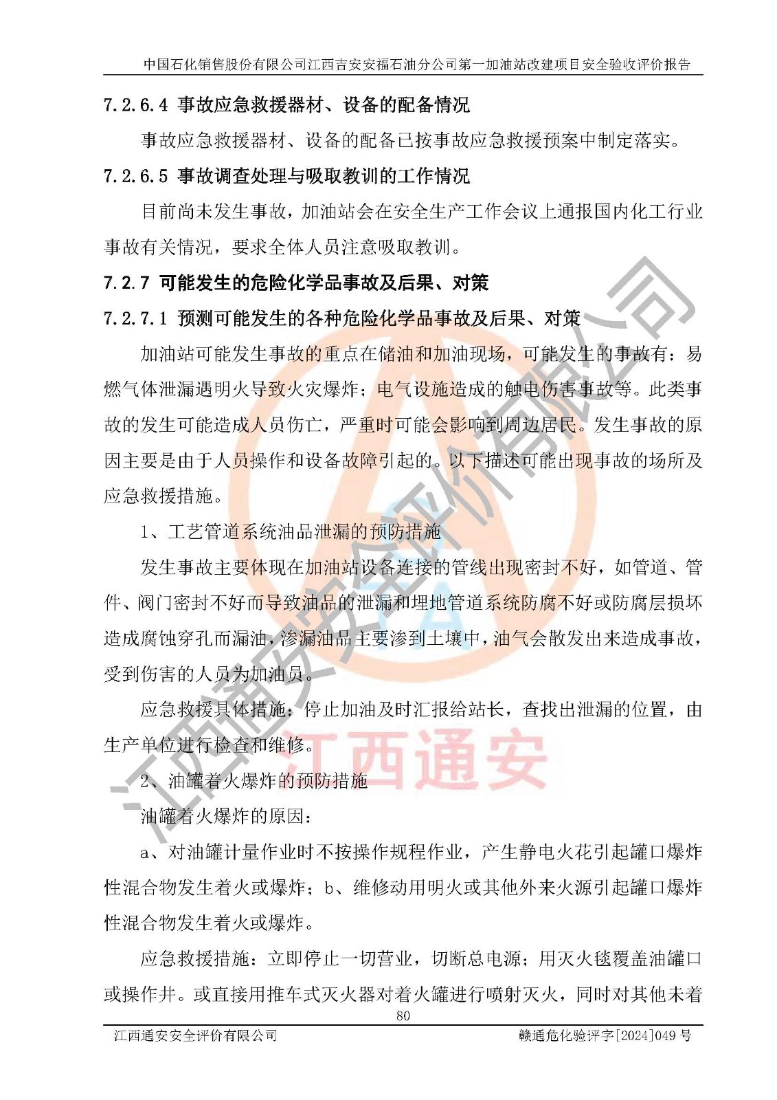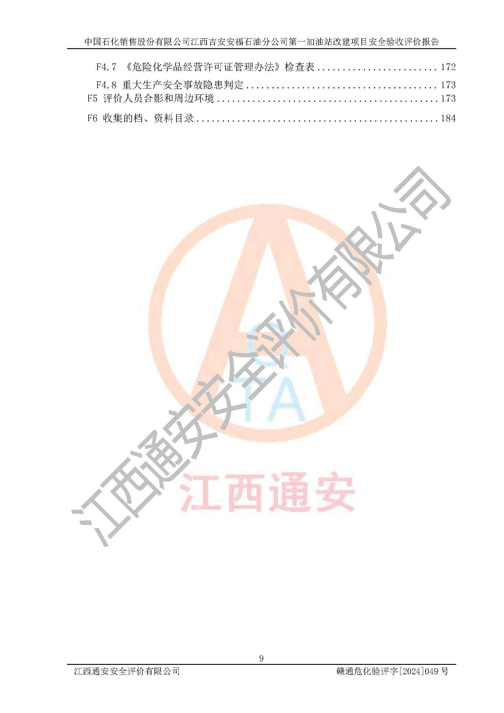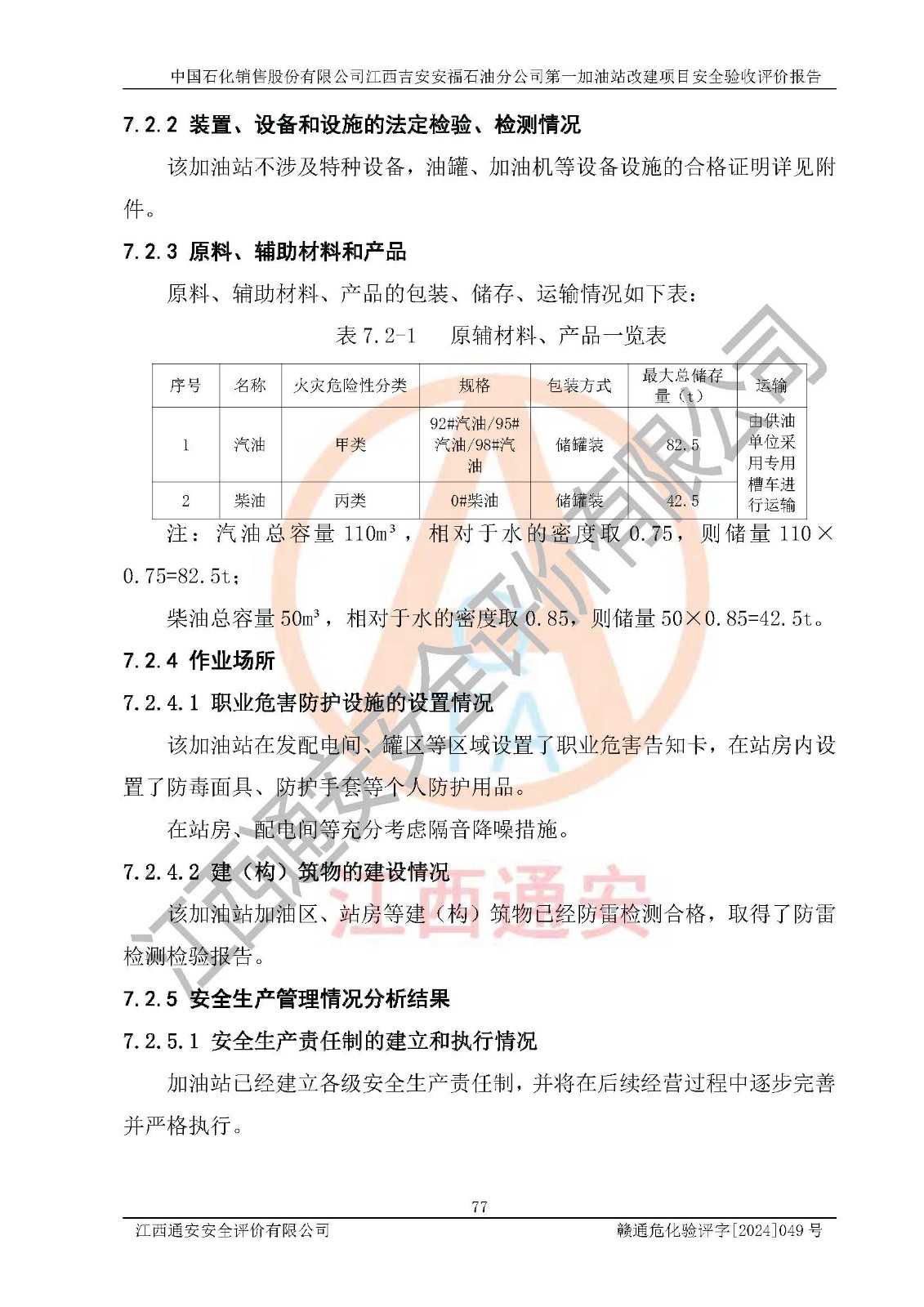 项目名称 | 中国石化销售股份有限公司江西吉安安福石油分公司 **加油站改建项目安全验收评价报告 | ||||