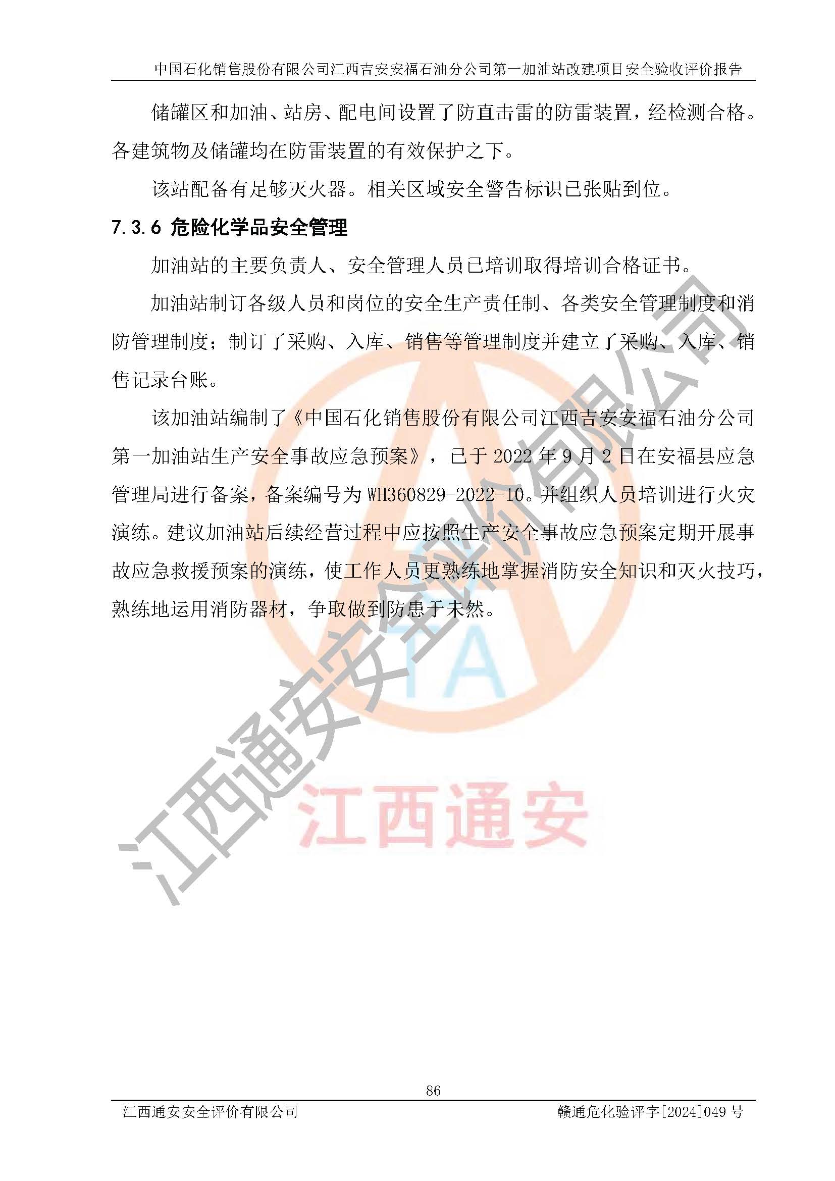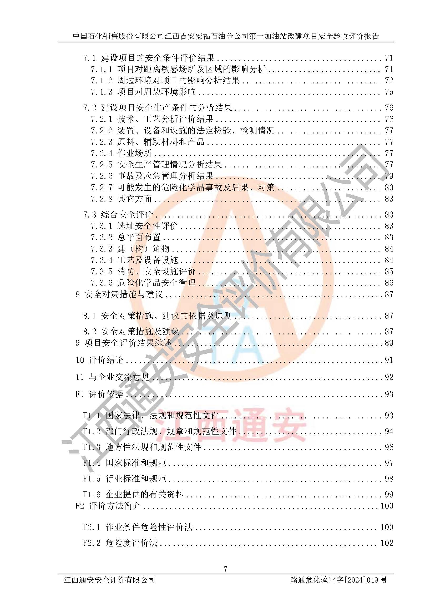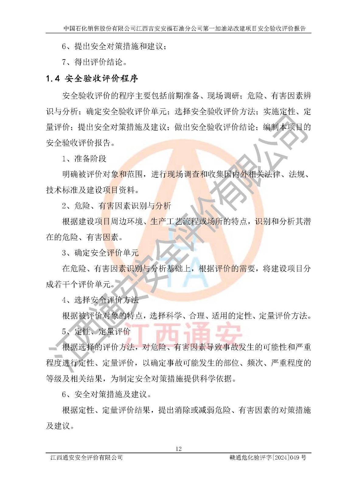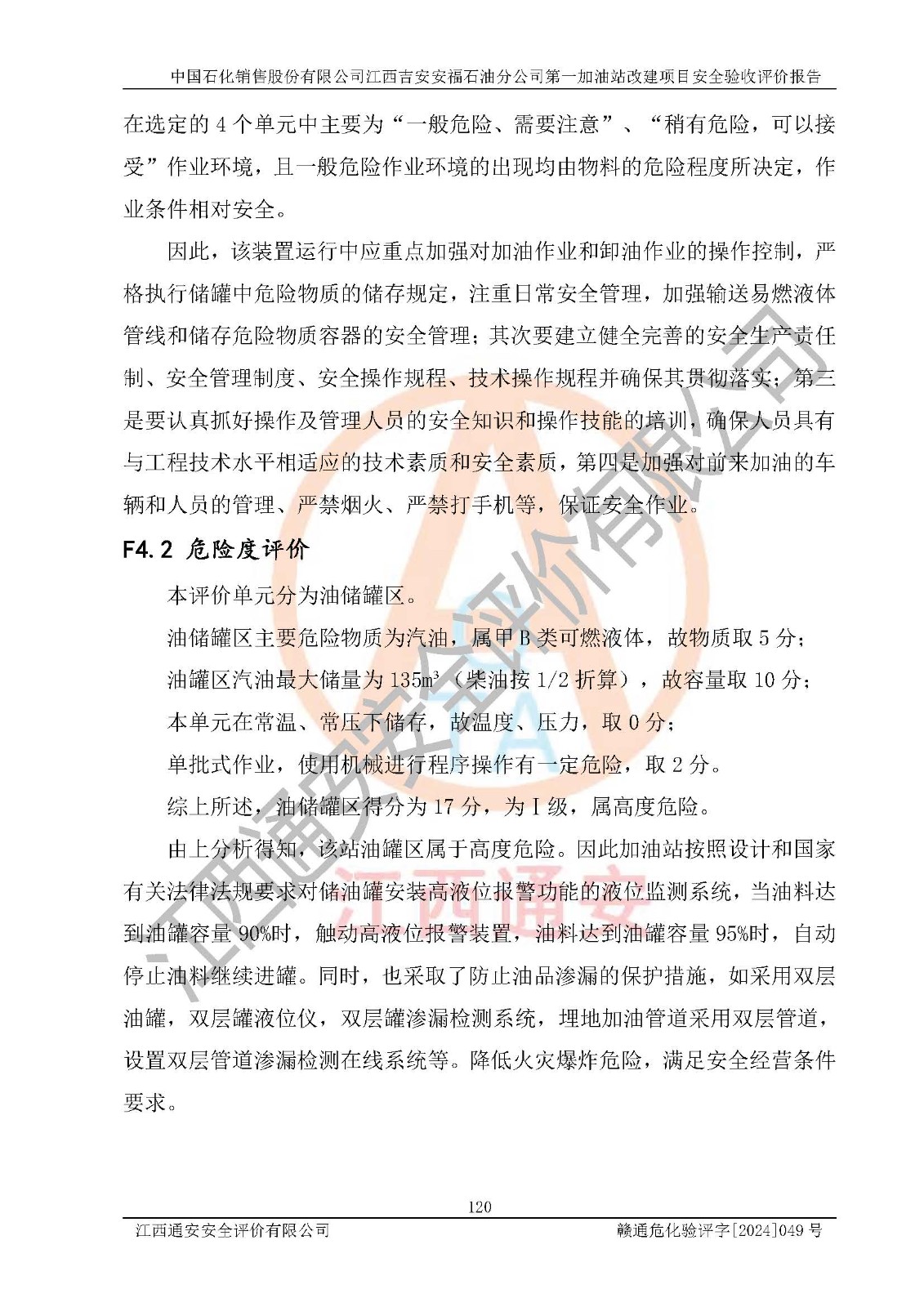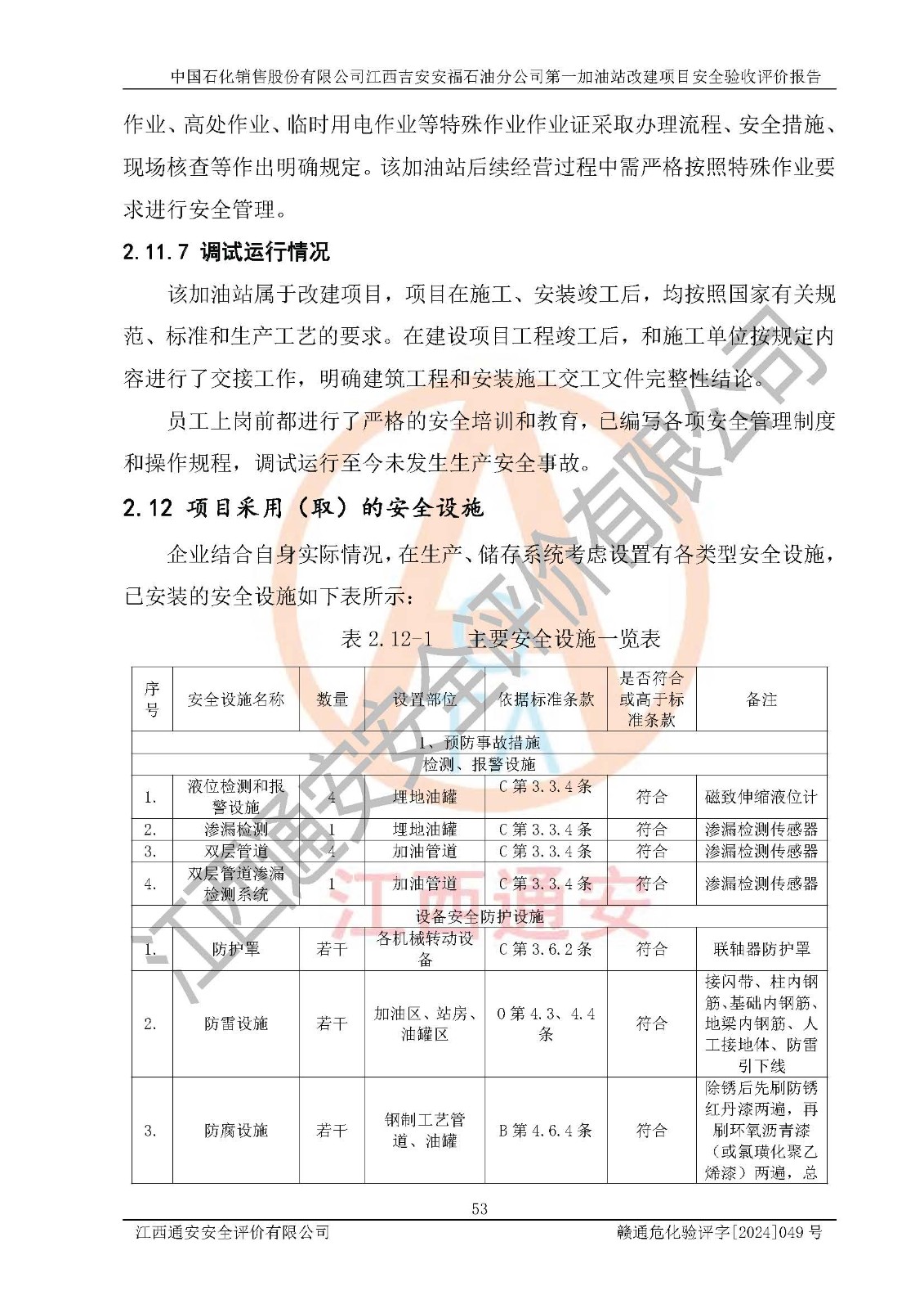 项目名称 | 中国石化销售股份有限公司江西吉安安福石油分公司 **加油站改建项目安全验收评价报告 | ||||