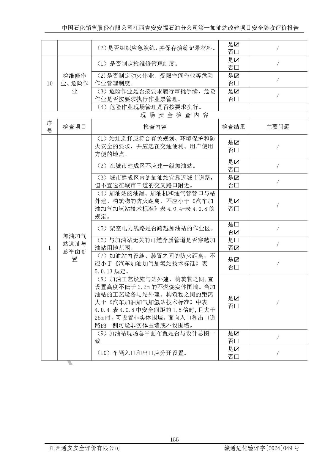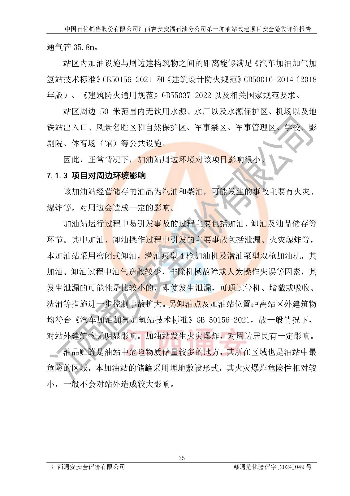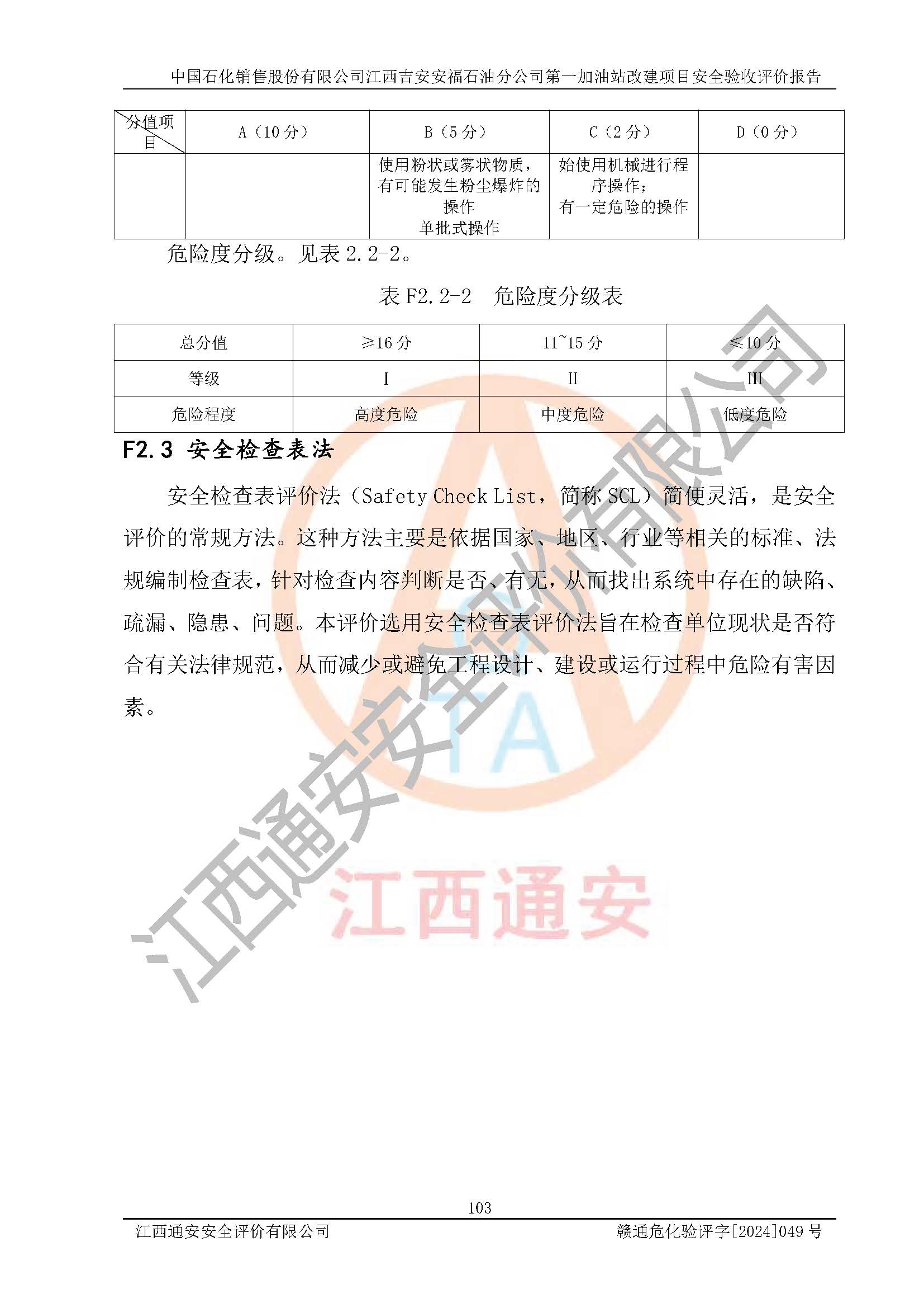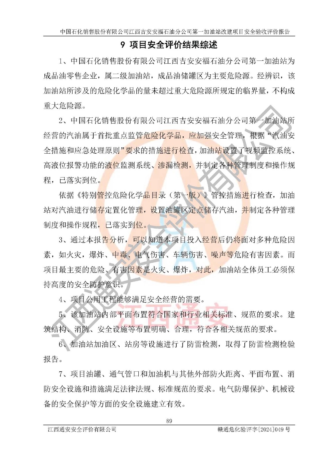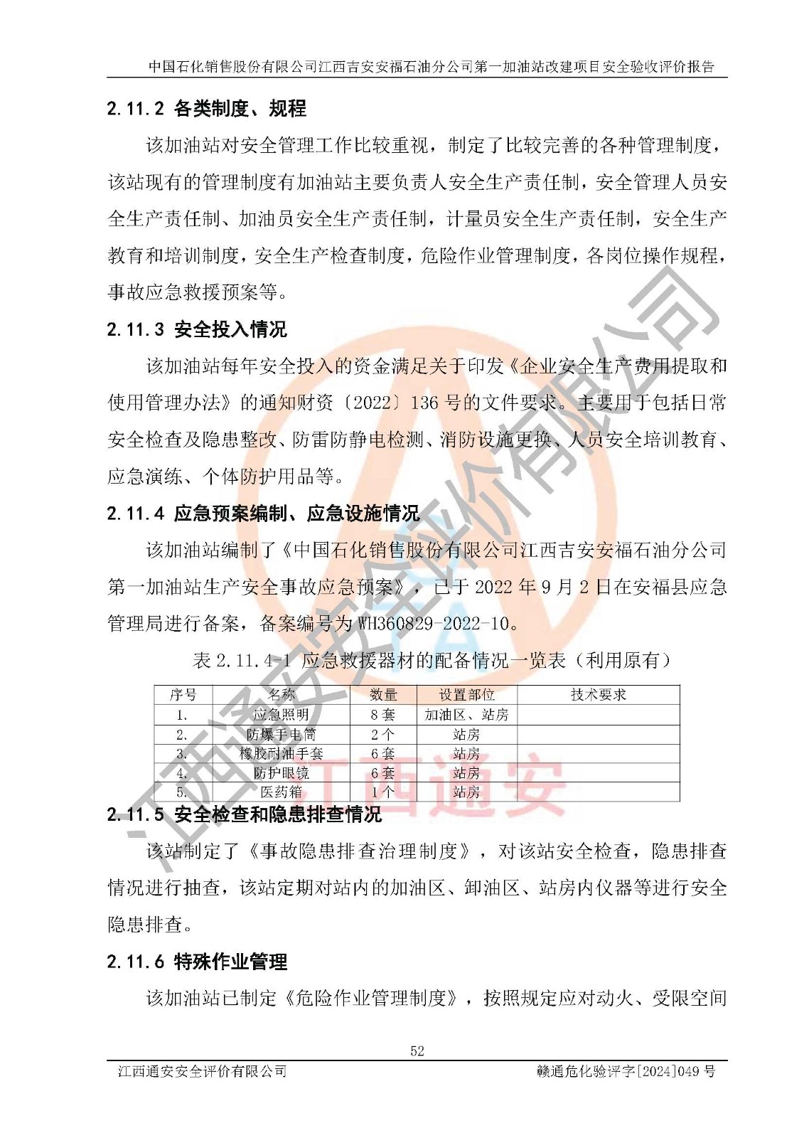 项目名称 | 中国石化销售股份有限公司江西吉安安福石油分公司 **加油站改建项目安全验收评价报告 | ||||