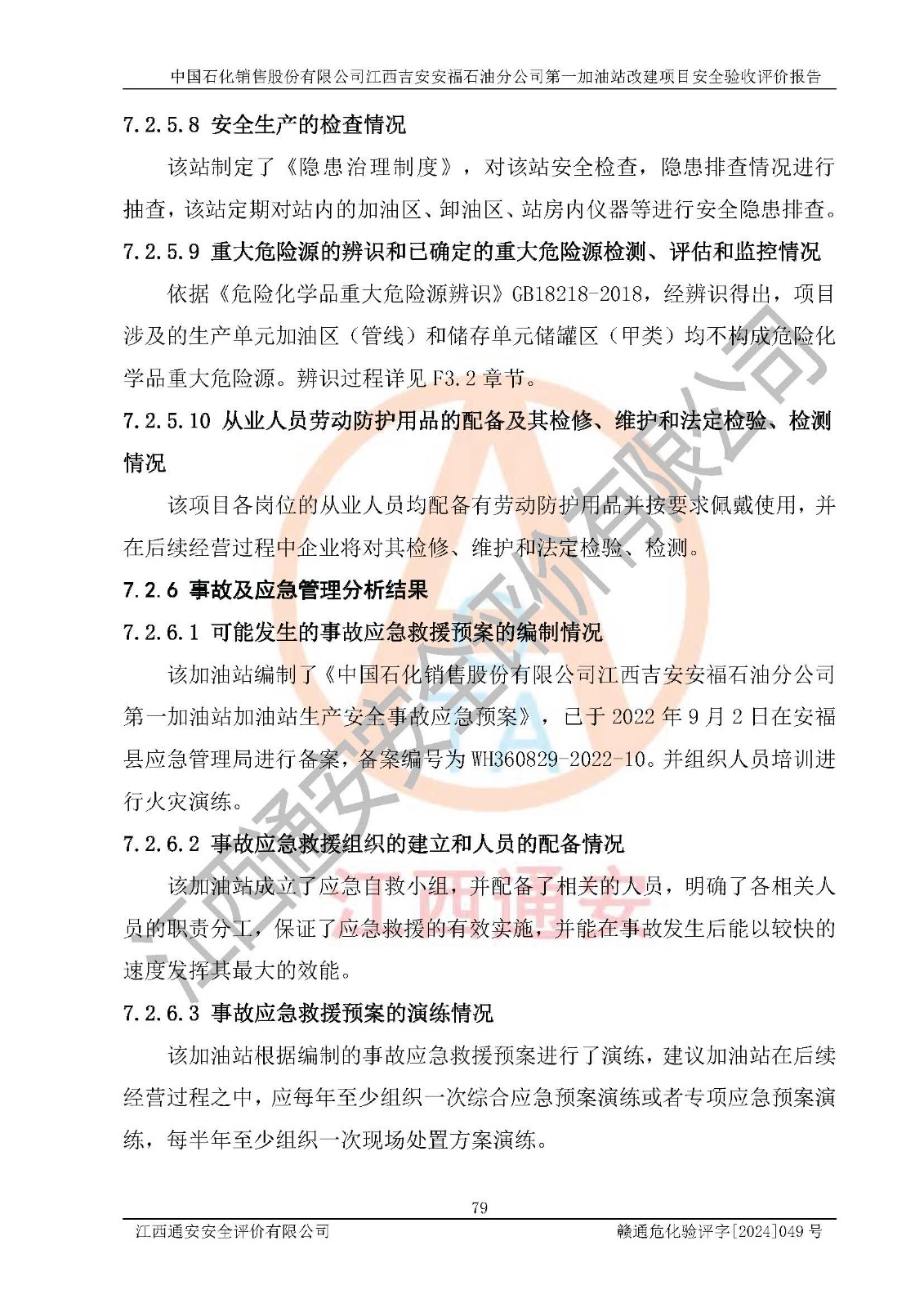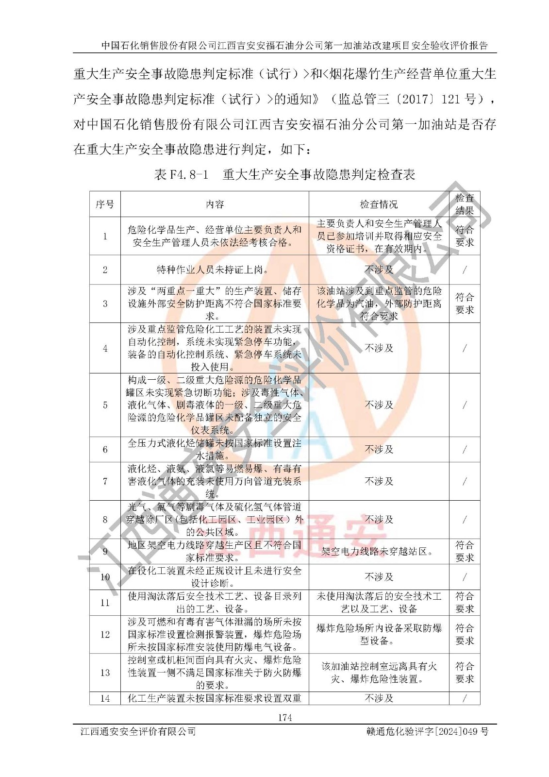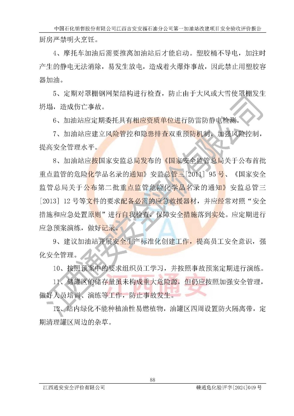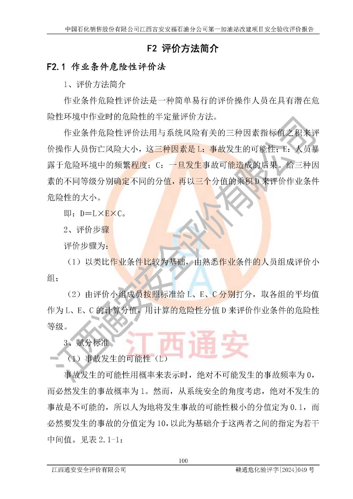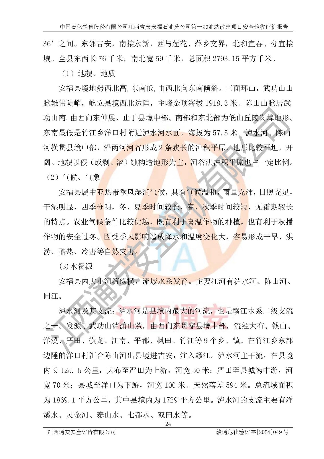 项目名称 | 中国石化销售股份有限公司江西吉安安福石油分公司 **加油站改建项目安全验收评价报告 | ||||