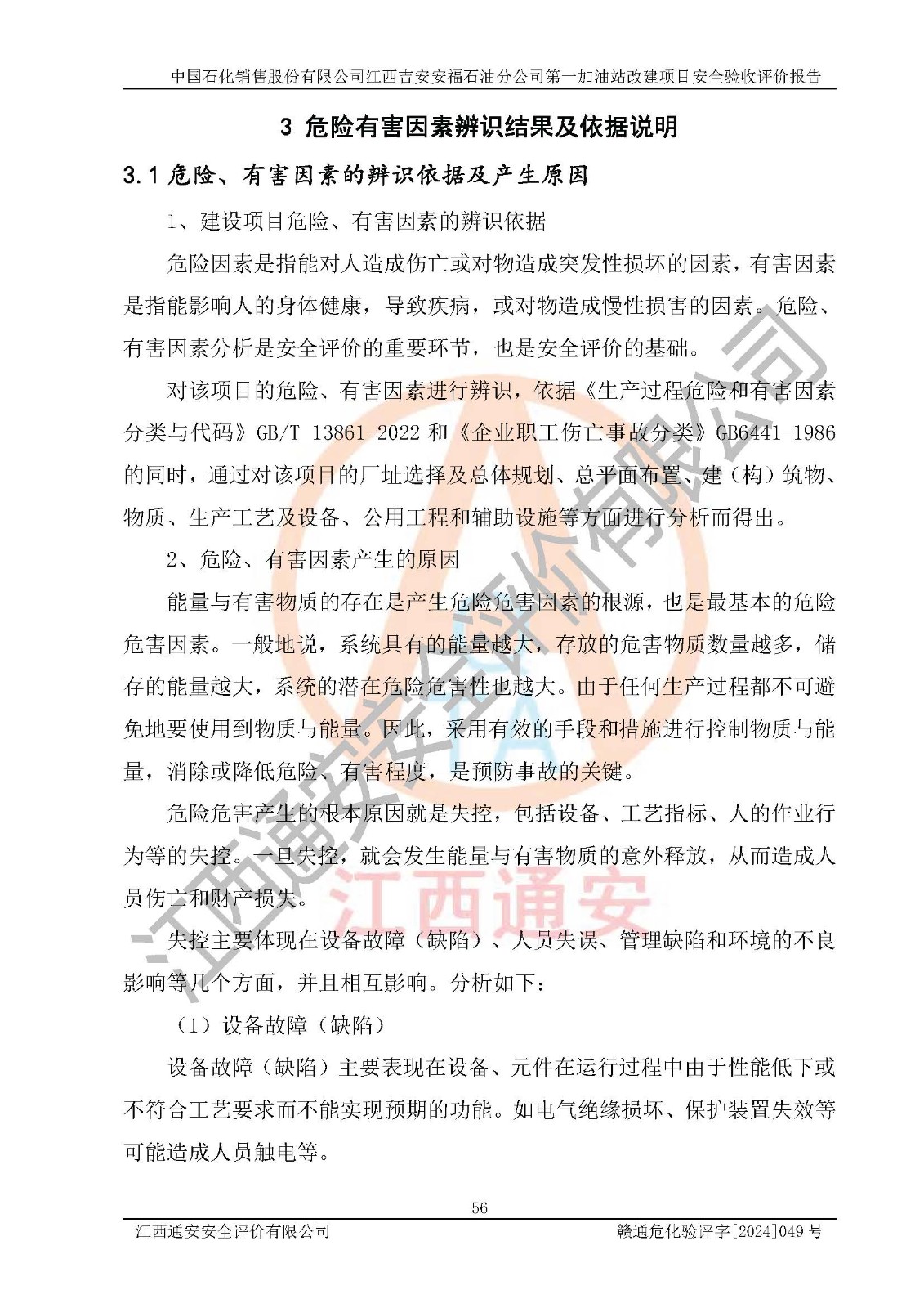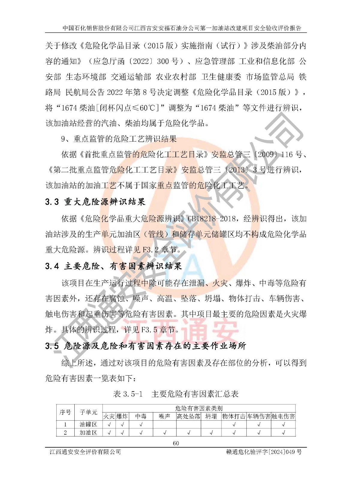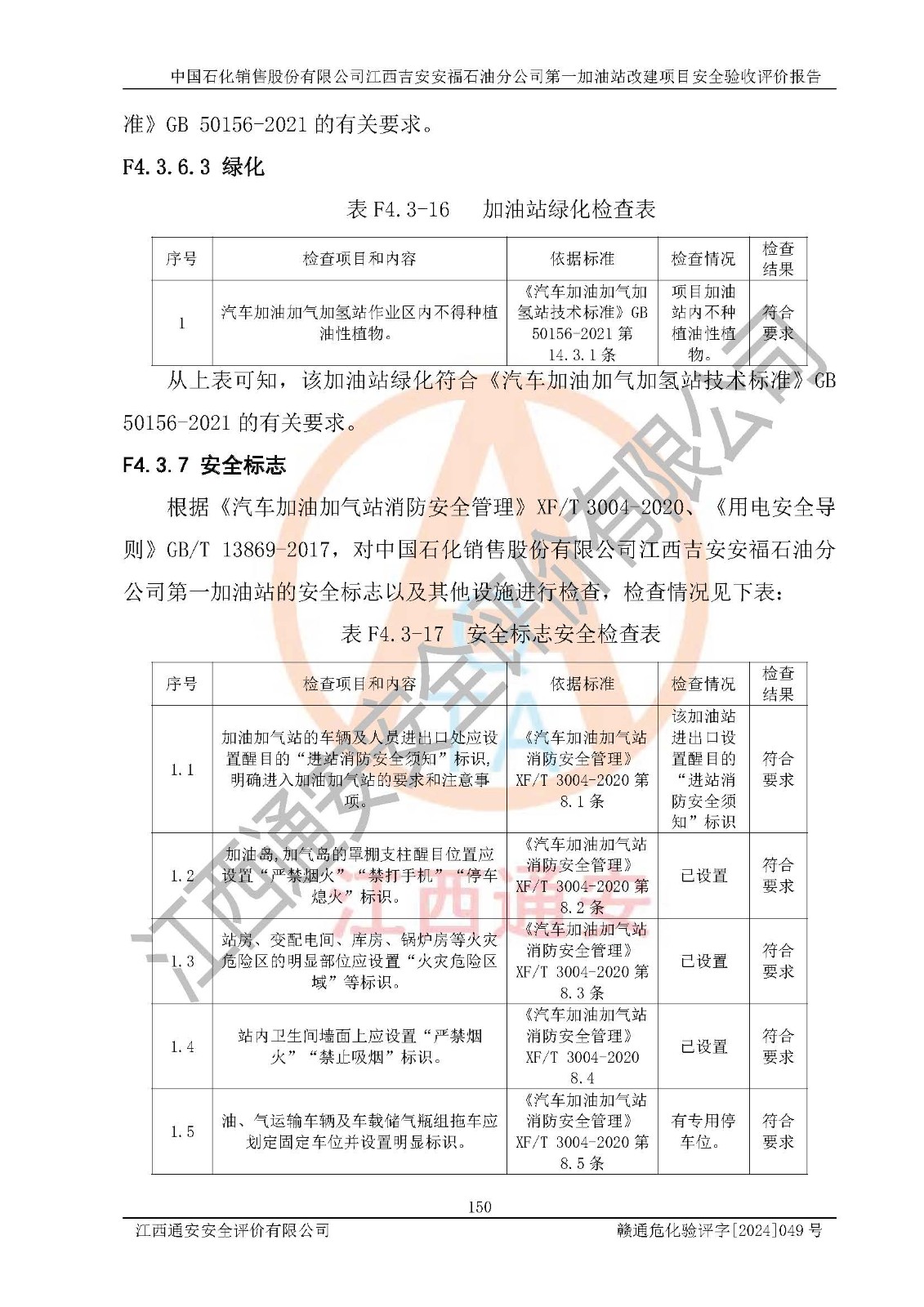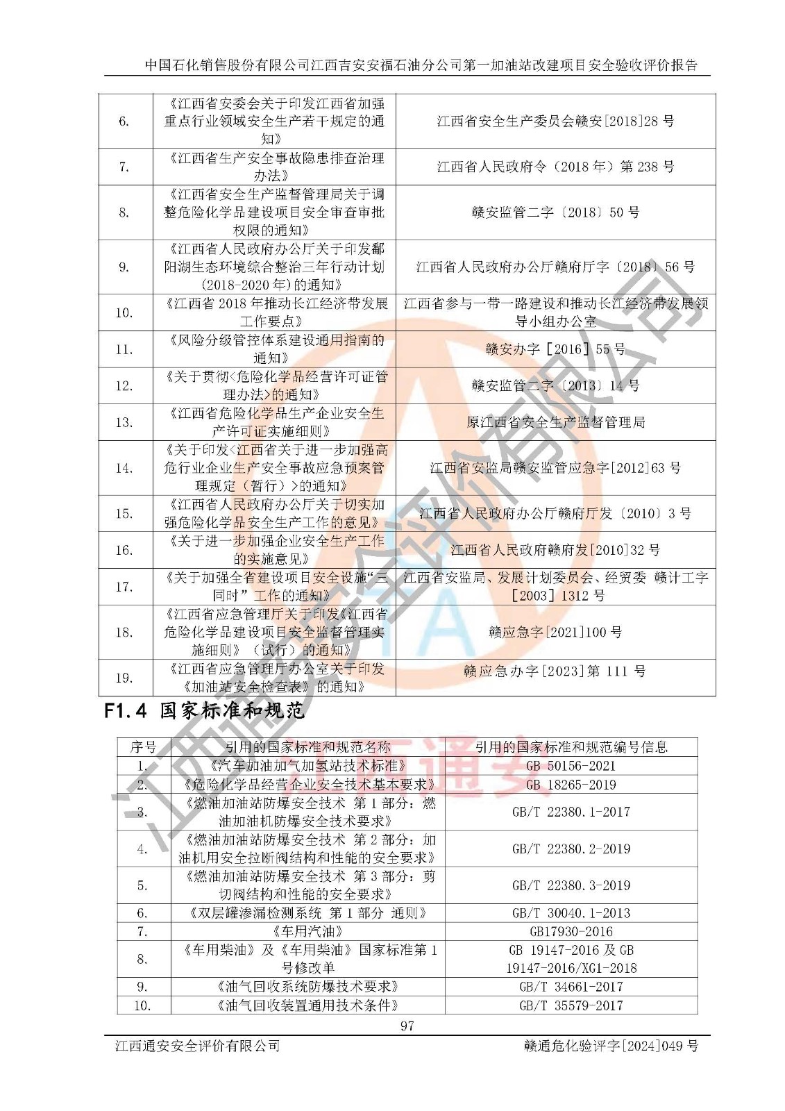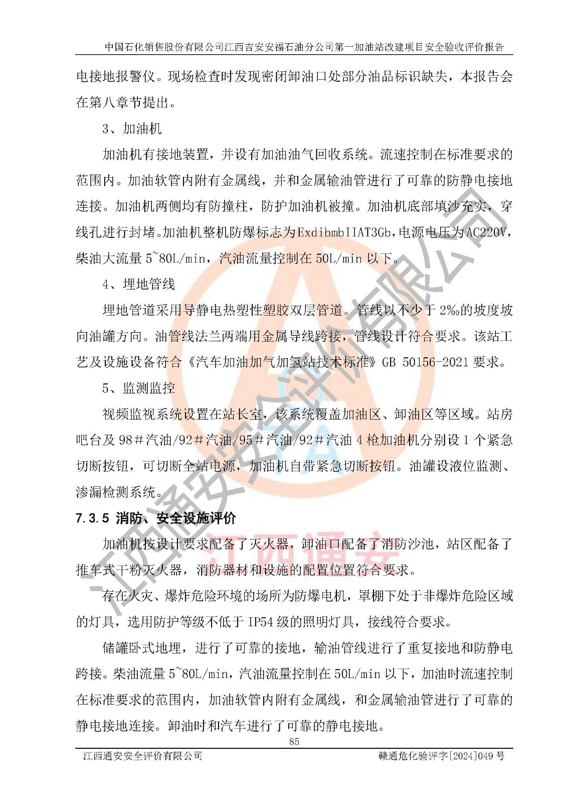 项目名称 | 中国石化销售股份有限公司江西吉安安福石油分公司 **加油站改建项目安全验收评价报告 | ||||