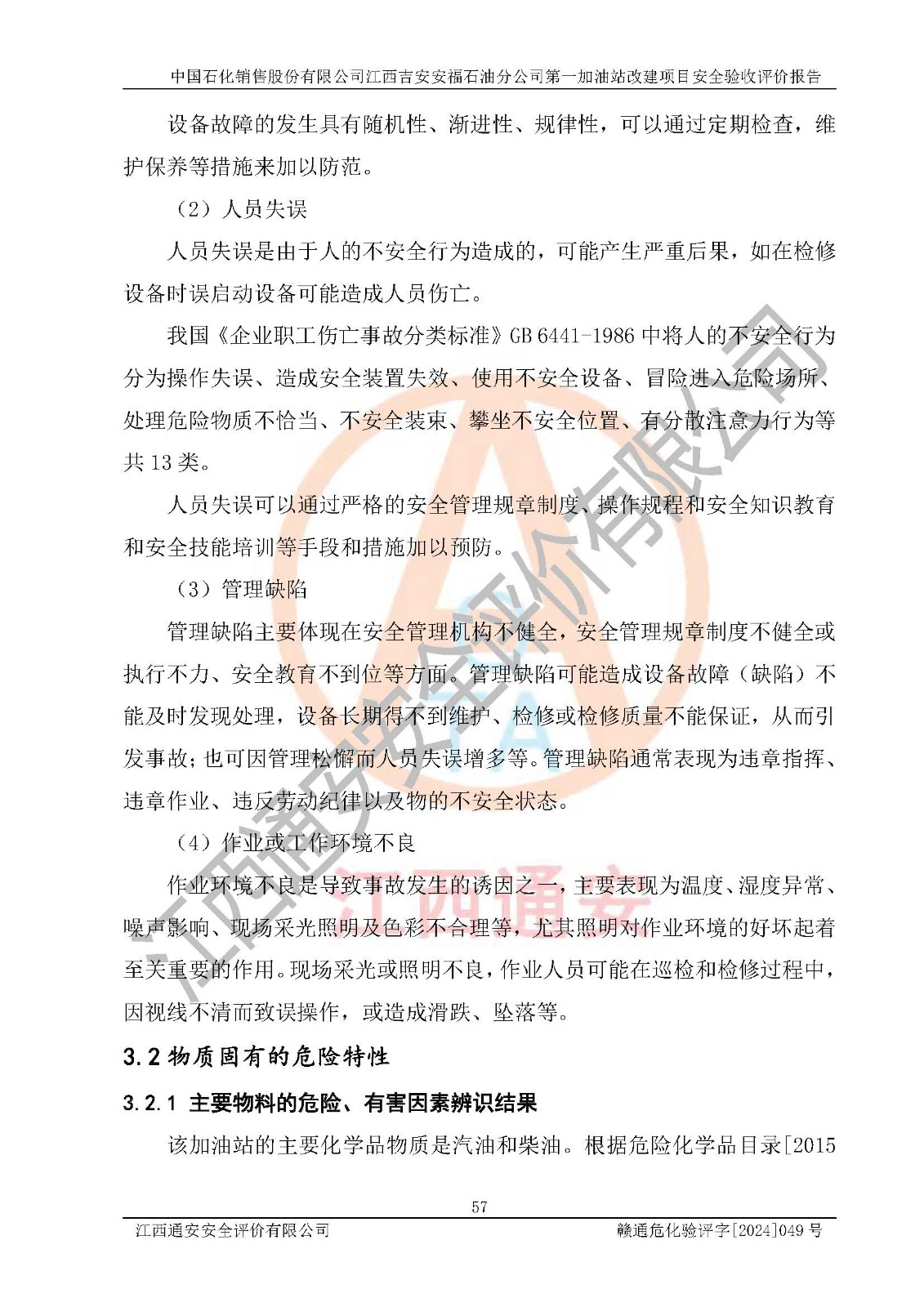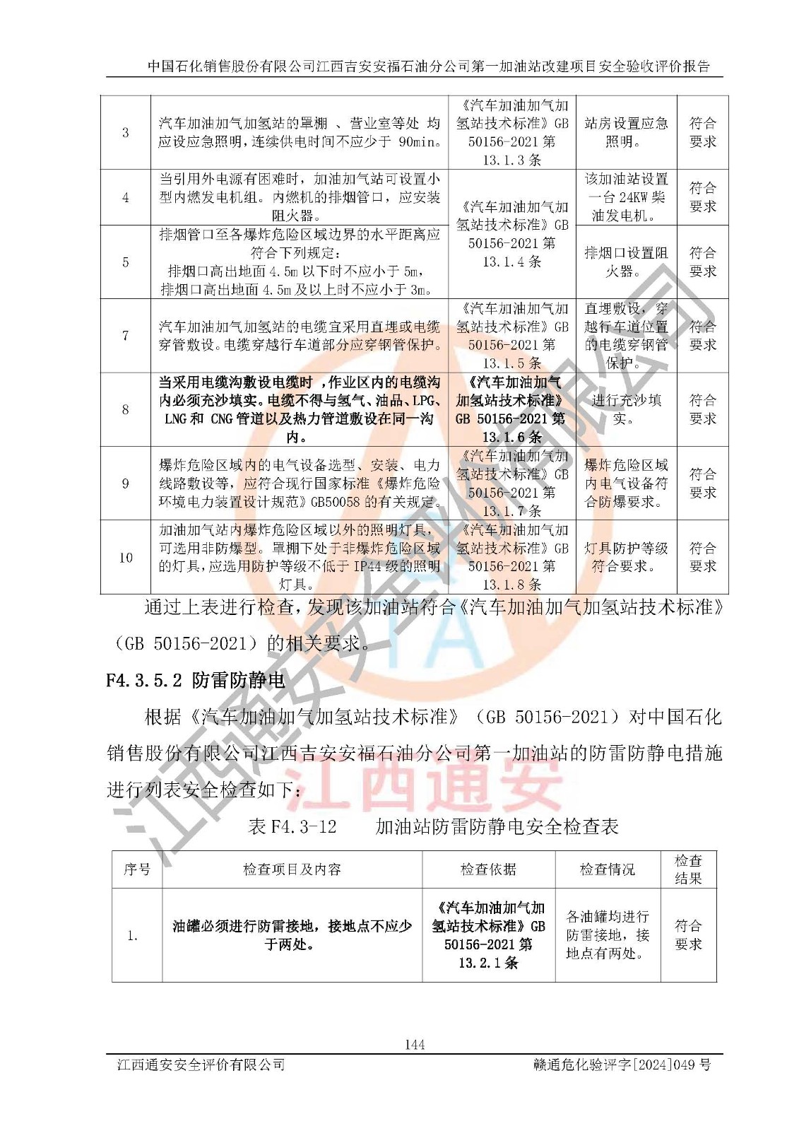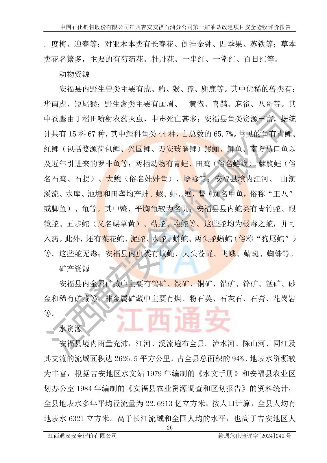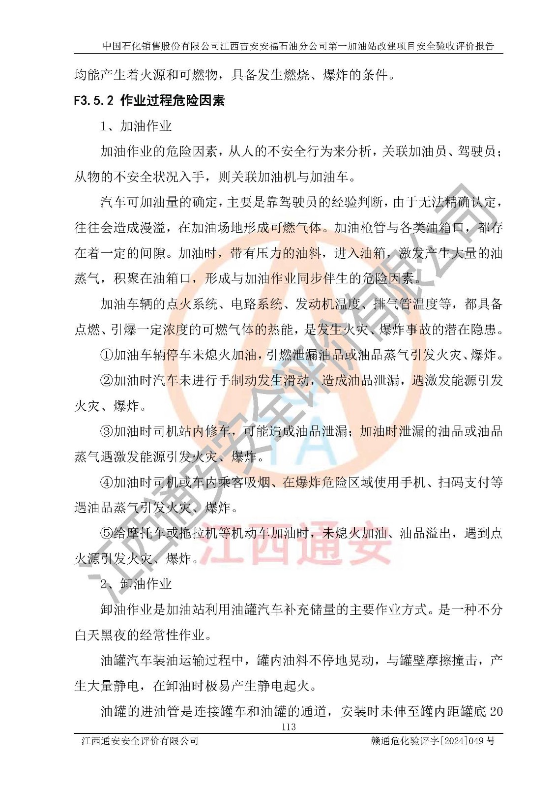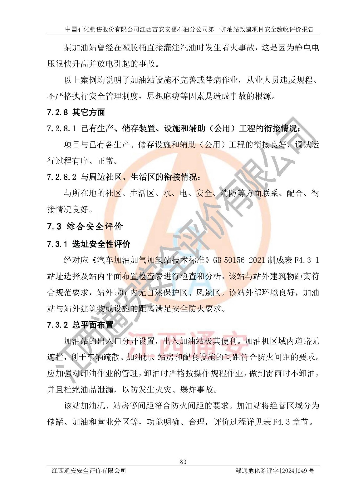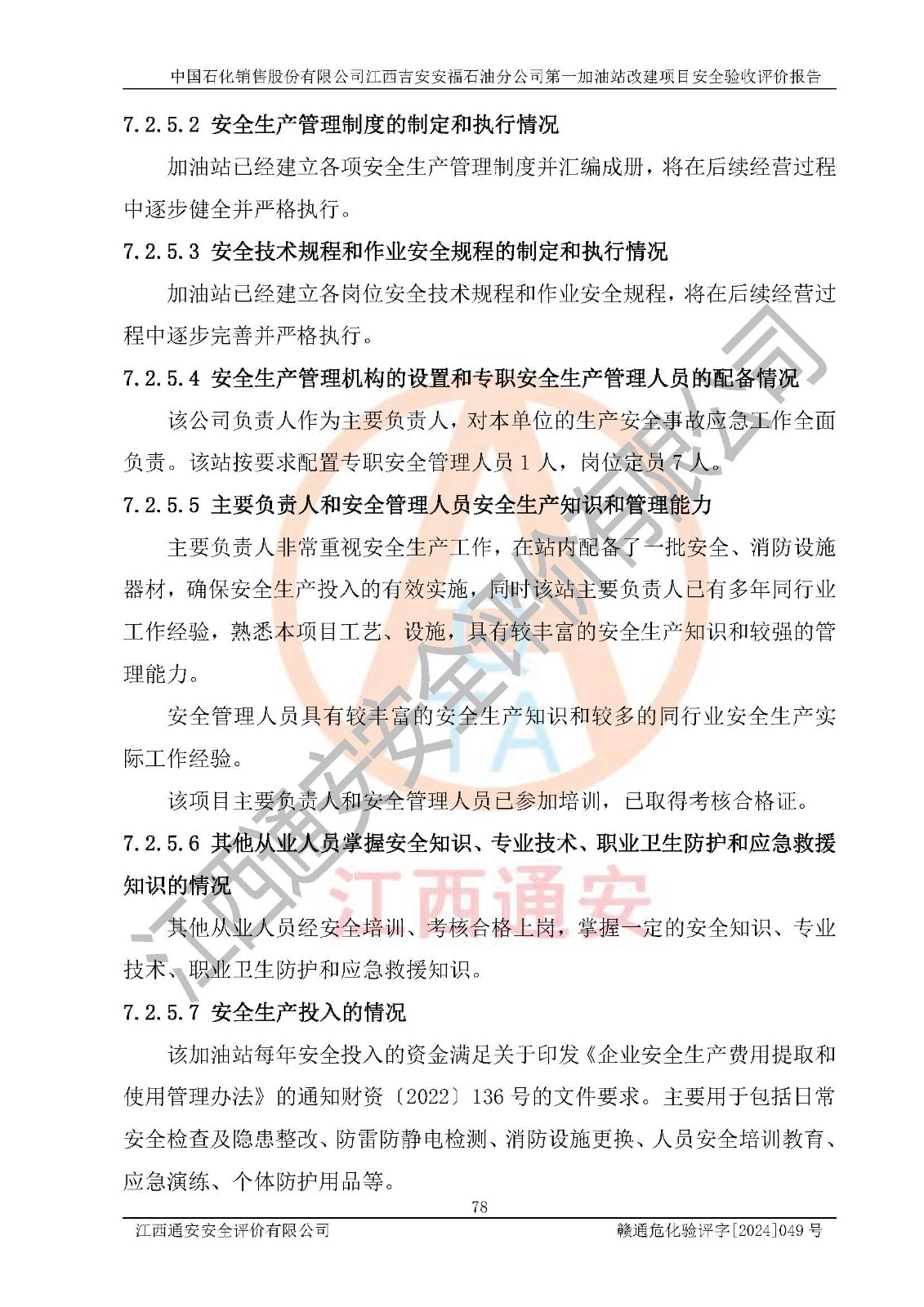 项目名称 | 中国石化销售股份有限公司江西吉安安福石油分公司 **加油站改建项目安全验收评价报告 | ||||
