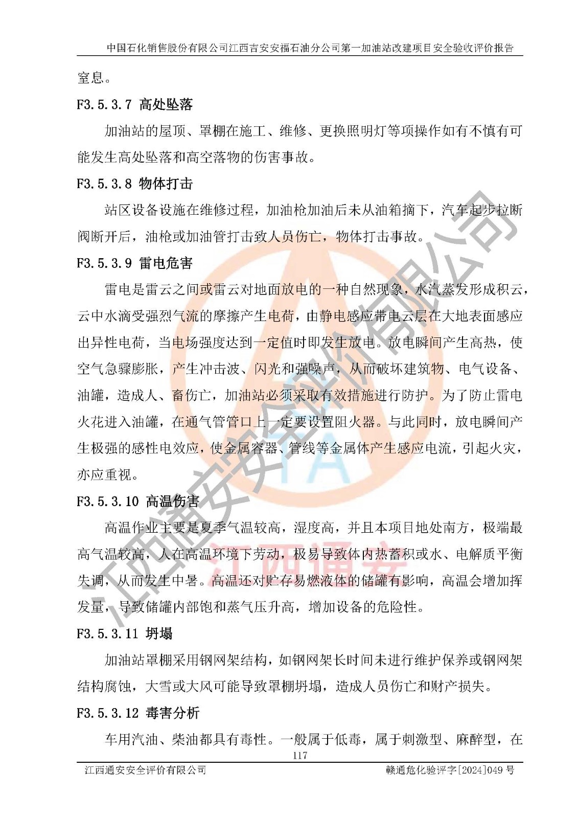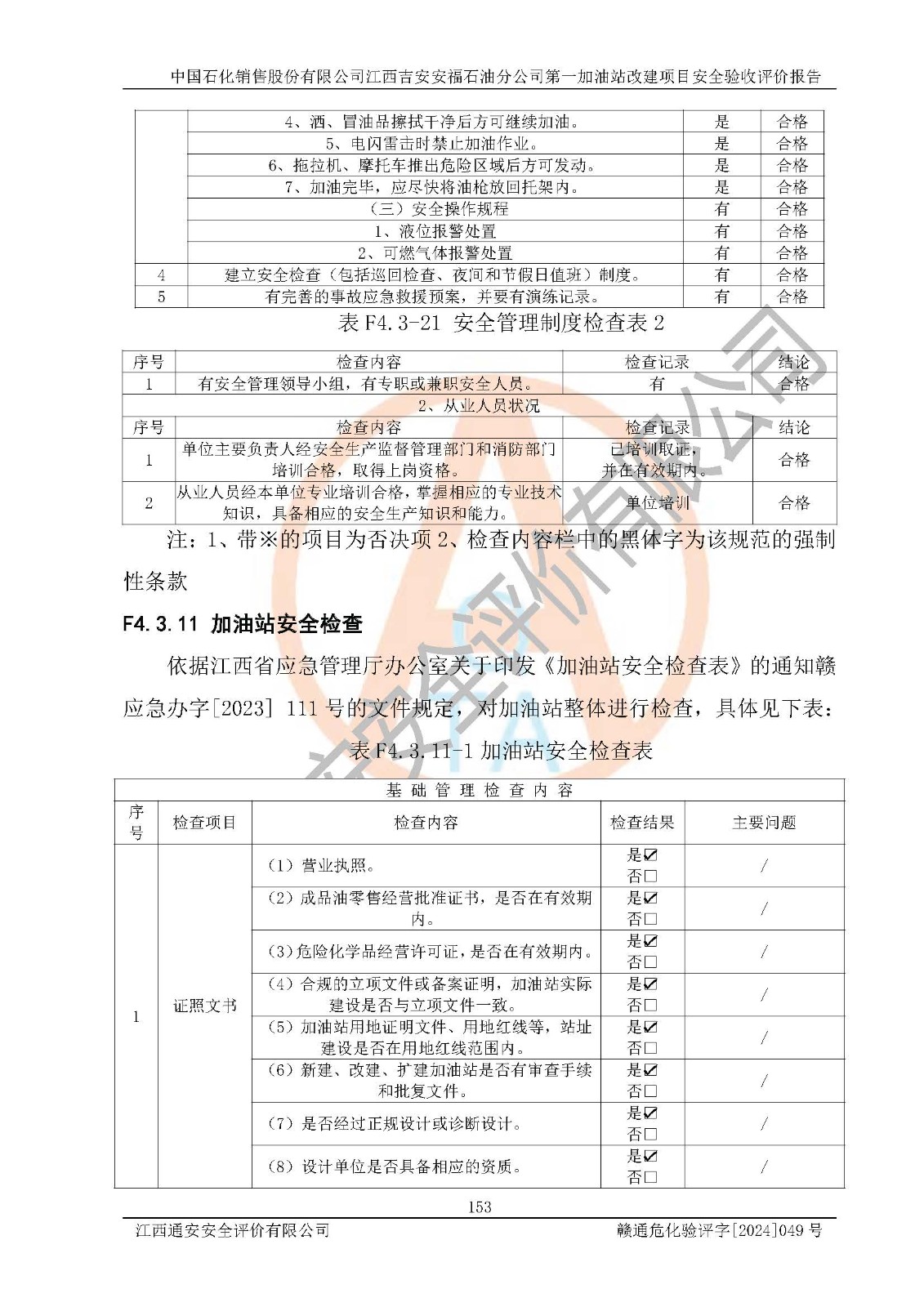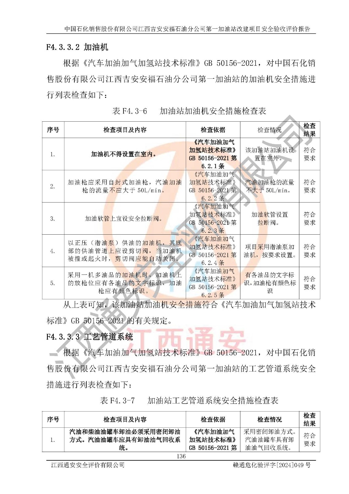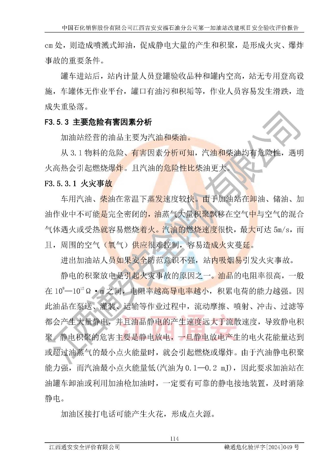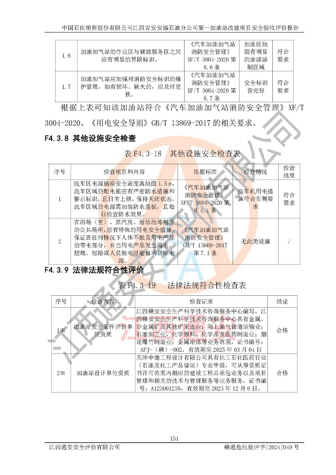 项目名称 | 中国石化销售股份有限公司江西吉安安福石油分公司 **加油站改建项目安全验收评价报告 | ||||