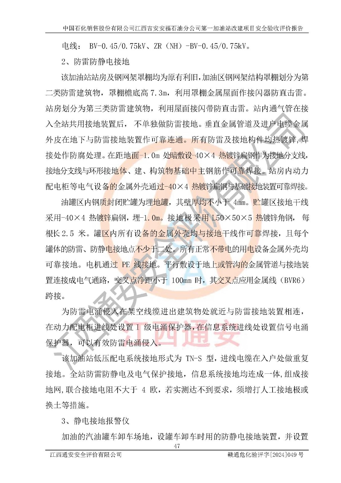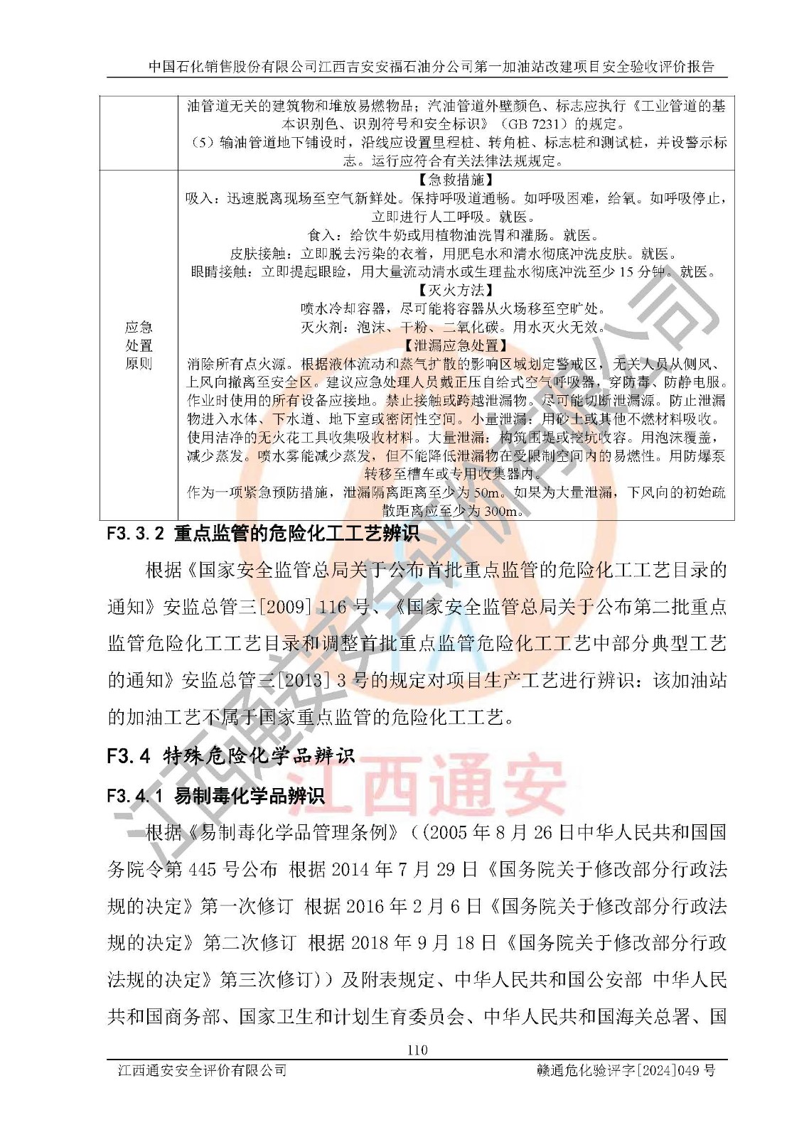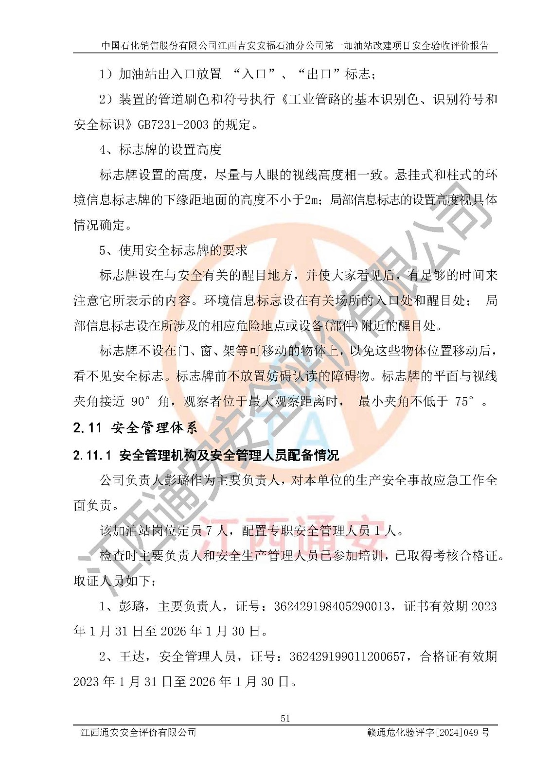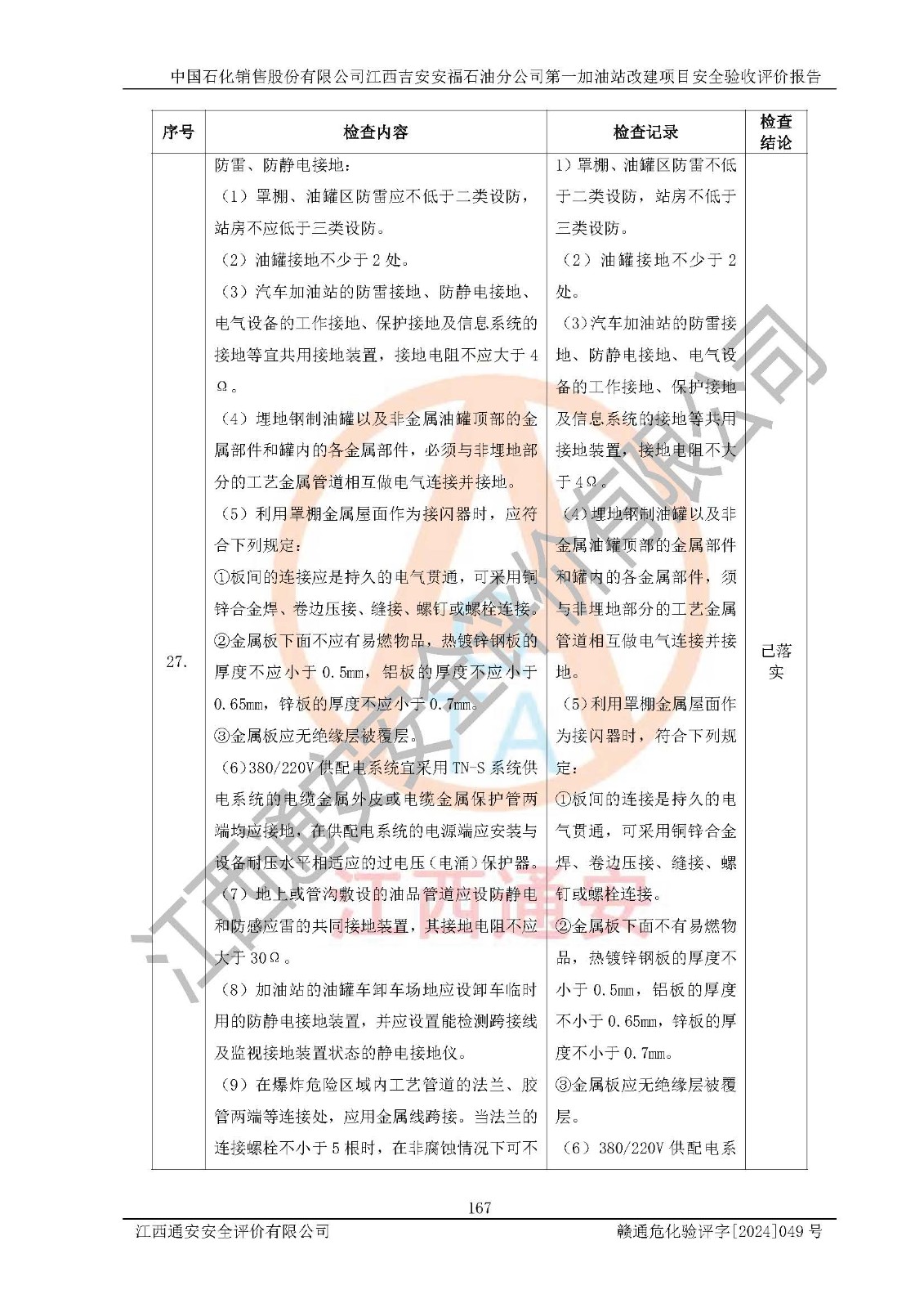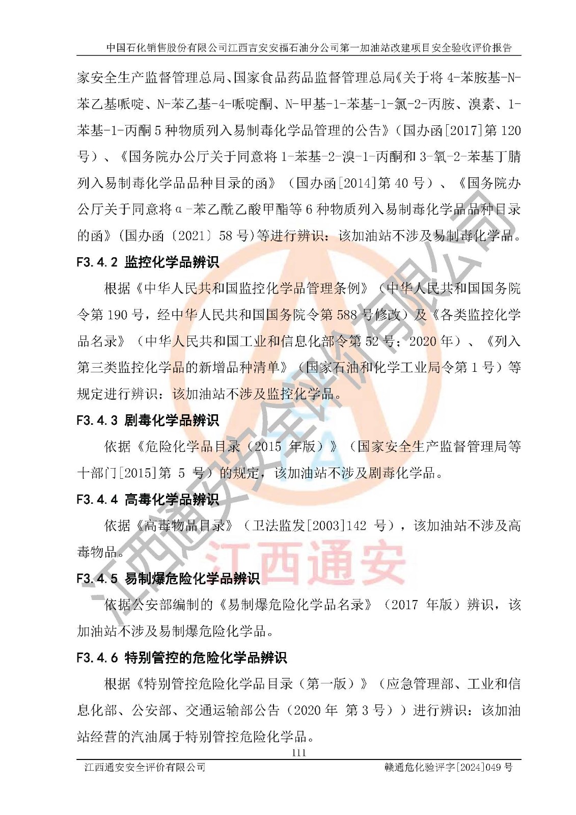 项目名称 | 中国石化销售股份有限公司江西吉安安福石油分公司 **加油站改建项目安全验收评价报告 | ||||
