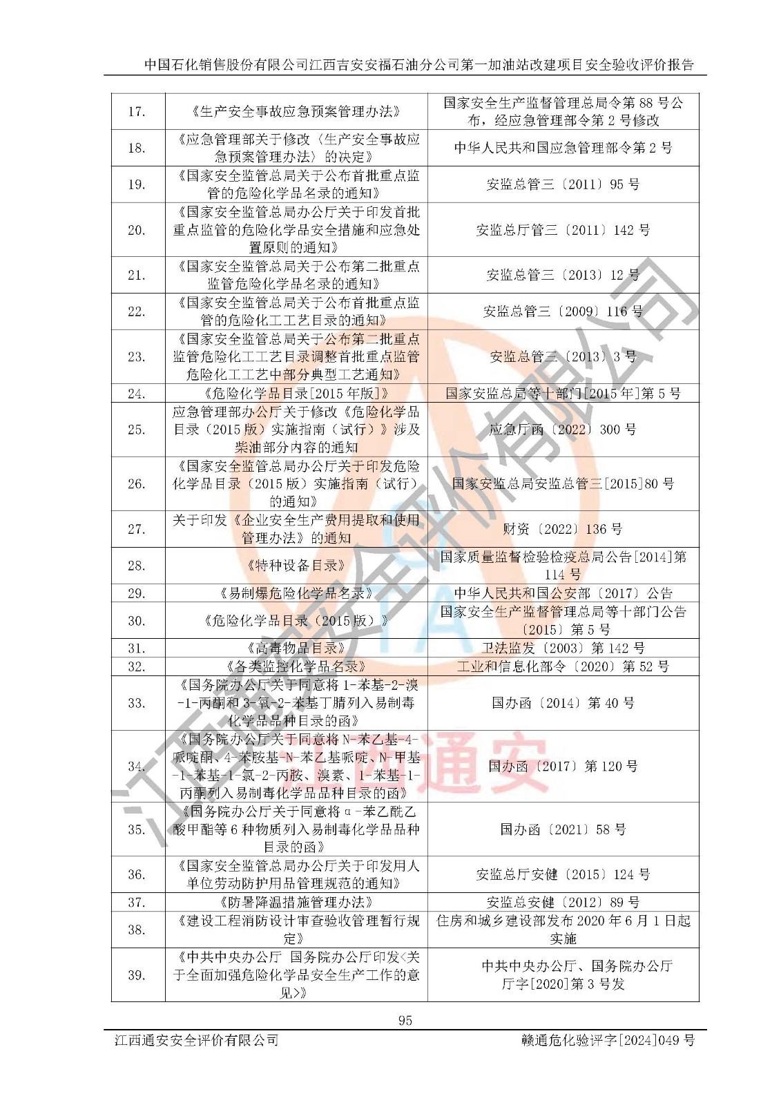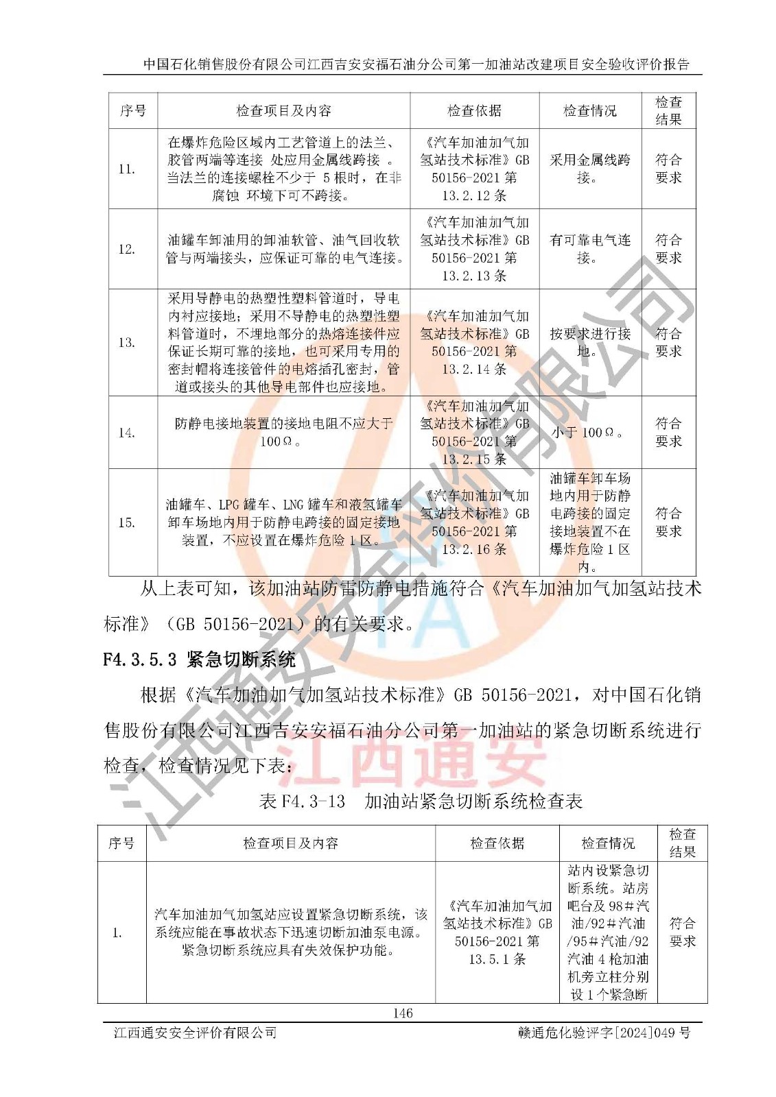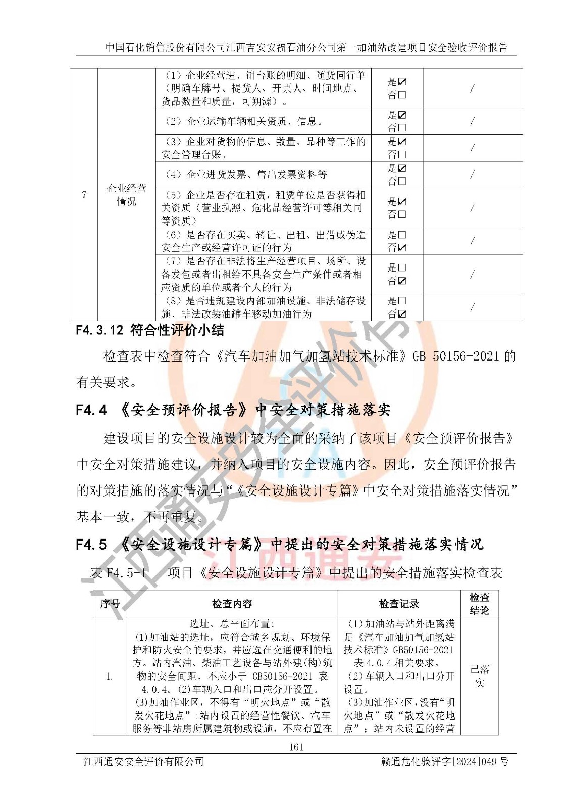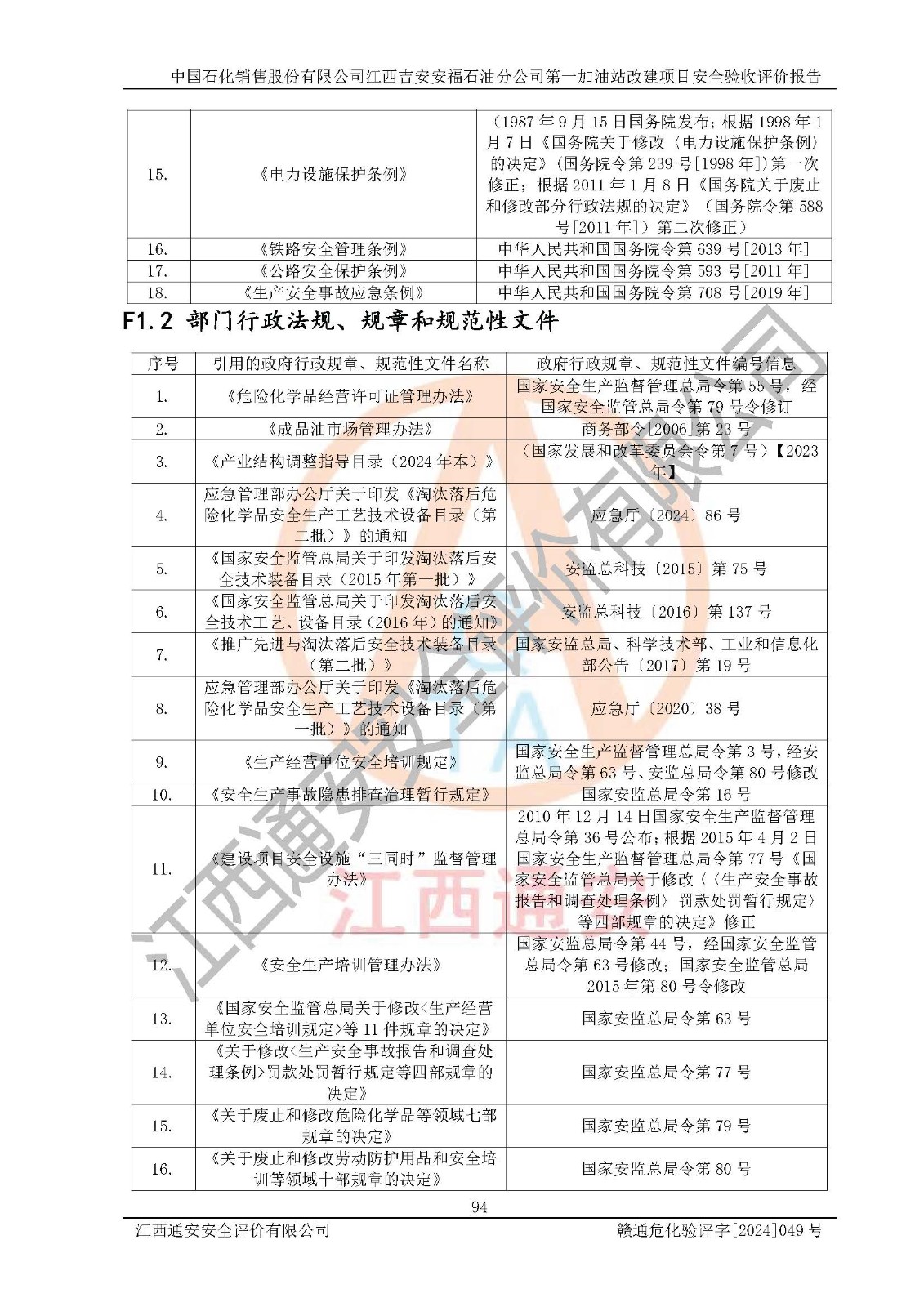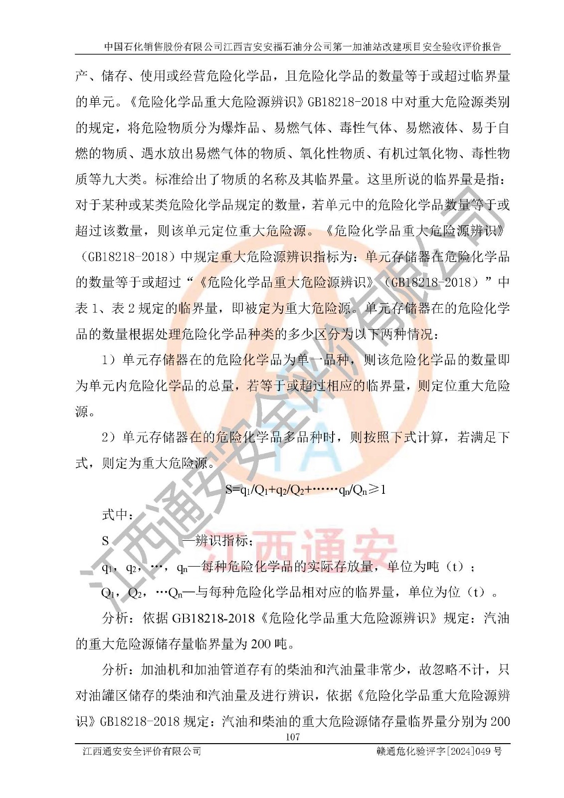 项目名称 | 中国石化销售股份有限公司江西吉安安福石油分公司 **加油站改建项目安全验收评价报告 | ||||