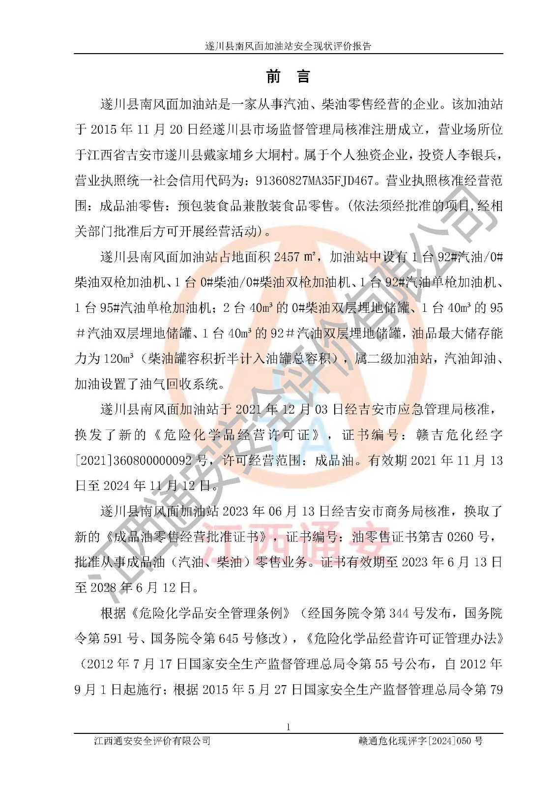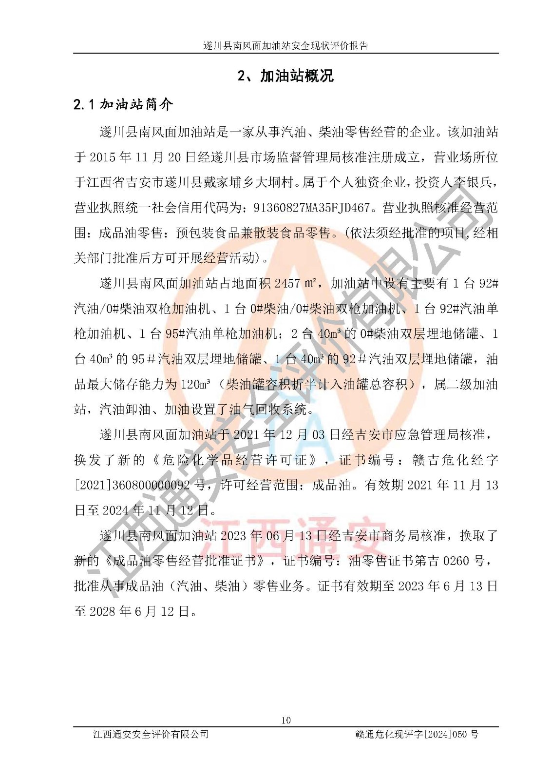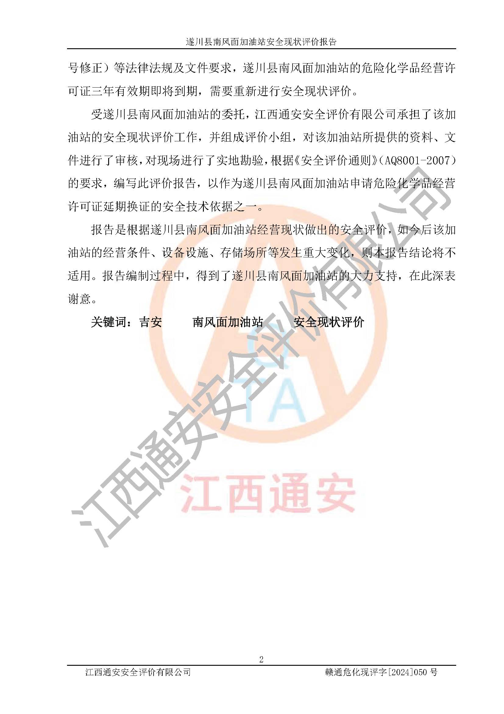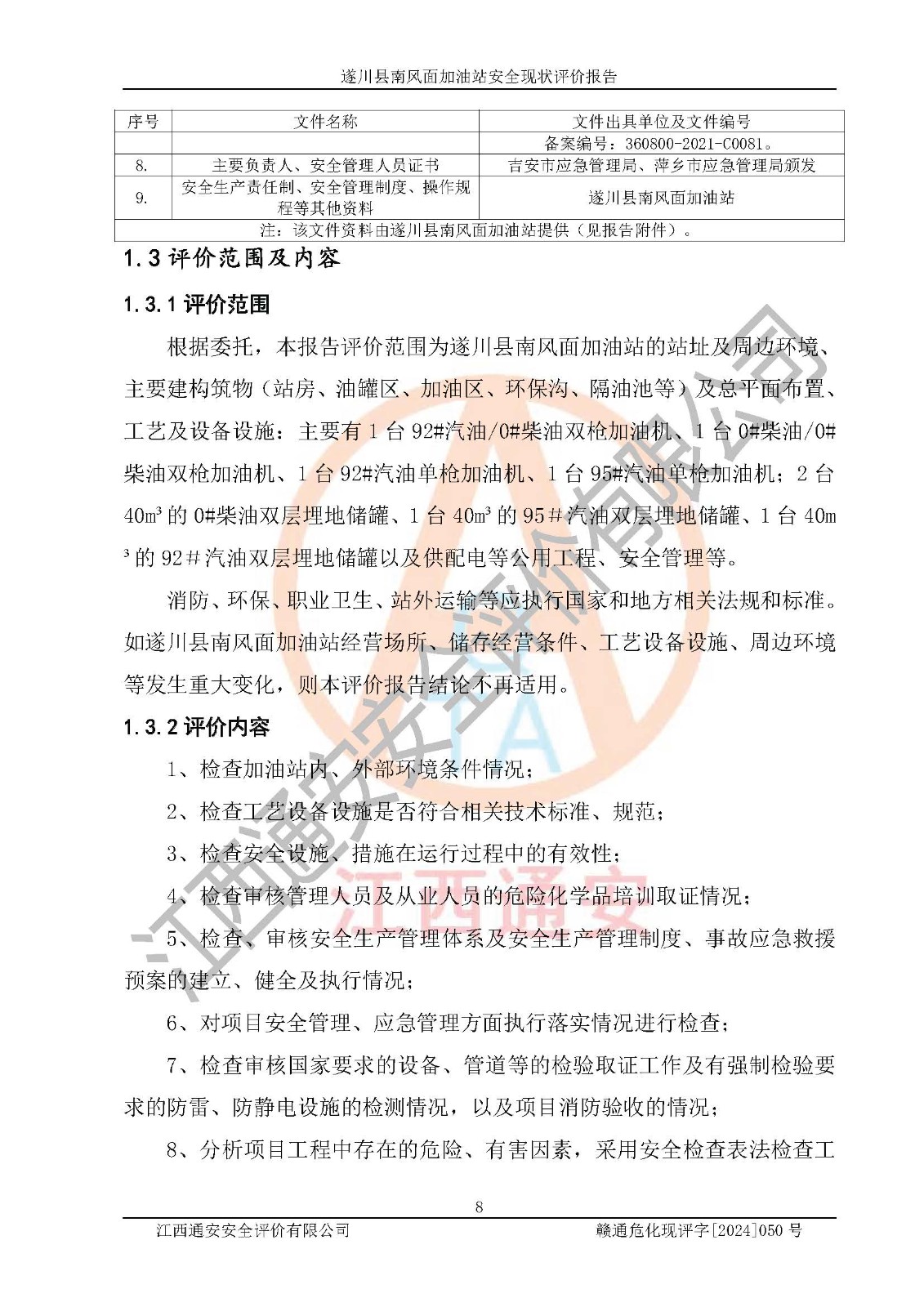 项目名称 | 遂川县南风面加油站安全现状评价报告 | ||||