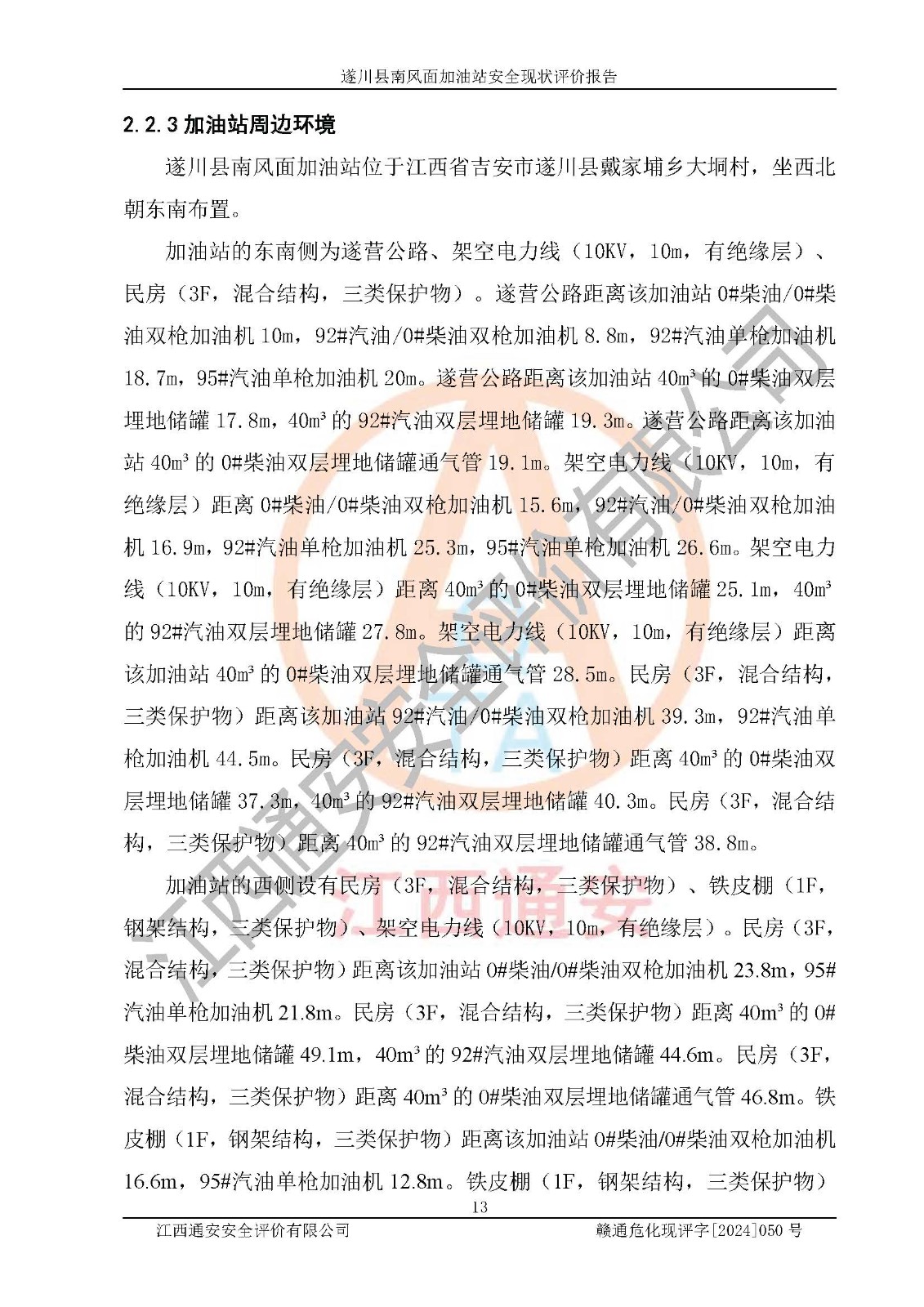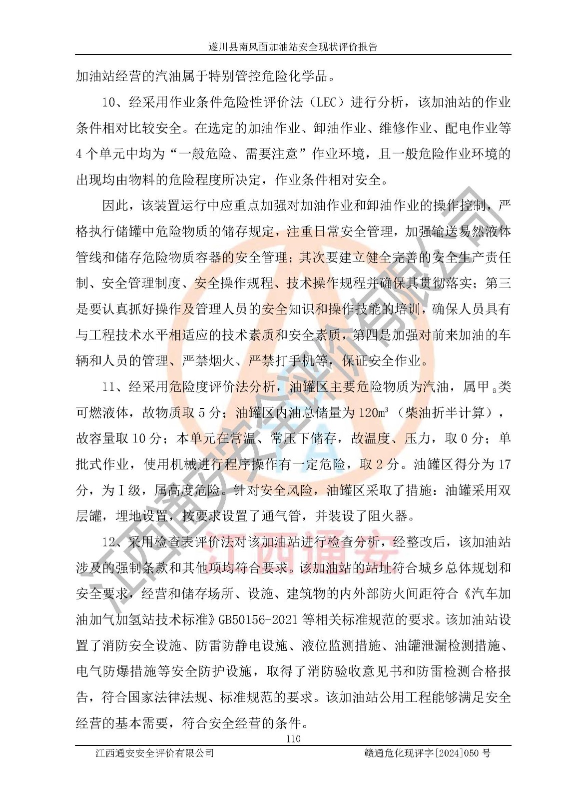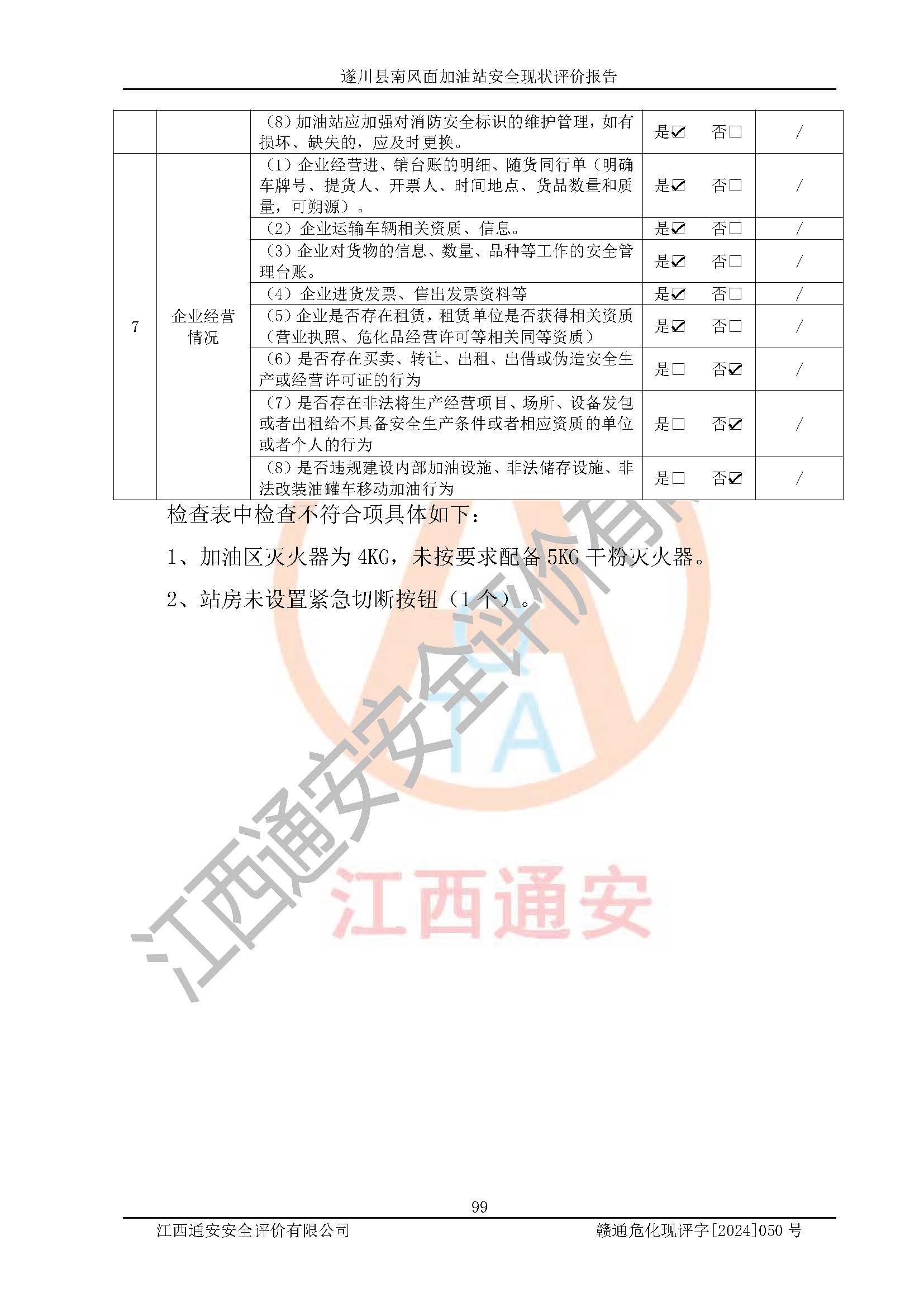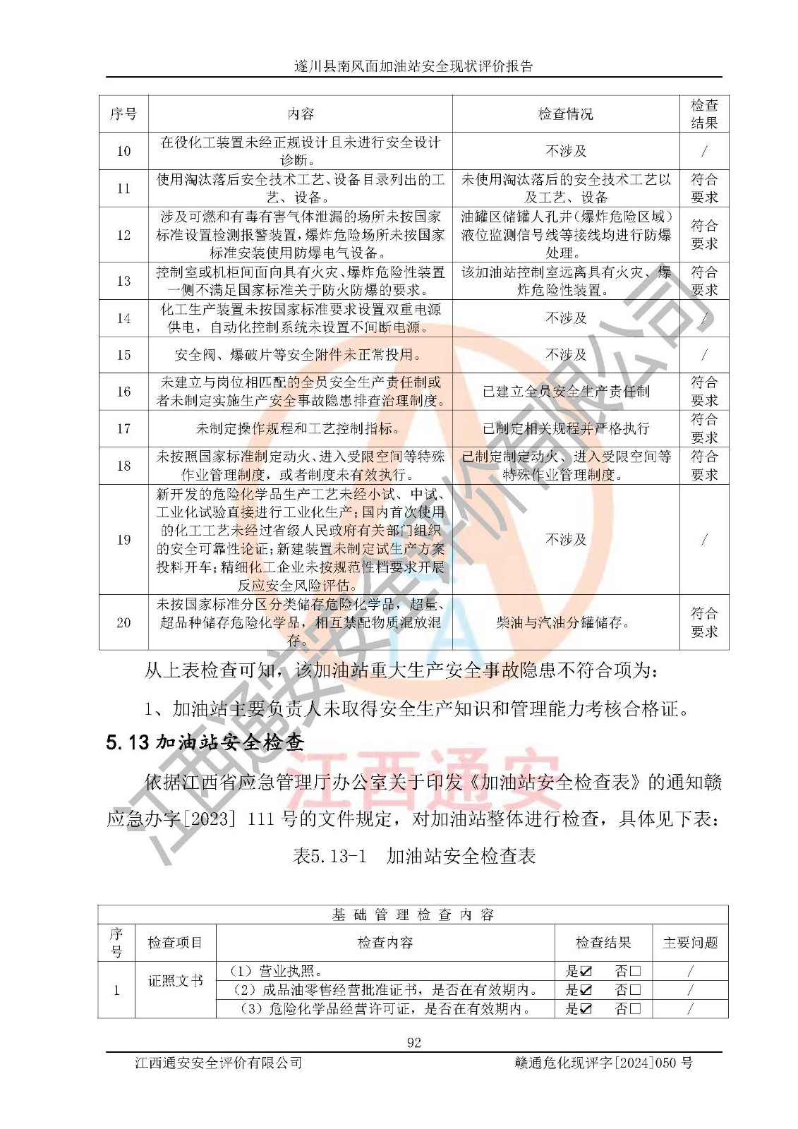 项目名称 | 遂川县南风面加油站安全现状评价报告 | ||||