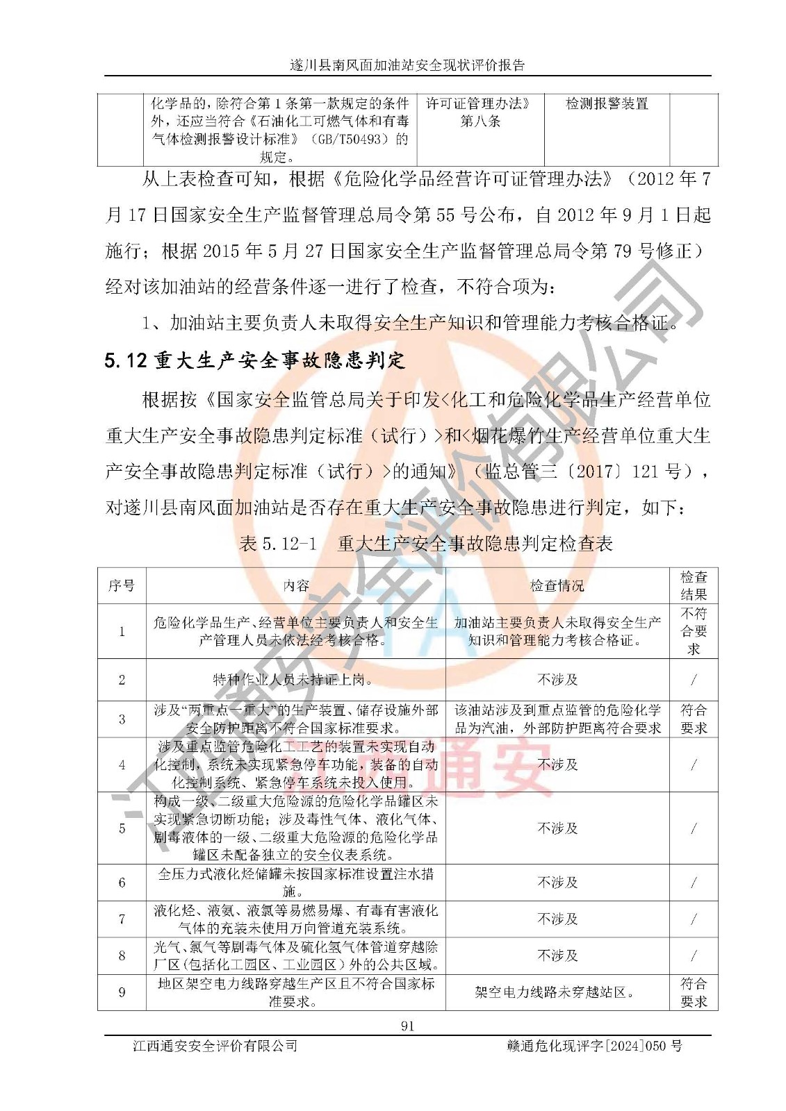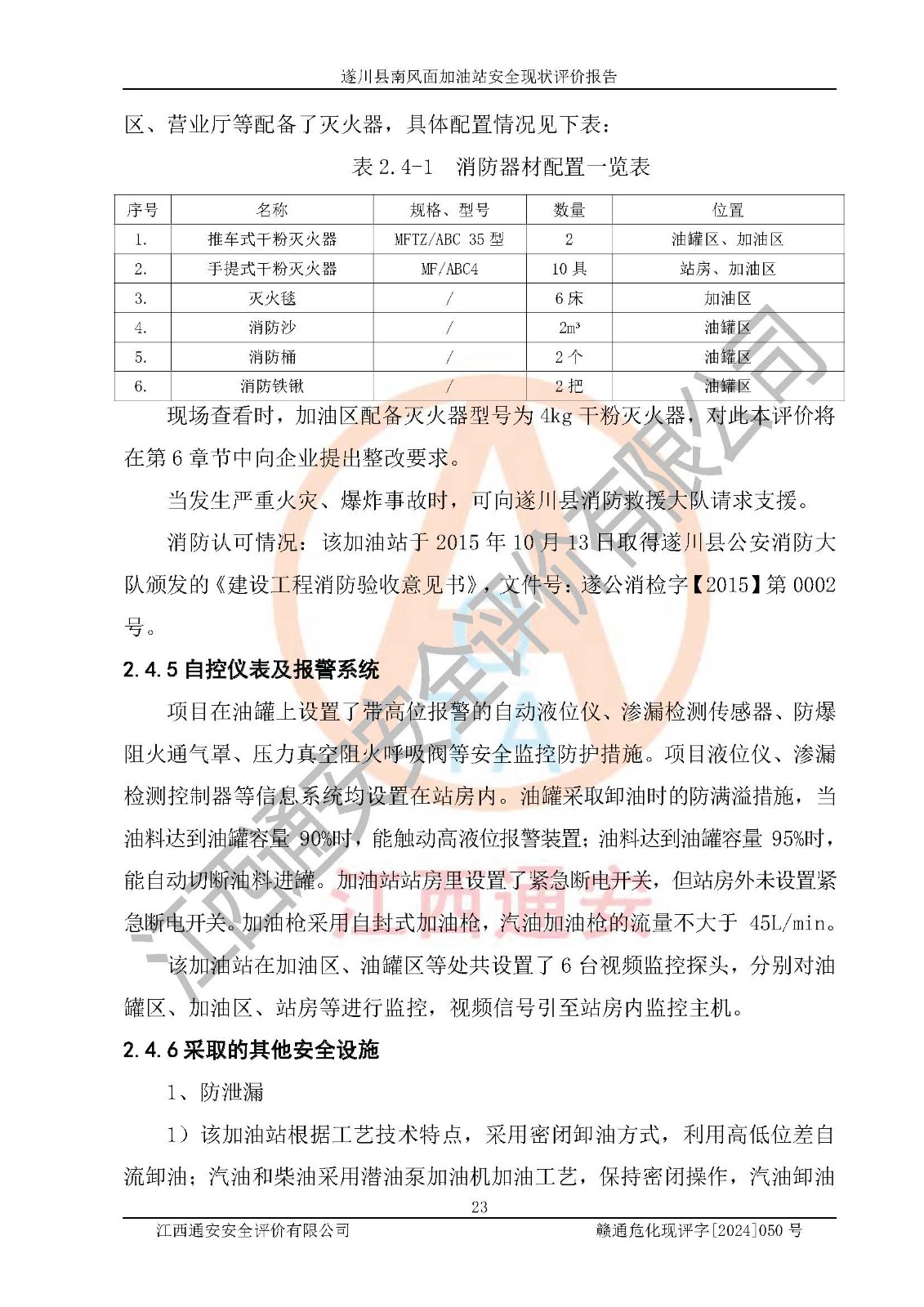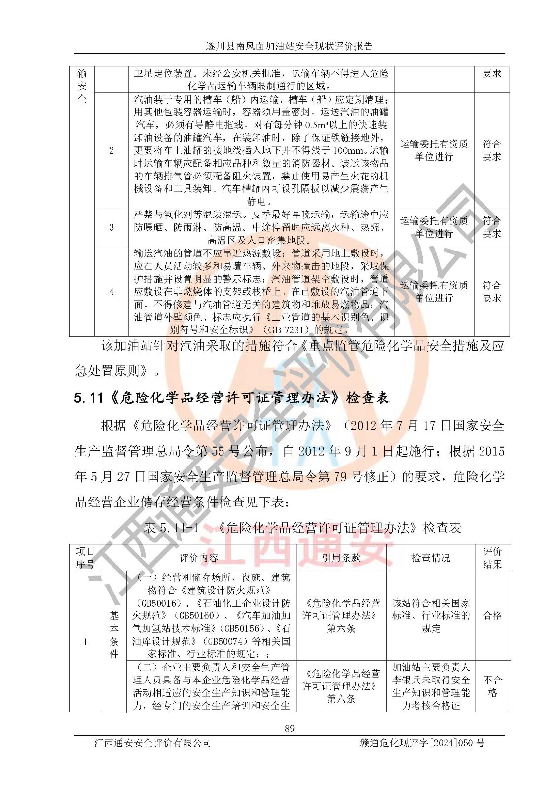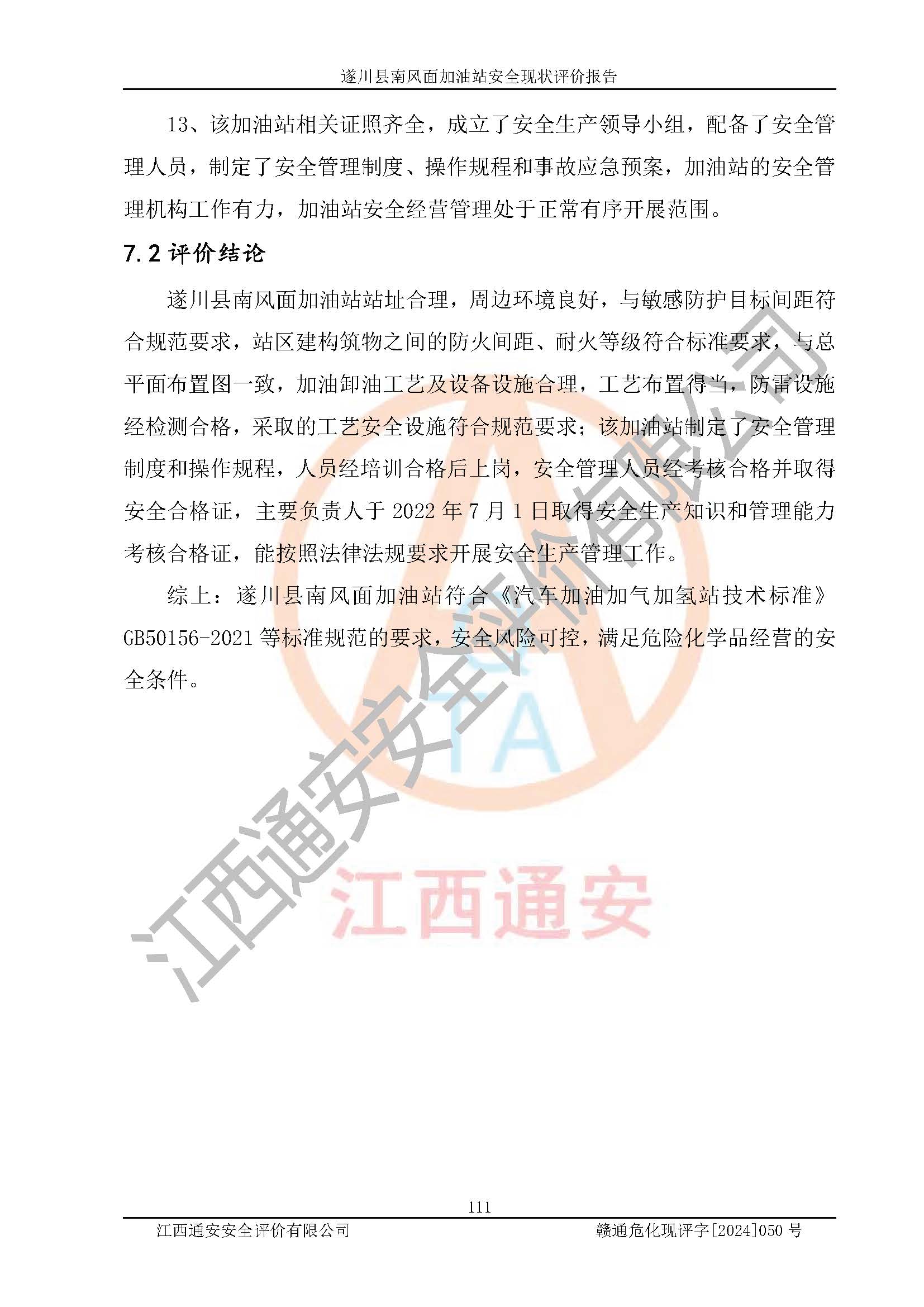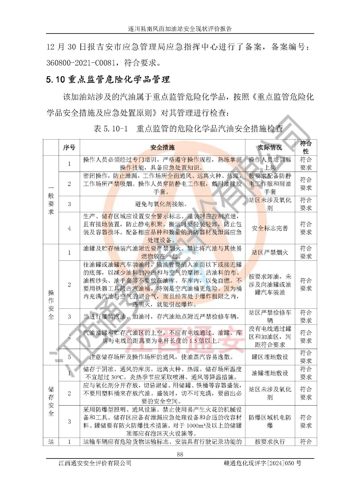 项目名称 | 遂川县南风面加油站安全现状评价报告 | ||||