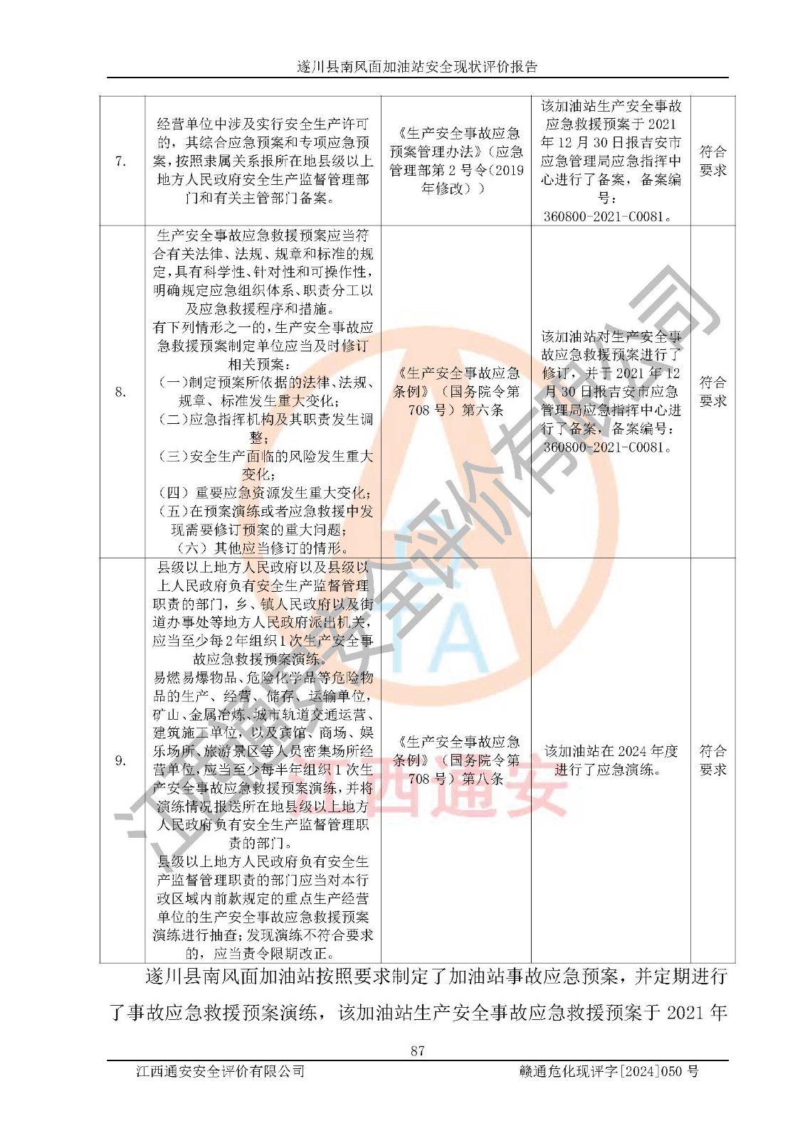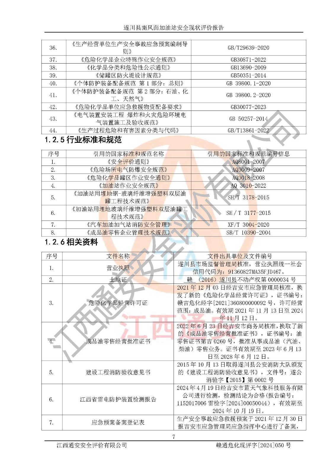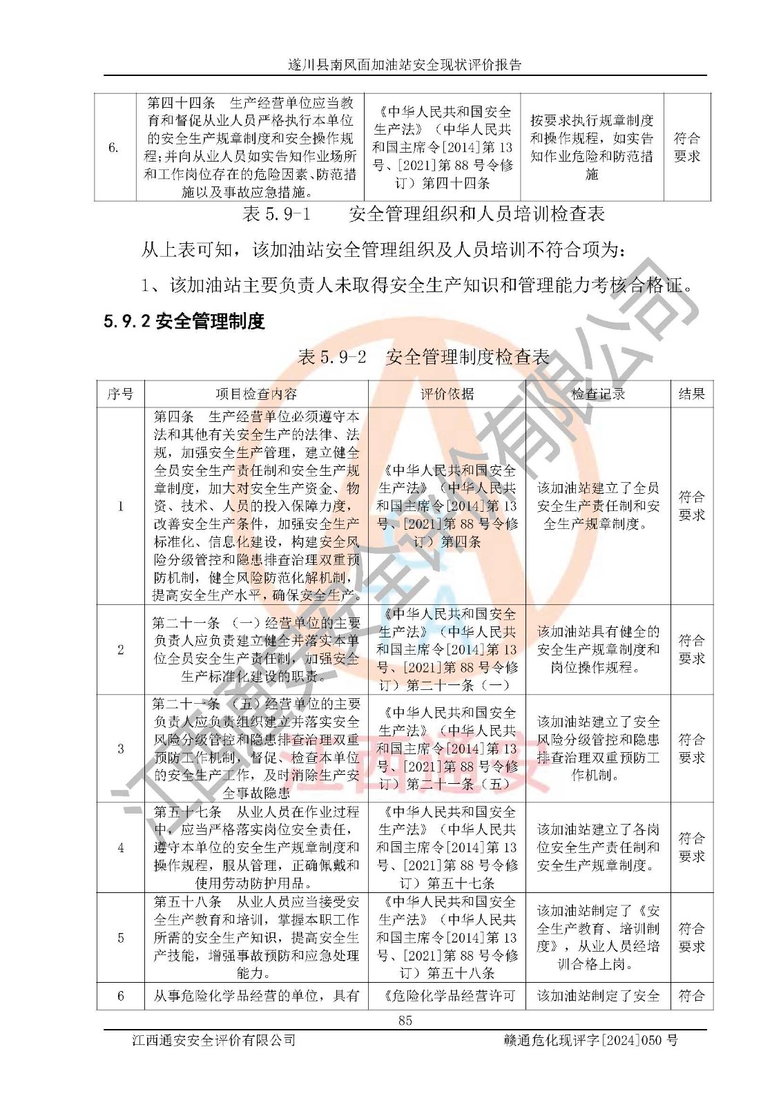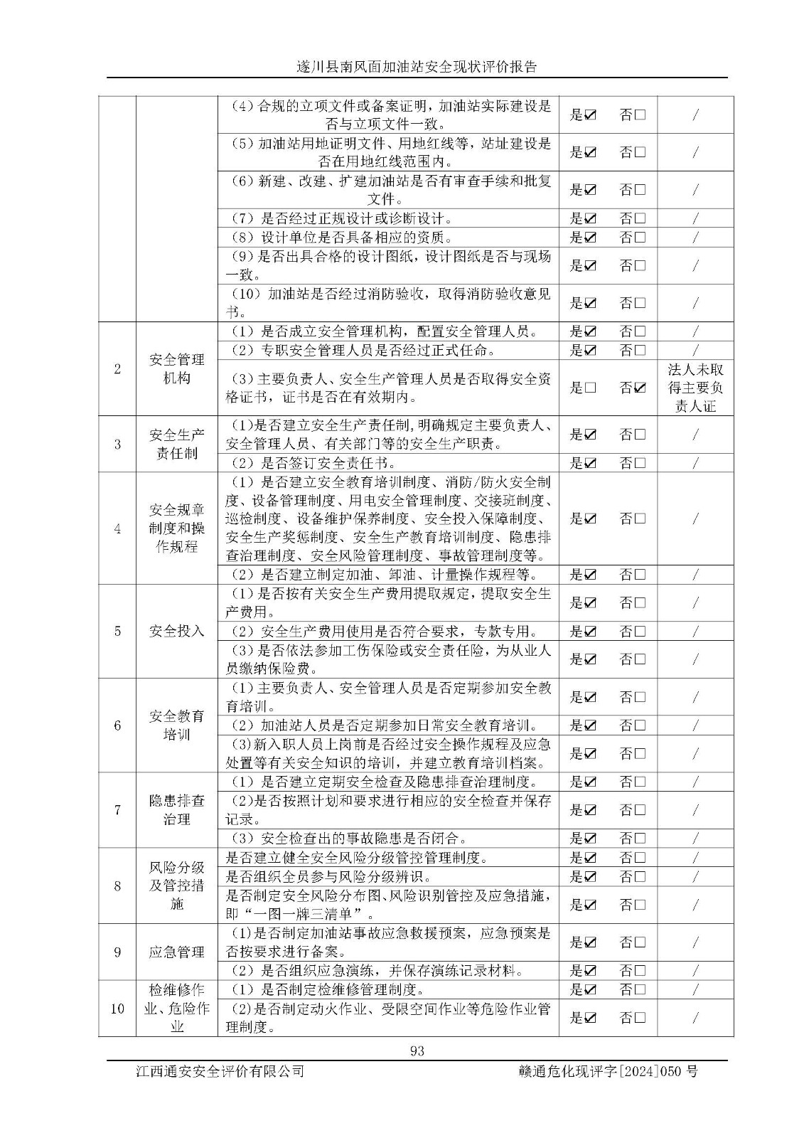 项目名称 | 遂川县南风面加油站安全现状评价报告 | ||||