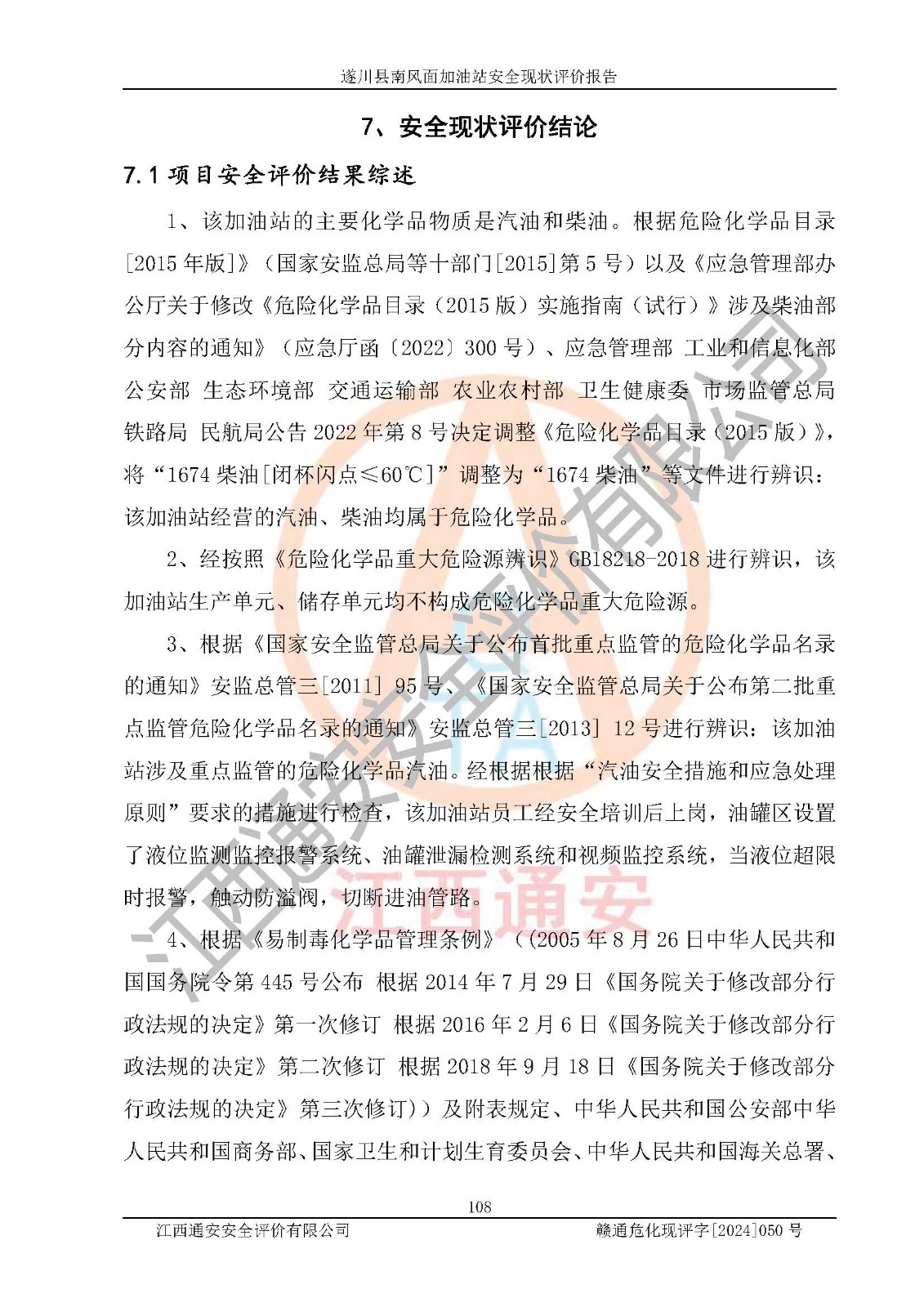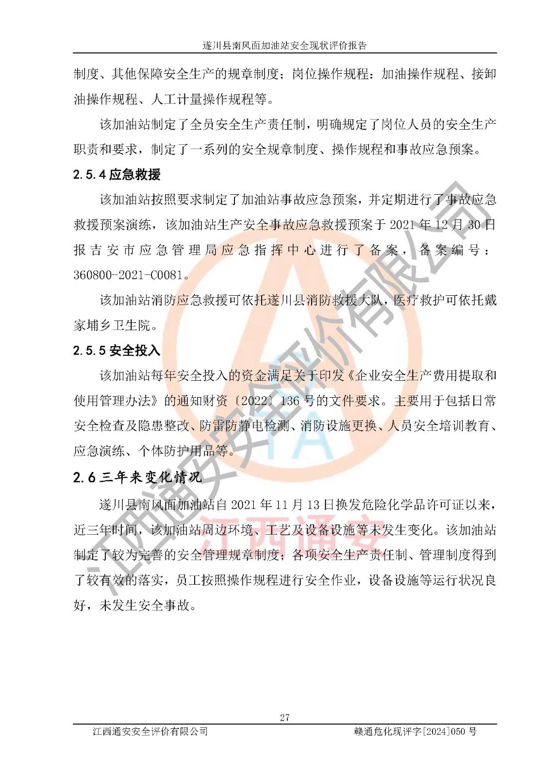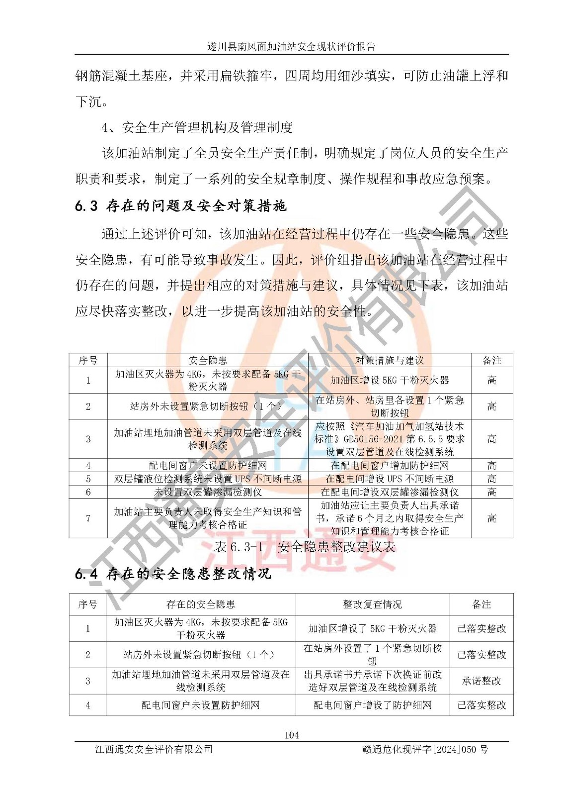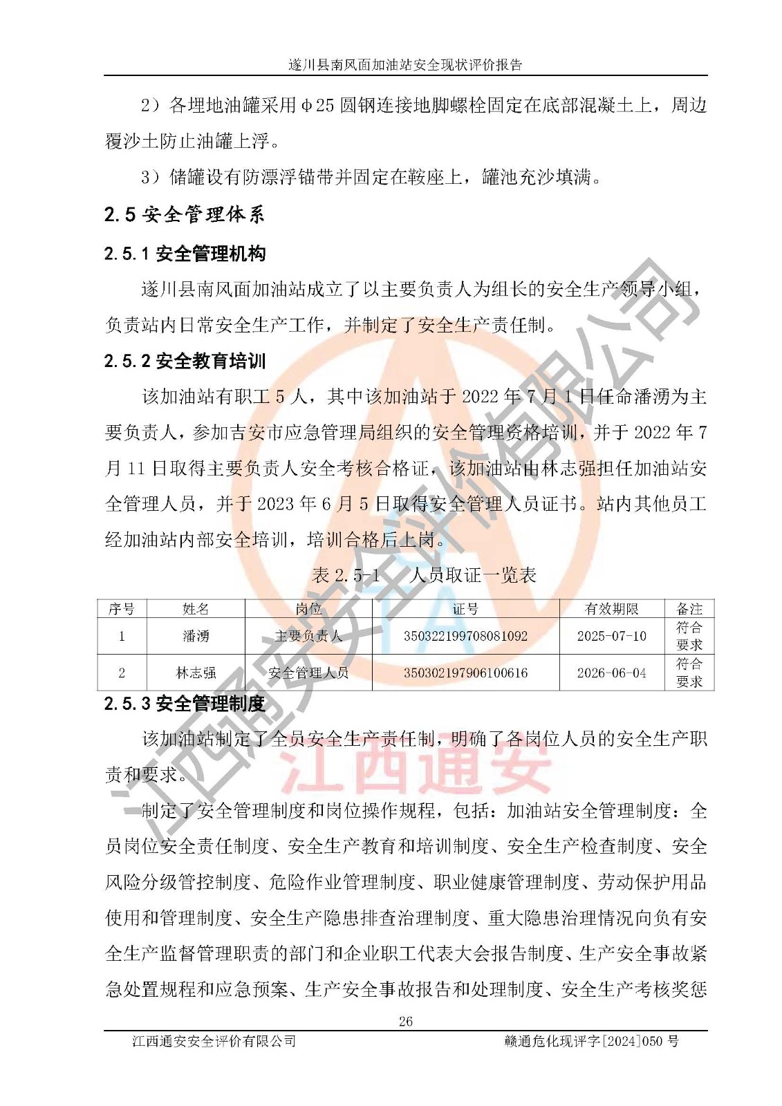 项目名称 | 遂川县南风面加油站安全现状评价报告 | ||||