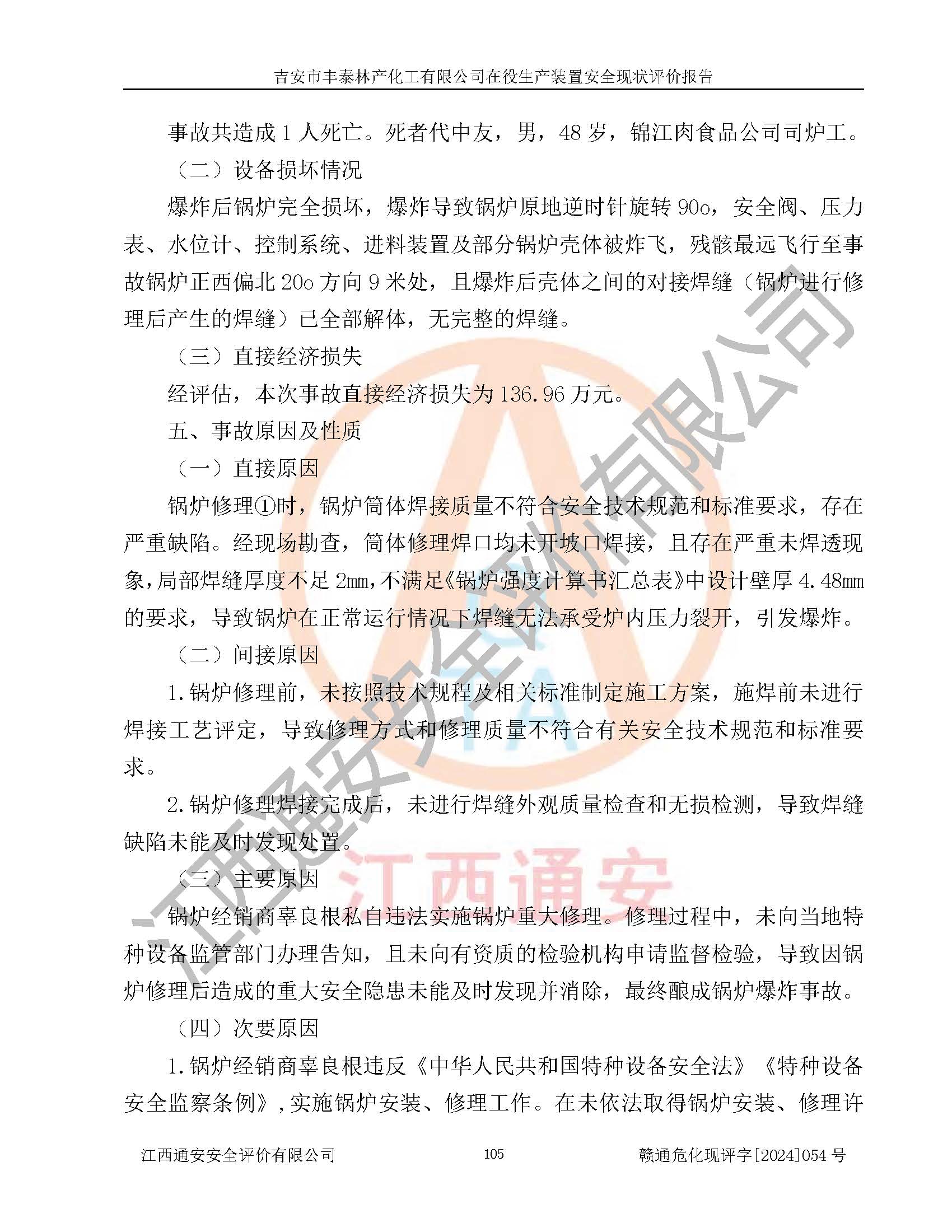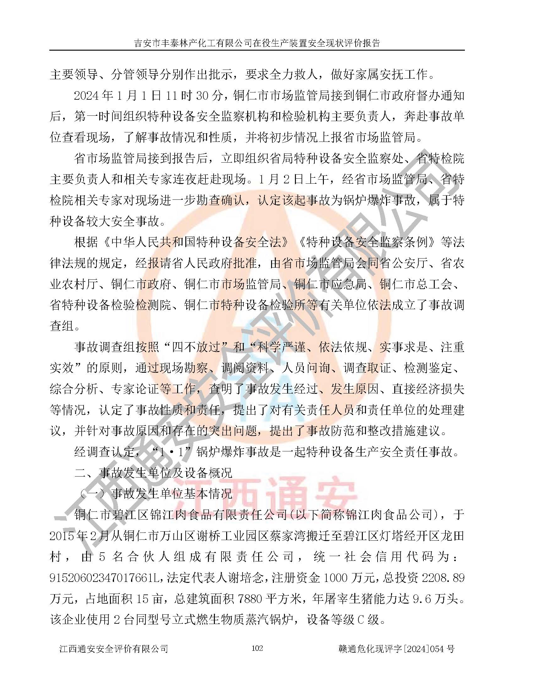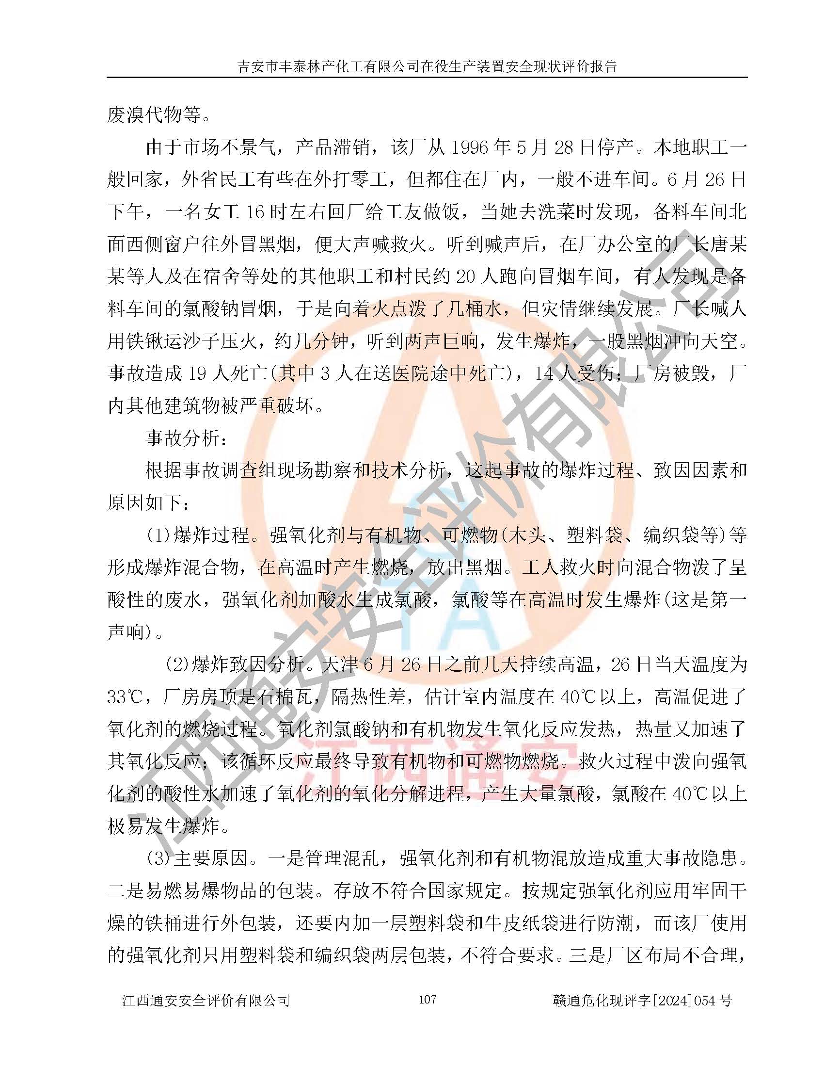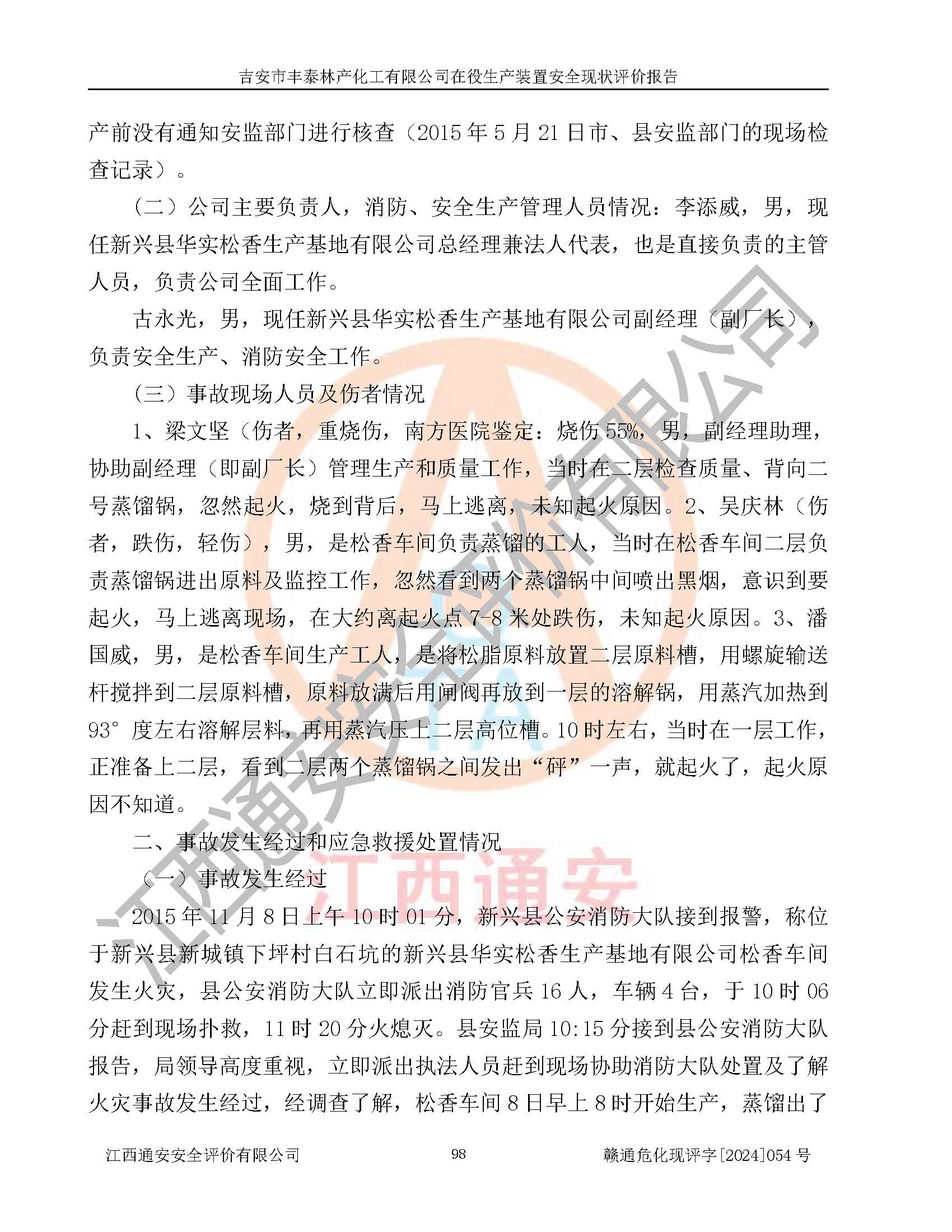 评价报告名称 | 吉安市丰泰林产化工有限公司在役生产装置安全现状评价报告 | |||
