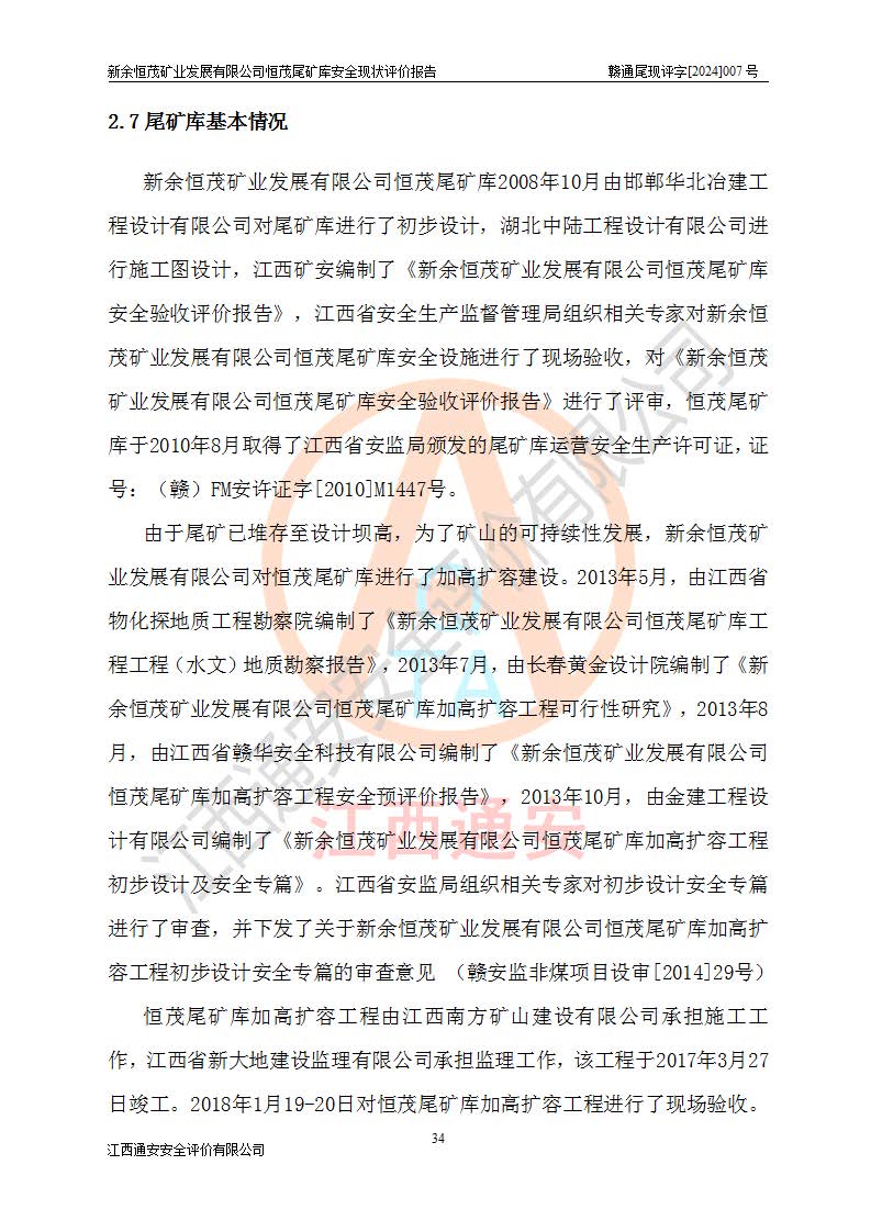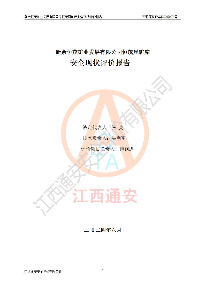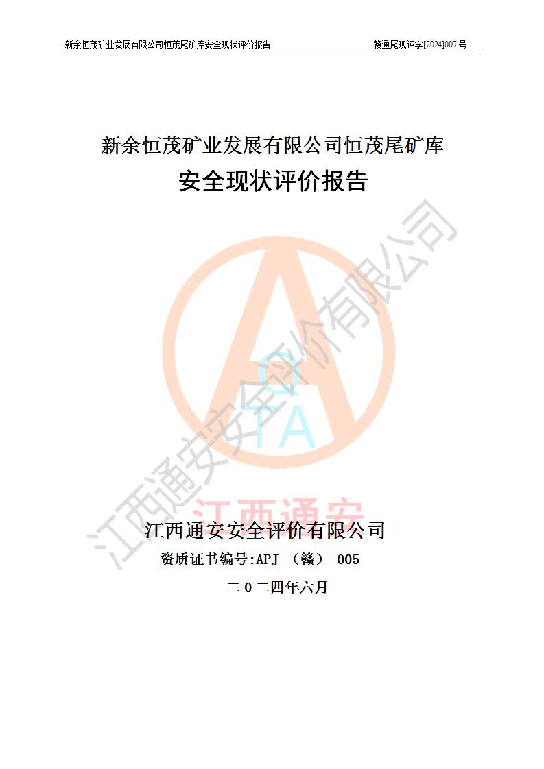 评价报告名称 | 新余恒茂矿业发展有限公司恒茂尾矿库安全现状评价报告 | |||
