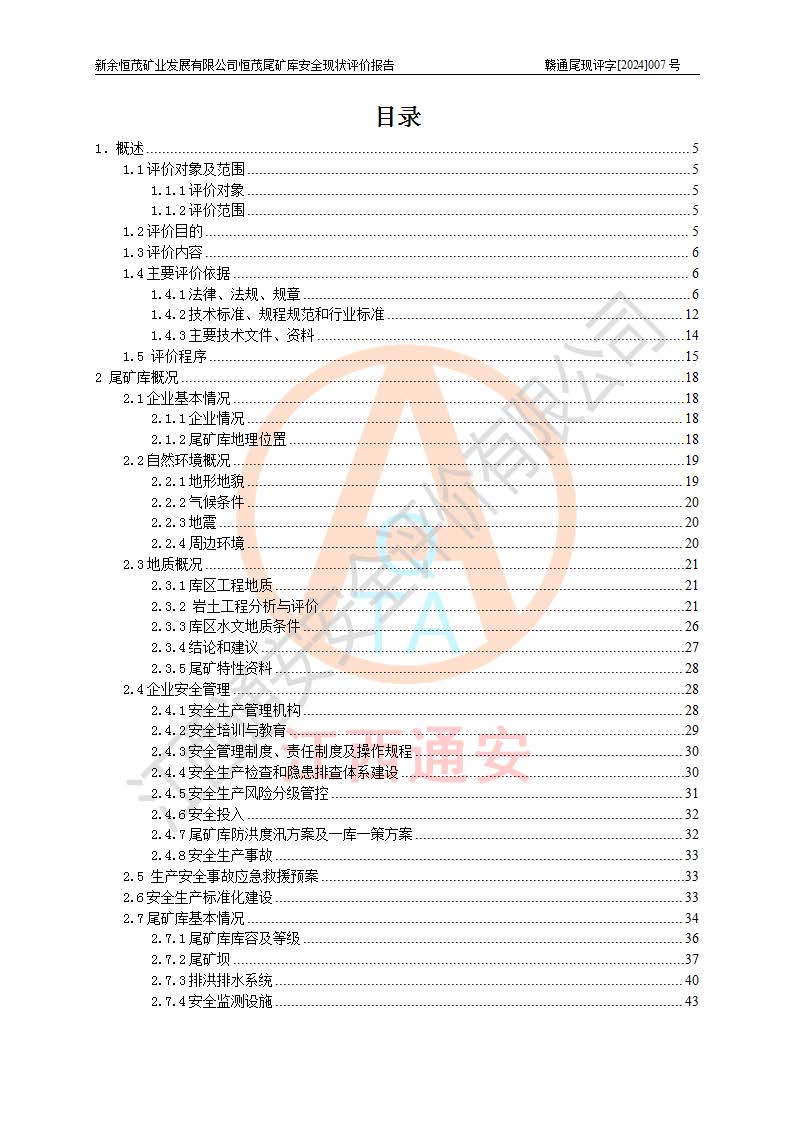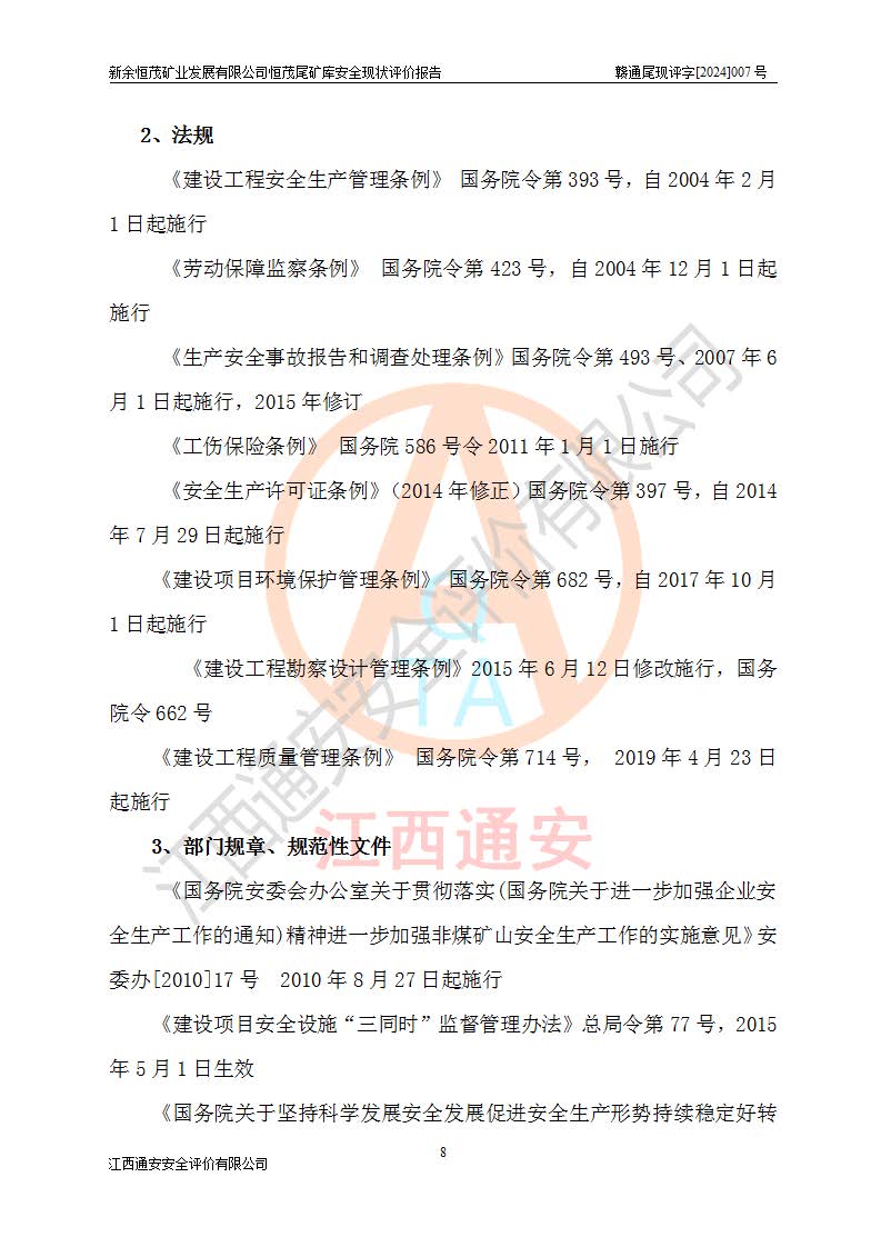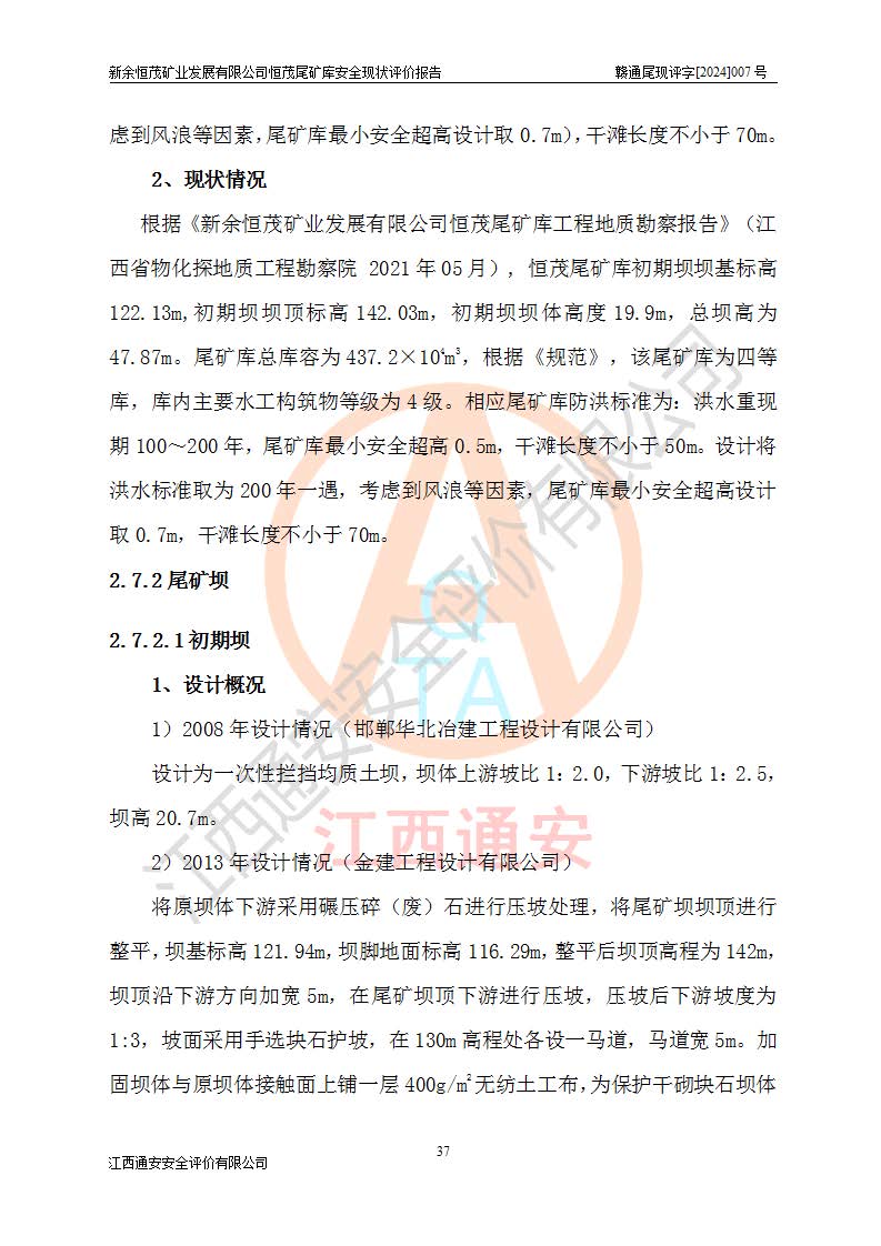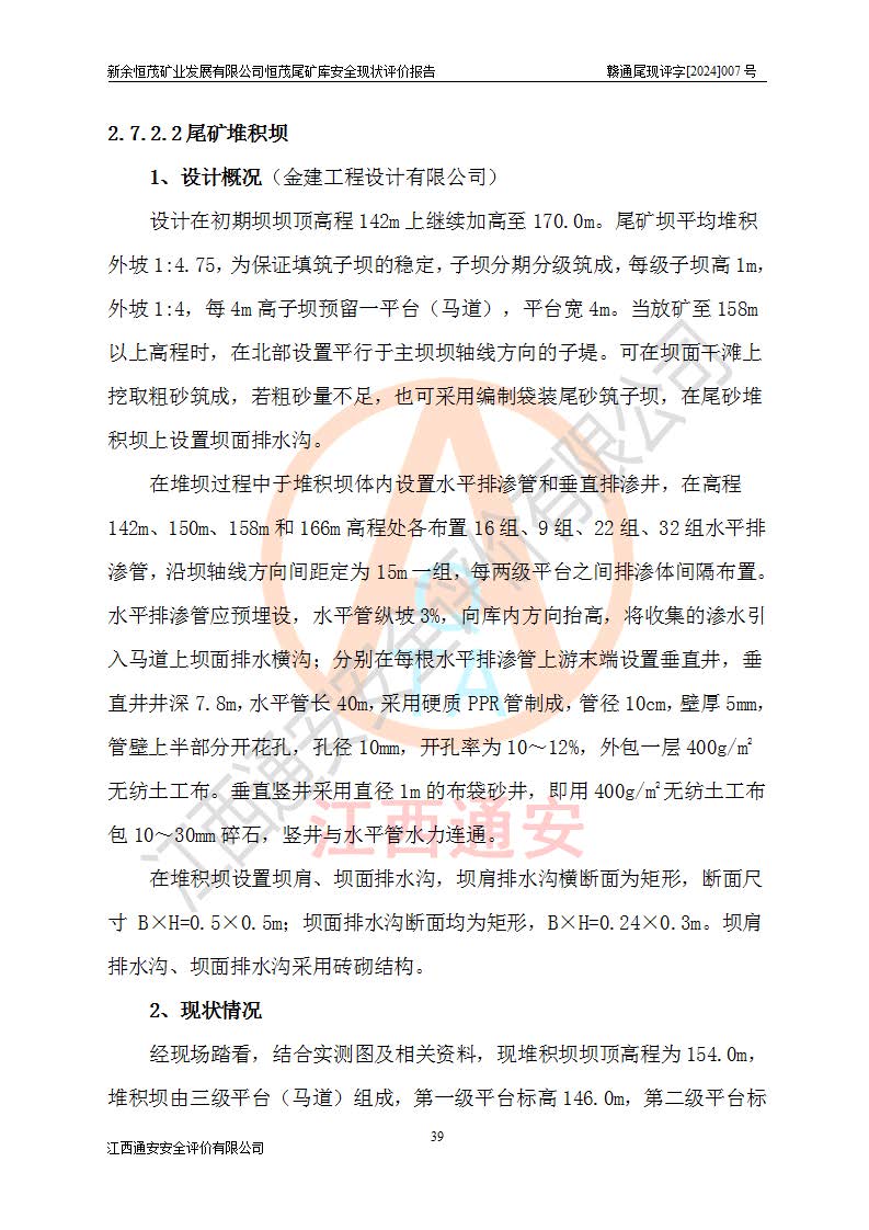 评价报告名称 | 新余恒茂矿业发展有限公司恒茂尾矿库安全现状评价报告 | |||
