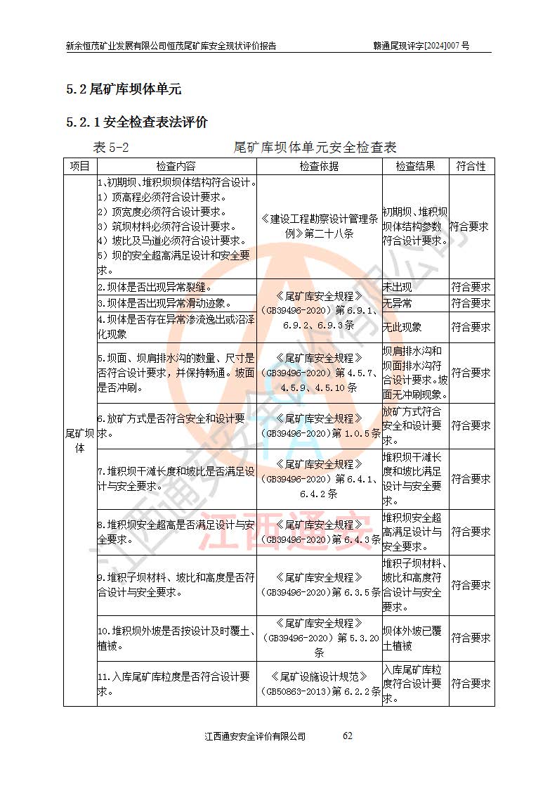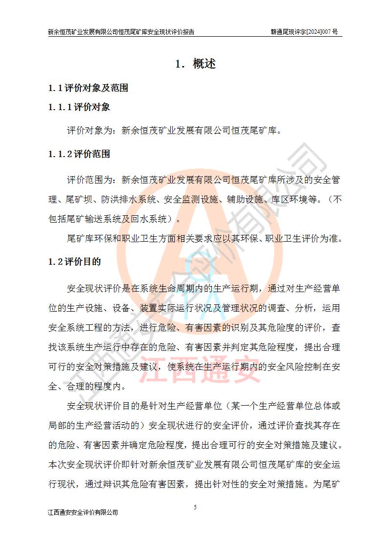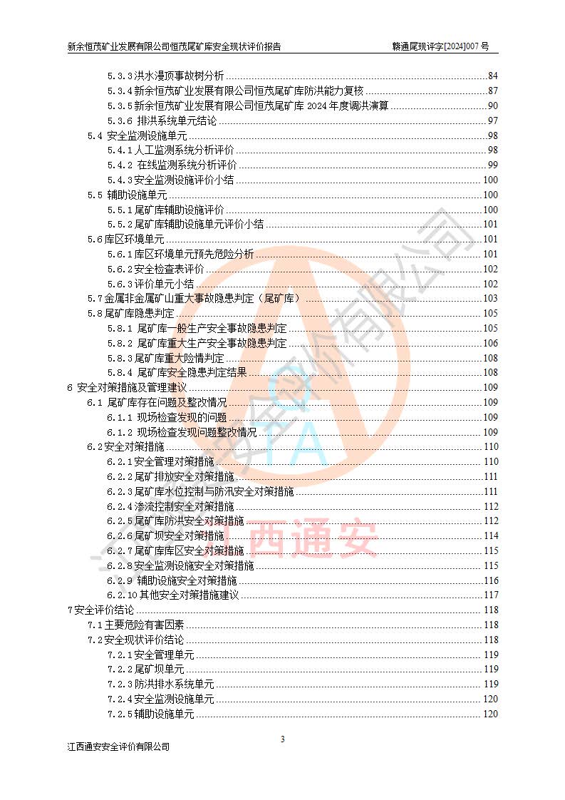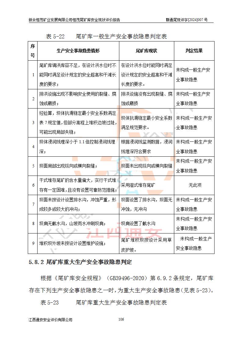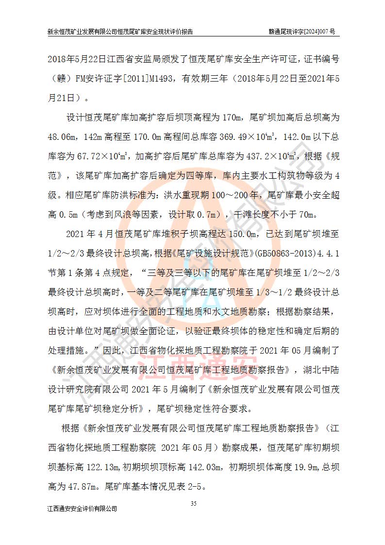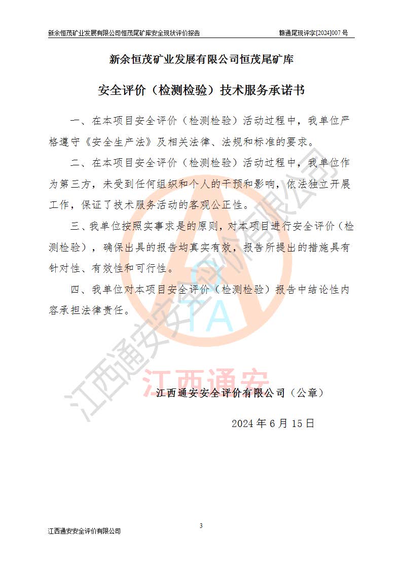 评价结论 | 新余恒茂矿业发展有限公司恒茂尾矿库为正常库,具备继续生产运行的安全生产条件。 | |||