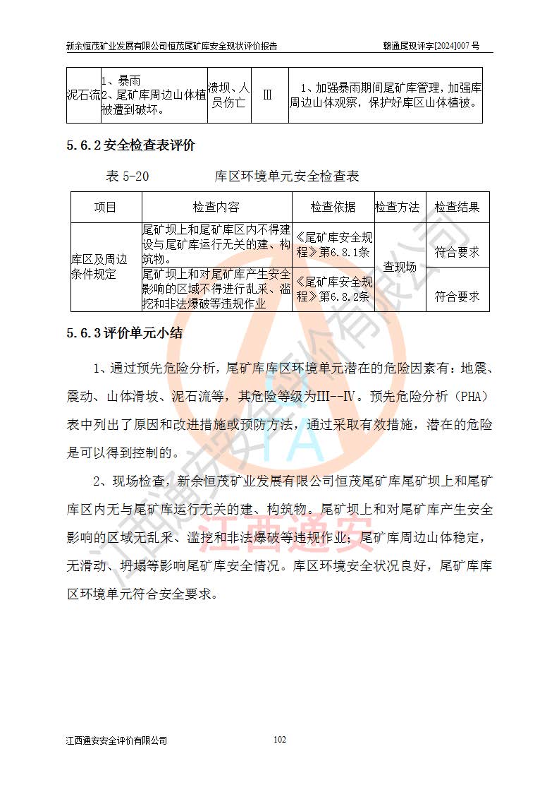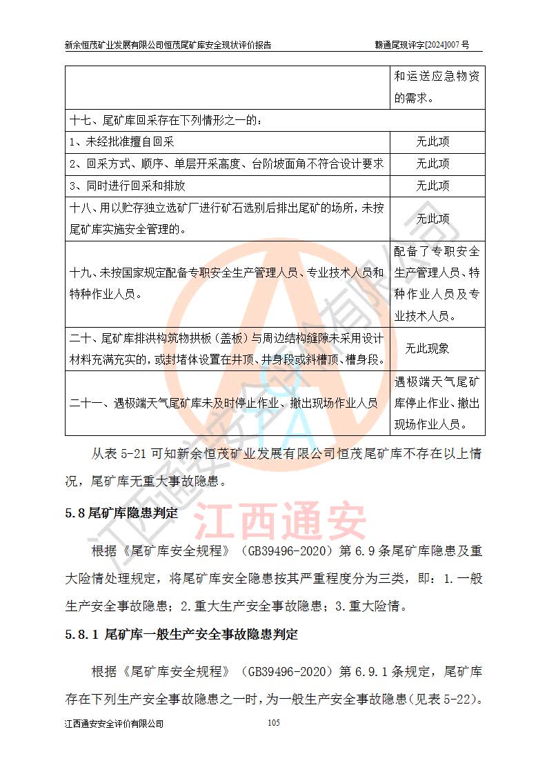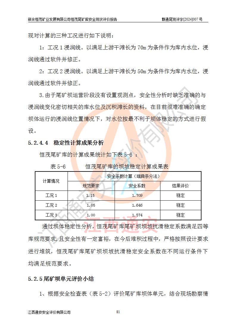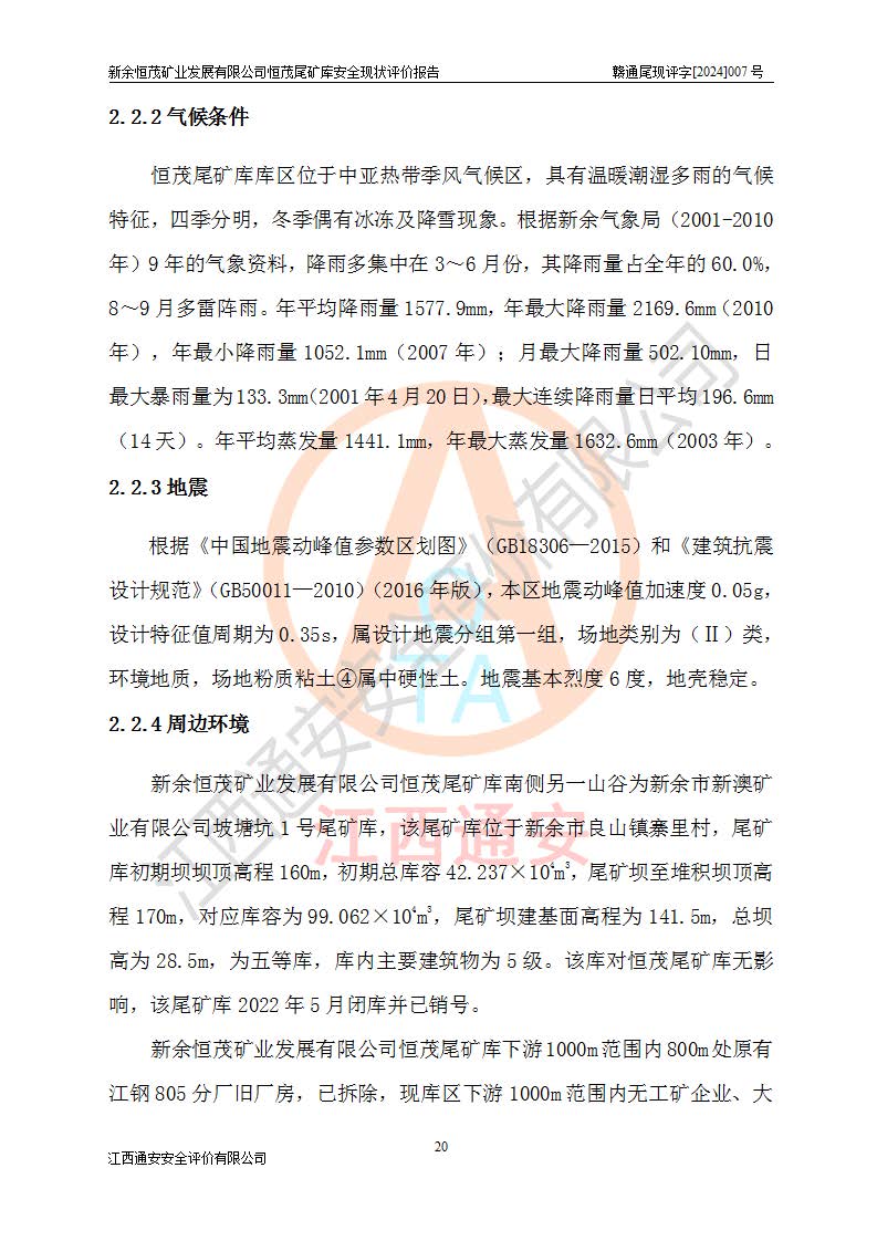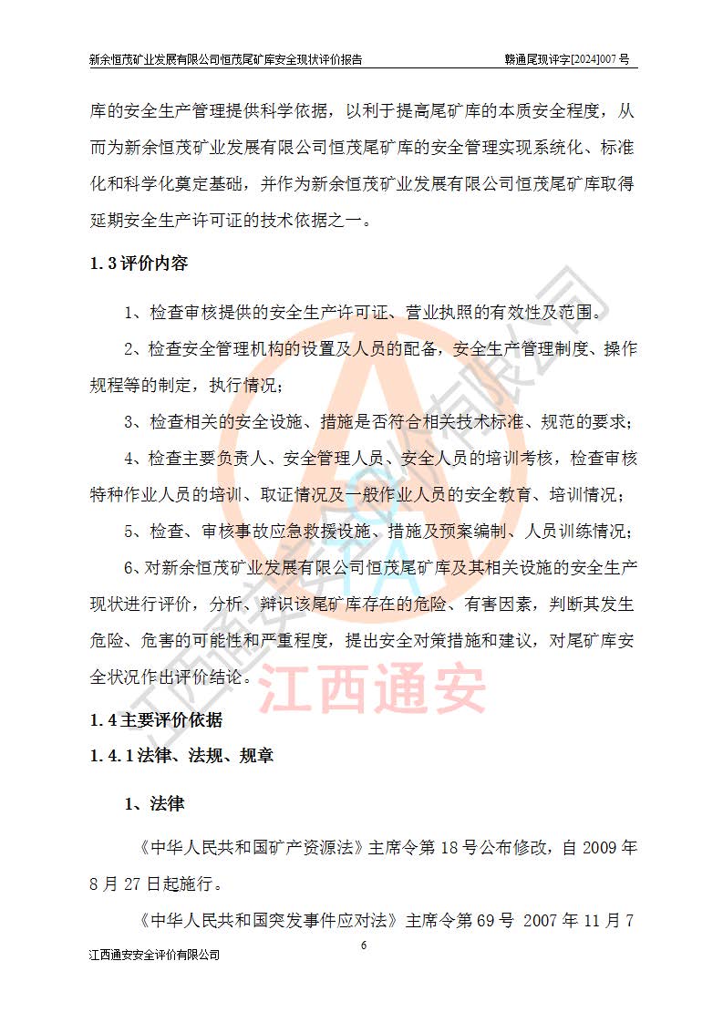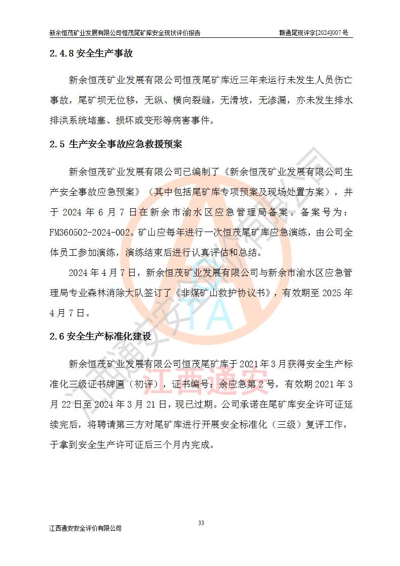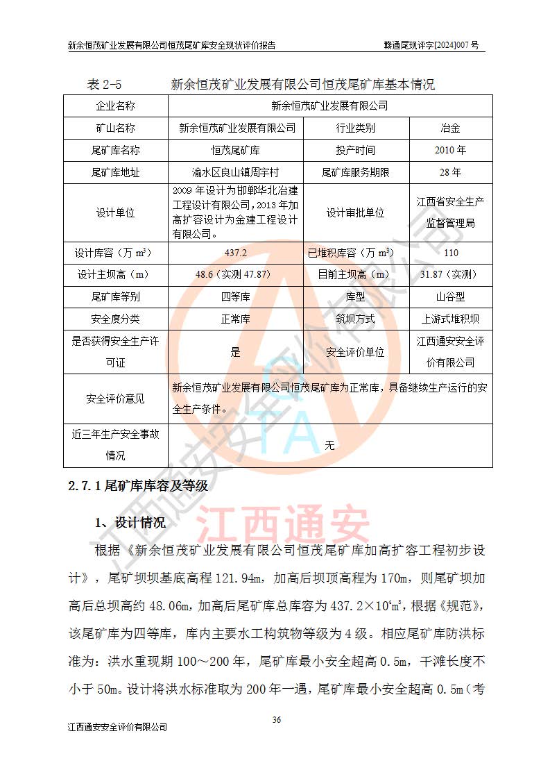 评价结论 | 新余恒茂矿业发展有限公司恒茂尾矿库为正常库,具备继续生产运行的安全生产条件。 | |||