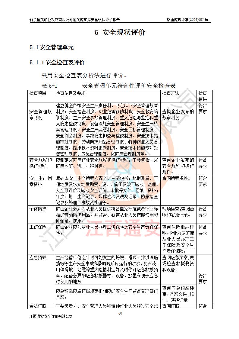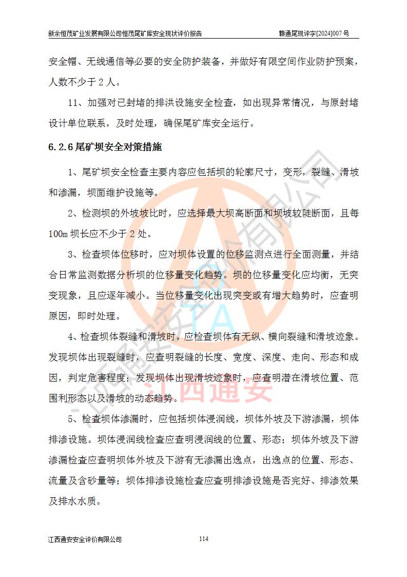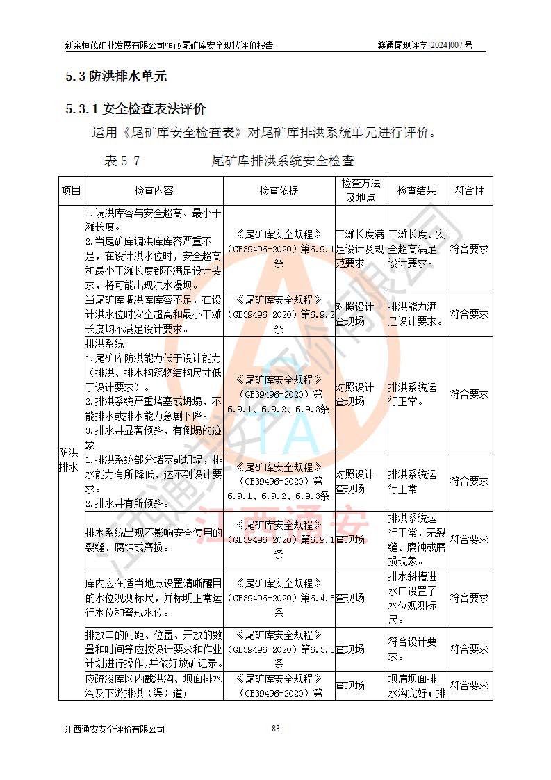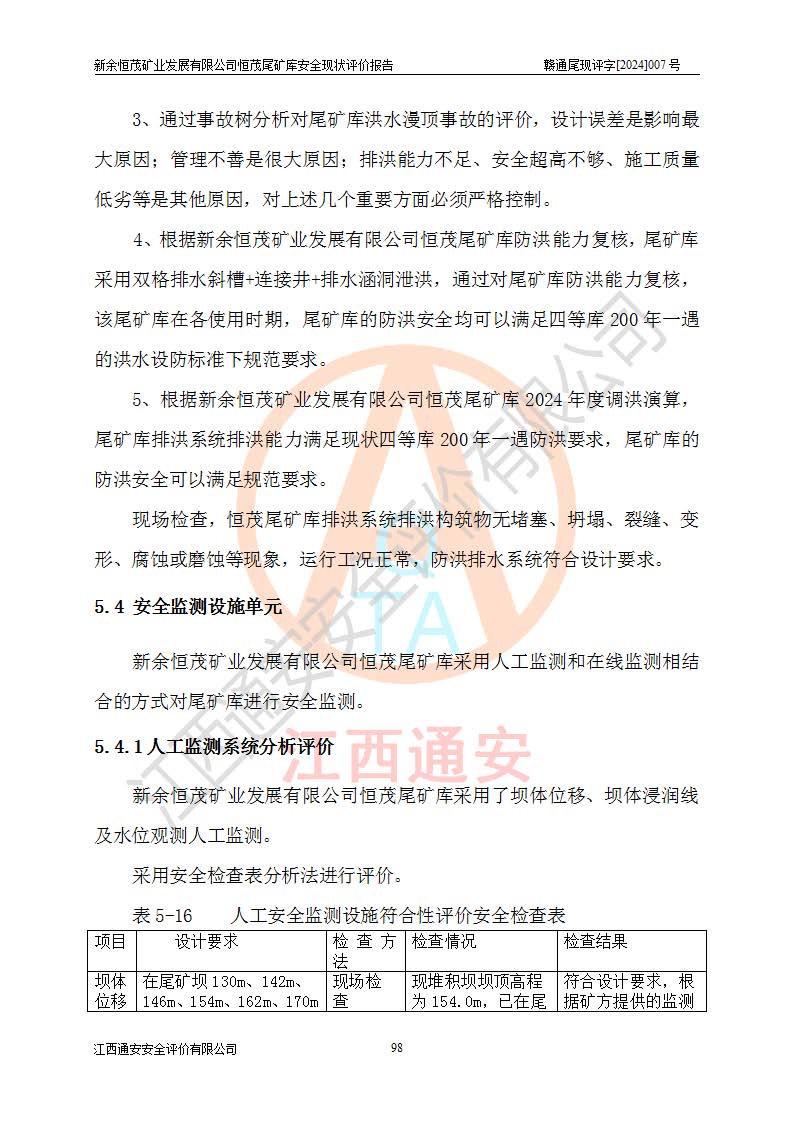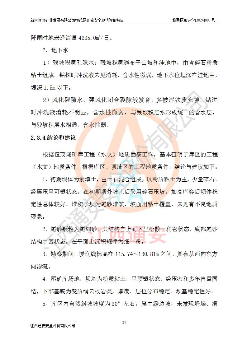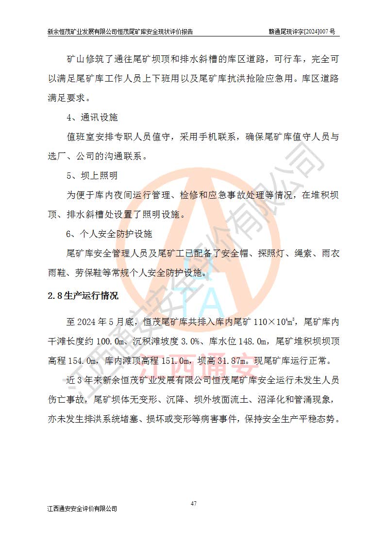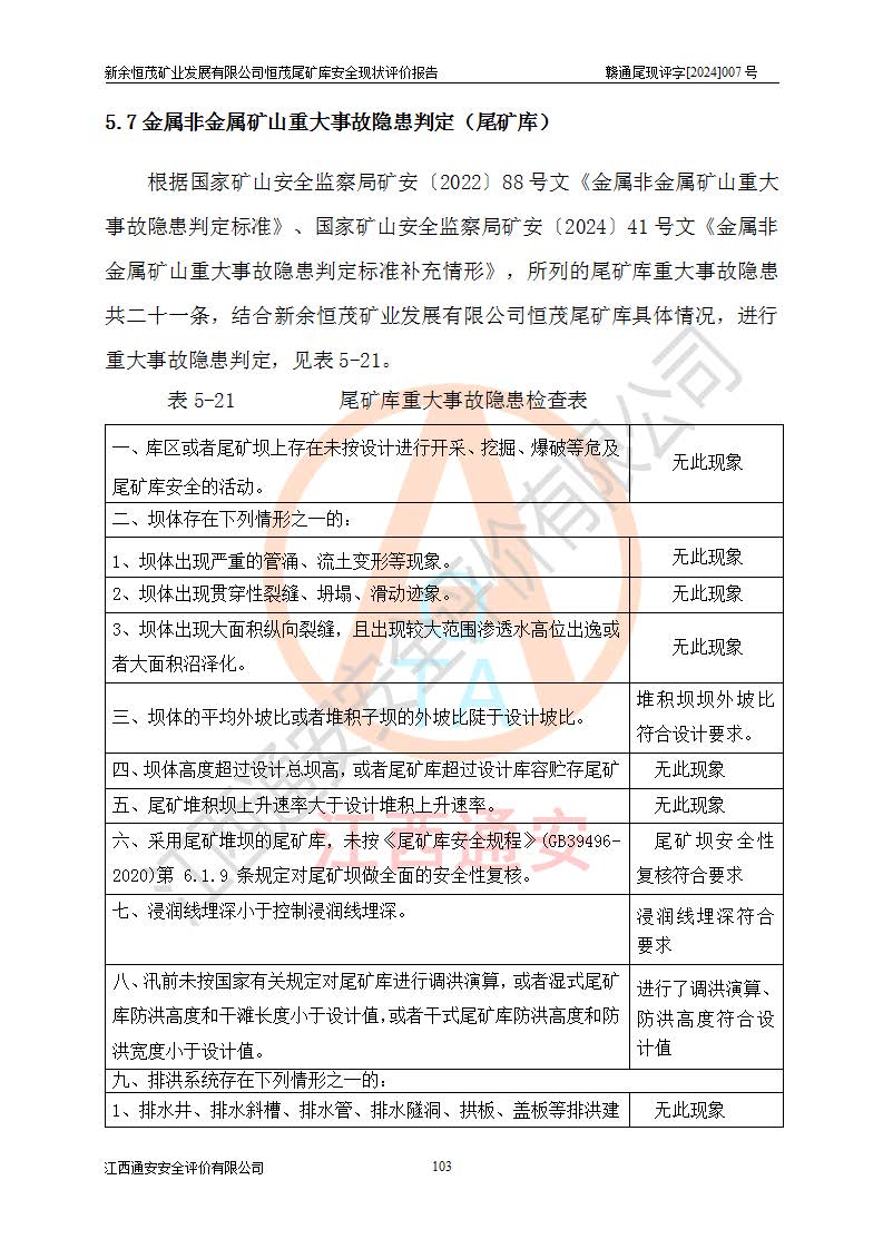 评价结论 | 新余恒茂矿业发展有限公司恒茂尾矿库为正常库,具备继续生产运行的安全生产条件。 | |||