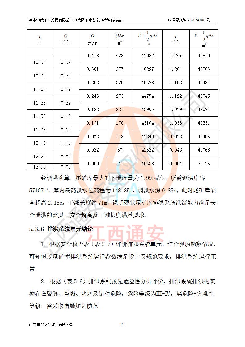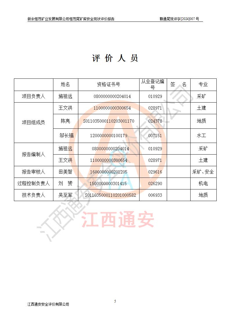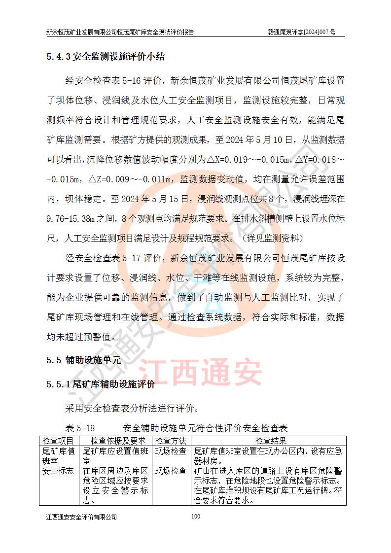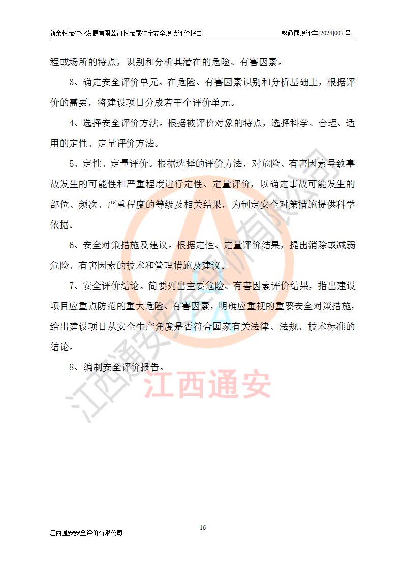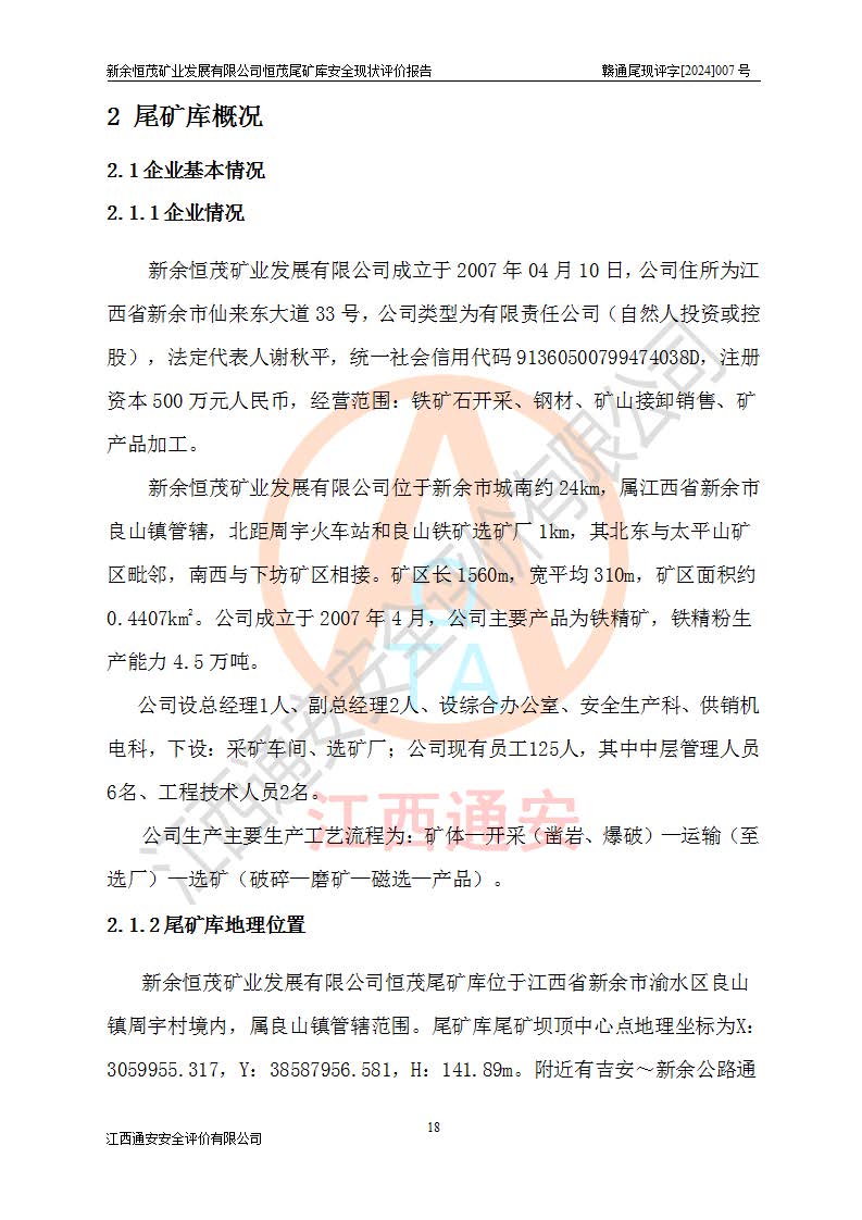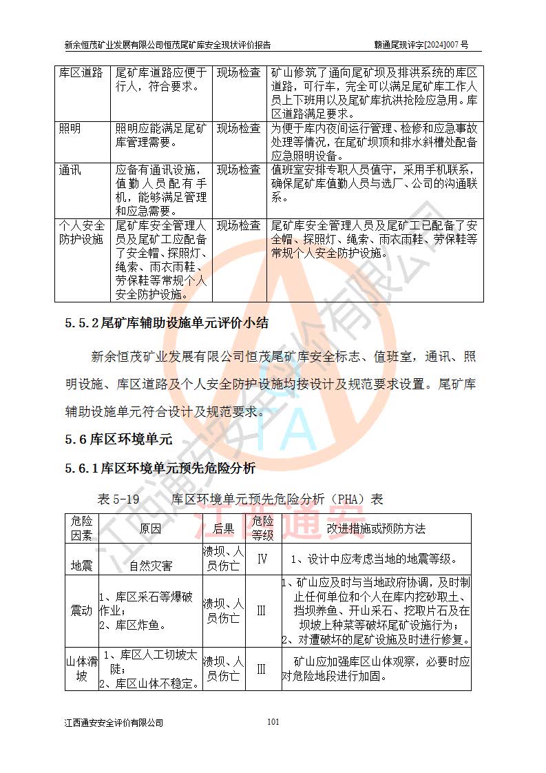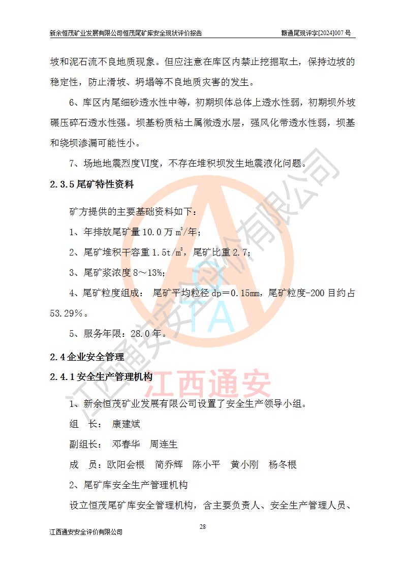 评价结论 | 新余恒茂矿业发展有限公司恒茂尾矿库为正常库,具备继续生产运行的安全生产条件。 | |||