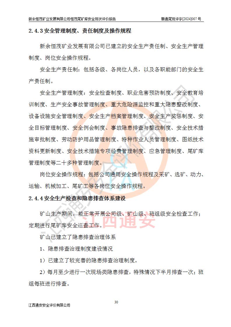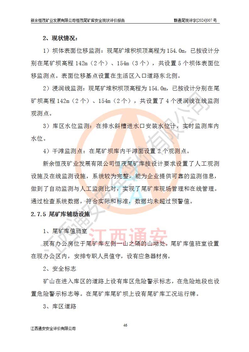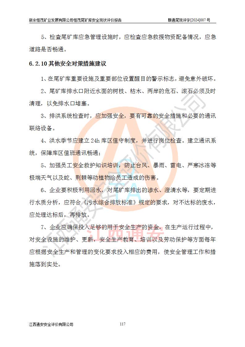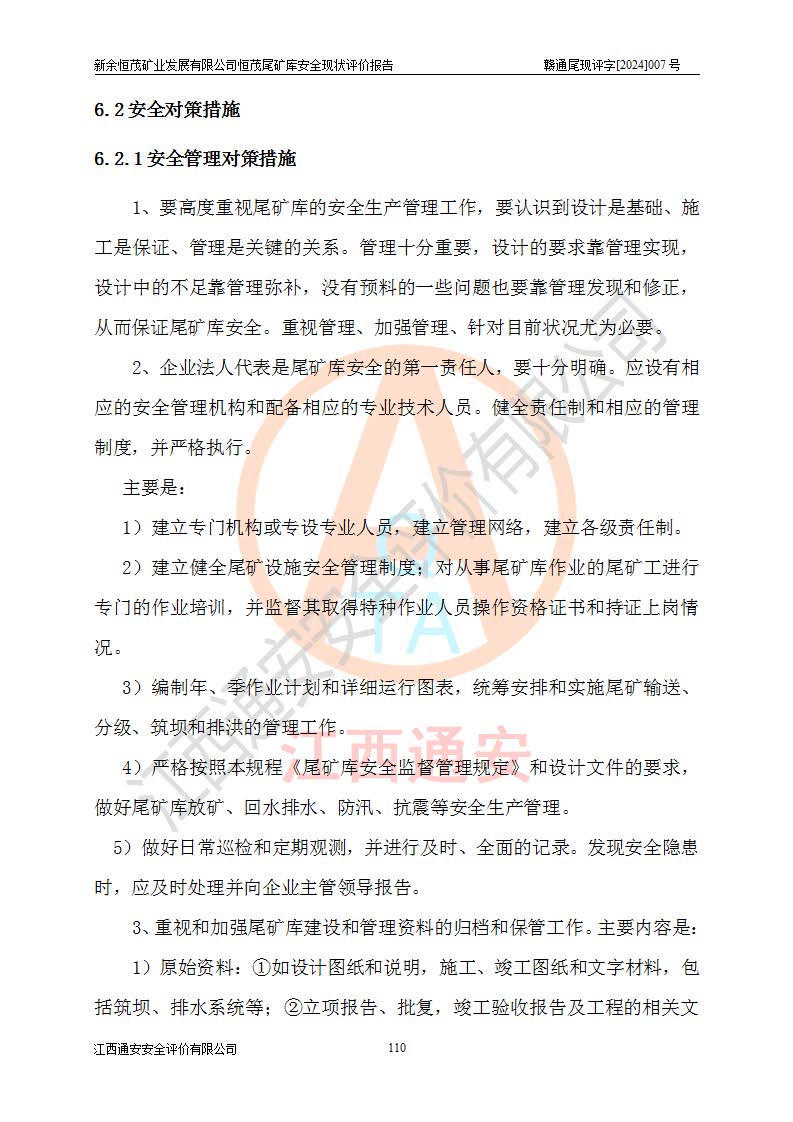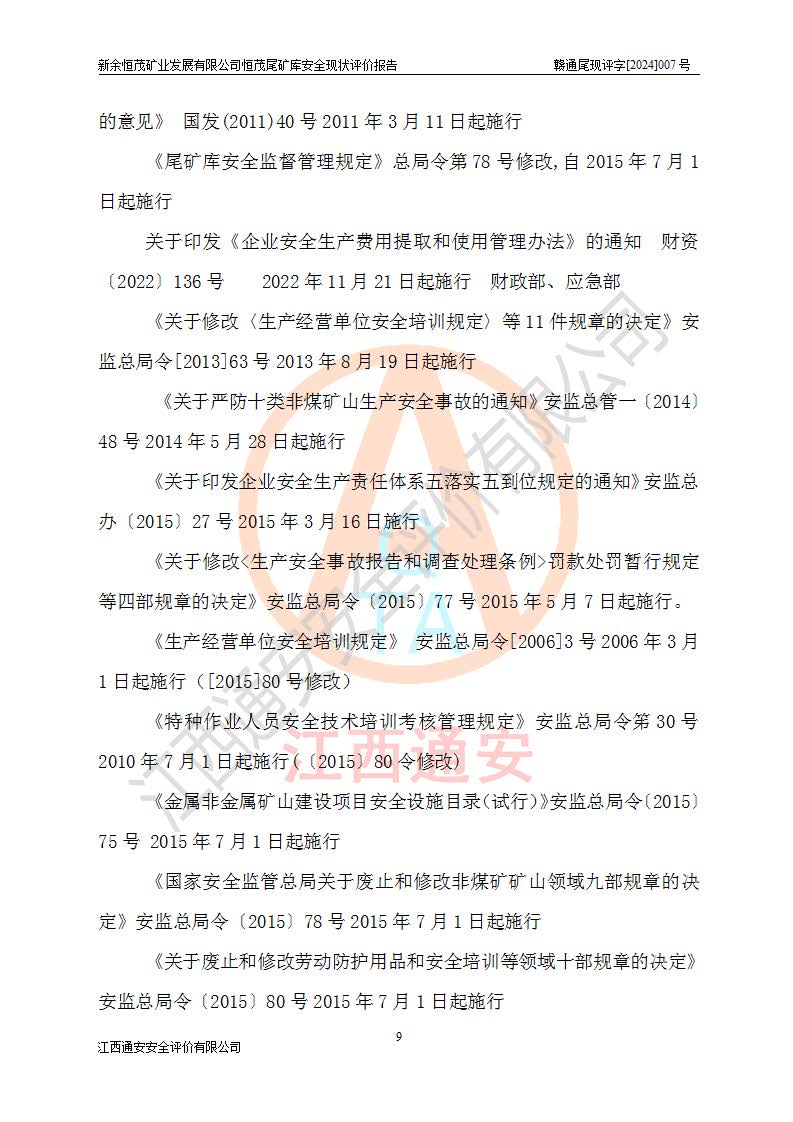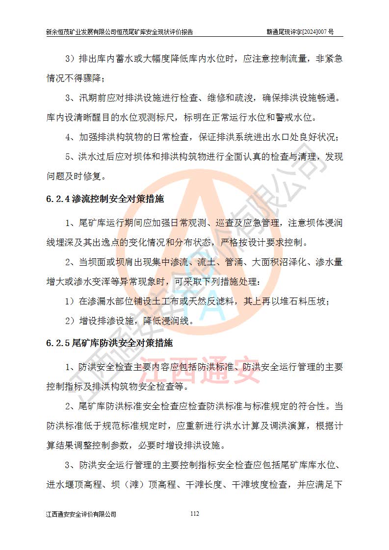 评价结论 | 新余恒茂矿业发展有限公司恒茂尾矿库为正常库,具备继续生产运行的安全生产条件。 | |||