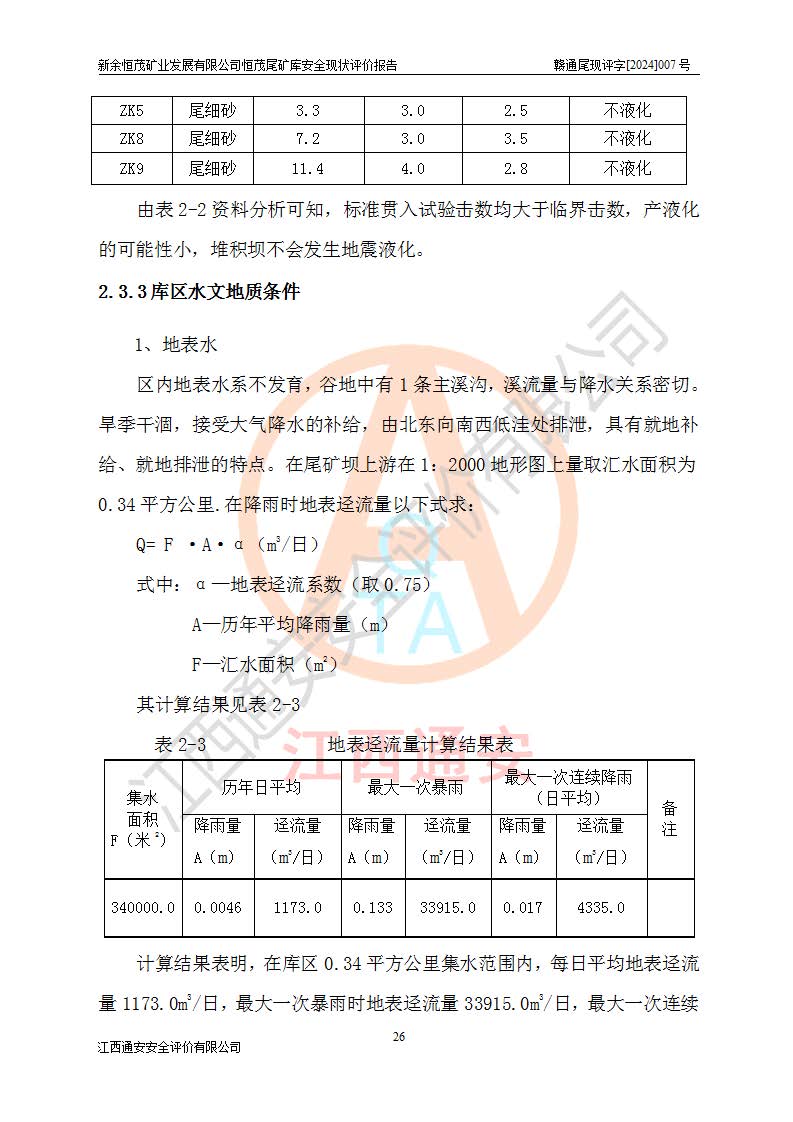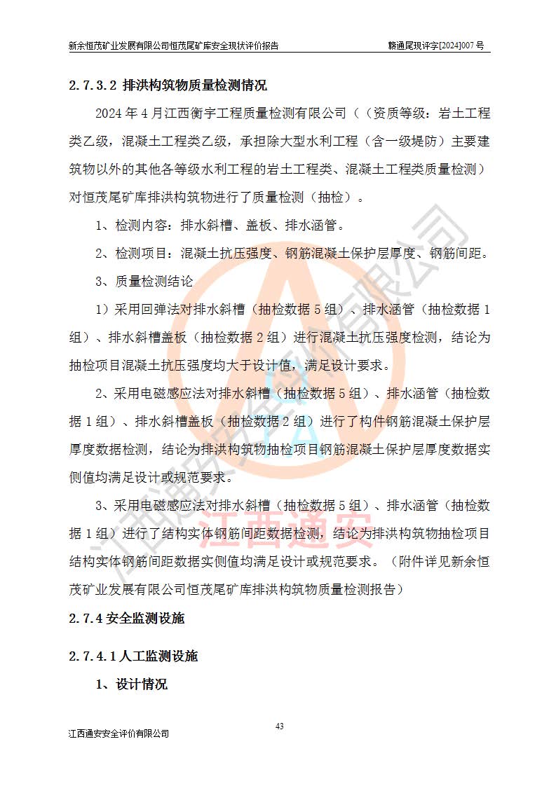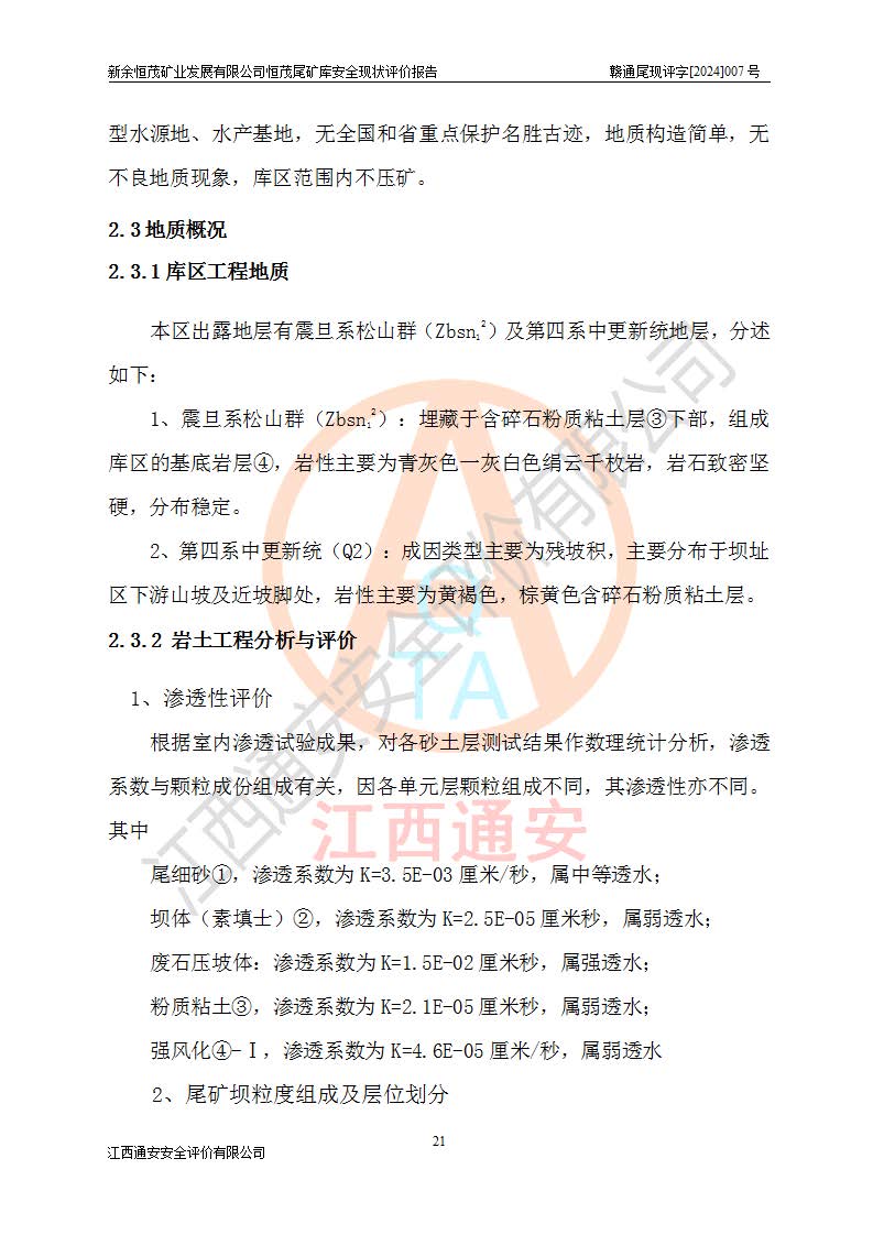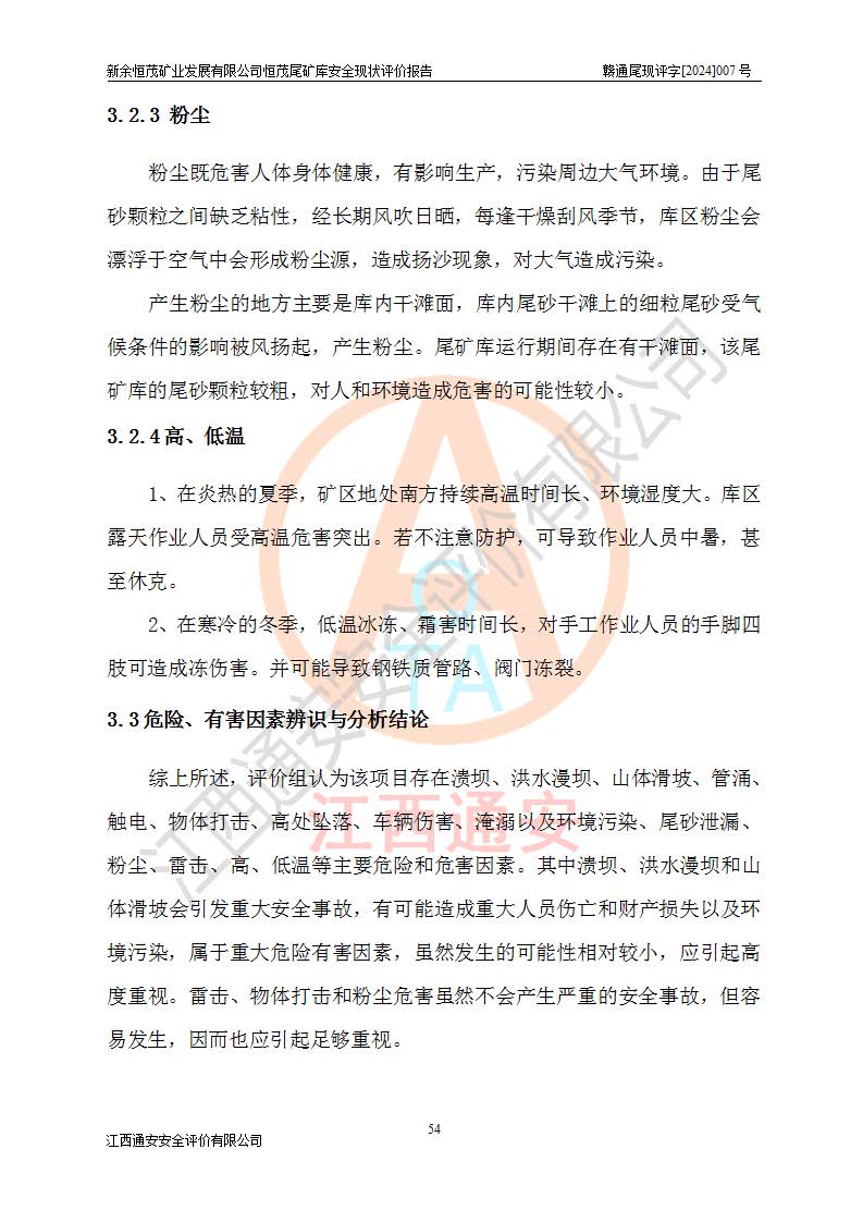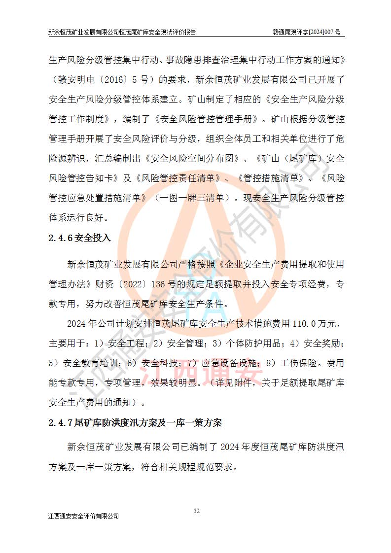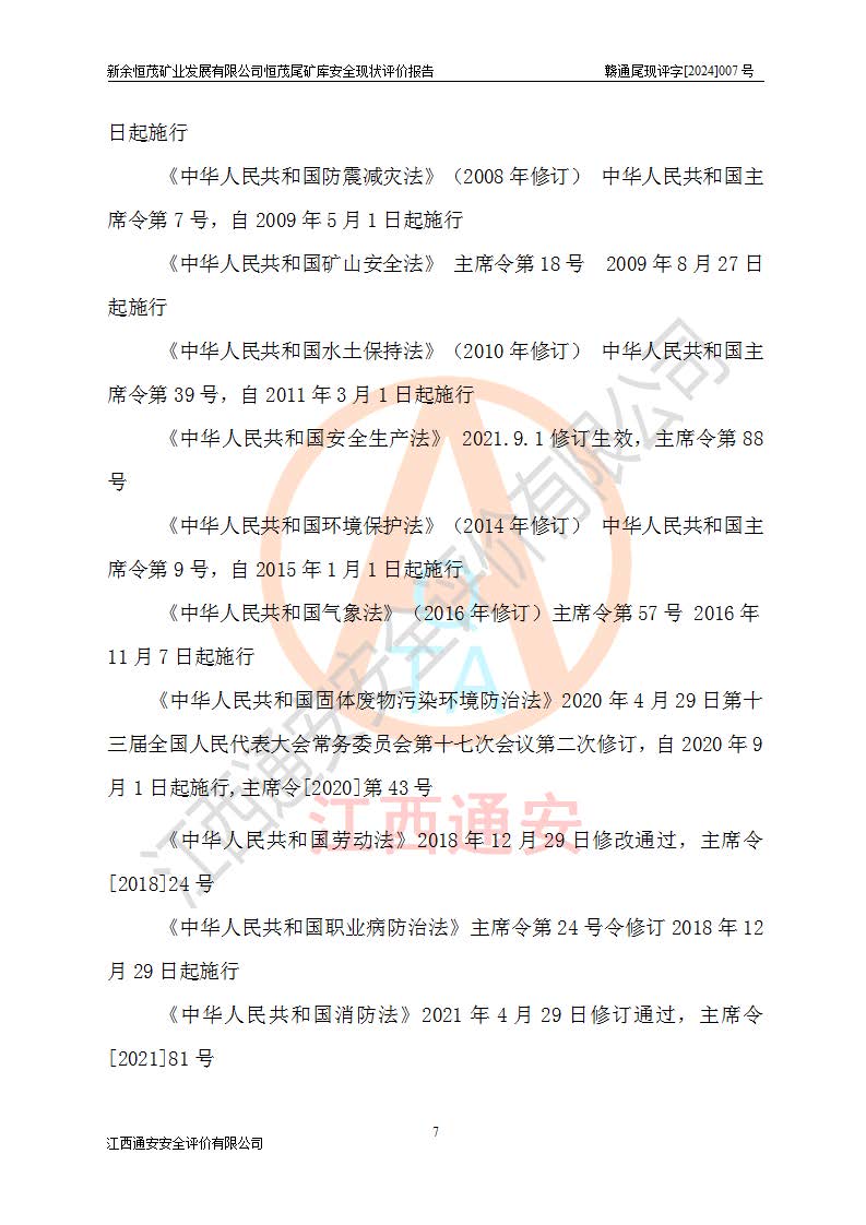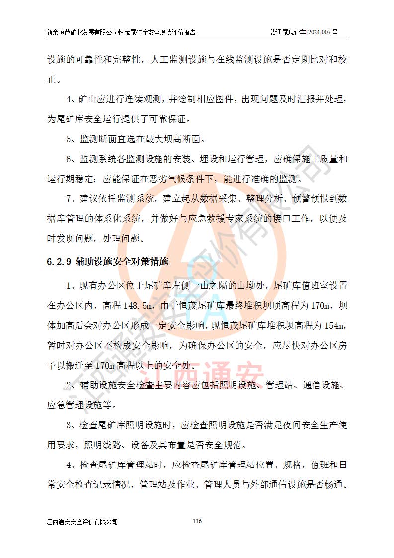 评价结论 | 新余恒茂矿业发展有限公司恒茂尾矿库为正常库,具备继续生产运行的安全生产条件。 | |||