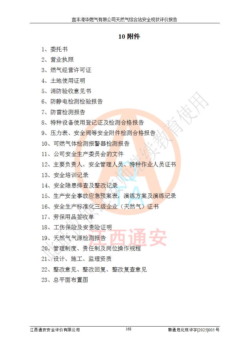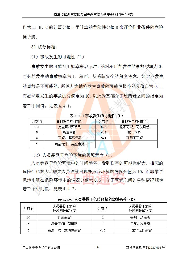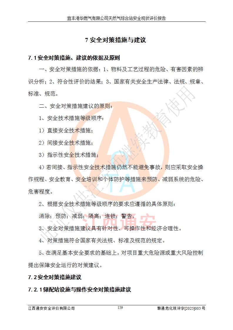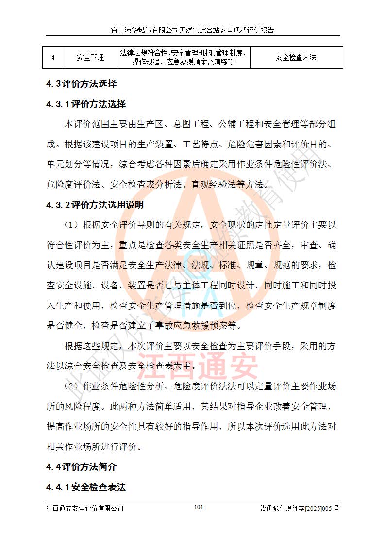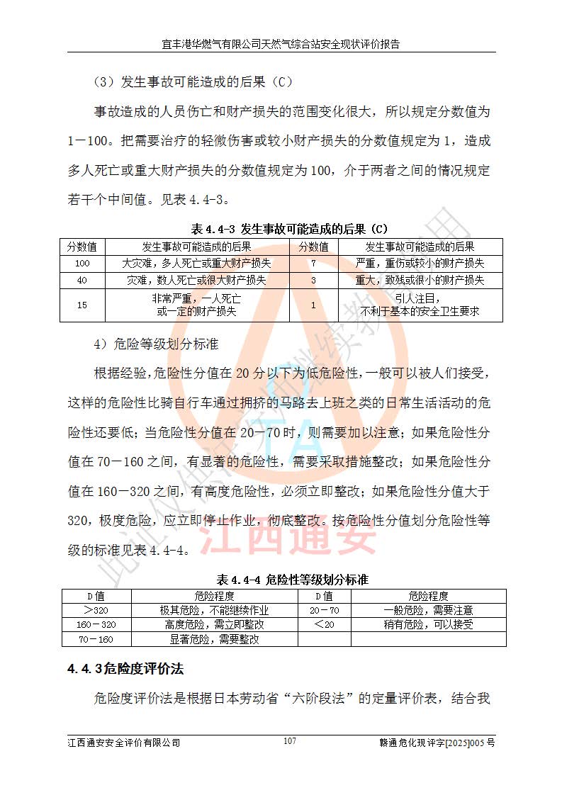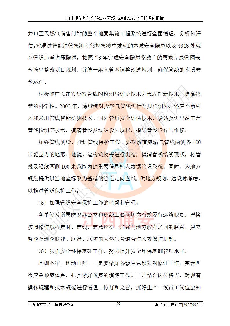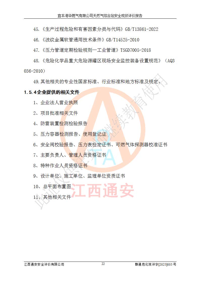 1、主要危险、危害因素辨识结果 宜丰港华燃气有限公司天然气综合站在生产经营过程中存在的主要危险有:火灾与爆炸、中毒窒息、触电、机械伤害、物体打击、**伤害、高处坠落、灼烫、低温冻伤、容器爆炸、淹溺等,存在的主要危害因素有:化学因素、物理因素(噪声、高温等)等,同时存在人为失误和管理缺陷。应重点防范的主要危险为火灾与爆炸、容器爆炸。 2、危险化学品辨识结果 经辨识,该储配站涉及的天然气、四氢噻吩及柴油属于危险化学品,天然气属于重点监管的危险化学品和特别管控危险化学品,不涉及监控化学品、易制毒化学品、易制爆危险化学品、剧毒化学品和高毒物品等危险化学品。 3、危险化学品重大危险源辨识结果 根据《危险化学品重大危险源辨识》(GB18218-2018)和《危险化学品重大危险源监督管理暂行规定》(2011)(40号令)(2015年 **安监总局令第79号修订)得出结论如下:该公司LNG储罐区构成三级重大危险源,其余生产单元及储存单元不构成危险化学品重大危险源。 4、重点监管危险化工工艺辨识结果 根据《**安全监管总局关于公布首批重点监管的危险化学品名录的通知》安监总管三[2011]95号、《**安全监管总局关于公布第二批重点监管危险化学品名录的通知》安监总管三[2013]12号进行辨识,该天然气储配站不涉及重点监管的危险化工工艺。 5、作业条件危险性分析结果: 液化天然气的储罐区、调压计量气化加臭区、卸车区、变配电、厂内运输、消防水池作业等单元。等单元危险程度均为“一般危险,需要注意”或“稍有危险,可以接受”级别。作业条件相对安全。 6、危险度评价结果:工艺装置区等级为Ⅱ级,危险程度为中度危险。LNG储罐区等级为Ⅰ级,危险程度为**危险。 7、事故后果预测结果:本报告采用中国安全生产科学研究院研发的重大危险源区域定量风险评价(CASST-QRA)软件对可能发生的危险化学品事故进行预测,宜丰港华燃气有限公司天然气综合站LNG储罐容器整体破裂,发生BLEVE灾害模式后果*大,*大死亡半径为181m,重伤半径为243m,轻伤半径为448m。 8、多米诺效应分析结果:该公司LNG储罐发生容器整体破裂引发的BLEVE事故的多米诺半径*大,为141m。 9、采用安全检查表评价法对该储配站周边环境、总平面布置、站内建构筑物防火间距、站内交通、LNG卸车、储罐、气化装置、加臭装置、调压装置、安全附件、工艺设备、管道、自动化控制等供配电、给排水、消防设施、供热装置、安全管理、“两重点一重大”安全措施及安全管理进行定性评价,不符合项共2项,其他均符合**法律、法规、标准、规范的要求。 (1)企业对不符合项整改完成后,安全条件符合燃气储存经营的安全要求。 (2)该储配站涉及“两重点一重大”,采取了首批重点监管的危险化学品安全措施和应急处置措施,站内LNG罐区构成三级重大危险源,采取的重大危险源安全技术和监控措施符合相关要求。 (3)根据《燃气经营许可管理办法》(建城〔2014〕167号发布,建城规〔2019〕2号修改)制成安全检查表对该单位的经营条件逐一检查,检查结果符合要求。 (4)根据《住房城乡建设部关于印发《城镇燃气经营安全重大隐患判定标准》的通知》(建城规[2023]4号)要求,对该项目重大隐患情况进行检查,该站LNG罐完成整改后不涉及重大隐患。 评价结论 综上所述,宜丰港华燃气有限公司天然气综合站选址和总平面布置合理,建构筑物间的防火间距、耐火等级等符合标准规范的要求,LNG卸车、储存、加臭、气化调压计量等装置采用成熟的工艺和设备,本质安全程度较高;公司制定了安全管理制度和操作规程,人员经培训合格后上岗,主要负责人、安全管理人员及特种作业人员均取得了相应的考核合格资格证书,能按照法律法规要求开展安全生产管理工作。公司对现场存在事故危险的设施和场所采取了合理可行的防护措施和科学的管理,使生产过程中的危险有害因素能得到**控制。该项目安全设施符合**现行有关法律、法规、标准的要求。企业对现场存在的安全问题进行了整改,主要的安全缺陷消除。 综合结论:宜丰港华燃气有限公司天然气综合站的安全条件符合燃气安全运行要求。 |