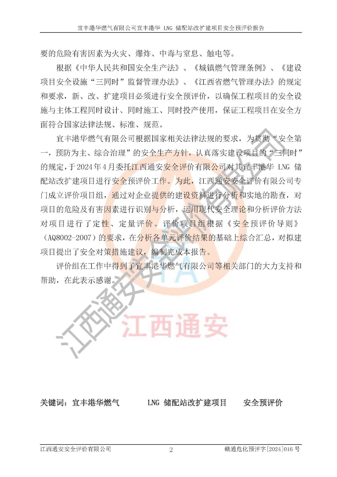 项目名称 | 宜丰港华燃气有限公司宜丰港华 LNG 储配站改扩建项目安全预评价报告 | ||||