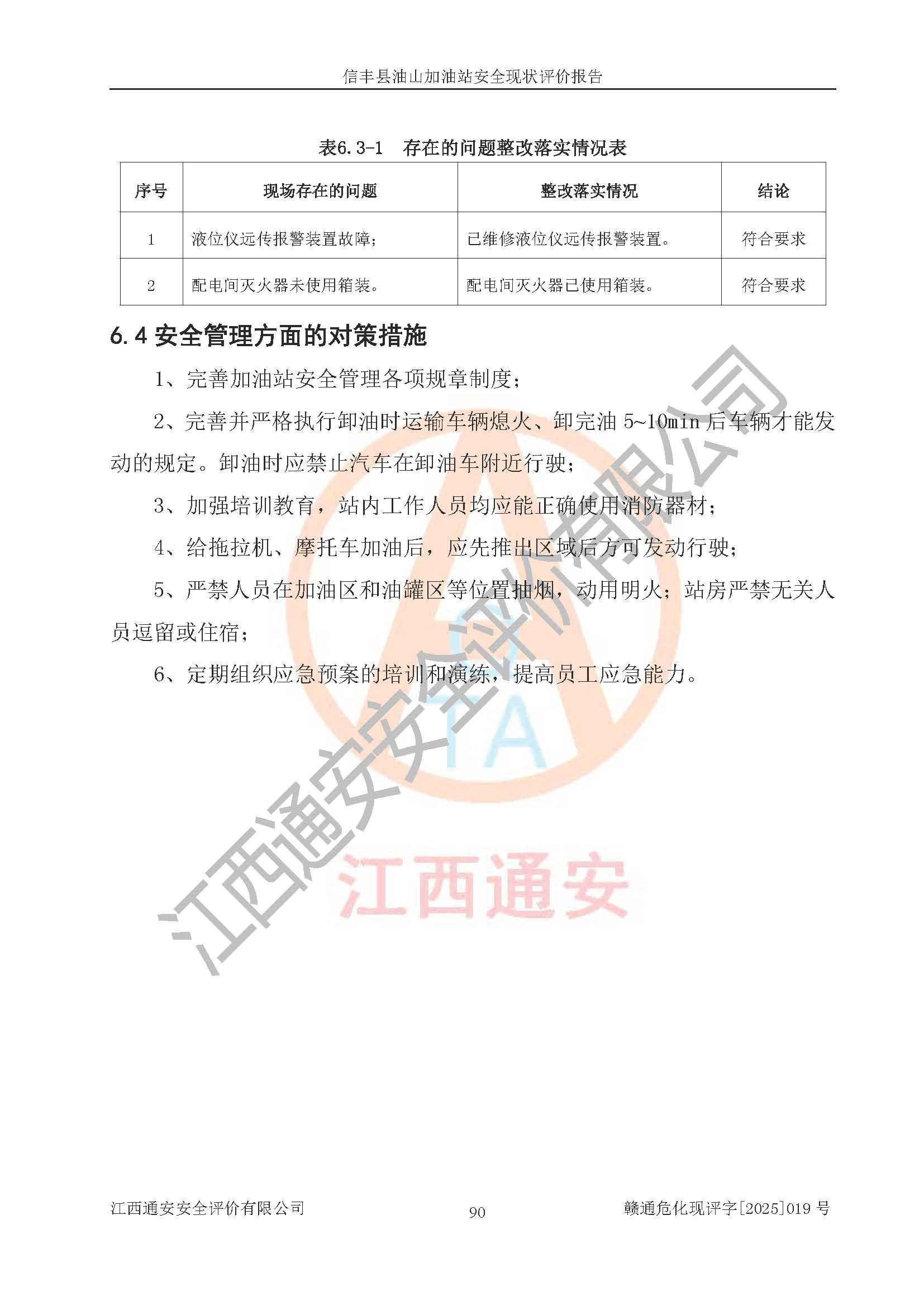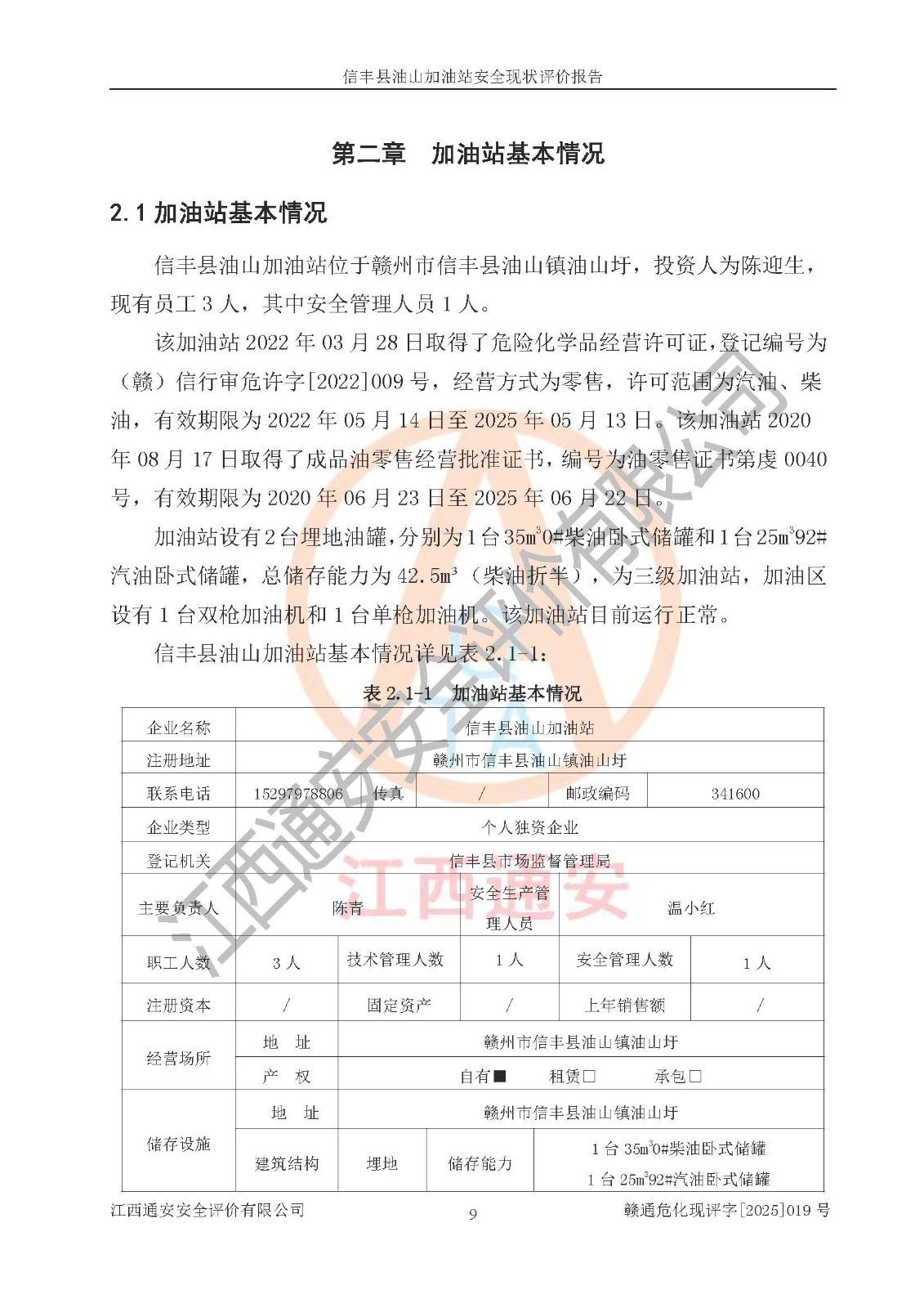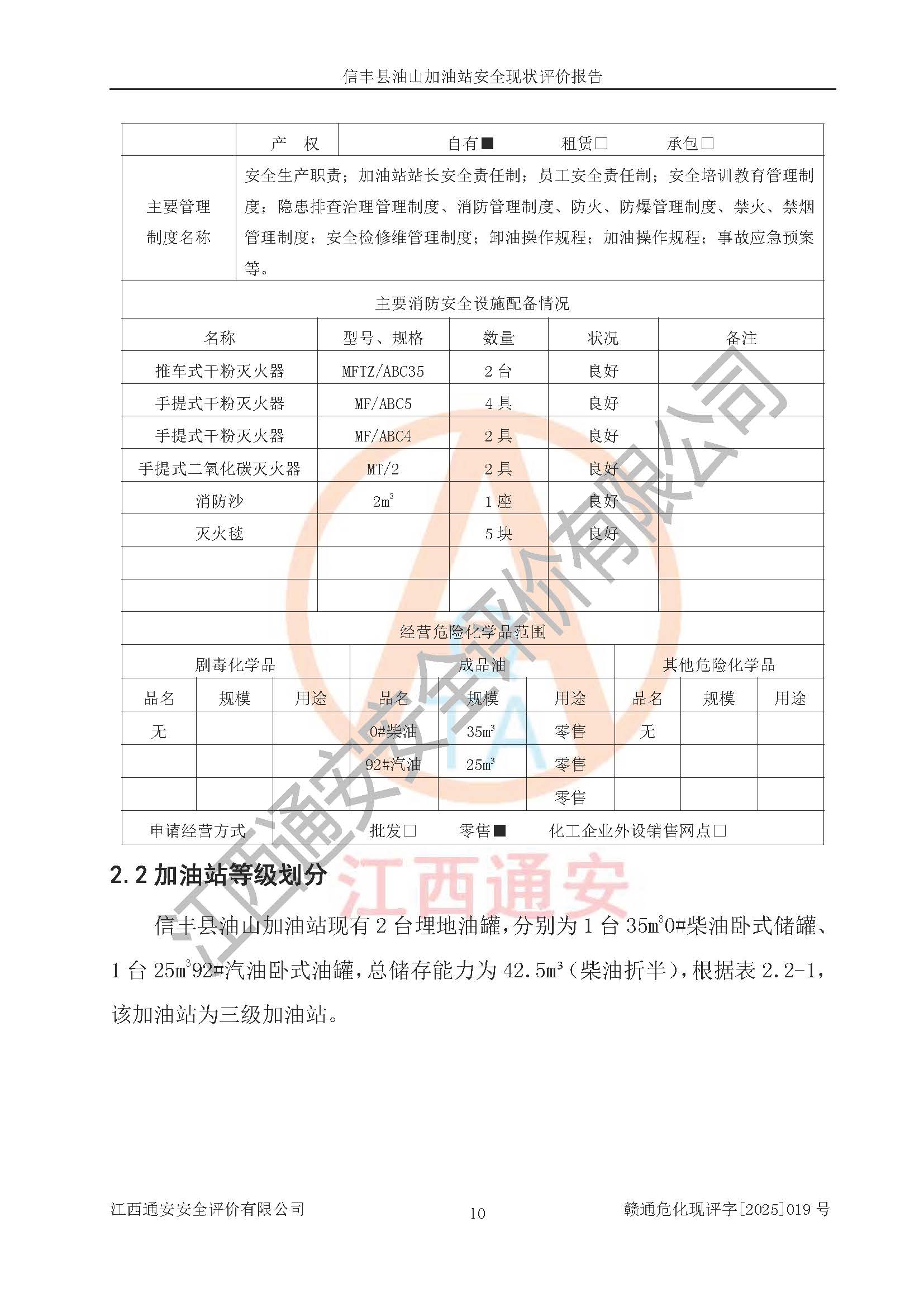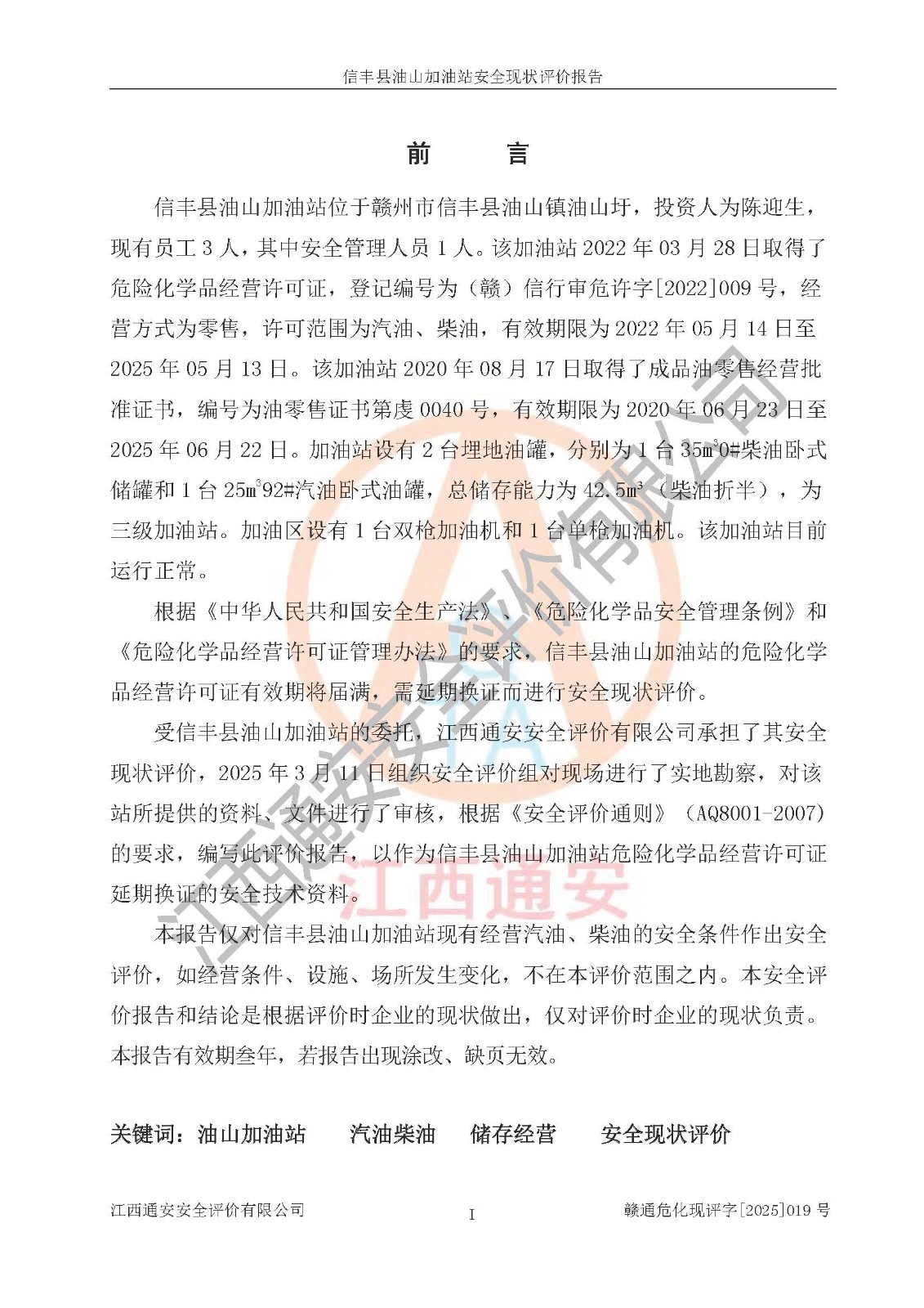 评价报告名称 | 信丰县油山加油站安全现状评价报告 | |||