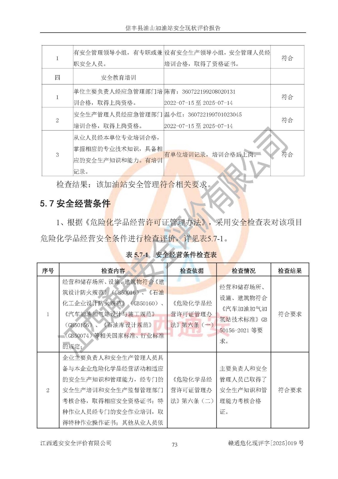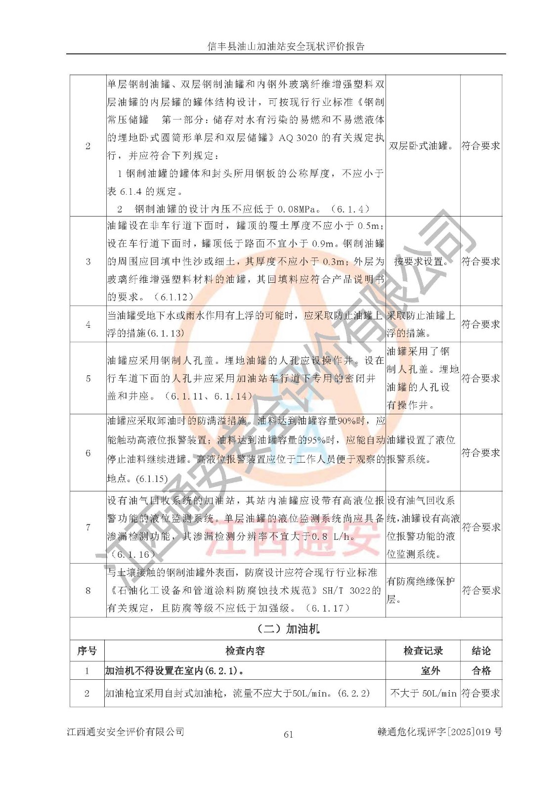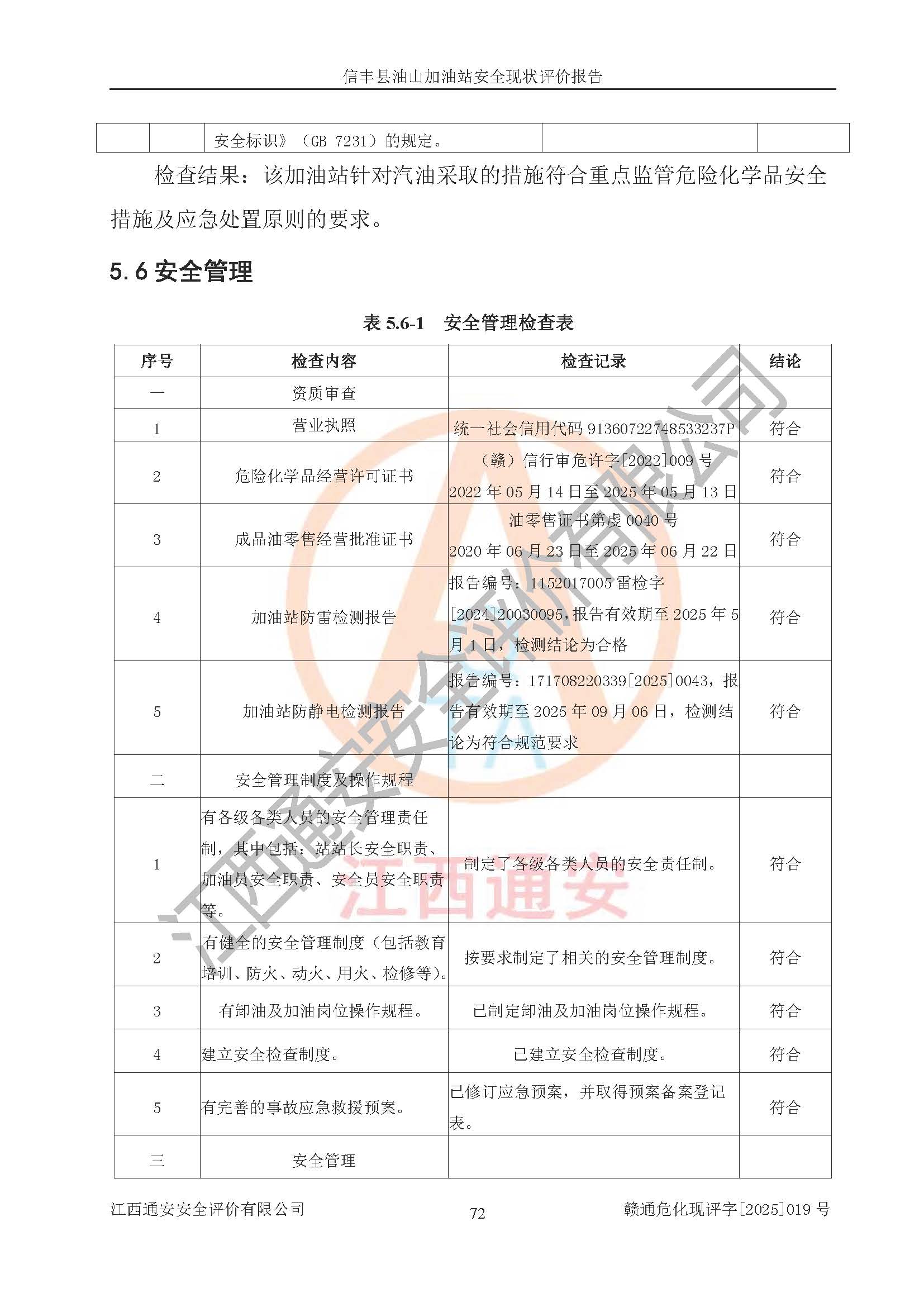评价结论 | 信丰县油山加油站安全现状符合危险化学品经营安全条件。 | |||