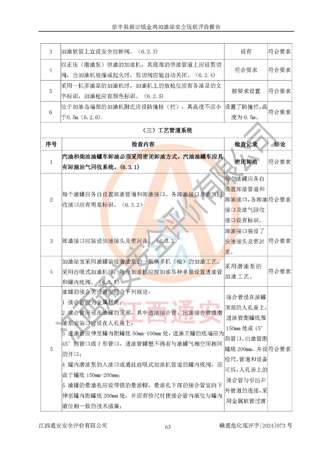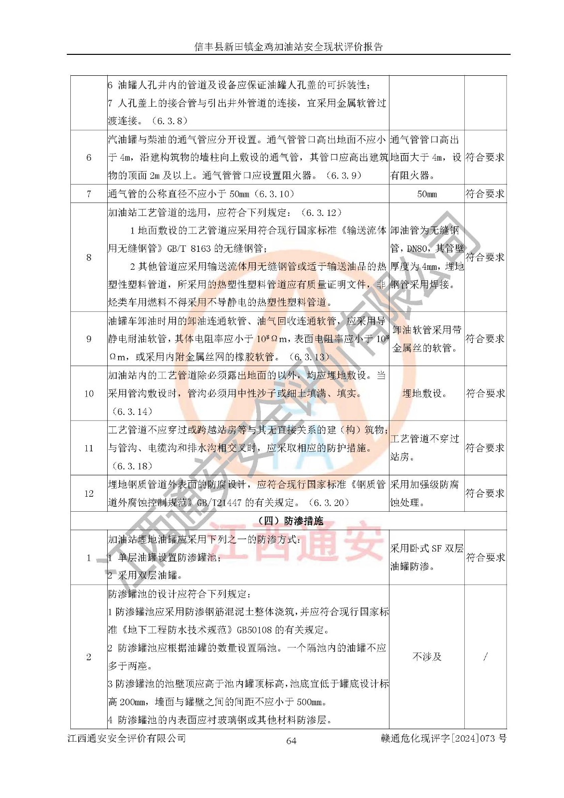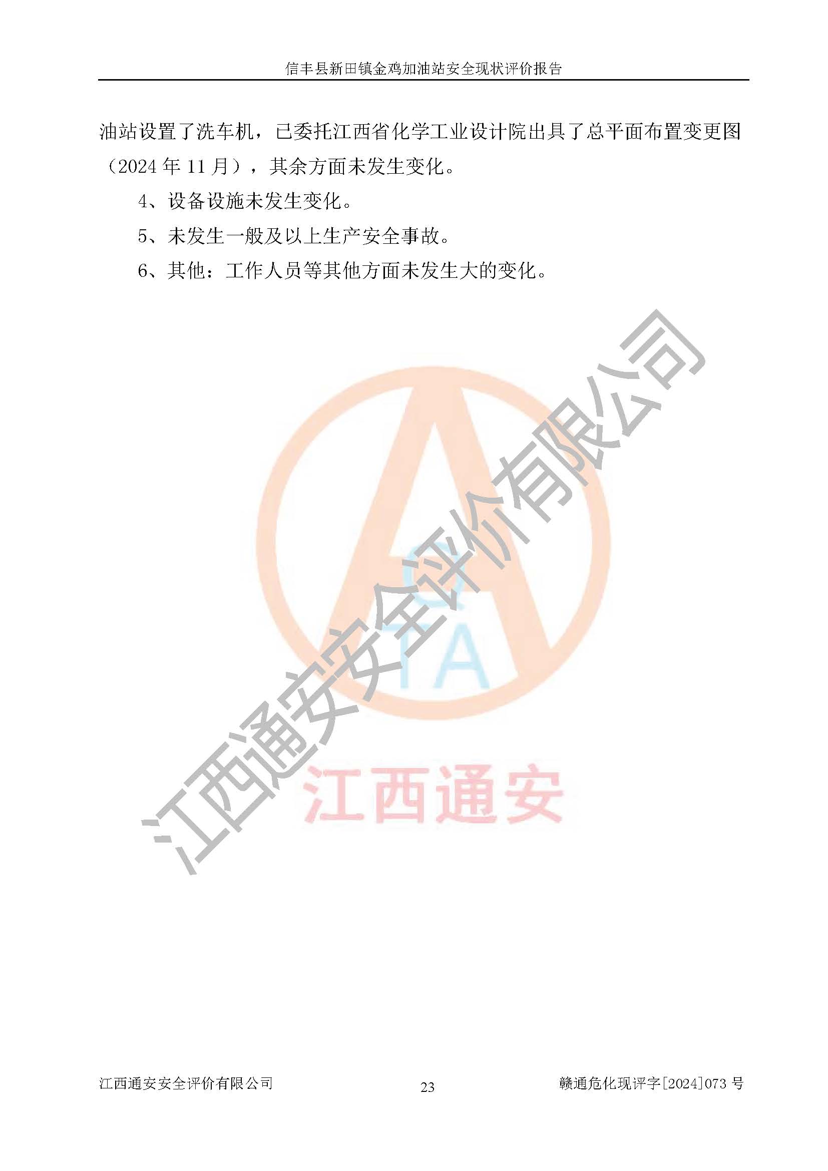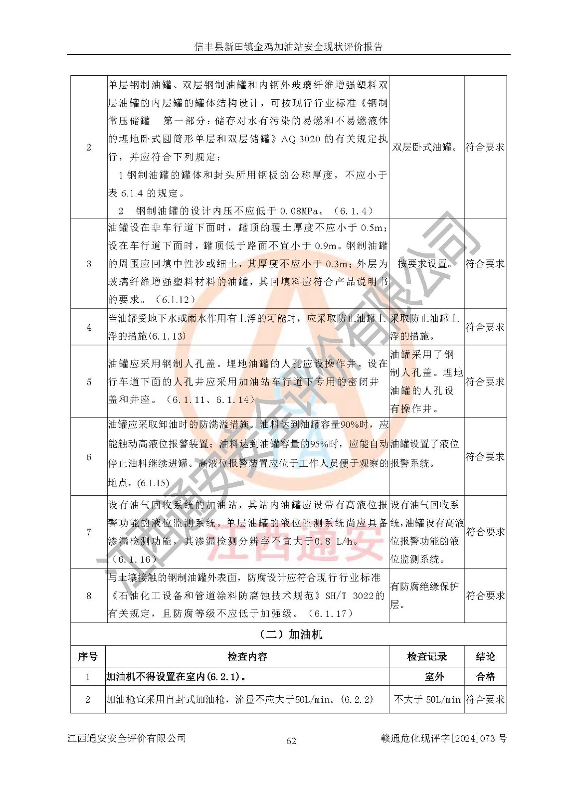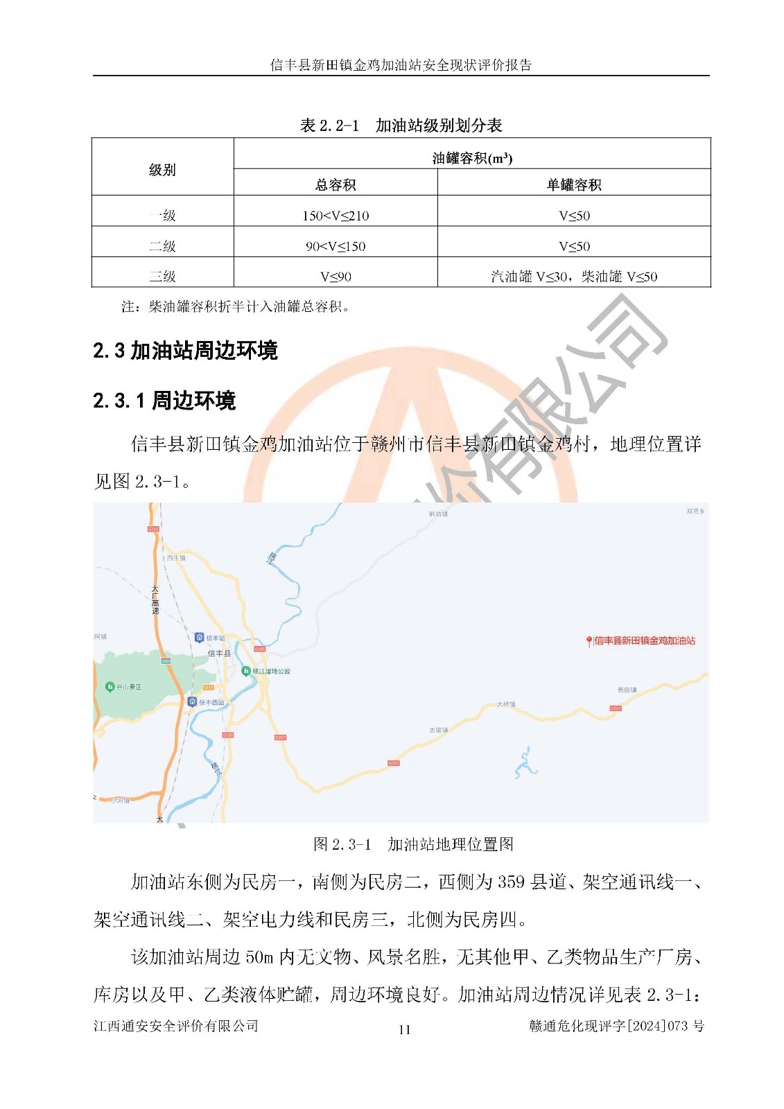信丰县新田镇金鸡加油站安全现状符合危险化学品经营安全条件。