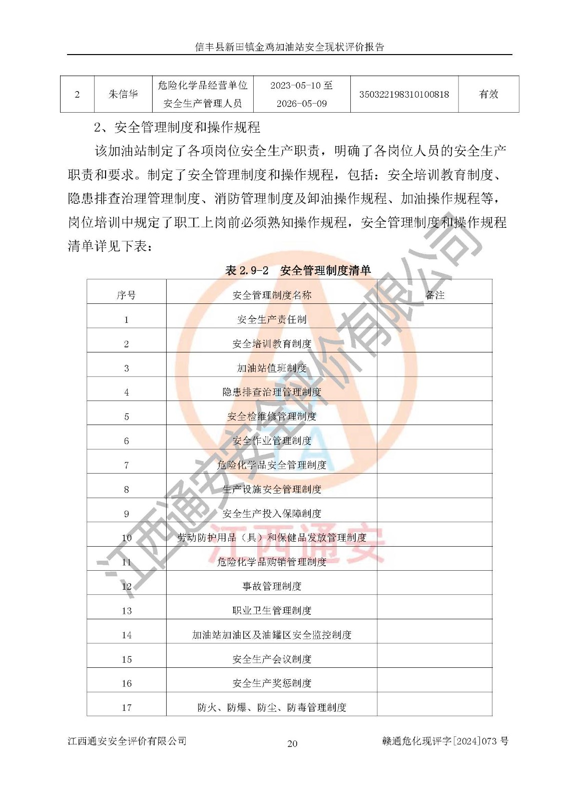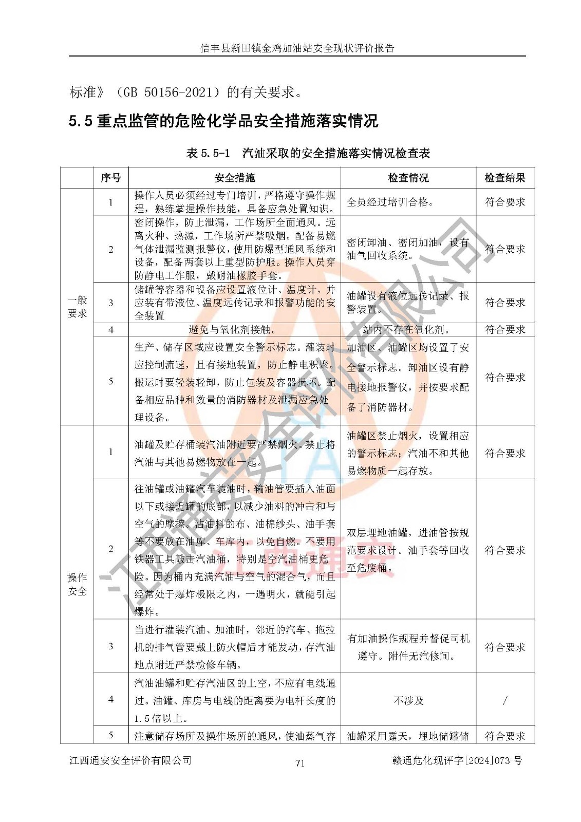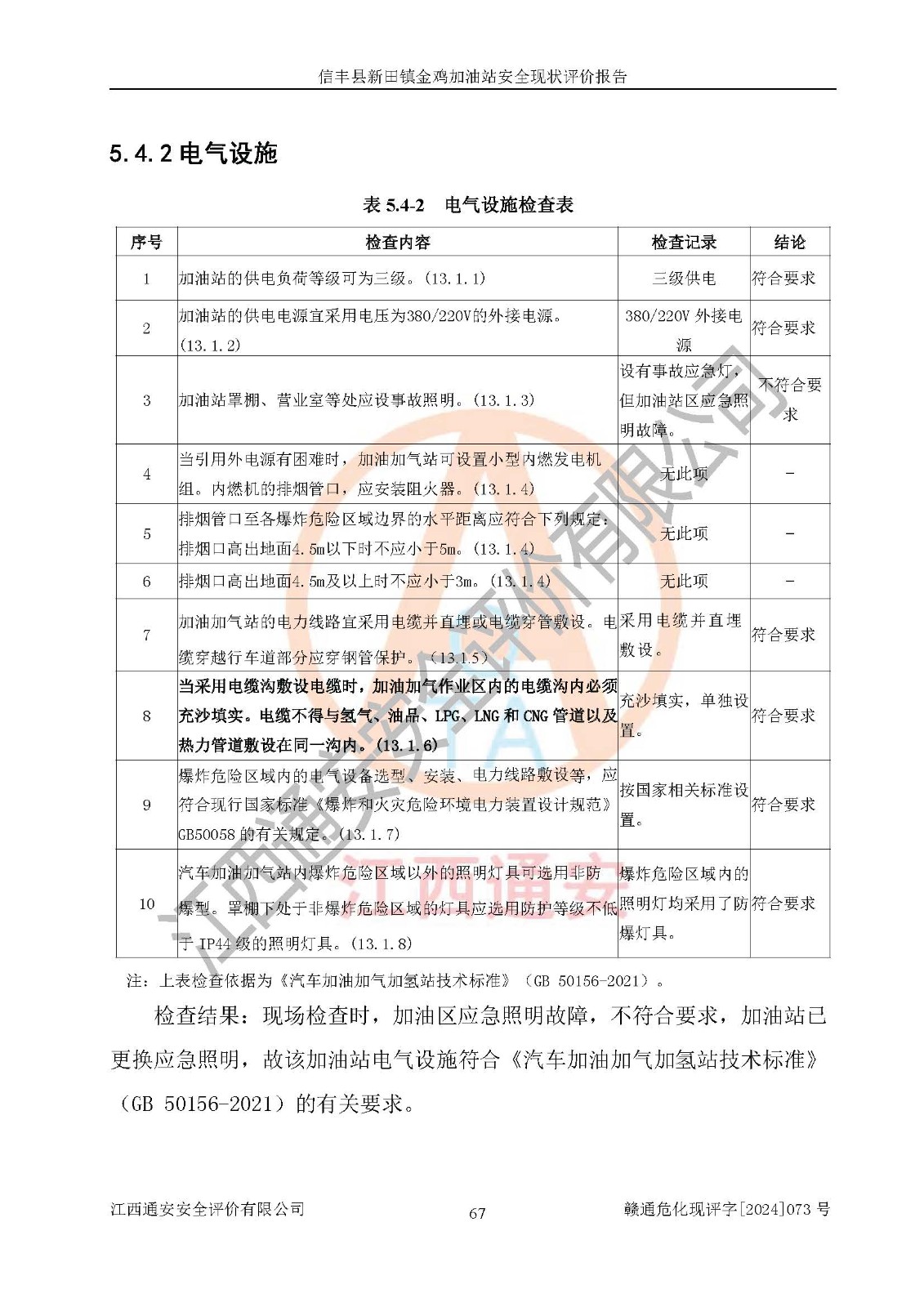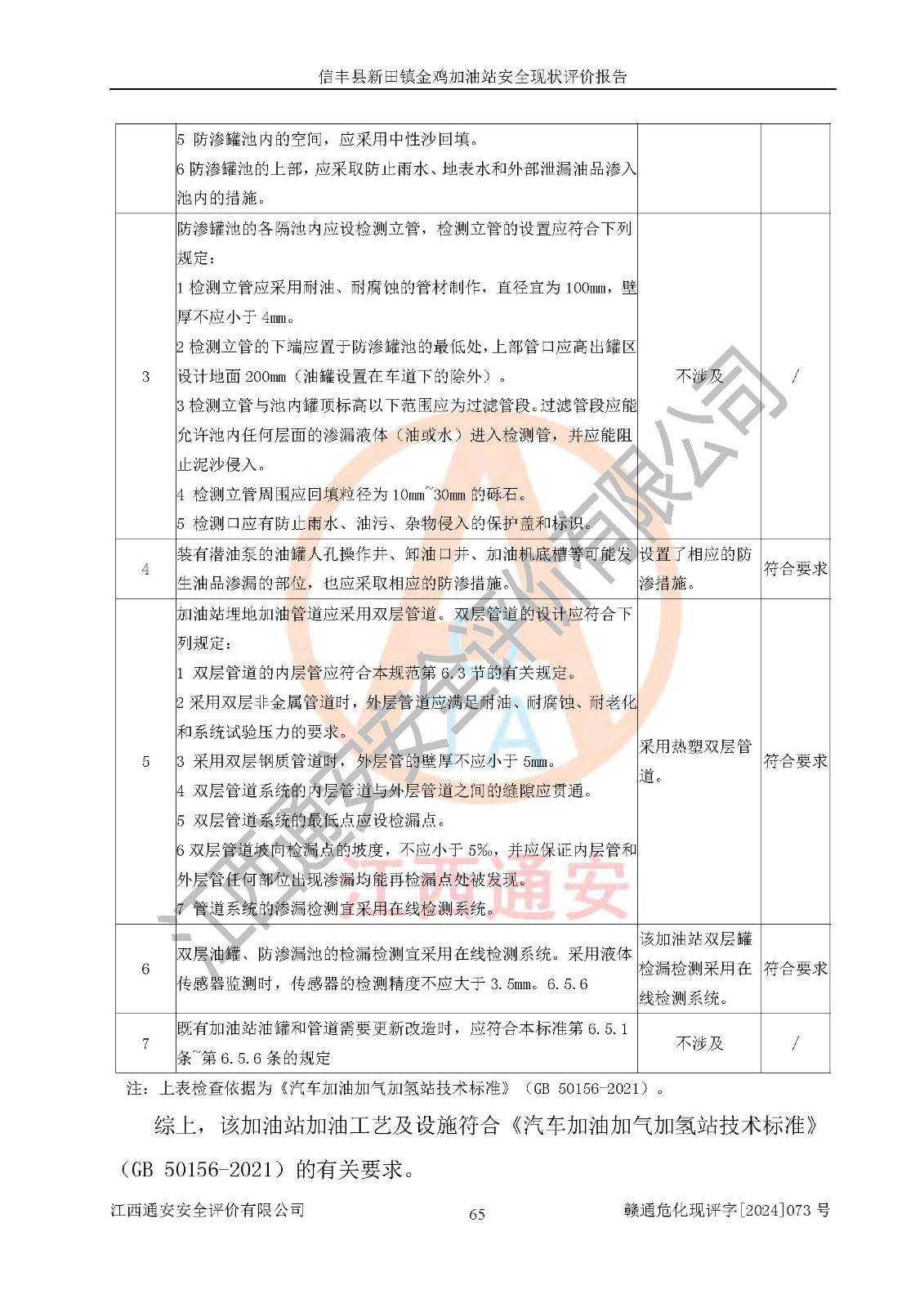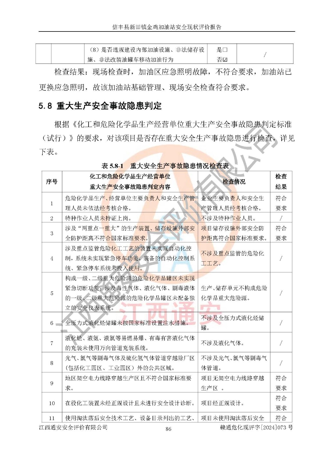 信丰县新田镇金鸡加油站安全现状符合危险化学品经营安全条件。
