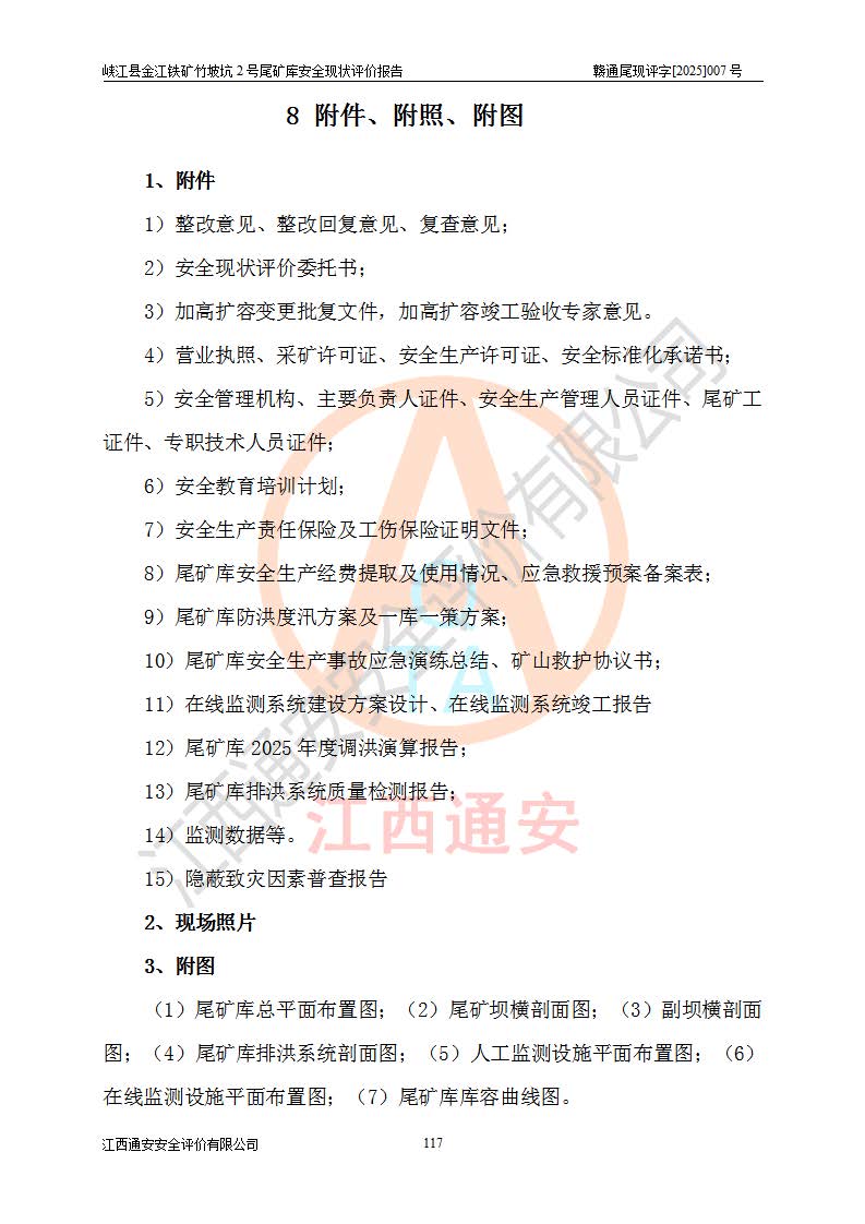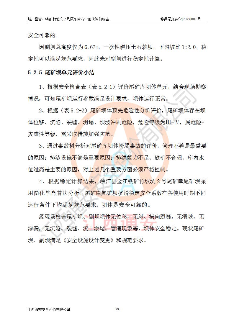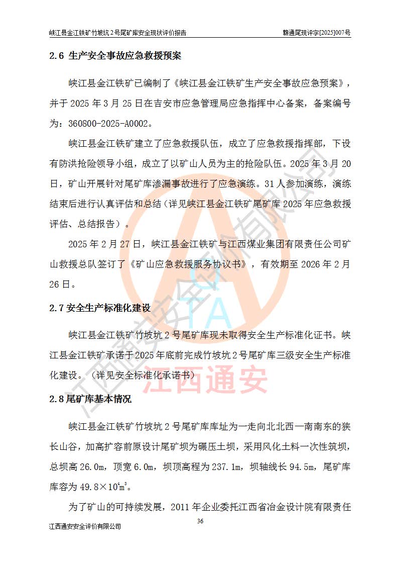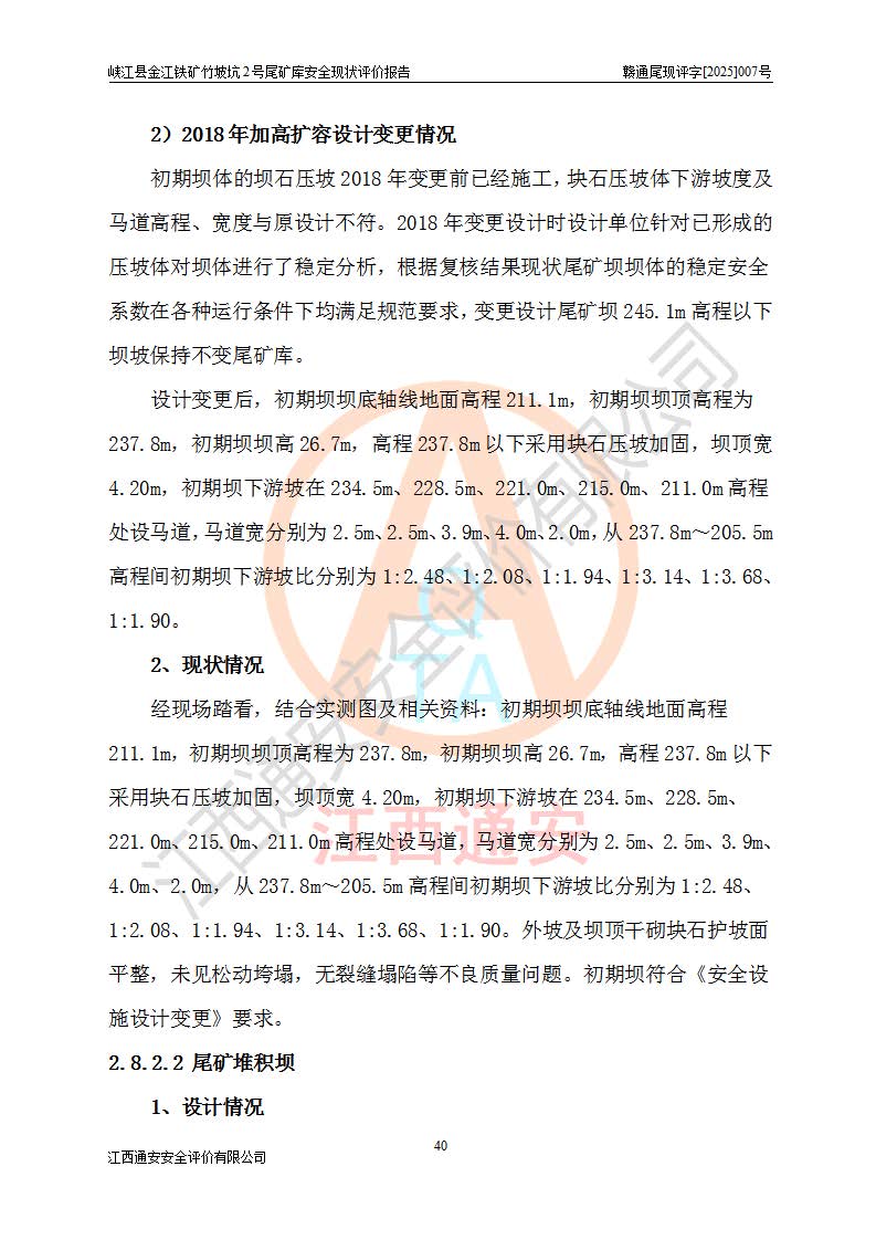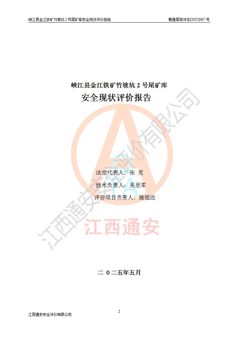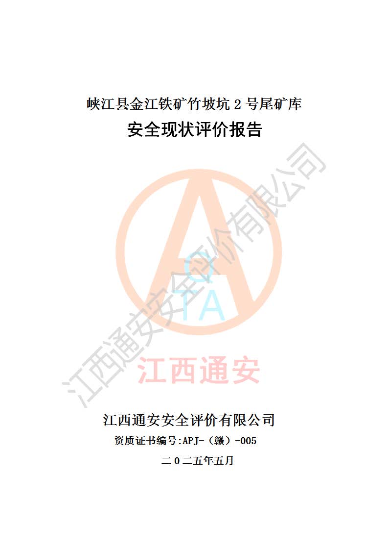 评价报告名称 | 峡江县金江铁矿竹坡坑2号尾矿库安全现状评价报告 | |||