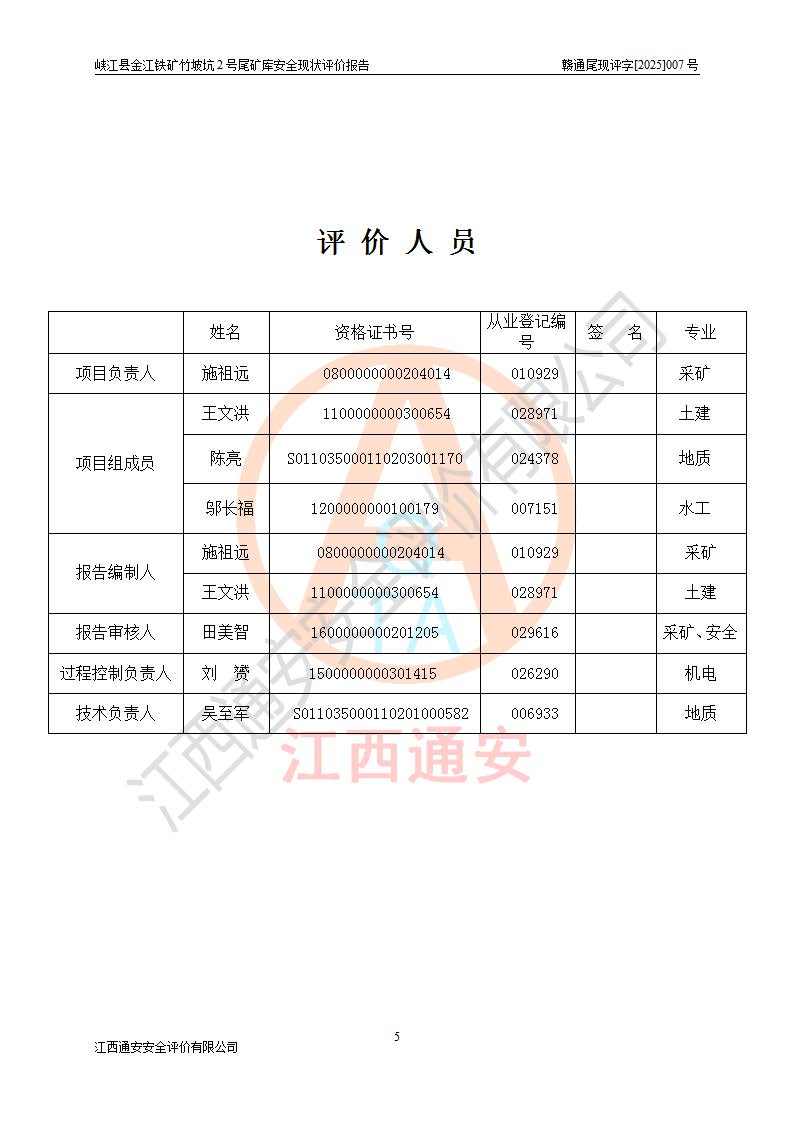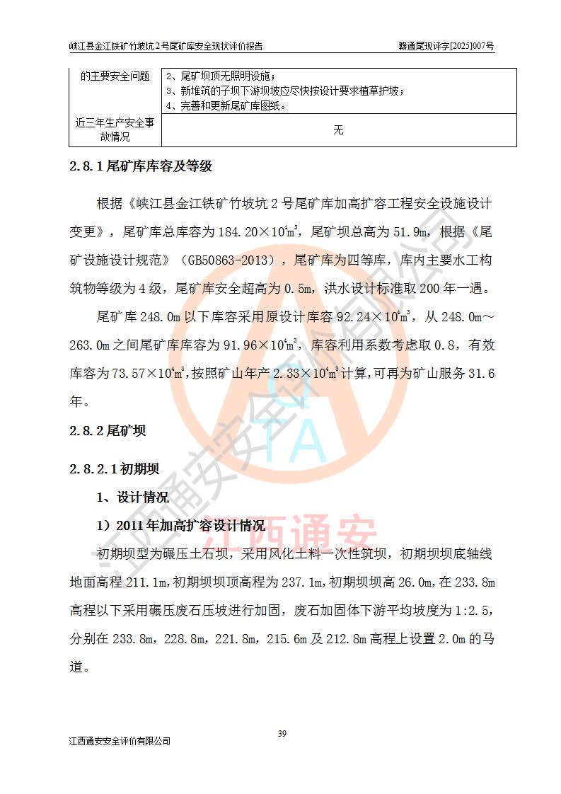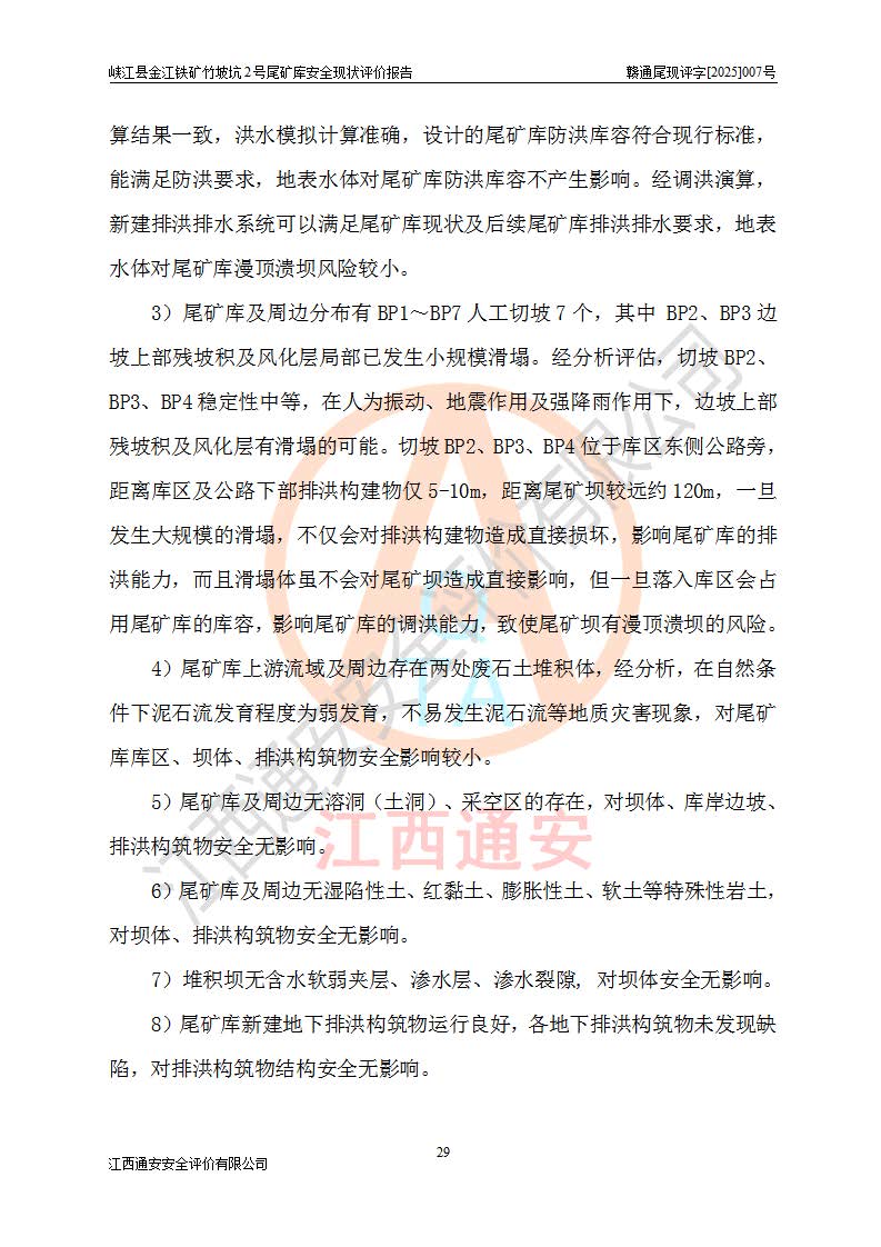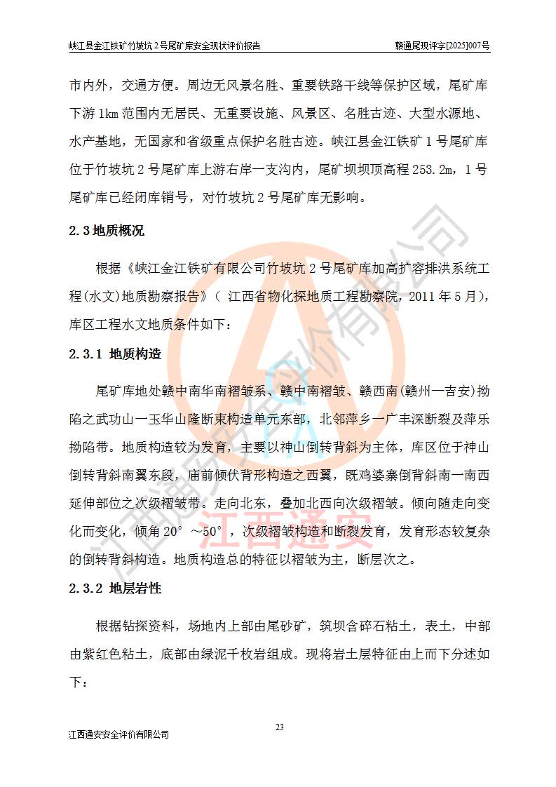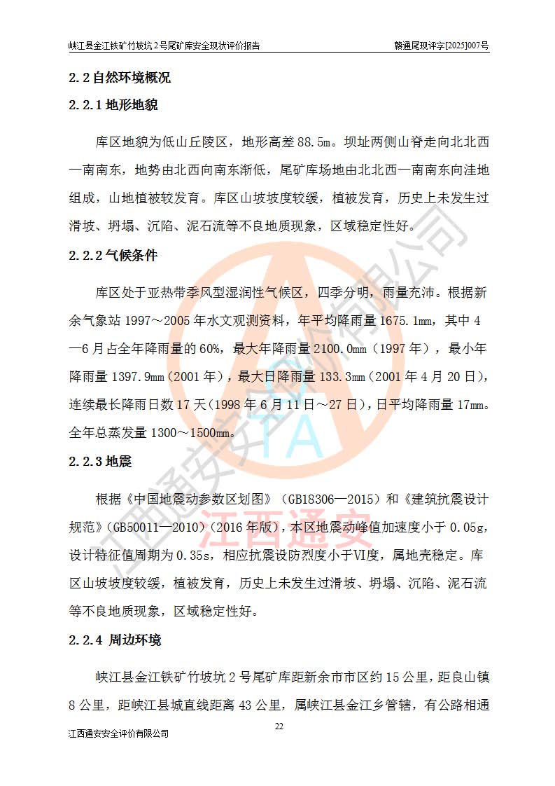 评价报告名称 | 峡江县金江铁矿竹坡坑2号尾矿库安全现状评价报告 | |||