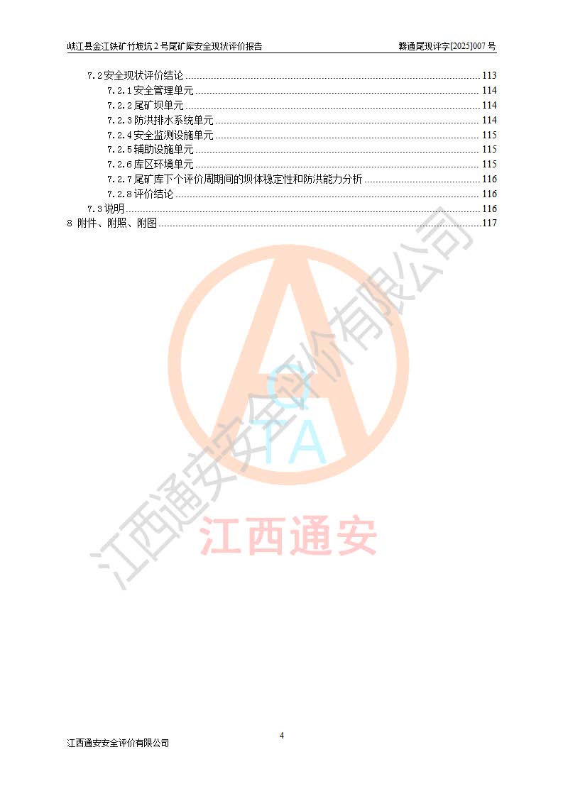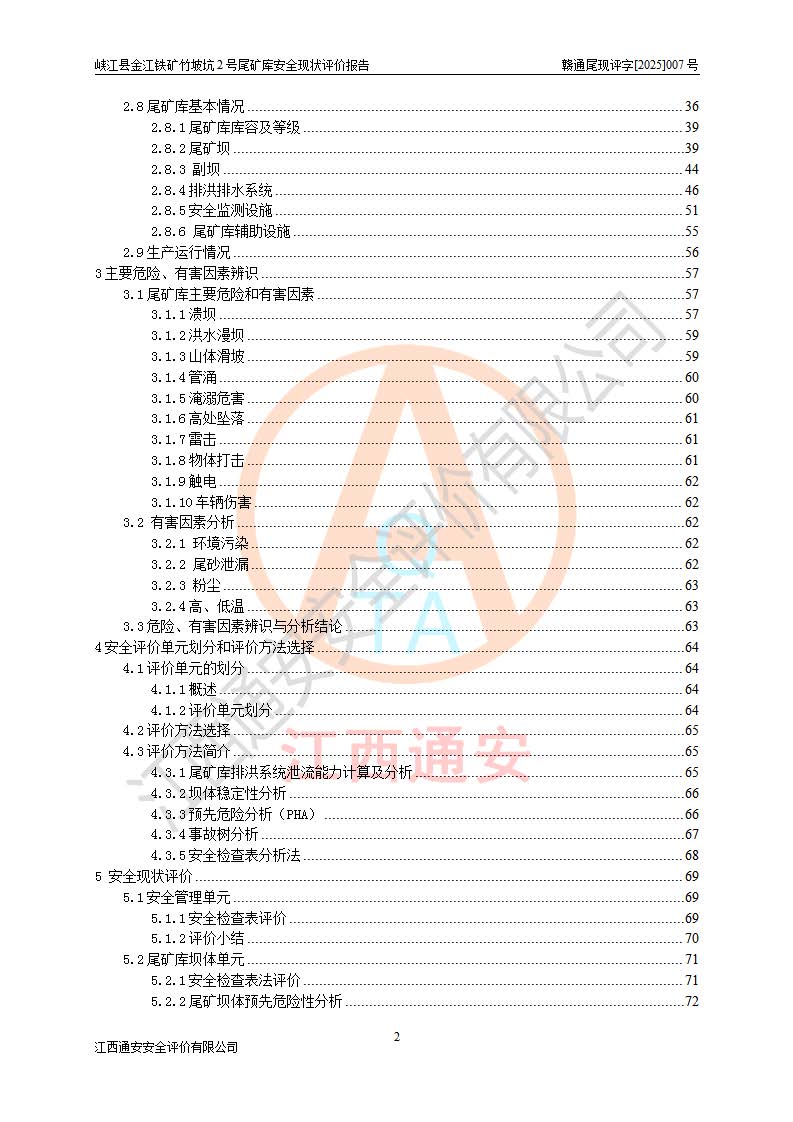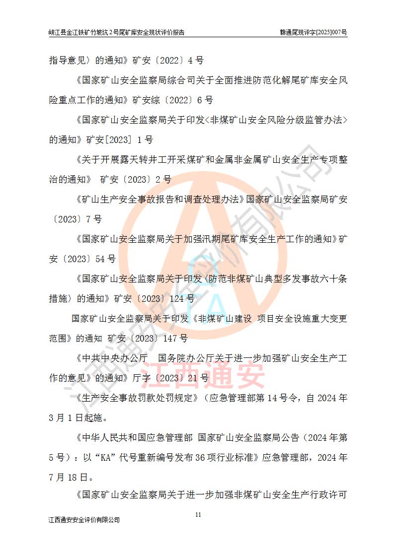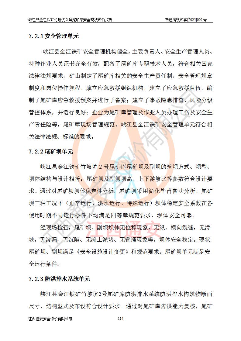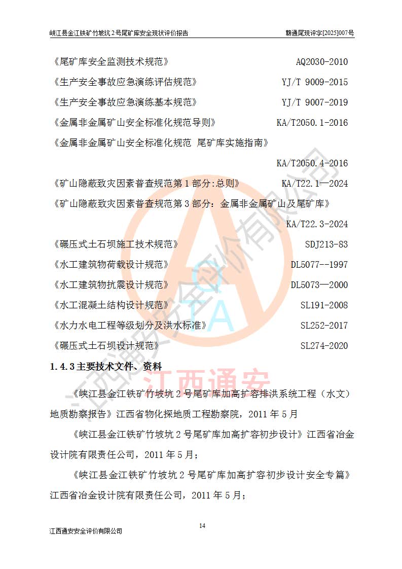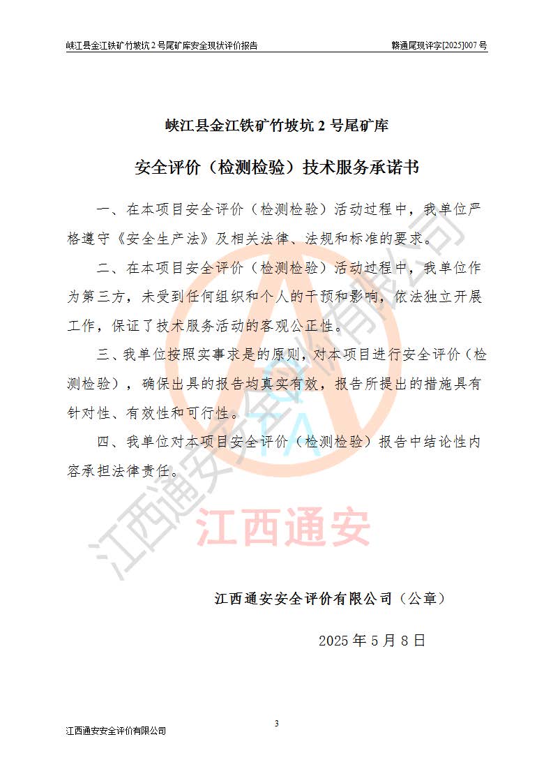 评价报告名称 | 峡江县金江铁矿竹坡坑2号尾矿库安全现状评价报告 | |||