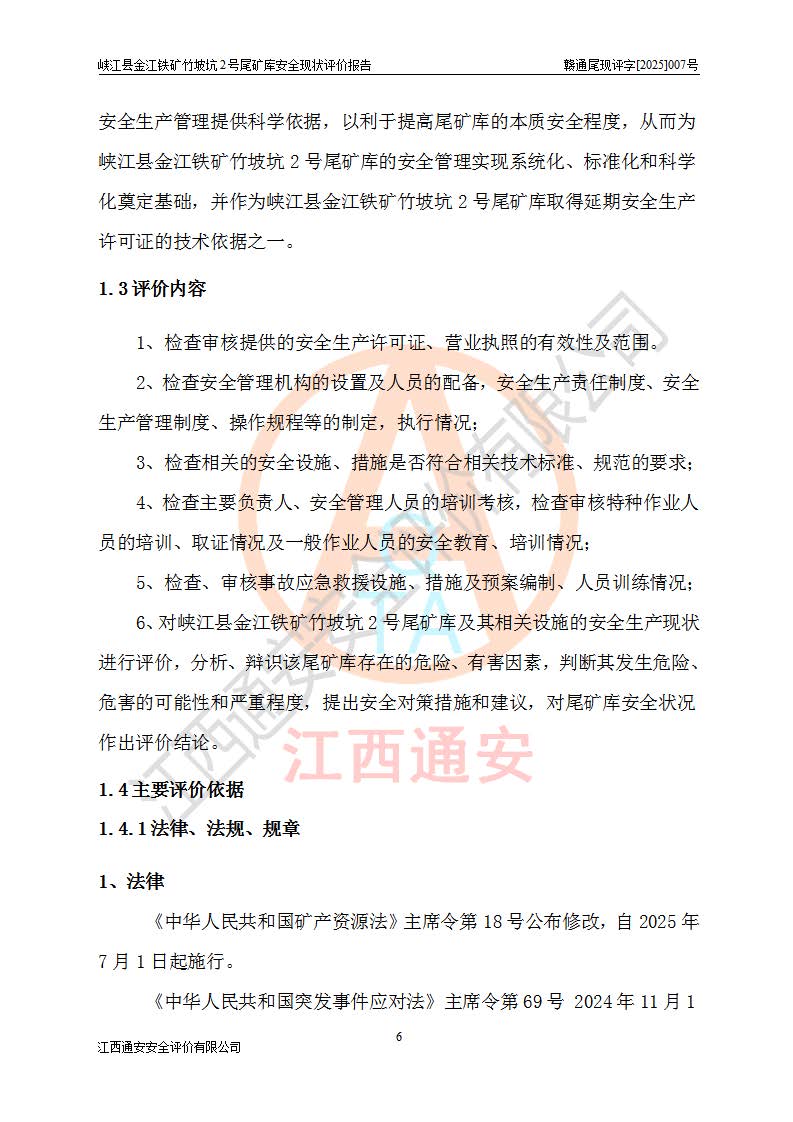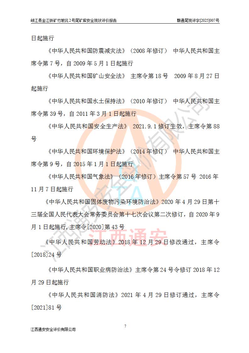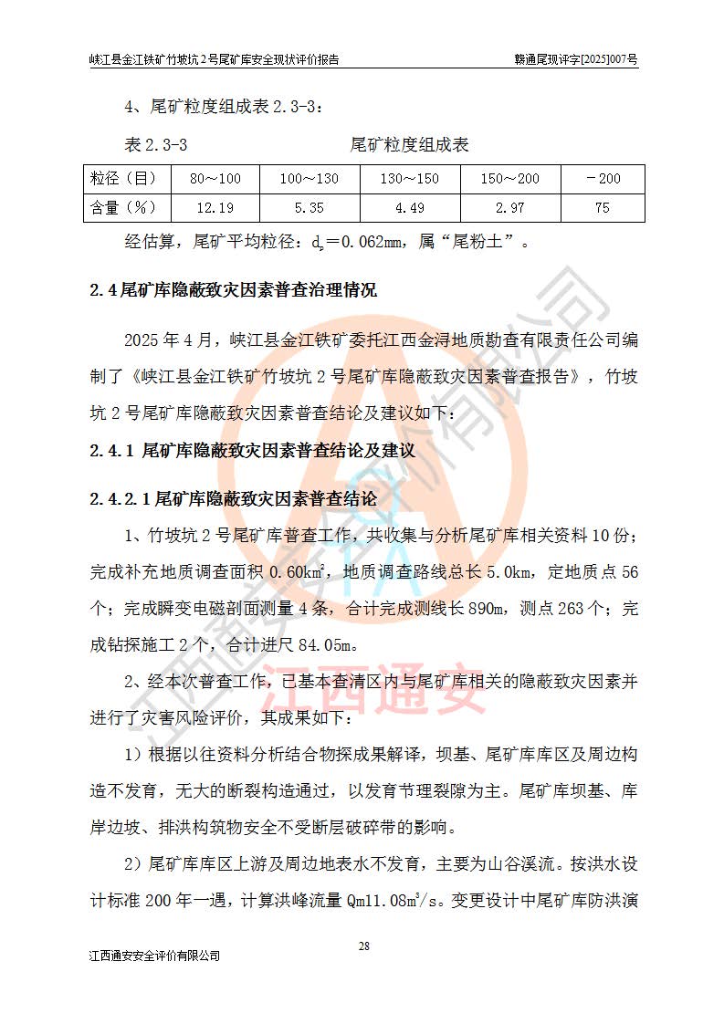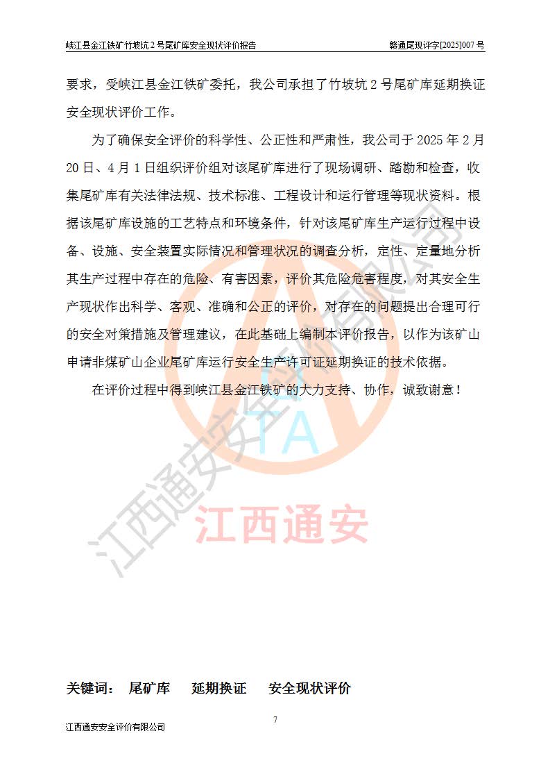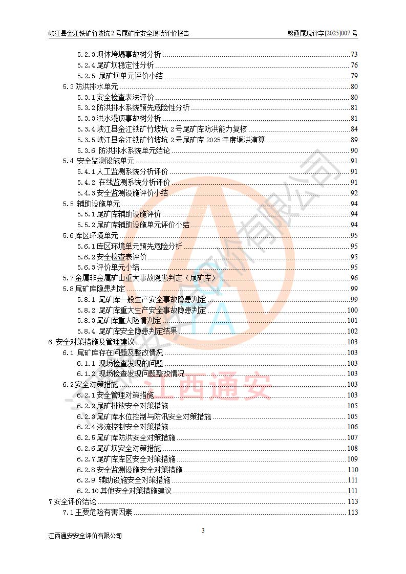 评价报告名称 | 峡江县金江铁矿竹坡坑2号尾矿库安全现状评价报告 | |||