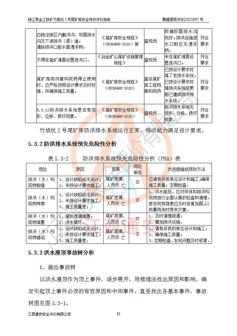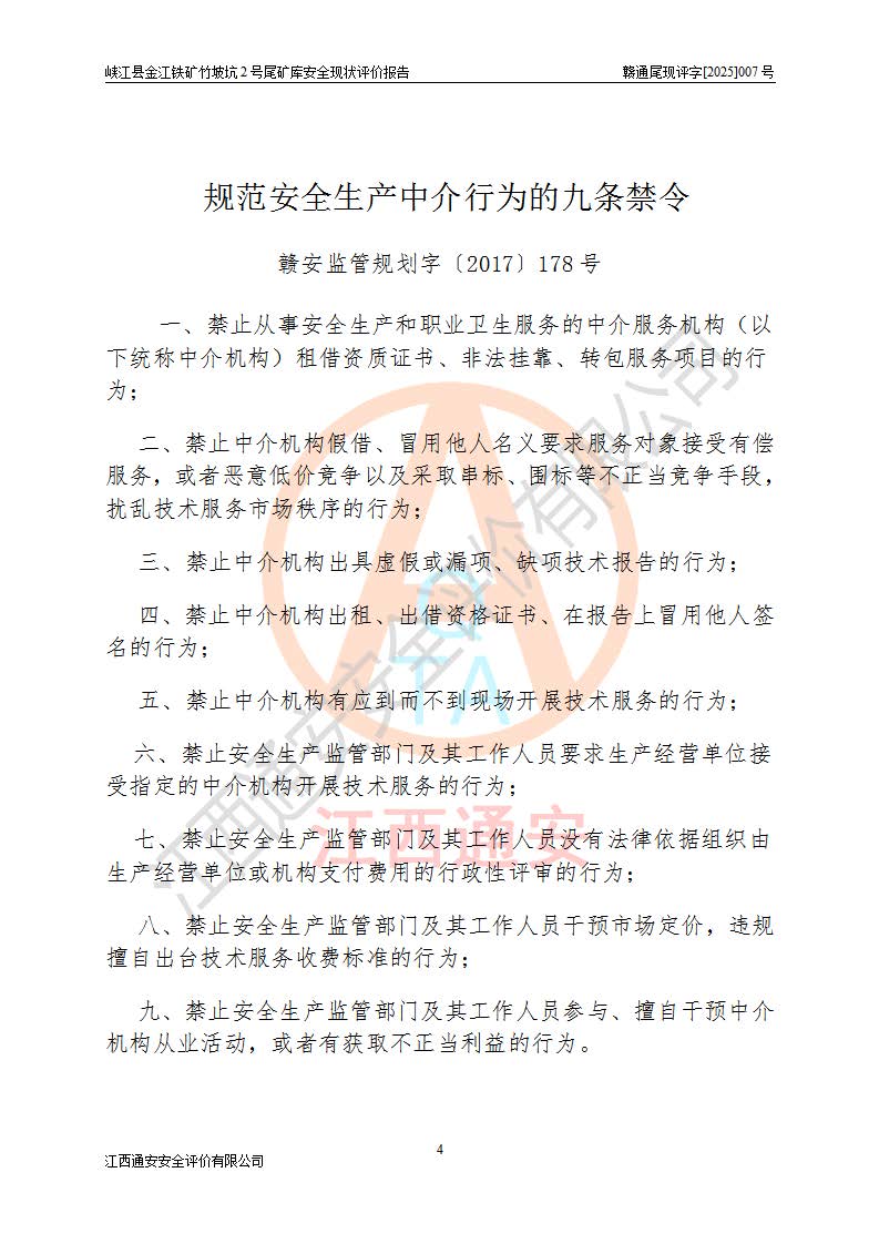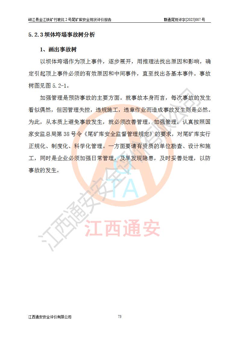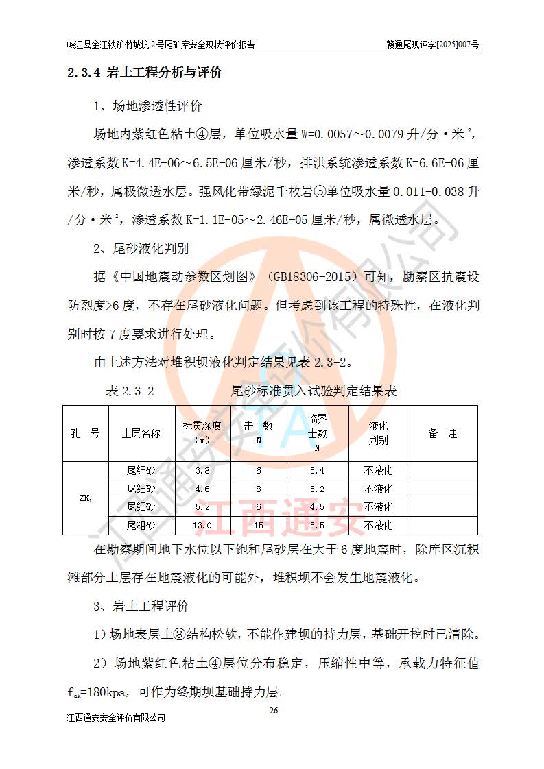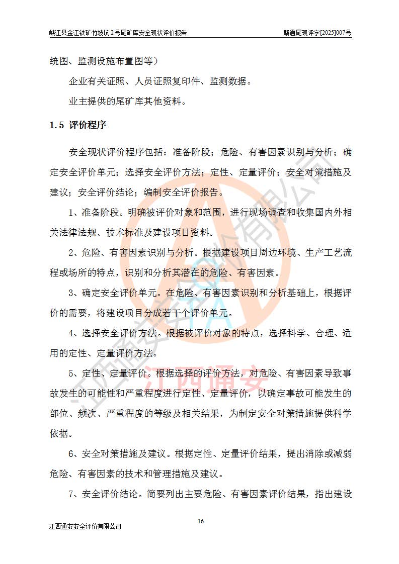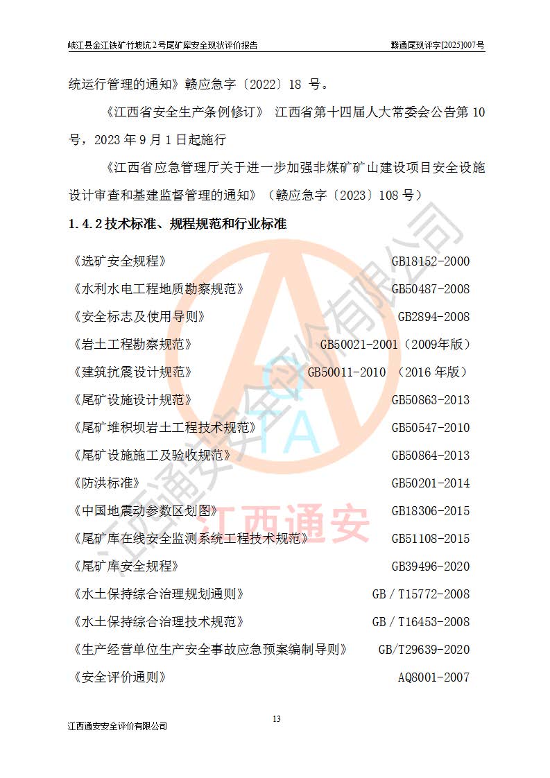 评价报告名称 | 峡江县金江铁矿竹坡坑2号尾矿库安全现状评价报告 | |||