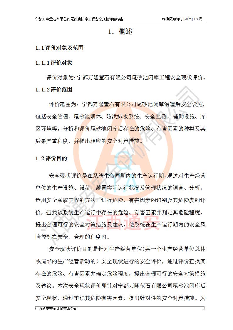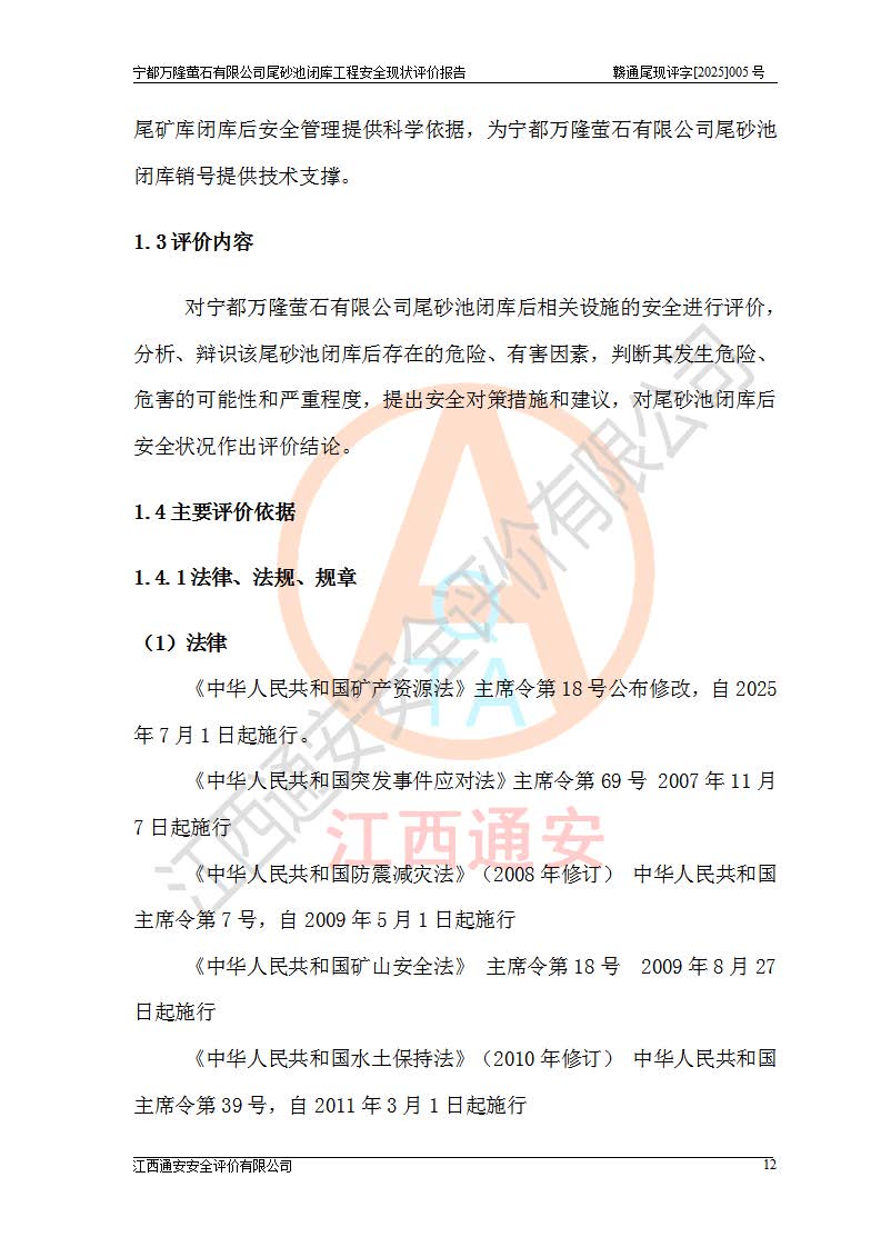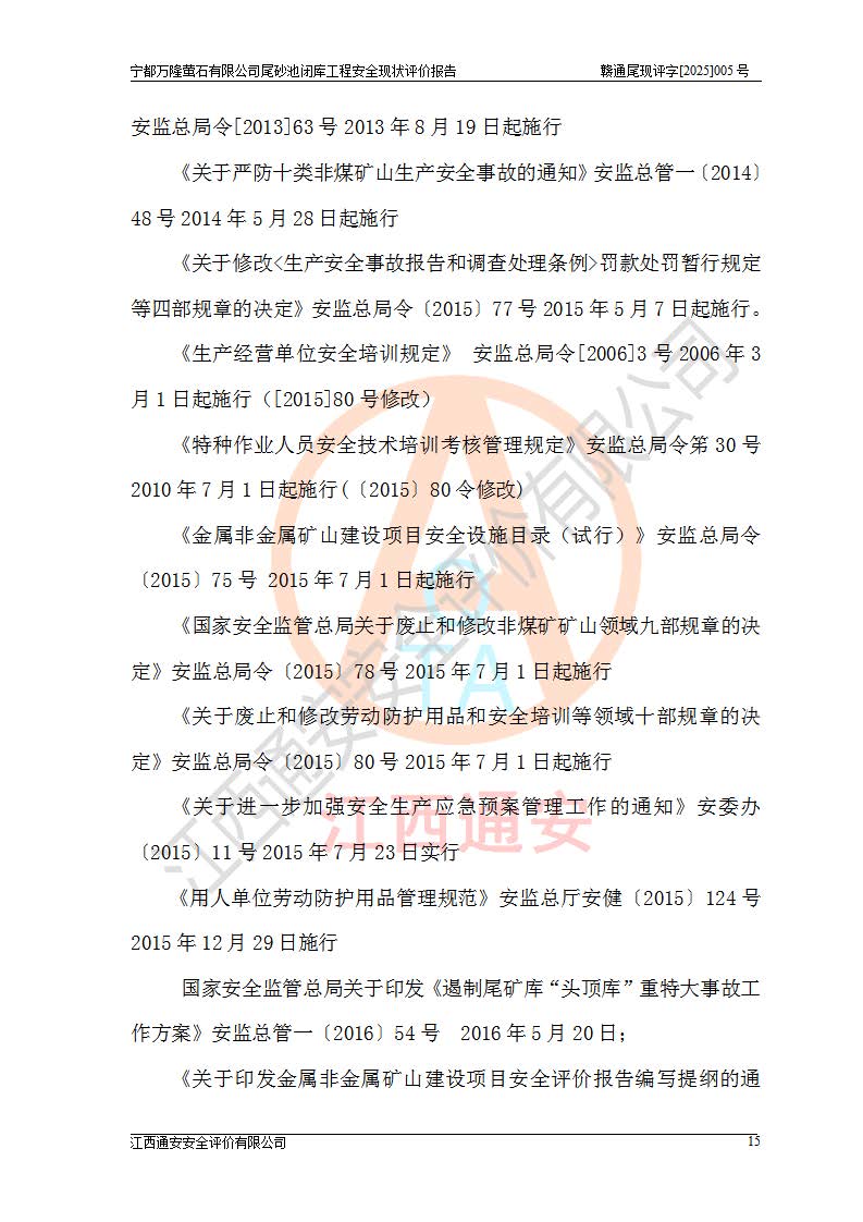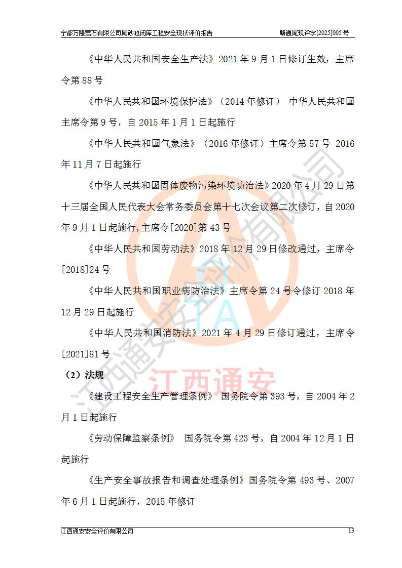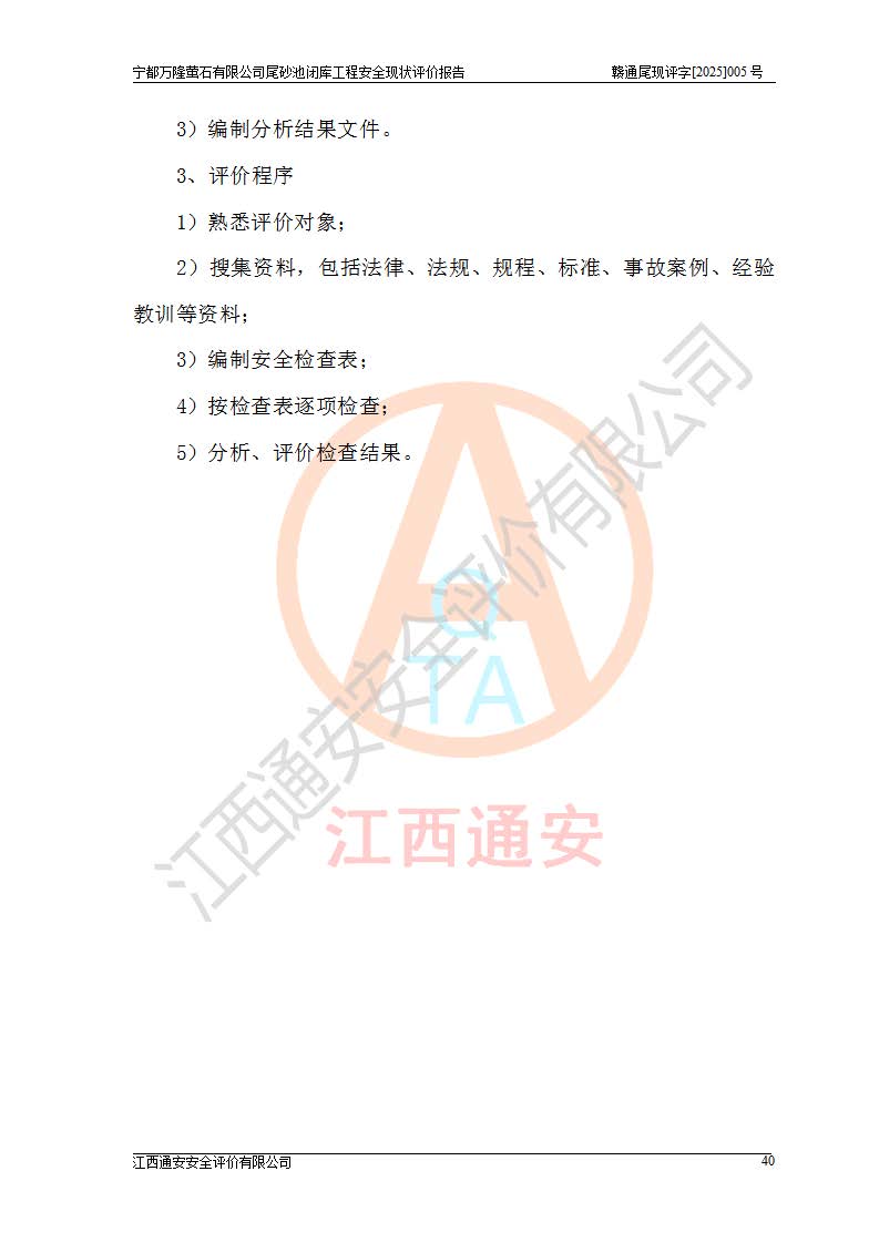 评价报告名称 | 宁都万隆萤石有限公司尾砂池闭库工程安全现状评价报告 | |||