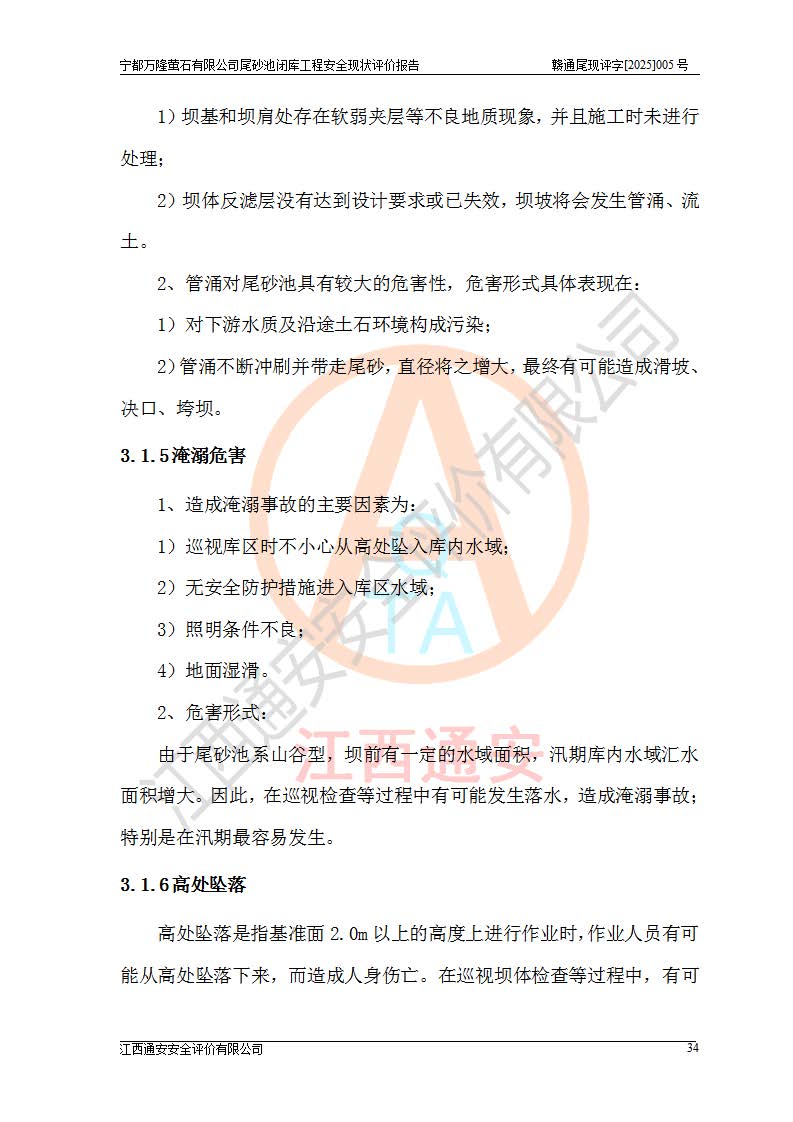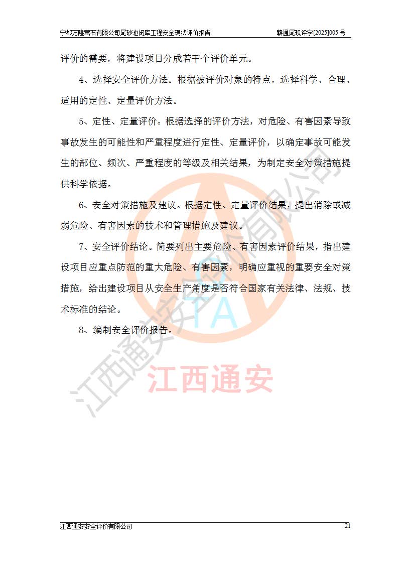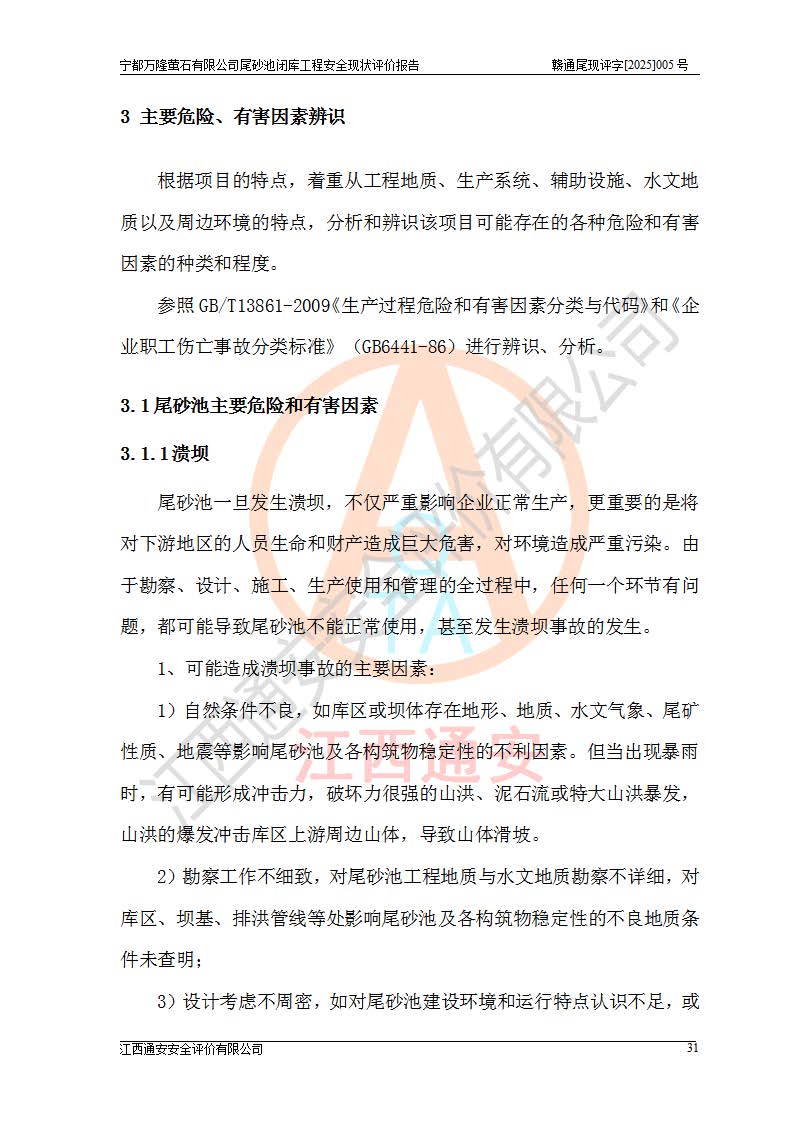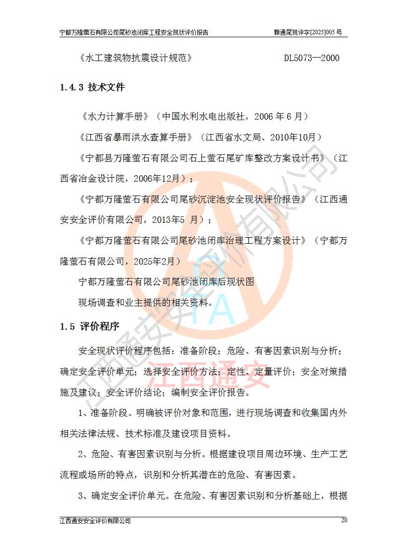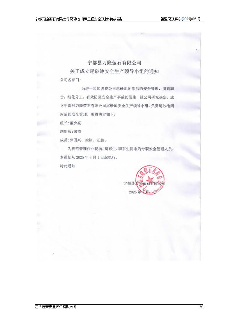 评价报告名称 | 宁都万隆萤石有限公司尾砂池闭库工程安全现状评价报告 | |||