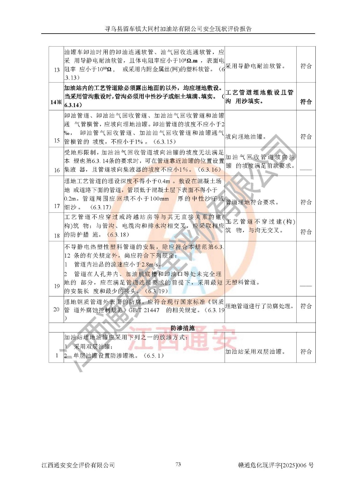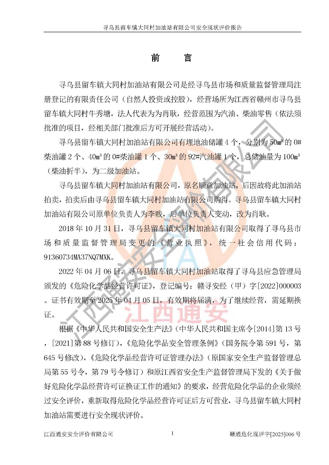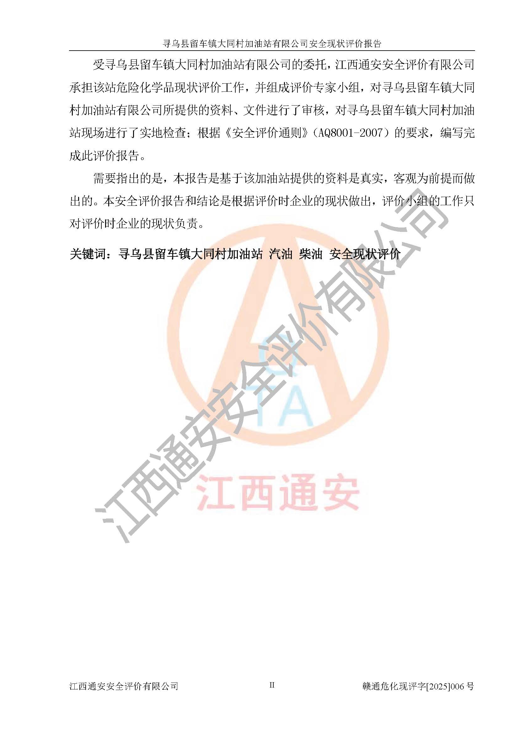 项目名称 | 寻乌县留车镇大同村加油站有限公司安全现状评价报告 | ||||