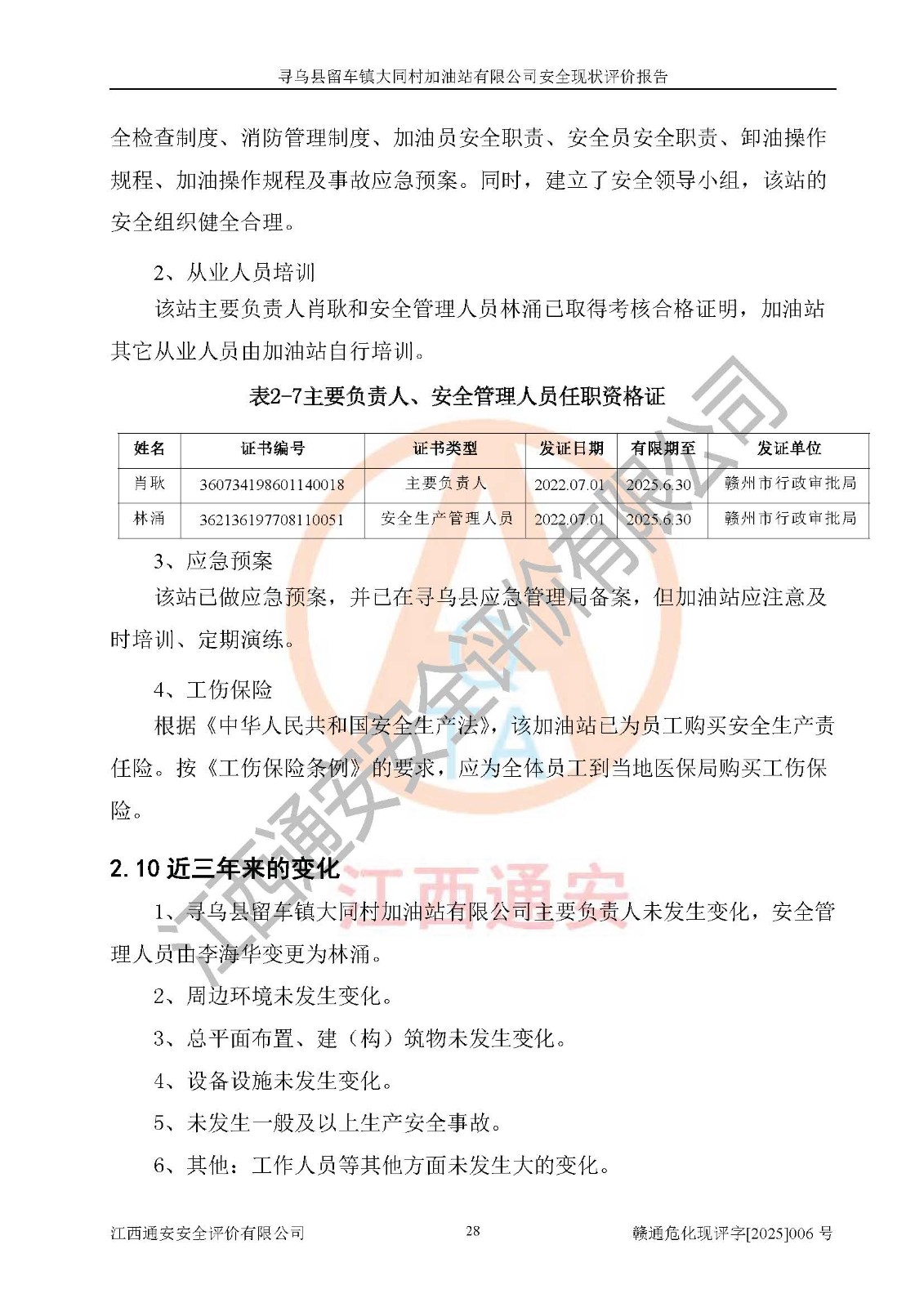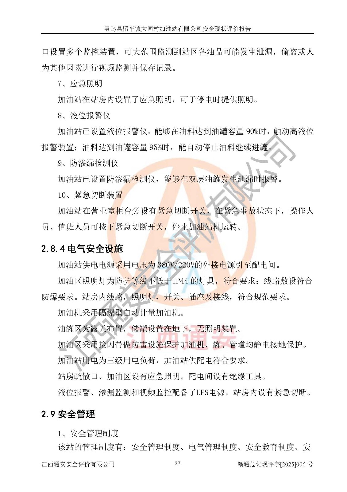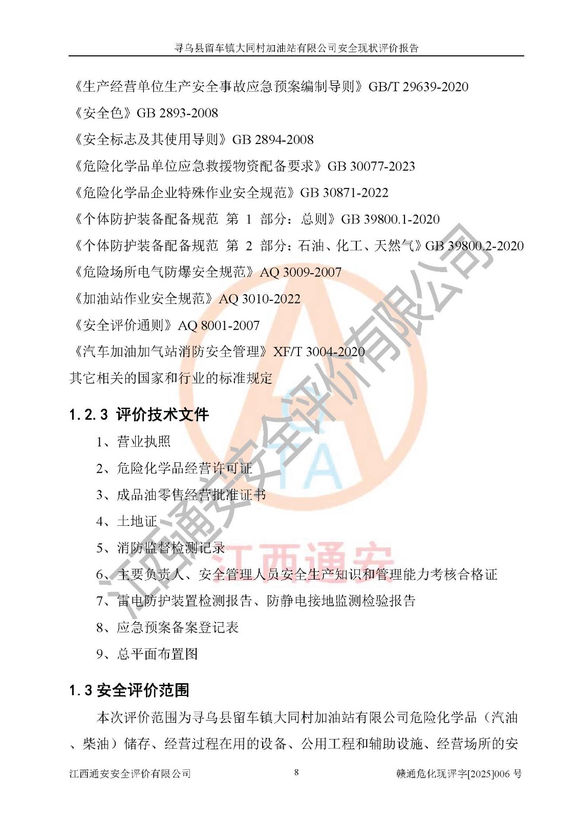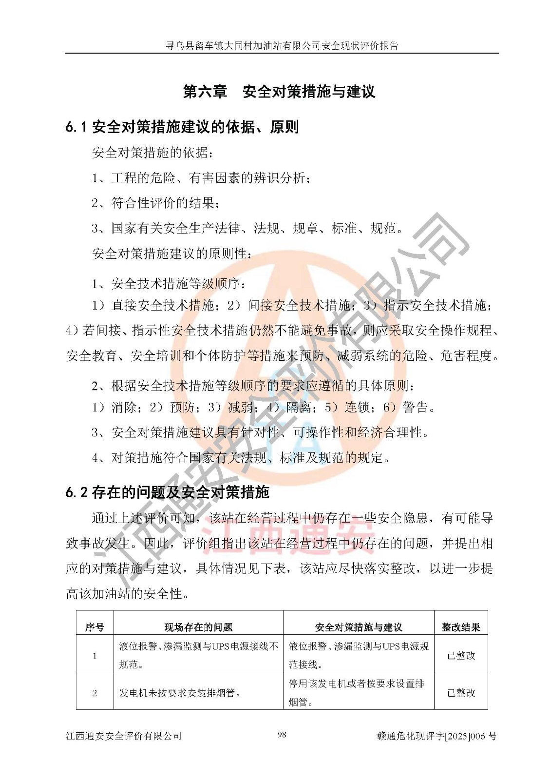 项目名称 | 寻乌县留车镇大同村加油站有限公司安全现状评价报告 | ||||