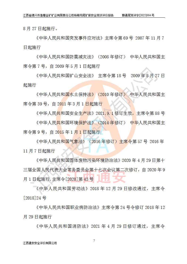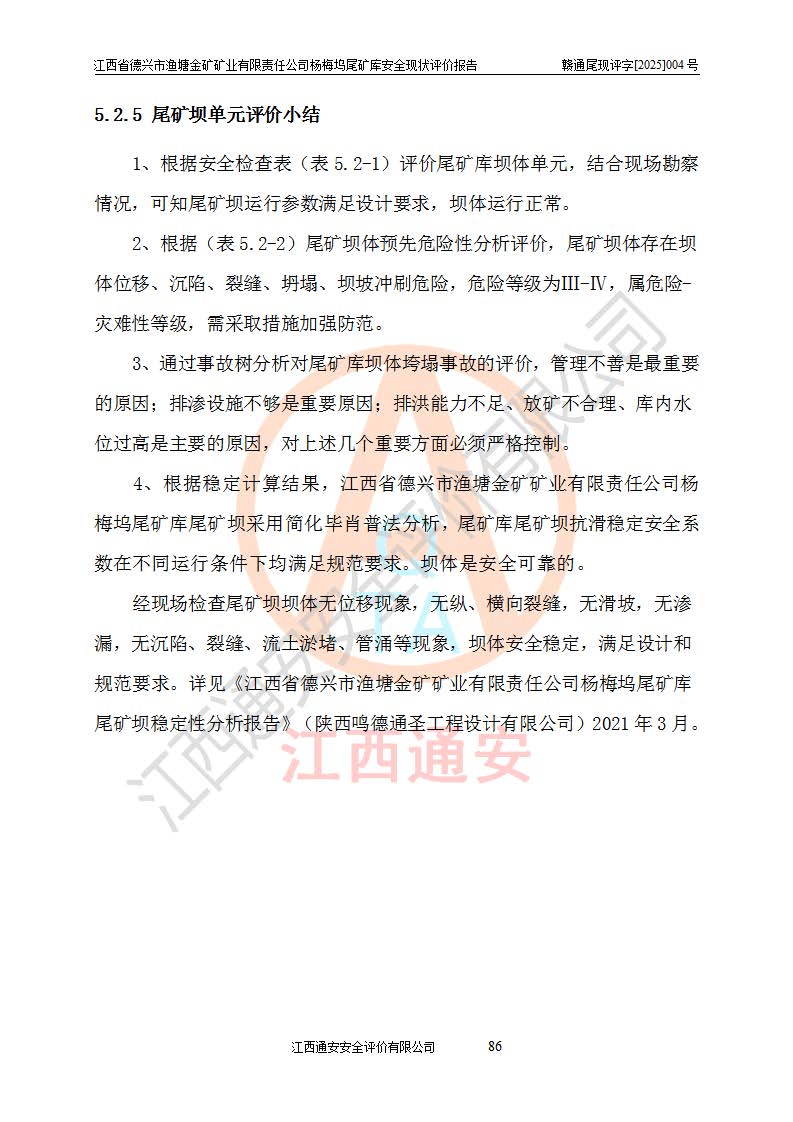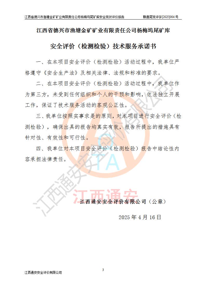 评价报告名称 | 江西省德兴市渔塘金矿矿业有限责任公司杨梅坞尾矿库安全现状评价报告 | |||