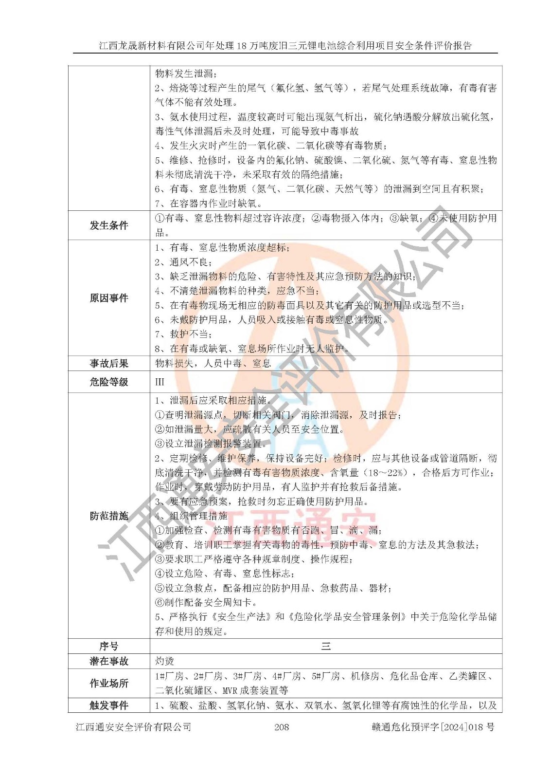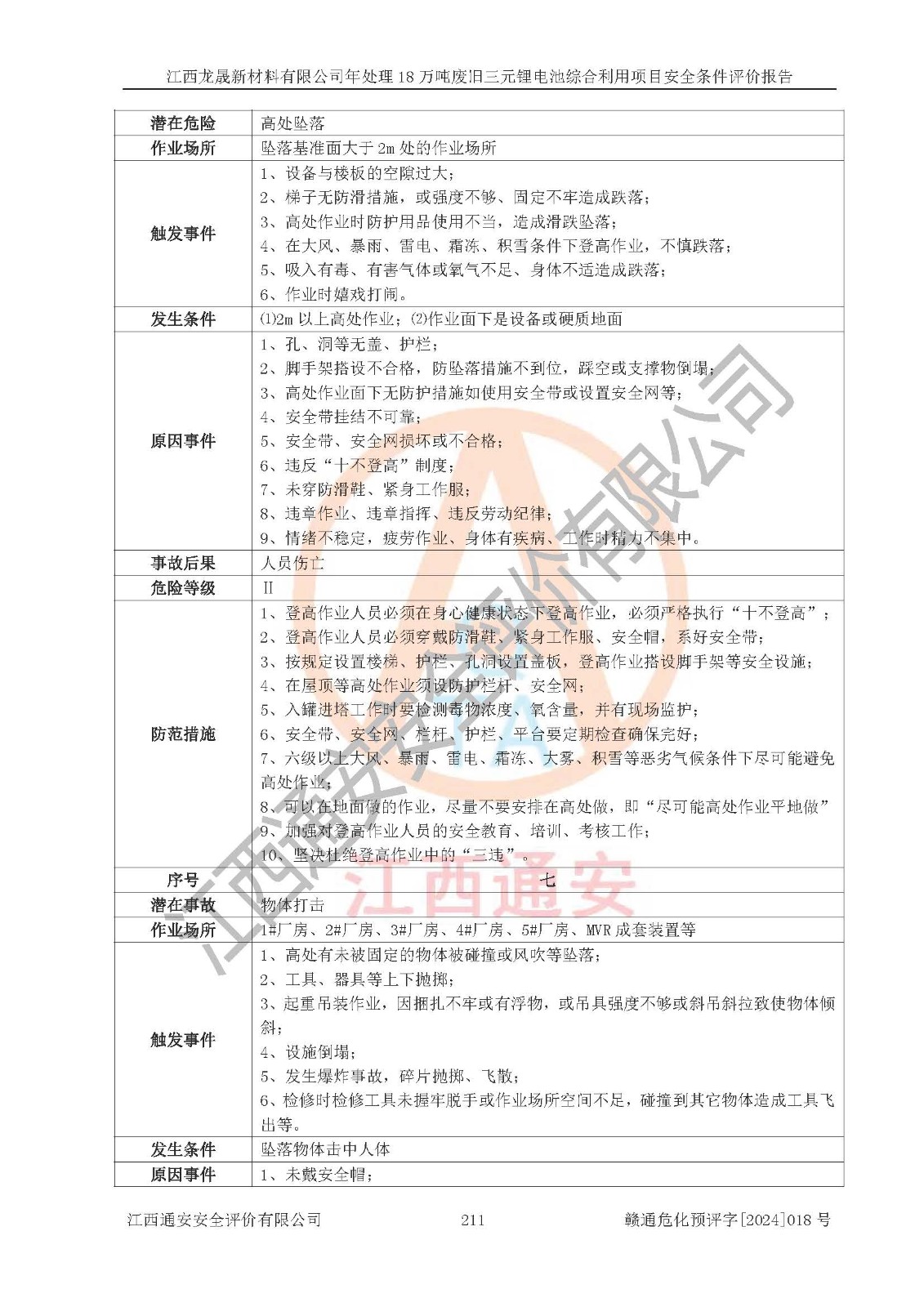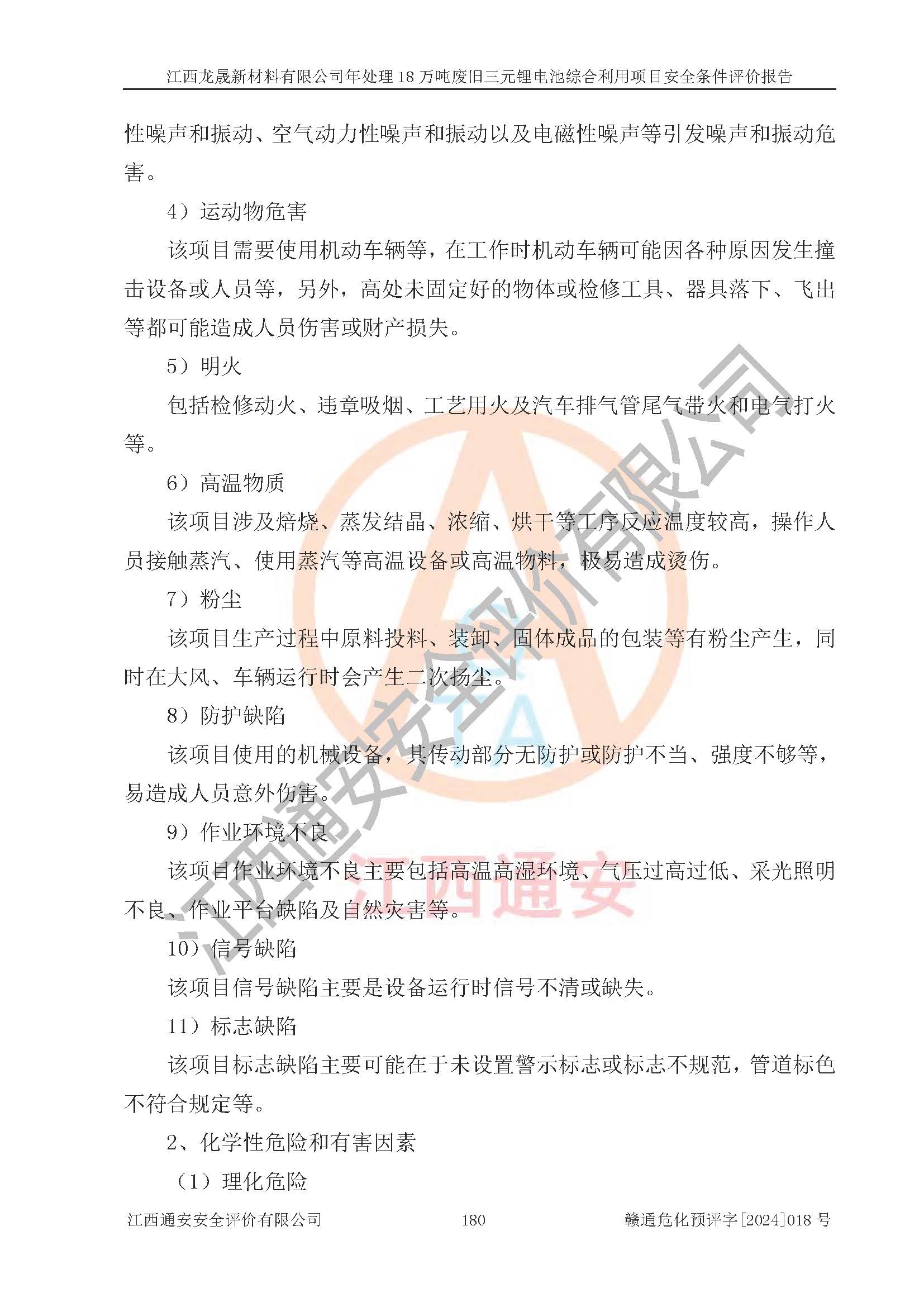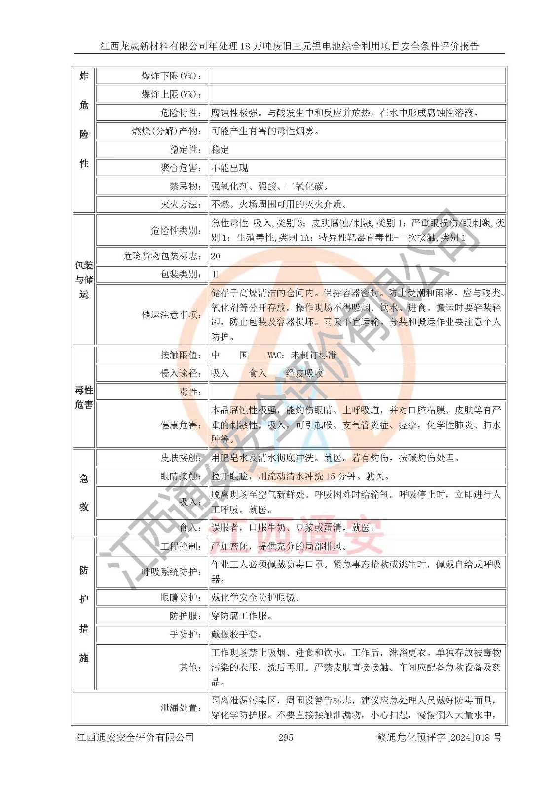 评价报告名称 | 江西龙晟新材料有限公司年处理18万吨废旧三元锂电池综合利用项目安全条件评价报告 | |||