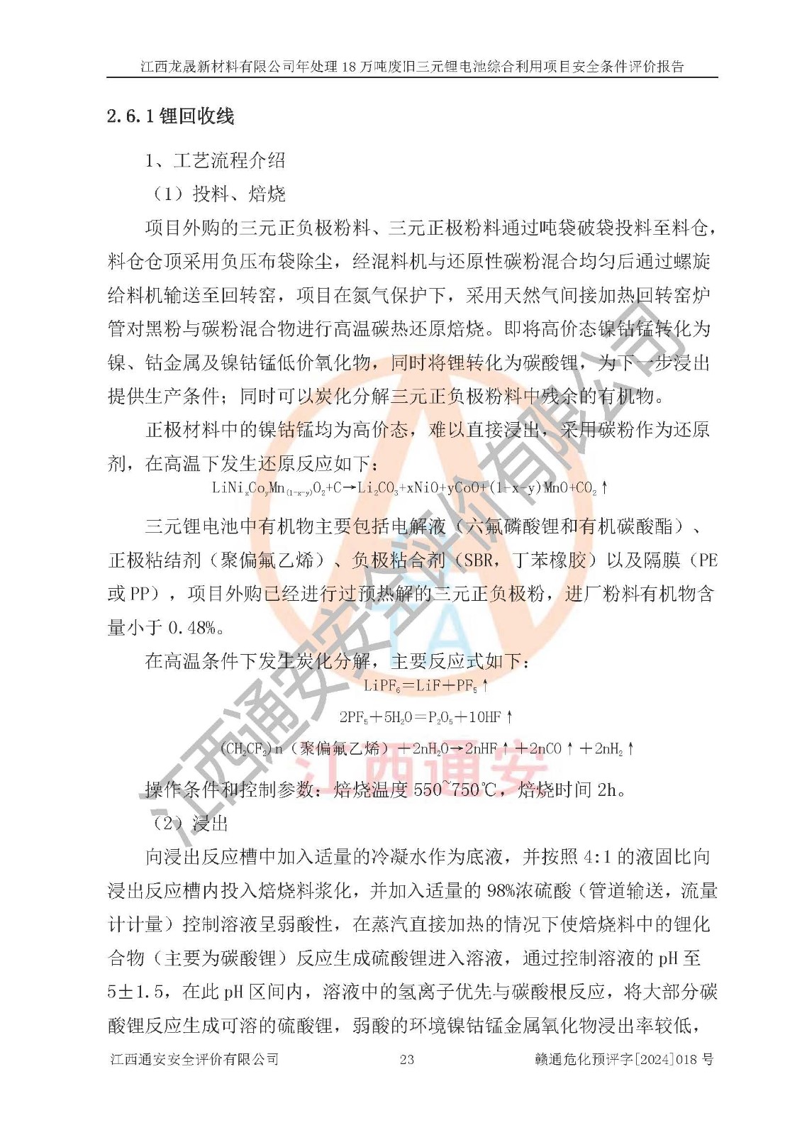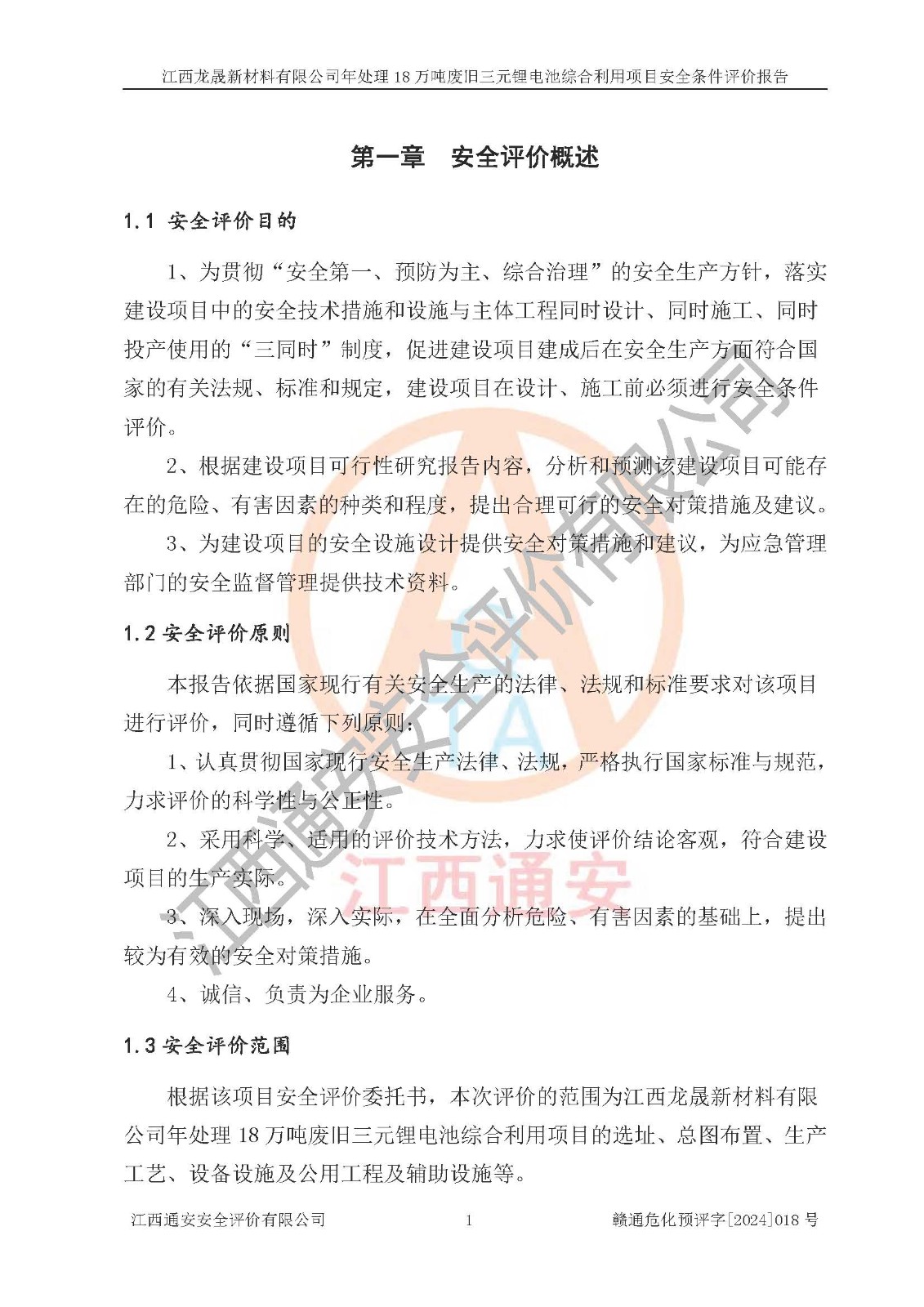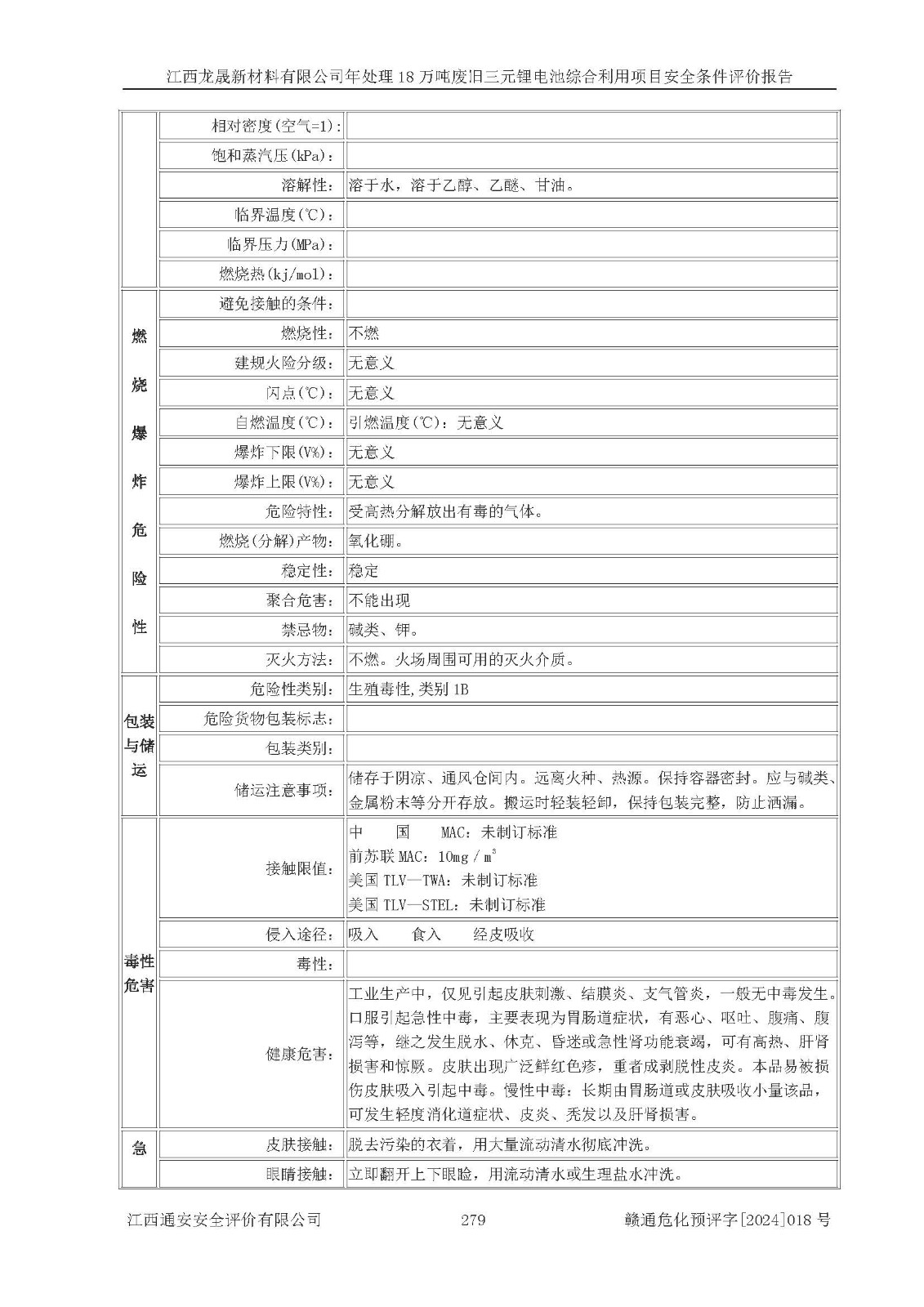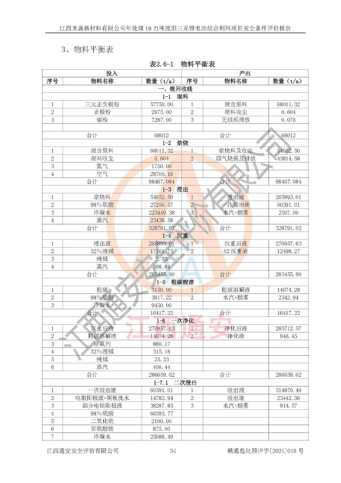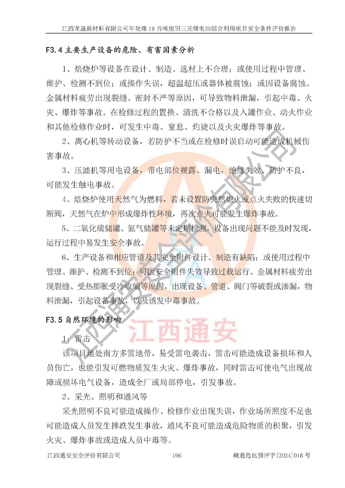 评价报告名称 | 江西龙晟新材料有限公司年处理18万吨废旧三元锂电池综合利用项目安全条件评价报告 | |||