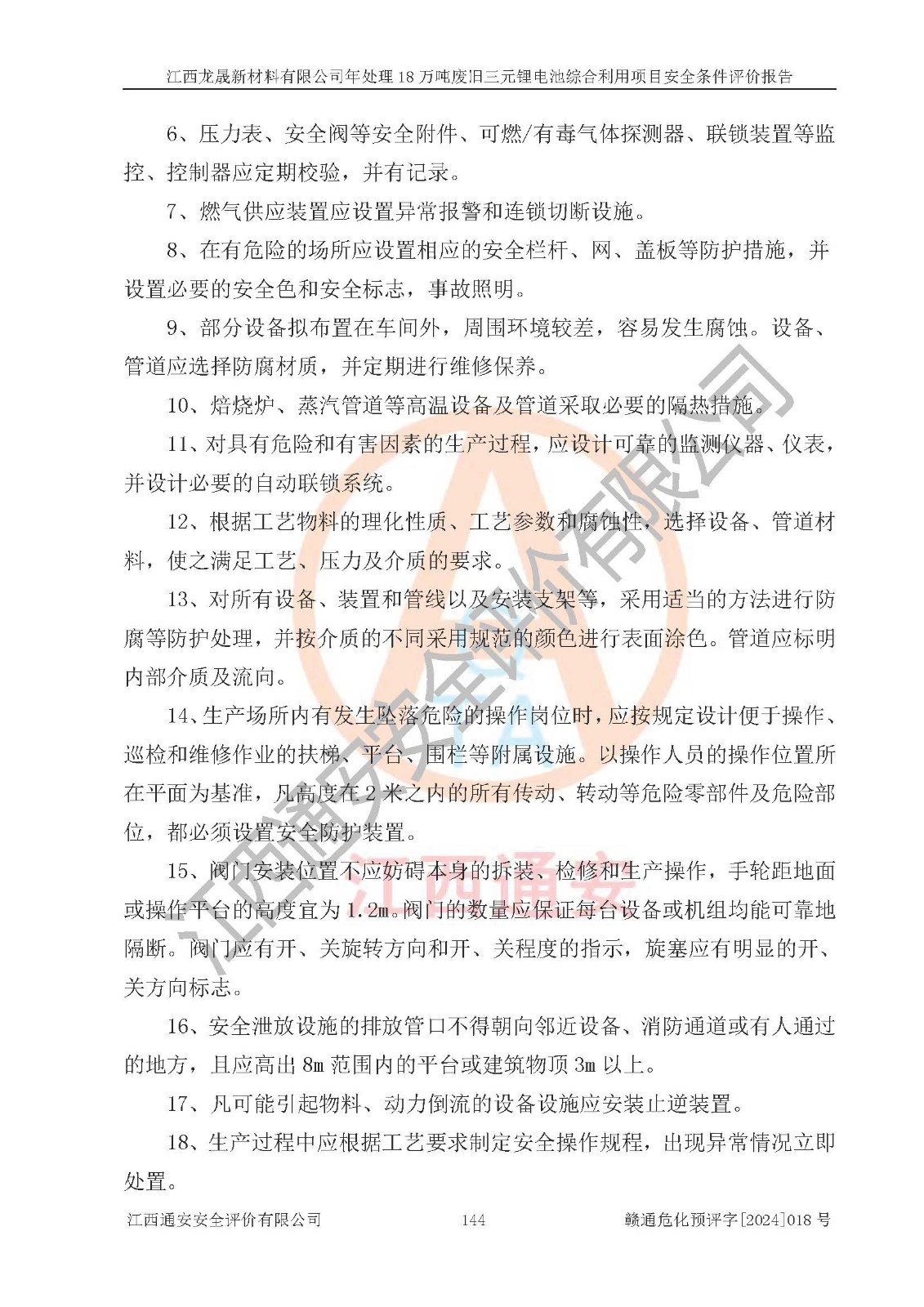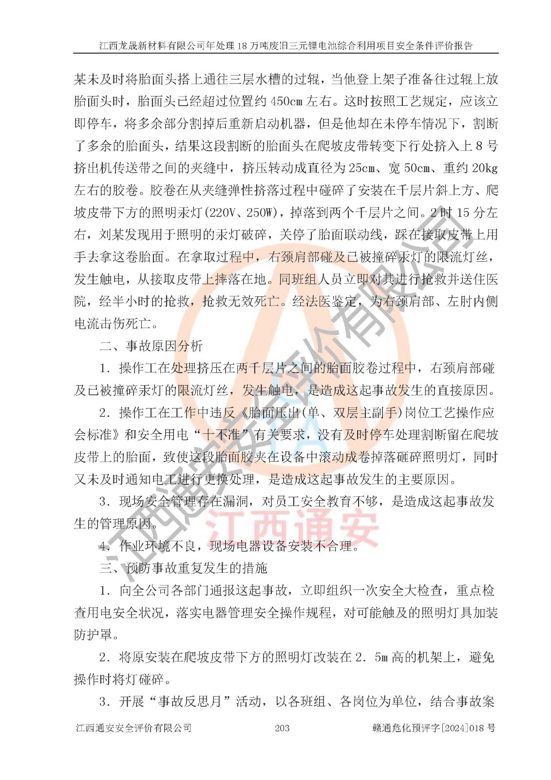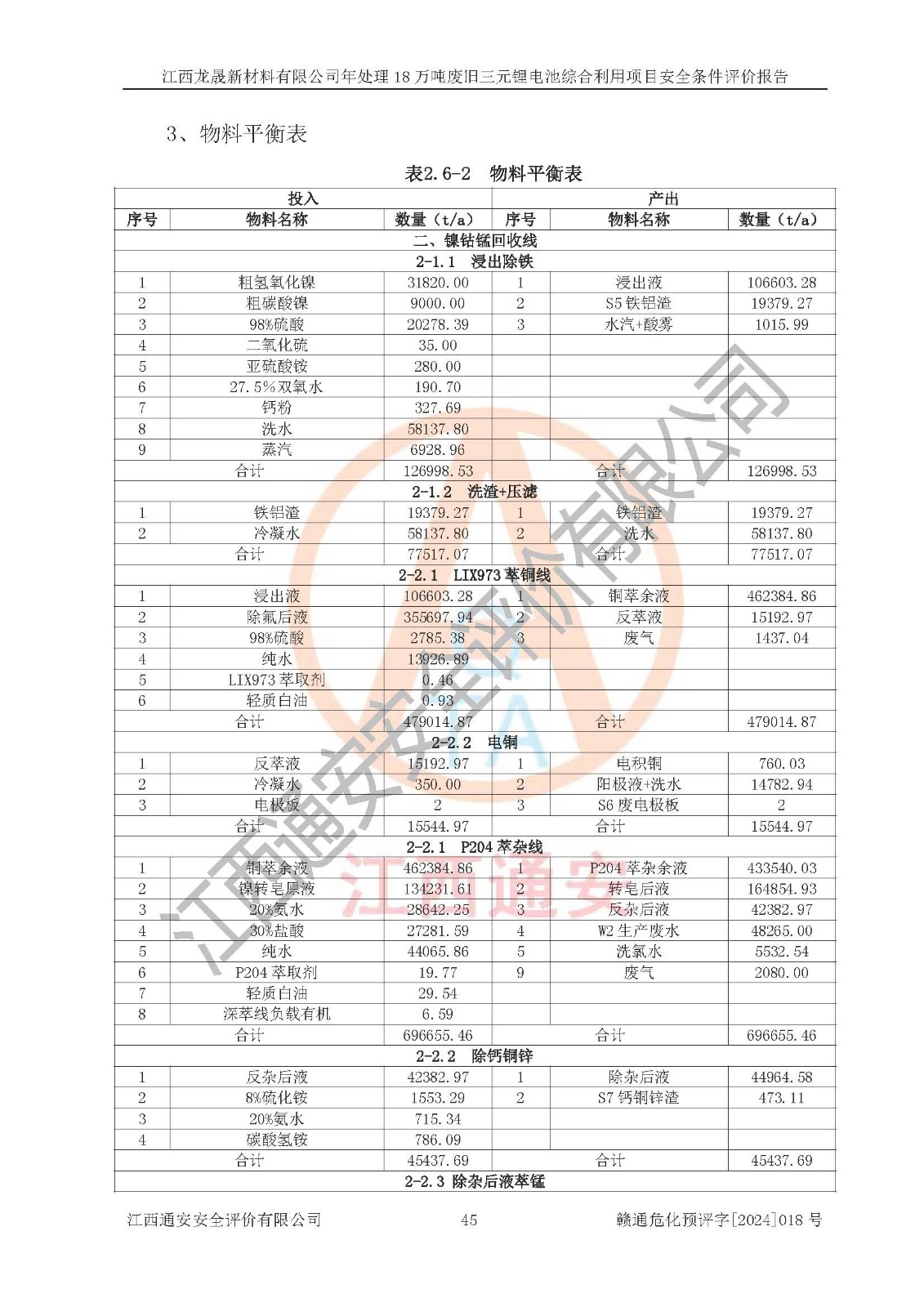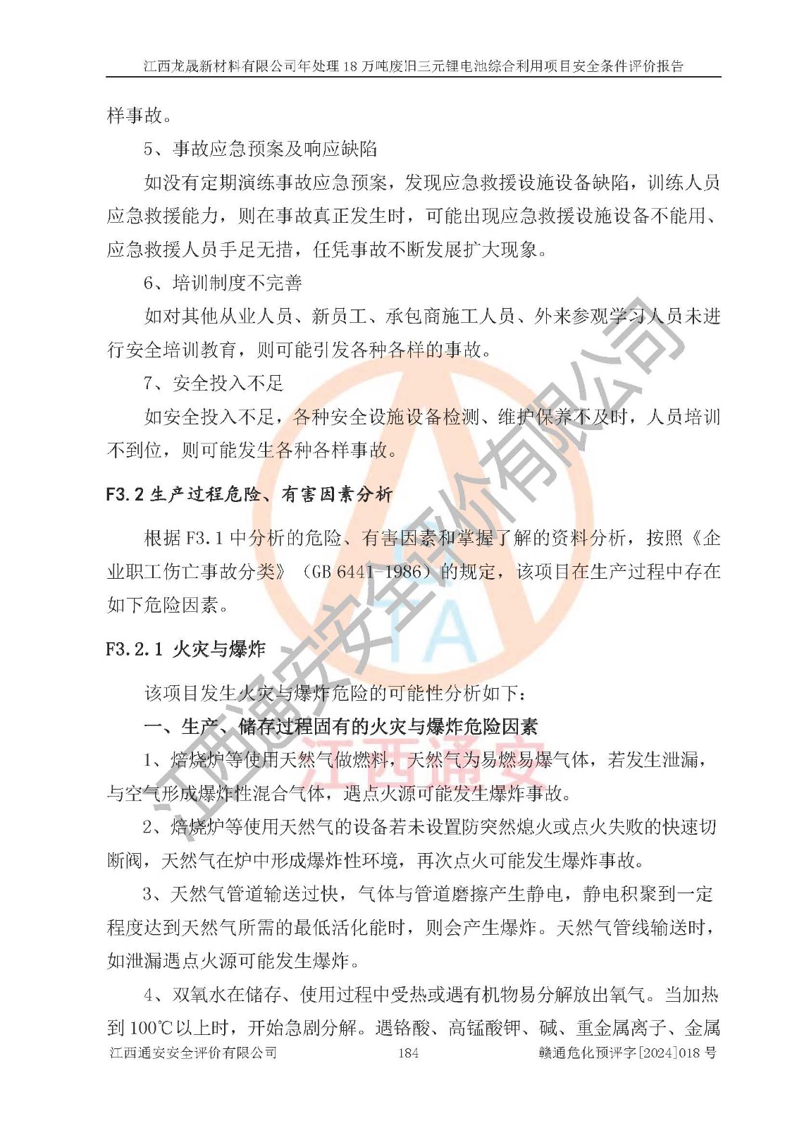评价报告名称 | 江西龙晟新材料有限公司年处理18万吨废旧三元锂电池综合利用项目安全条件评价报告 | |||
